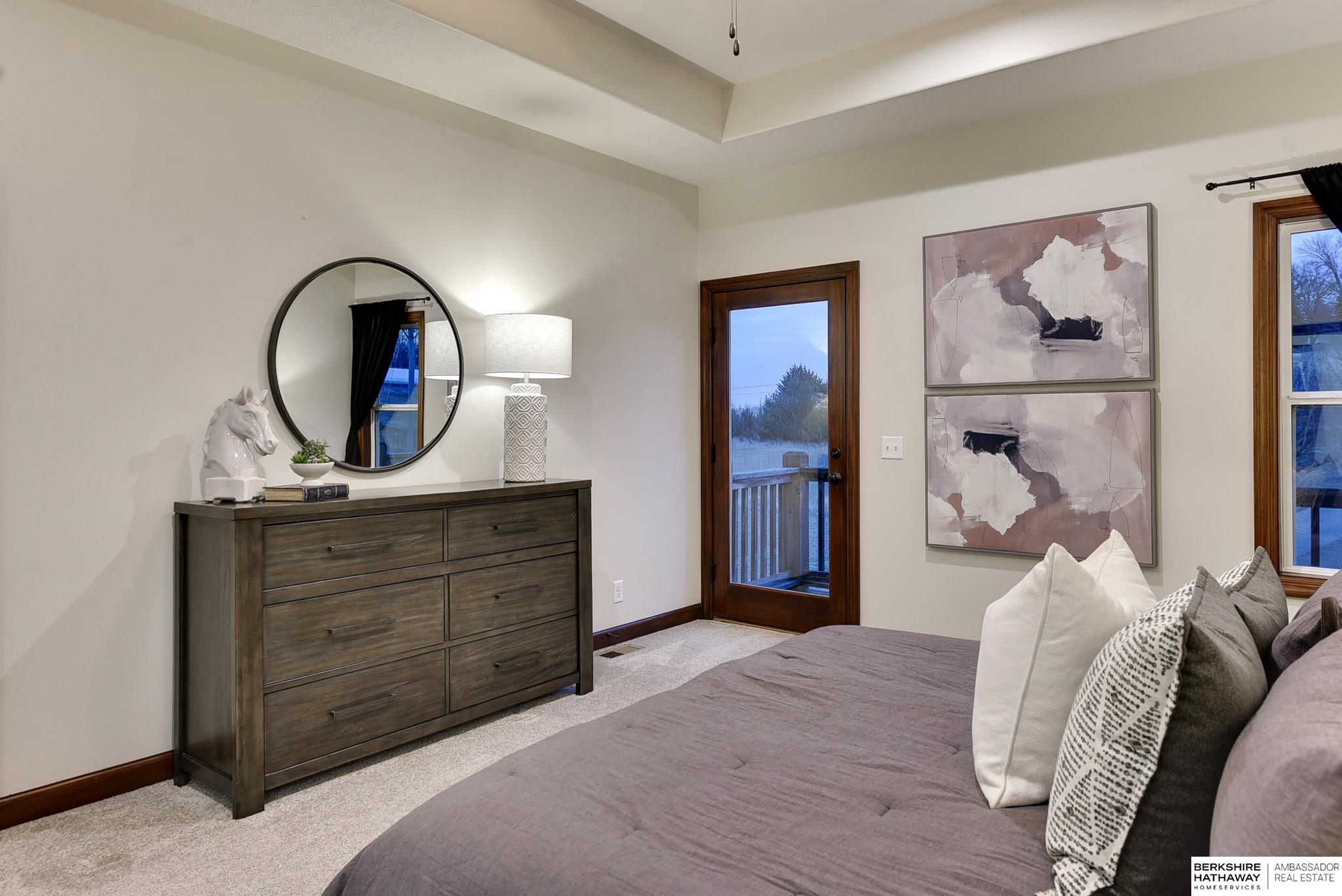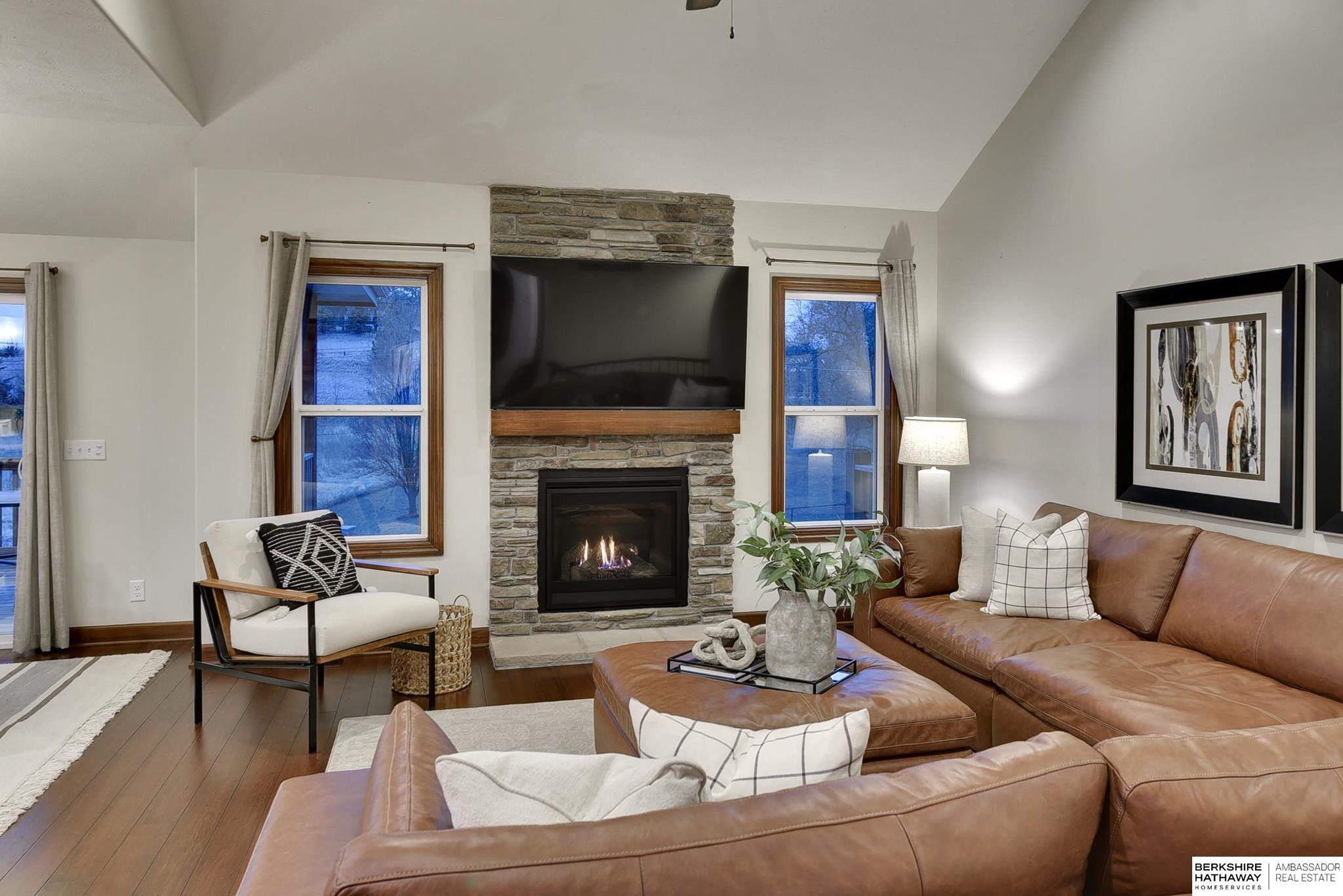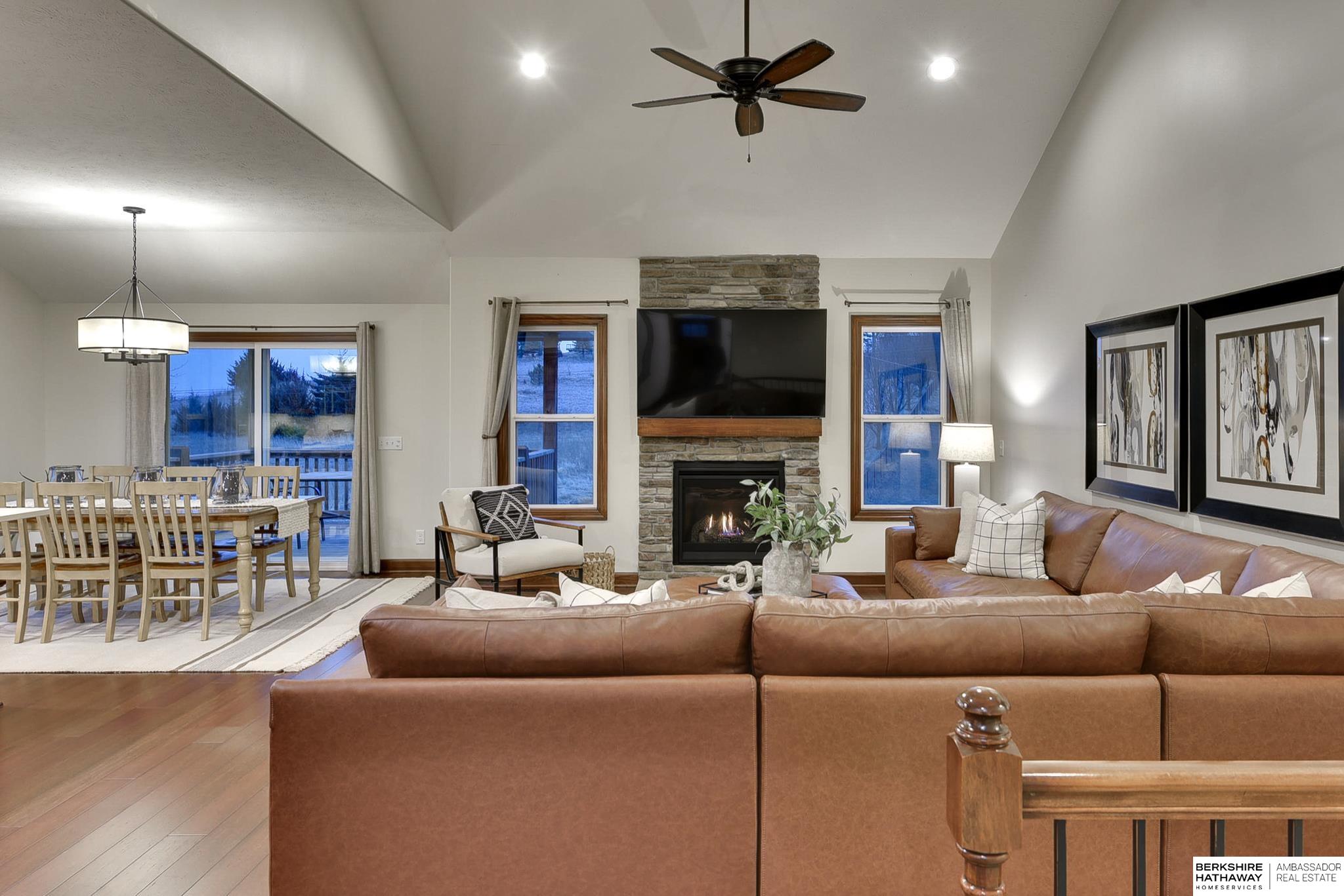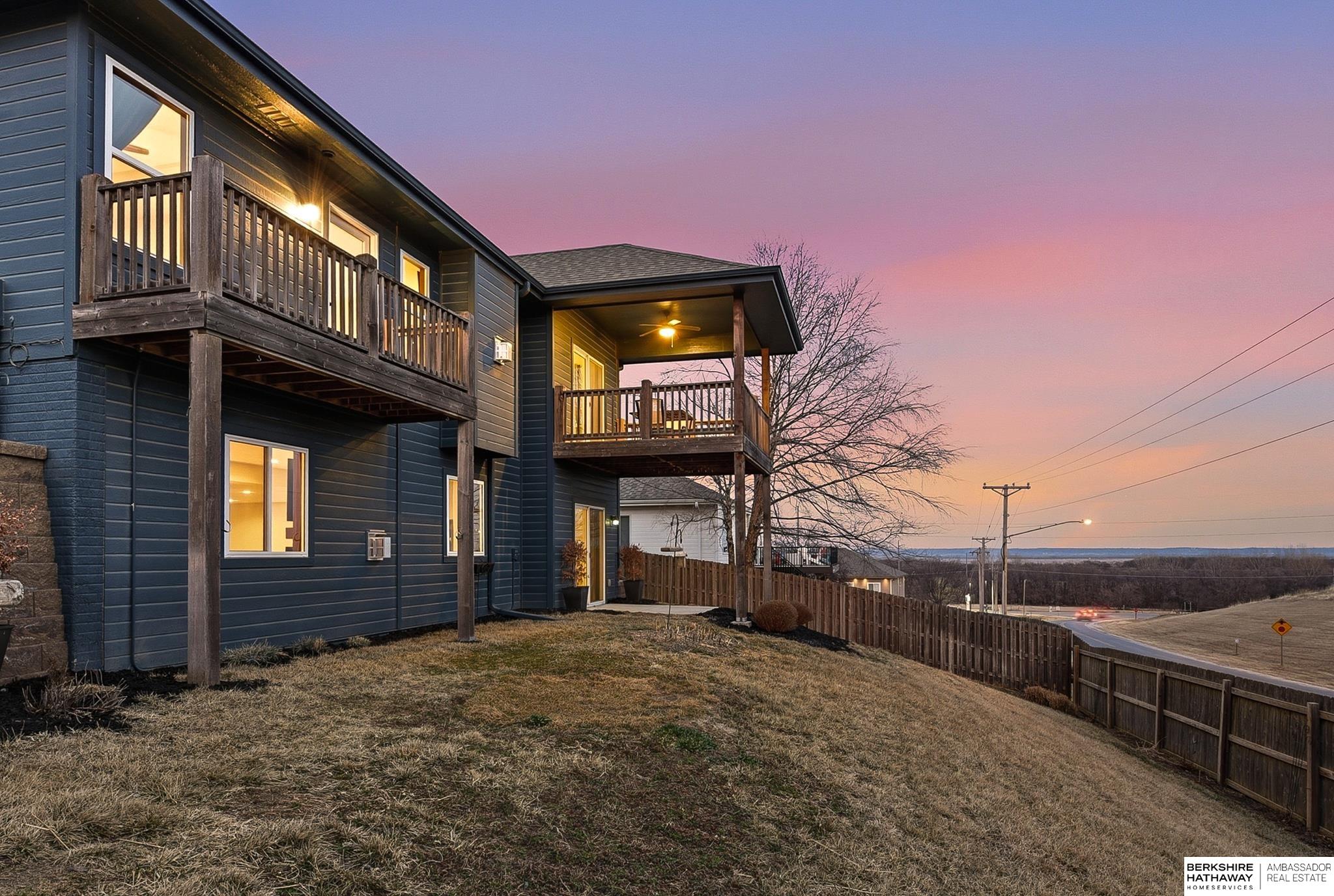 Wake up to breathtaking sunrises and sweeping bluff views at this beautiful Fort Calhoun home! Designed with comfort and refinement in mind, this amazing home features cathedral ceilings, 2 fireplaces, and a spacious 3.5-car garage. At the heart of the home, the thoughtfully designed kitchen shines with custom birch cabinetry, quartz countertops, KitchenAid appliances, and generous storage—perfect for those who truly love to cook and gather. The serene primary suite offers double vanities, a stunning floor-to-ceiling tiled shower, walk-in closet, and a private balcony to enjoy peaceful mornings or evening sunsets. The walkout lower level provides flexible living space, an additional bedroom, and ¾ bath. Step outside to the private patio, prewired for a hot tub/TV, overlooking the sunny south-facing privacy fenced yard. Experience Fort Calhoun's charm-You'll love local events, restaurants, winery, farmer’s market, parks, splash pad, and highly rated schools-all just minutes from Omaha!
