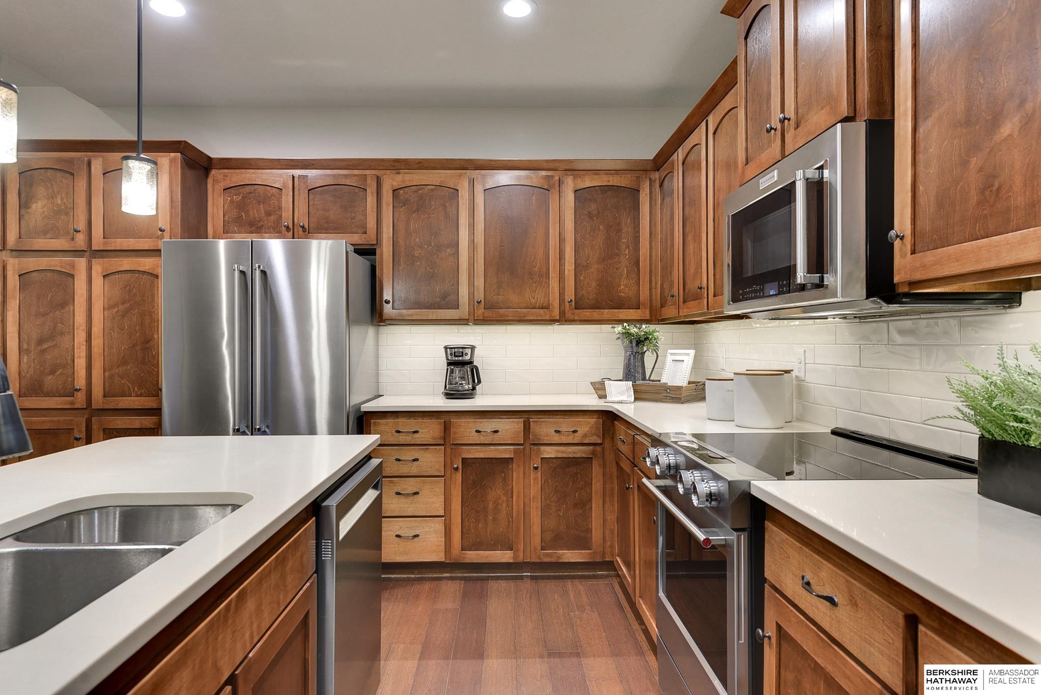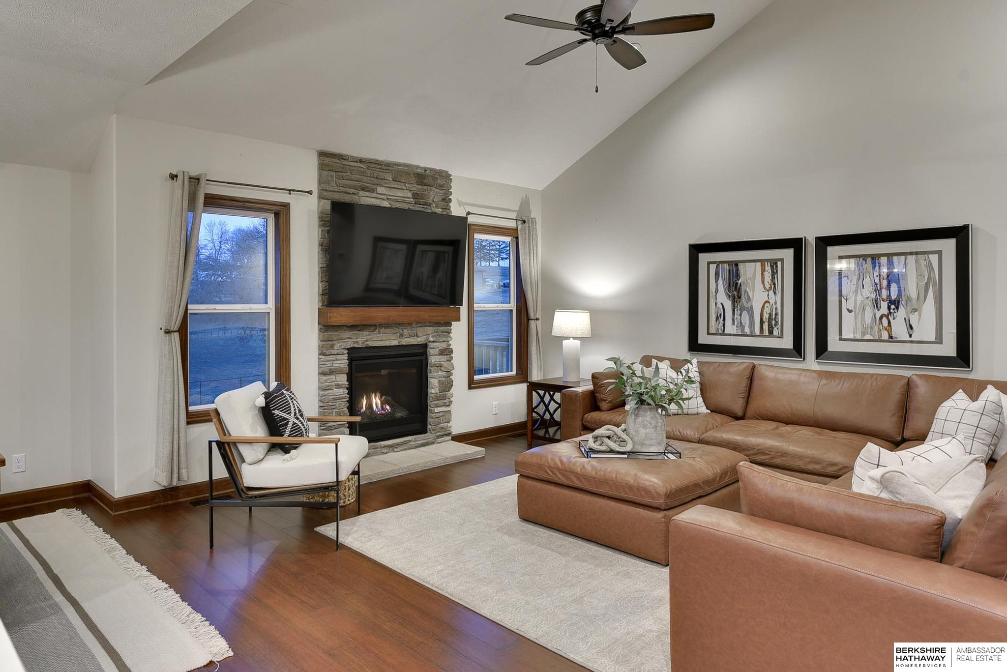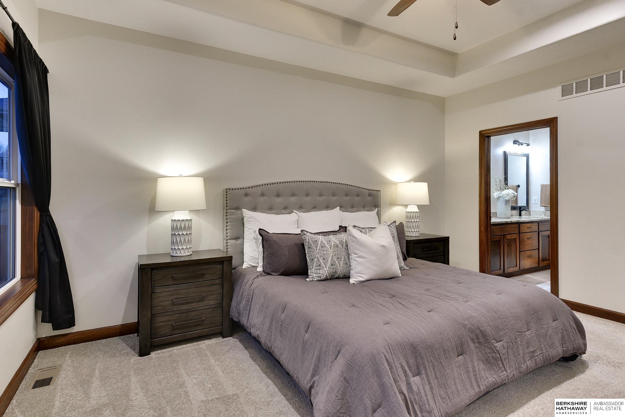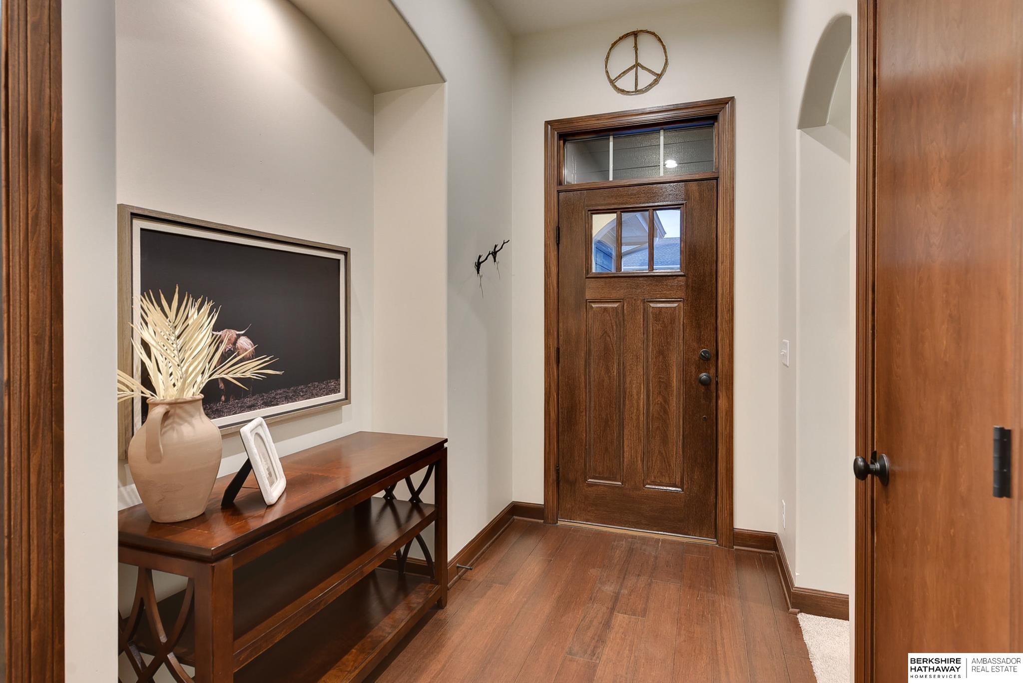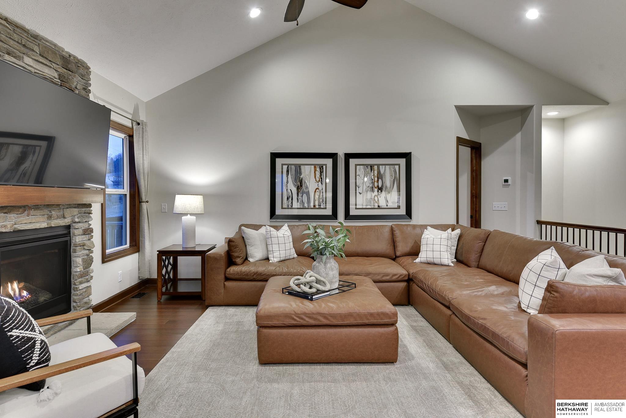 Wake up to breathtaking sunrises and sweeping bluff views at this beautiful Fort Calhoun home! Designed with comfort and refinement in mind, this amazing home features cathedral ceilings, 2 fireplaces, and a spacious 3.5-car garage. At the heart of the home, the thoughtfully designed kitchen shines with custom birch cabinetry, quartz countertops, KitchenAid appliances, and generous storage—perfect for those who truly love to cook and gather. The serene primary suite offers double vanities, a stunning floor-to-ceiling tiled shower, walk-in closet, and a private balcony to enjoy peaceful mornings or evening sunsets. The walkout lower level provides flexible living space, an additional bedroom, and ¾ bath. Step outside to the private patio, prewired for a hot tub/TV, overlooking the sunny south-facing privacy fenced yard. Experience Fort Calhoun's charm-You'll love local events, restaurants, winery, farmer’s market, parks, splash pad, and highly rated schools-all just minutes from Omaha!