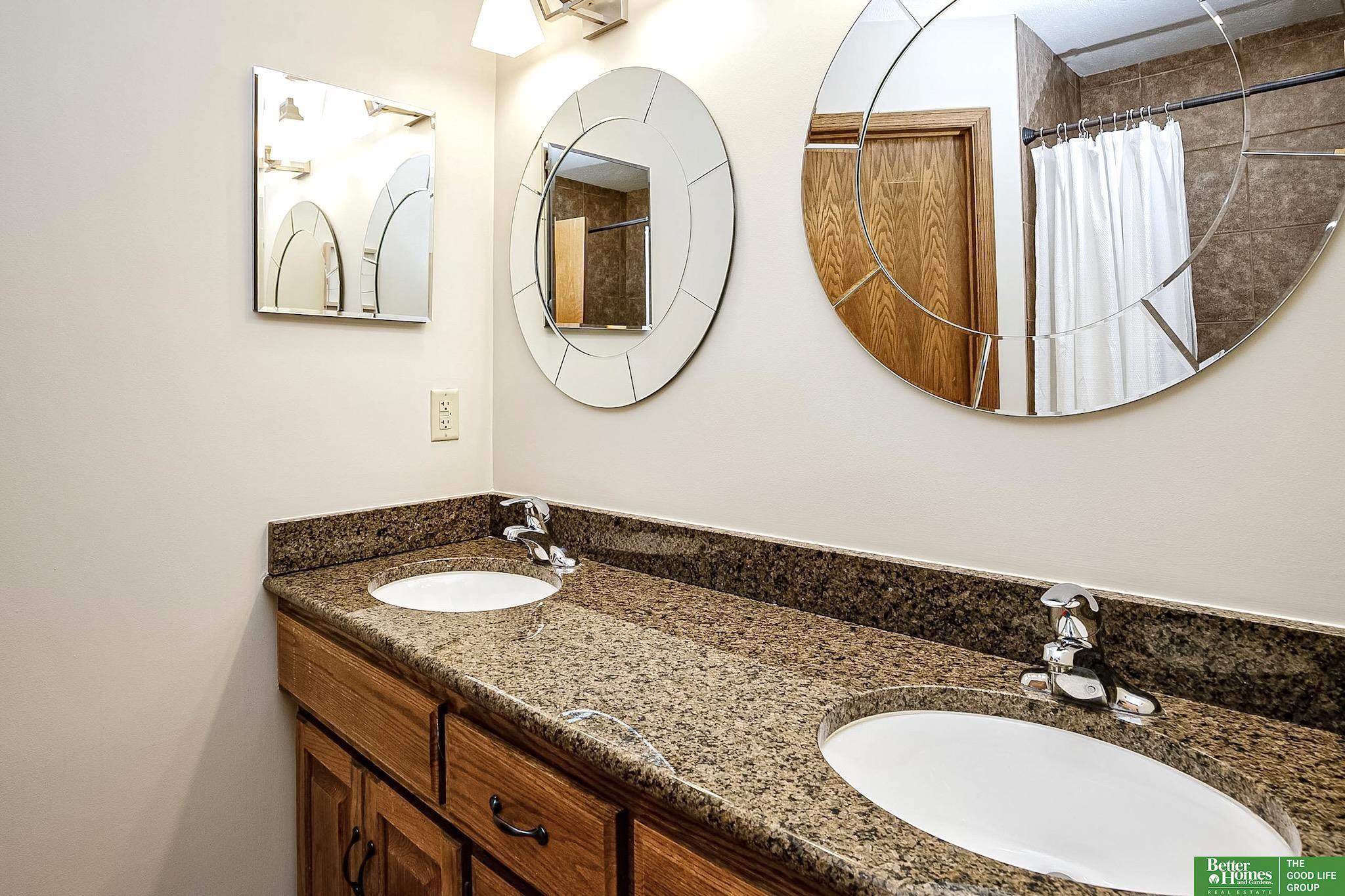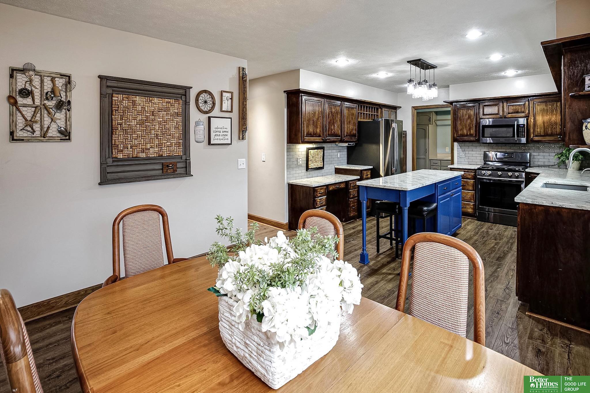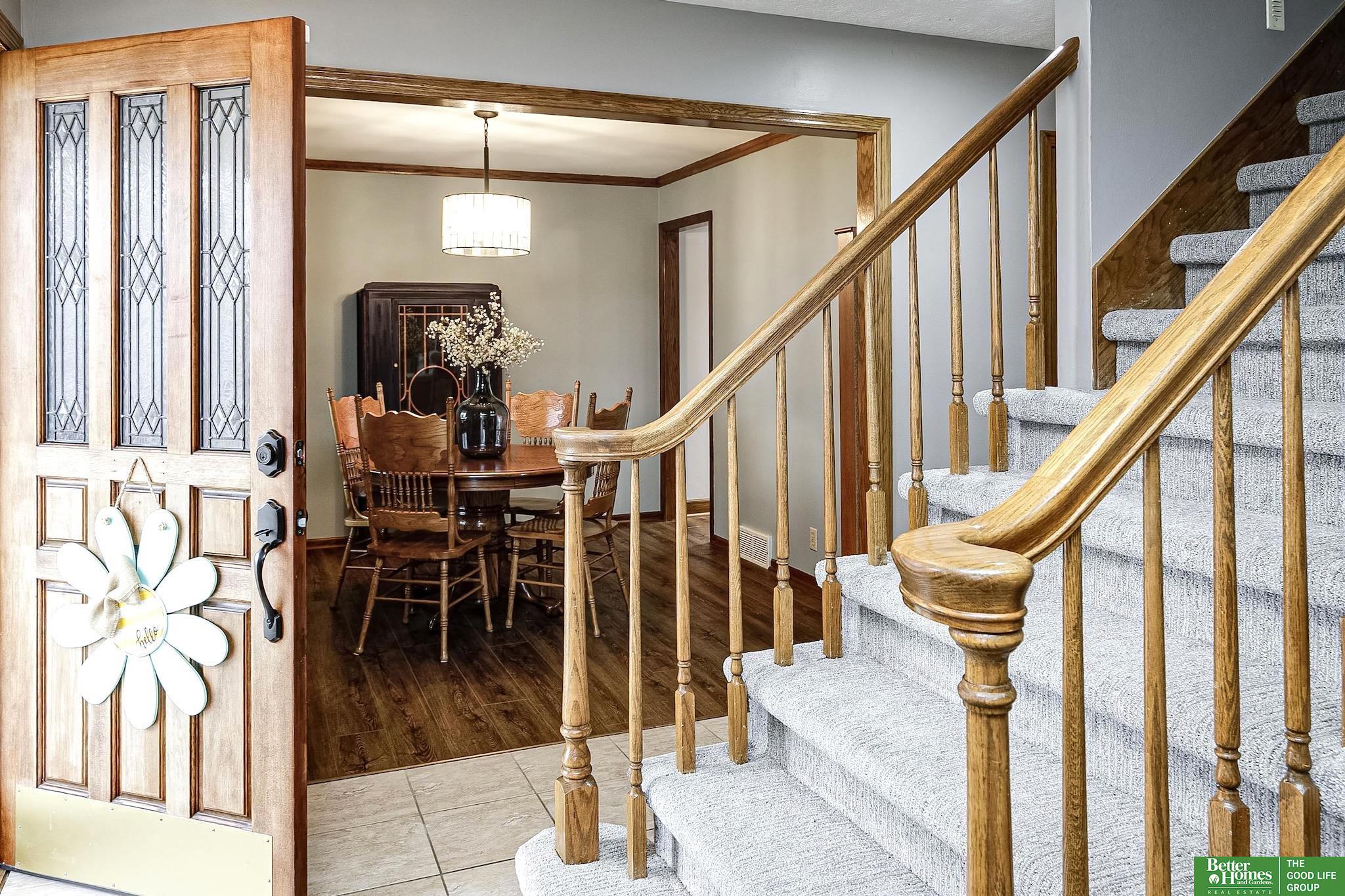 Spacious, stylish & packed w/ value in the popular Bent Creek neighborhood in the sought-after Millard School District! W/ 3,500+ finished sq ft, this impressive 2-story offers incredible space plus a rare VA-only assumable loan @ 3.25%. The updated kitchen shines w/ gorgeous cabinetry, granite countertops, island, sleek subway tile backsplash, SS appliances & eat-in dinette. Entertain in the formal dining rm, formal living rm, or relax in the cozy family rm w/ striking dual-sided brick fireplace. Main floor laundry. All 4 bedrooms upstairs, all w/walk-in closets including a primary suite w/ skylights, jetted tub, dual vanity & tile shower. 2nd level bath w/ dual vanity & granite. Fully finished basement w/ kitchenette (appliances stay), workout area, ¾ bath w/ tile shower & 5th non-conforming bedroom. Extras include newer carpet upstairs, water softener, RO system, low maintenance vinyl siding, fully fenced yard, extra parking pad, & home has been pre-inspected for peace of mind.