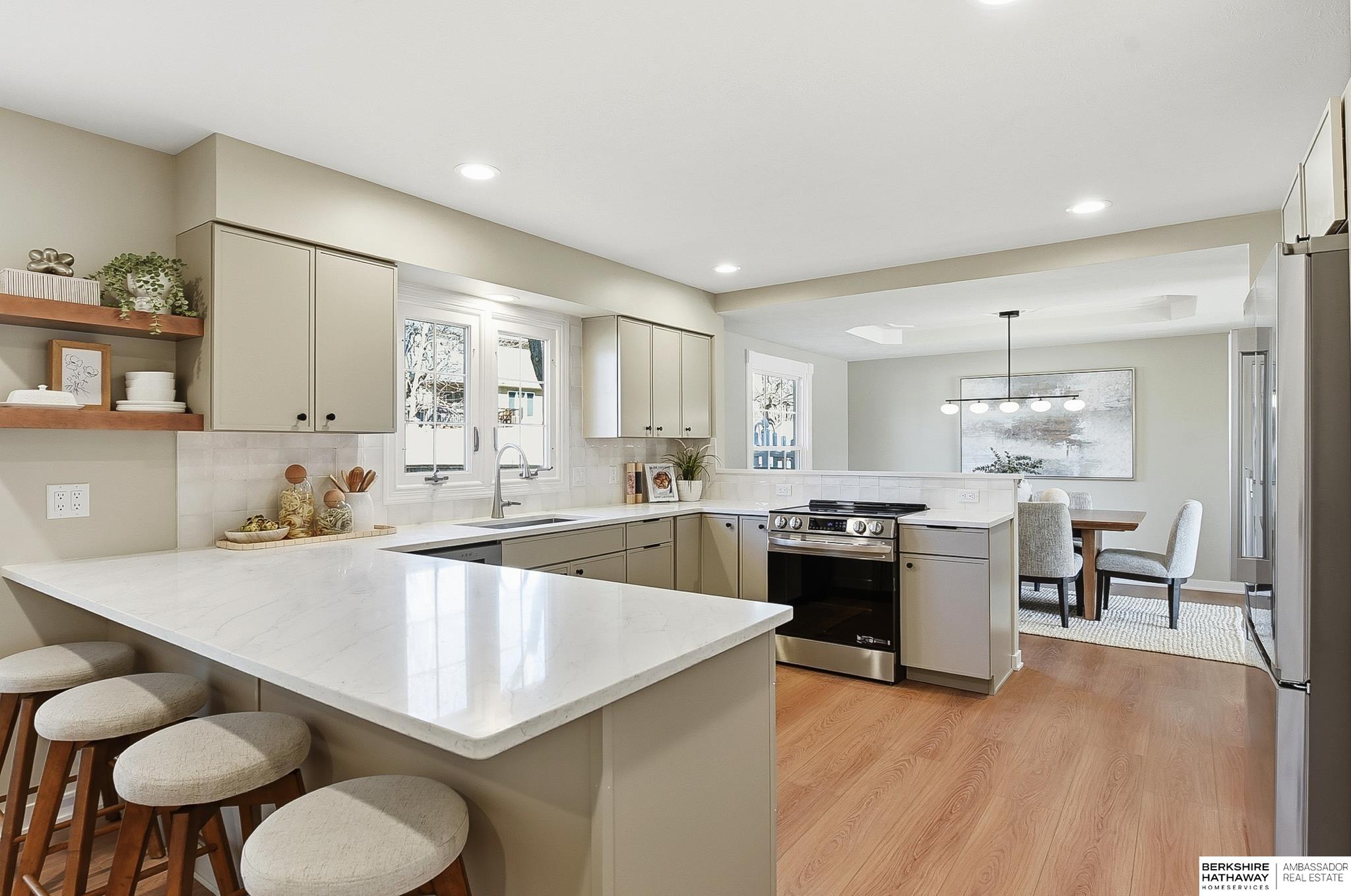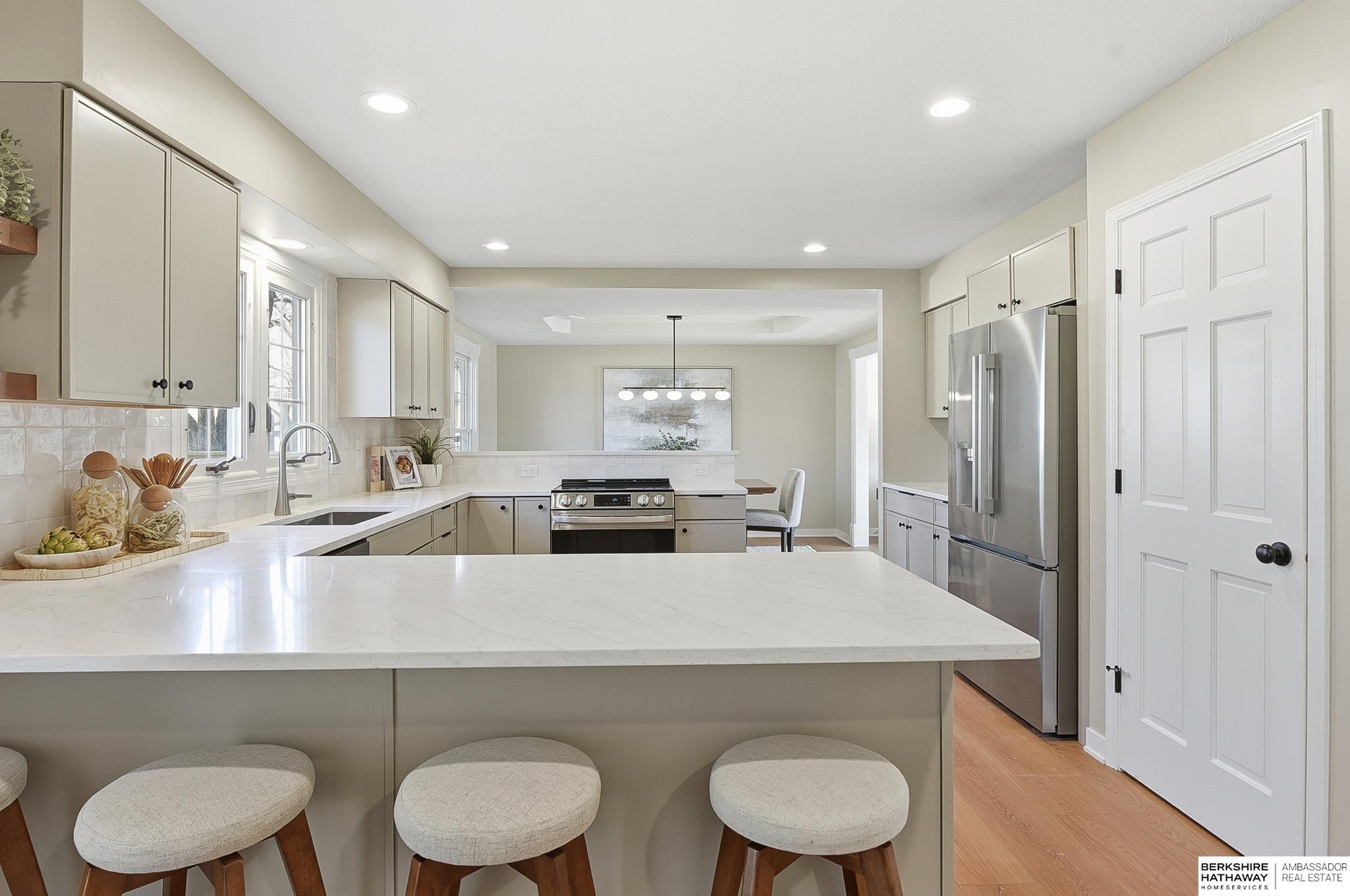 Armbrust Acres Stunner! Remodeled from head to toe. You have been waiting for the perfect house to hit the market, and your patience has paid off! Large living spaces blend perfectly with a reimagined kitchen and dining experience, perfect for 2026. An updated drop zone is found in the laundry room across the hall from the cutest guest bathroom you will see this year. Upstairs four spacious bedrooms are highlighted by the primary retreat featuring a large walk-in closet and walk-in shower. Need more square footage? The finished basement does not disappoint with an expansive living space featuring a dry bar and a built-in entertainment area perfect for game day, or movie night. Step outside to the mostly fenced-in back yard featuring a brand new deck and a private, fully landscaped backyard. Situated on a corner lot in a cul-de-sac, in one of west Omaha's premier neighborhoods, come see what sets this house apart from all of the rest!