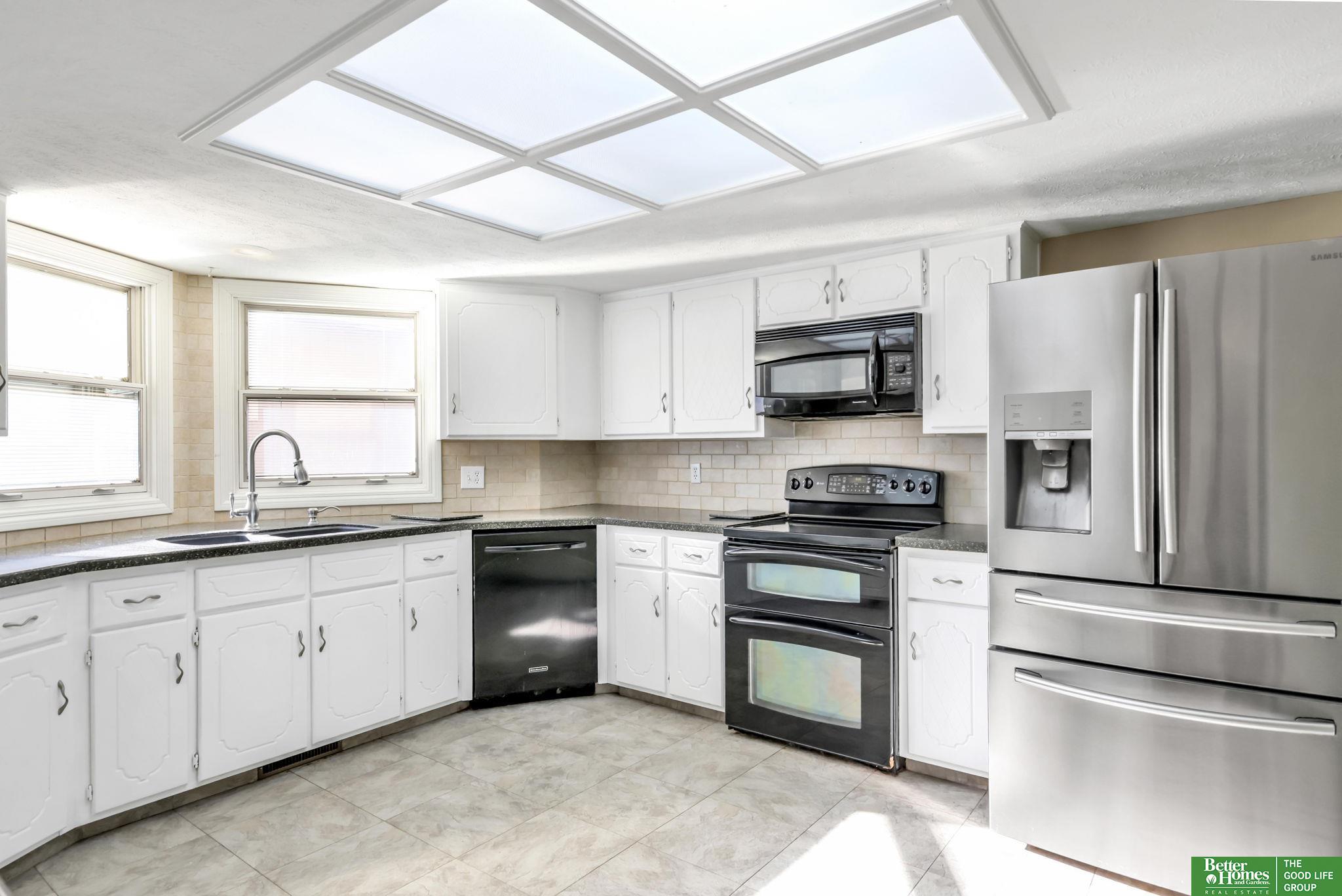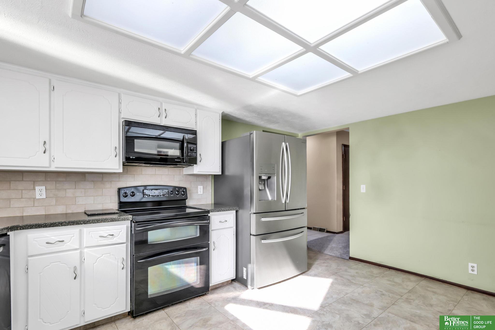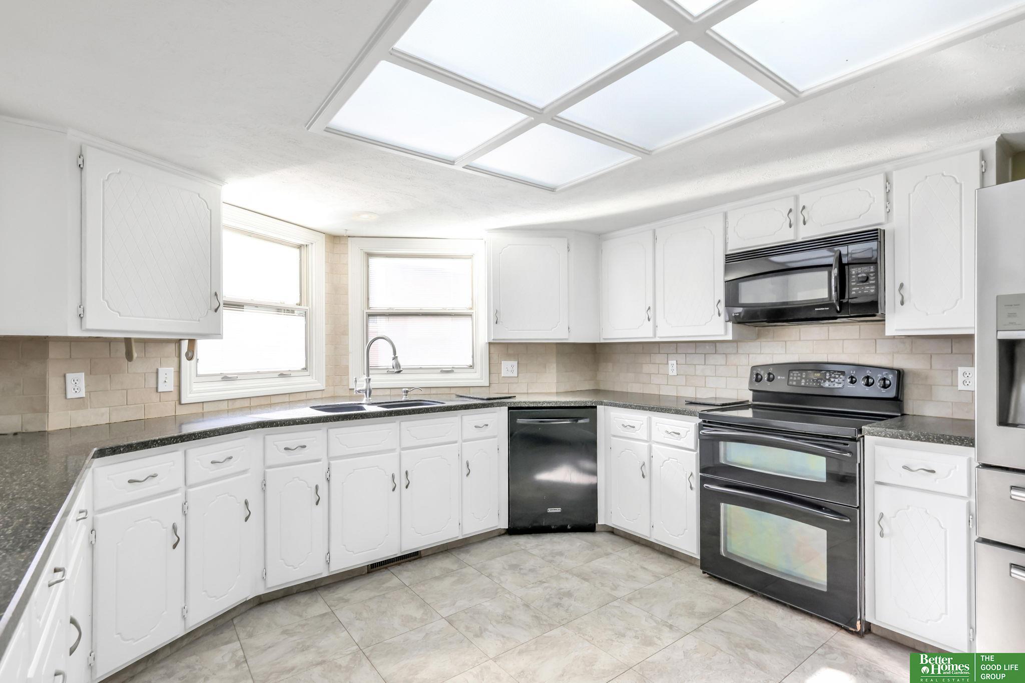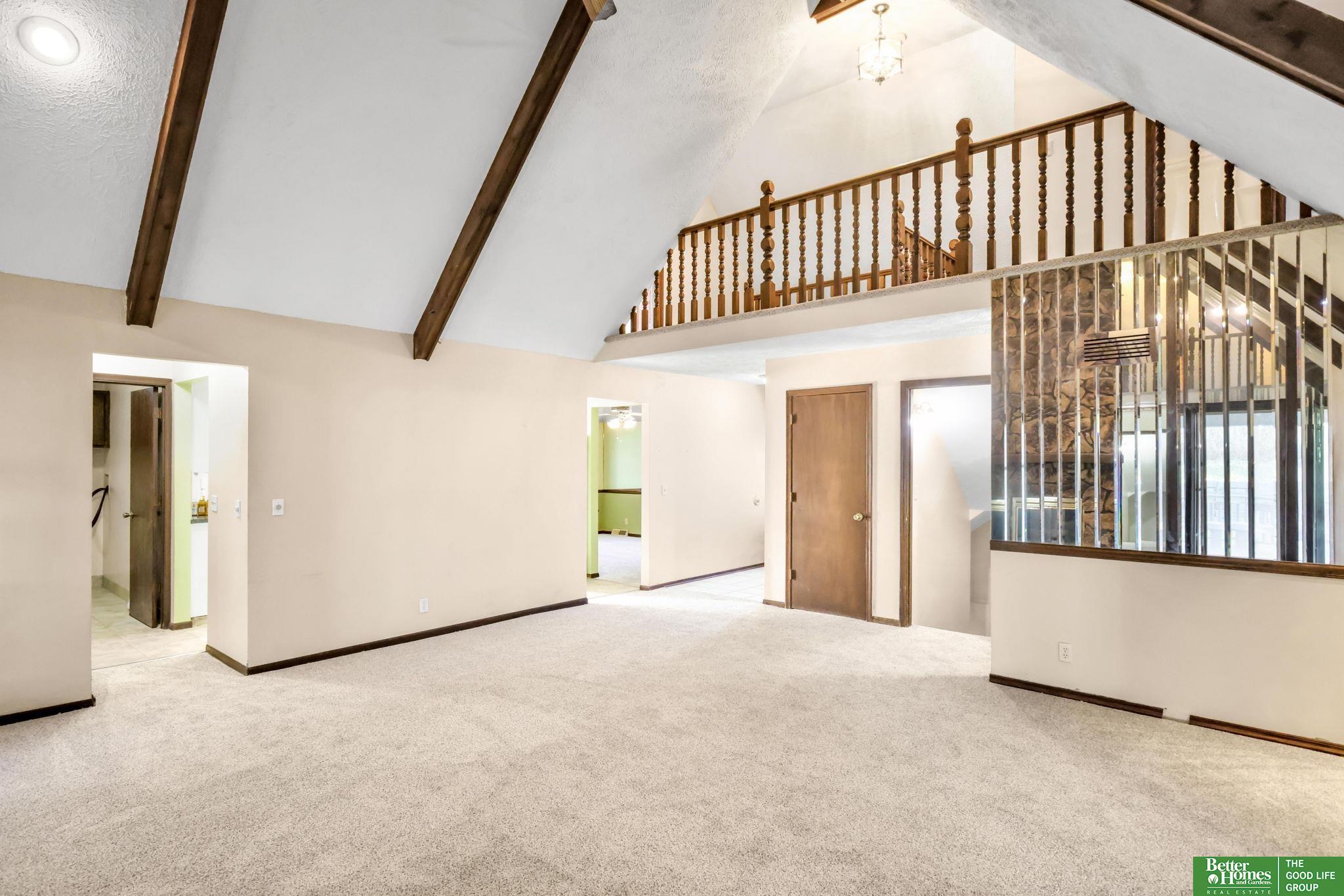 Spacious, and functional, this unique 1 1/2 story home in the desirable Millard School District offers both comfort and peace of mind! Pre-inspected and professionally cleaned (March 2026), with furnace and A/C recently serviced and inspected (March 2026), this home is ready for its next owner. You’ll love the fresh new carpet throughout (March 2026) and a fully renovated main bathroom (2026) Plus you'll enjoy thoughtful updates including a water softener (2023), updated sprinkler programmer (2024), and newer fencing along the west property line. Inside, the open layout features a stunning two-story fireplace and cathedral ceilings in the living room creating an inviting atmosphere. The main floor also includes a dedicated office with built-ins, plus a formal dining room or flex space to fit your needs. The finished lower level offers added space for while outside you can relax or host on the full-length covered deck. Don't Miss Out! AMA