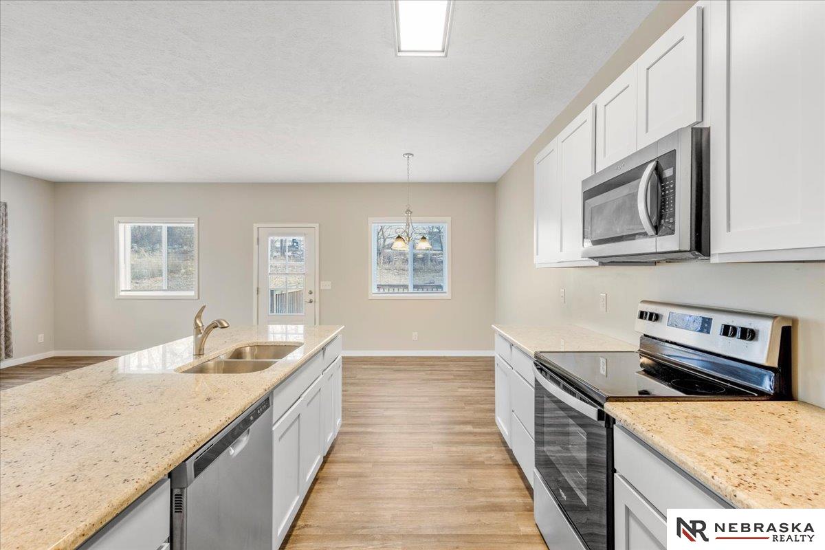Welcome to this adorable three bedroom three bath home in Plattsmouth! Enter into the home and the main level has a bright, beautiful living room, dining room and kitchen. The kitchen has beautiful appliances and with an oversized island and is perfect for cooking or entertaining! The beautiful deck is private and overlooks the large backyard! The primary bedroom is large and has its own private bathroom. The second bedroom is bright and can serve as an office as well. Laundry is on the main level. The lower level has a large family room and a third bedroom within an egress window and a full bath. This charming home sits at the end of the street, so not much traffic!