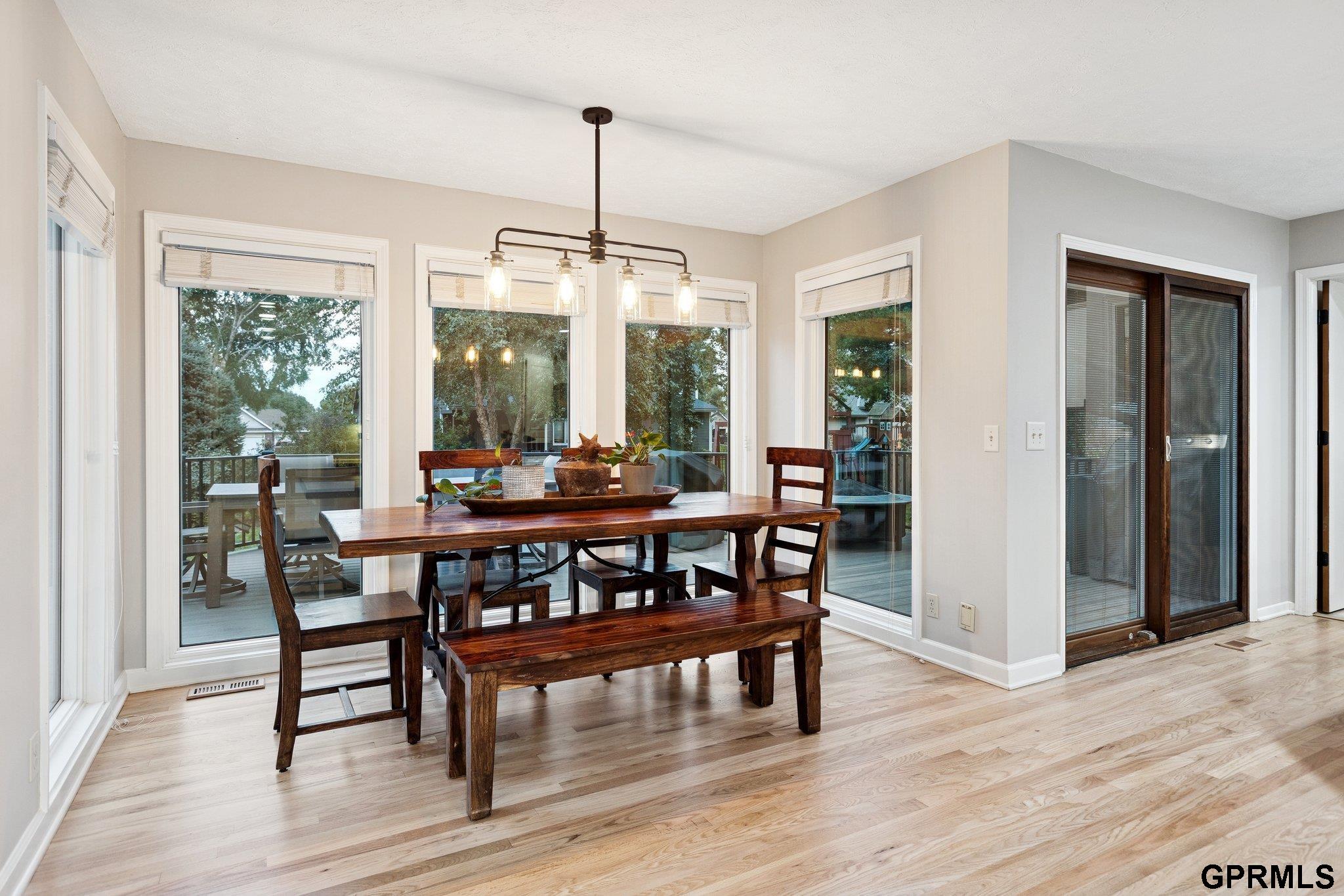 Get ready to fall in love with this beautifully updated home in the amazing Greenbrier neighborhood! This incredible community offers oversized lots and a peaceful, country feel — all within minutes of downtown Elkhorn entertainment. This home is filled with natural light and features vaulted ceilings that give it a bright, modern feel. Fresh neutral paint throughout, crisp white trim & doors, updated hardware, and recently refinished hardwood floors make it move-in ready. Other thoughtful updates include a new Trex deck, roof, windows, and a new garage door. The luxurious primary suite has been wonderfully updated and features vaulted ceilings, a spacious walk-in closet, soaking tub, heated tile floors, and tiled walk-in shower. Open lower level with flex space for office or 4th non-conforming bedroom. Enjoy the large, fenced and private lot complete with a sprinkler system and storage shed. Welcome to your new dream home!
