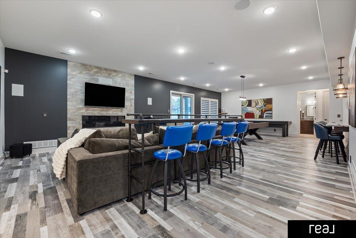 Welcome to this true custom ranch in the highly sought-after Cheyenne Country Estates, perfectly situated on an almost acre lot in Gretna East Schools with direct connectivity to Chalco through the neighboring community. Designed with both function and lifestyle in mind, the main level features four bedrooms, two private offices, a drop zone with sports closet, and a dedicated pet room. Upstairs, a versatile bonus room with ¾ bath offers added flexibility. The finished walkout lower level includes two additional bedrooms, dual baths—one serving the bedrooms and another with direct access to the pool room—plus a hidden poker room. Outdoors, lush landscaping frames multiple spaces for entertaining, including a firepit, while a striking Y-shaped, three-tiered saltwater pool with new liner, sports court, and generator provide tremendous value for the property. With thoughtful amenities throughout, this home is the ultimate retreat for family, work, and play.