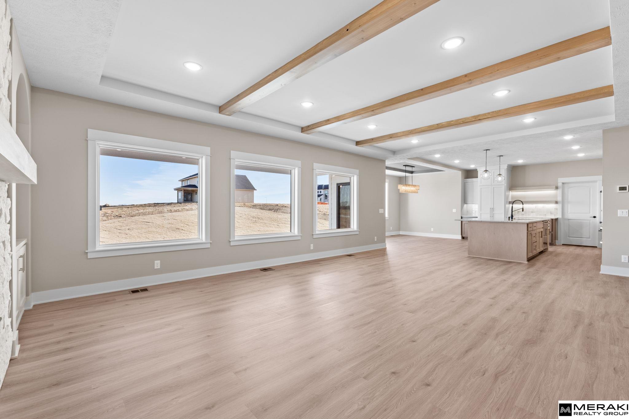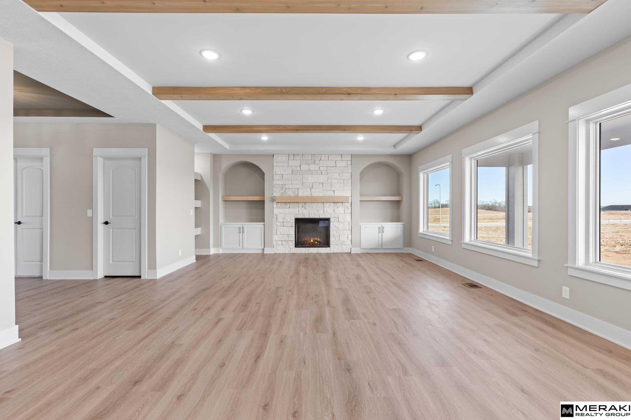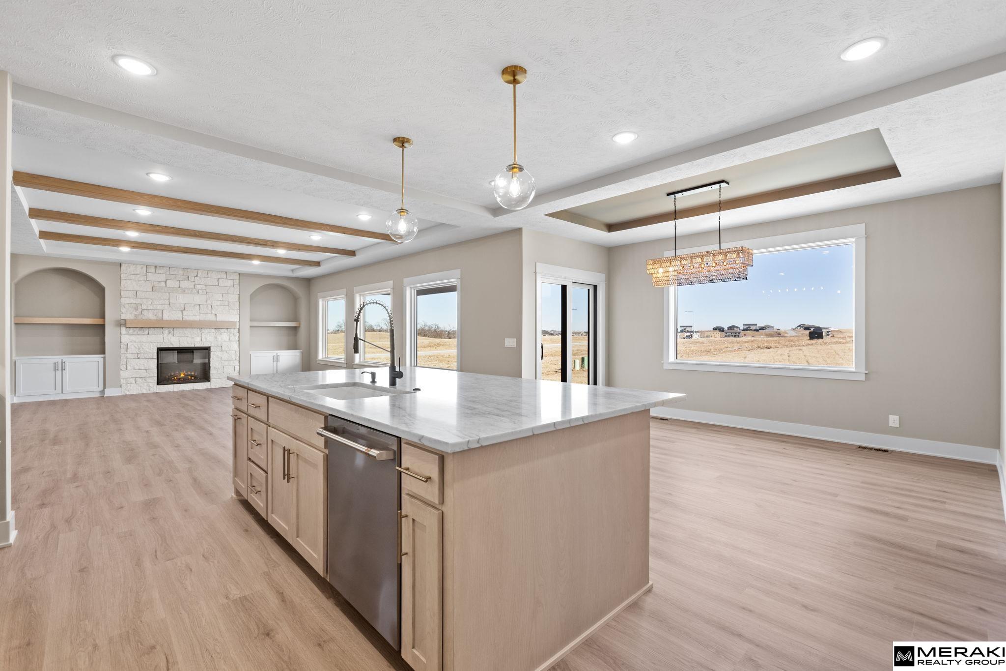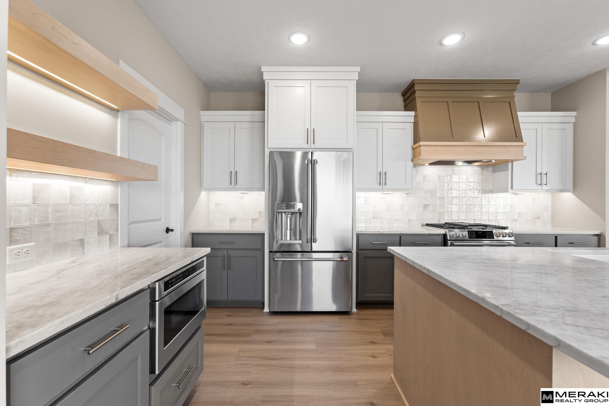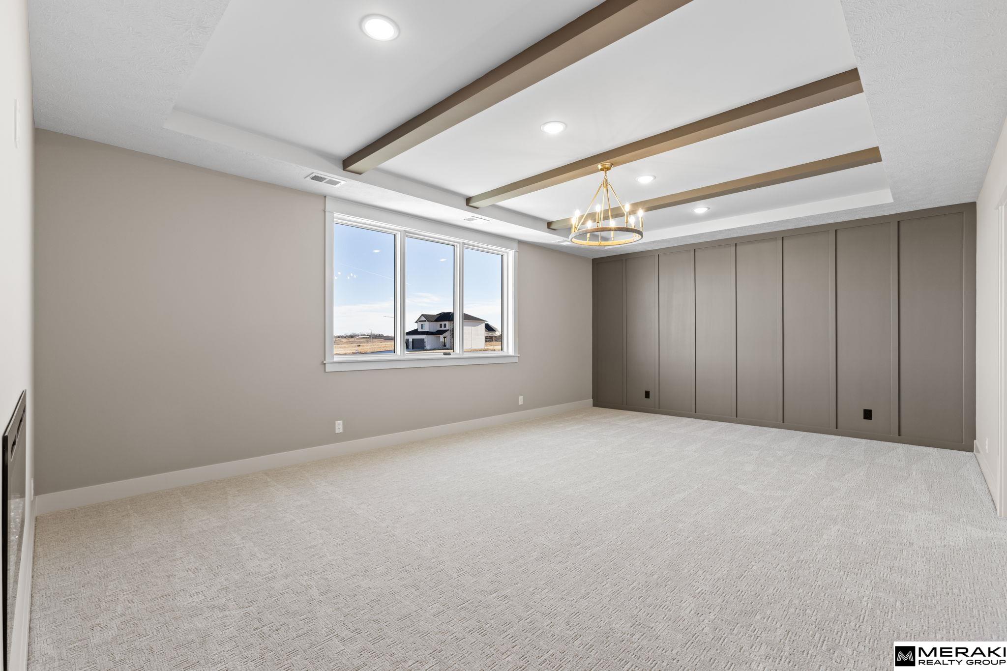 Welcome to this awe-inspiring Waters Edge Mediterranean Chateau from MAXIM HOMES. The impressive entrance w/its wood beams and sunlight flooding in lead you to an entry where you’ll find an office/bed on one side and large powder bath on the other. The Great Room includes wood floors, stunning stone fireplace with one-of-a-kind accents. The expansive kitchen includes an oversized island, GE Cafe appliances, walk-in pantry, dining area and generous drop zone just off the kitchen. 2nd floor has primary suite with stunning views of large lot, oversized bath area with double vanities, makeup area, custom Spa inspired tile walk-in shower w/rain head and tub along with a large 12 x 12 closet and connecting second level laundry. Upper level includes 3 additional bedrooms, 2 baths and walk in closets perfect for any family. The lower level includes a custom wet bar and fireplace, theater room, 5th bedroom and bath. Don't miss this one! 168th south of Bennington Middle. Est Completion 11/01