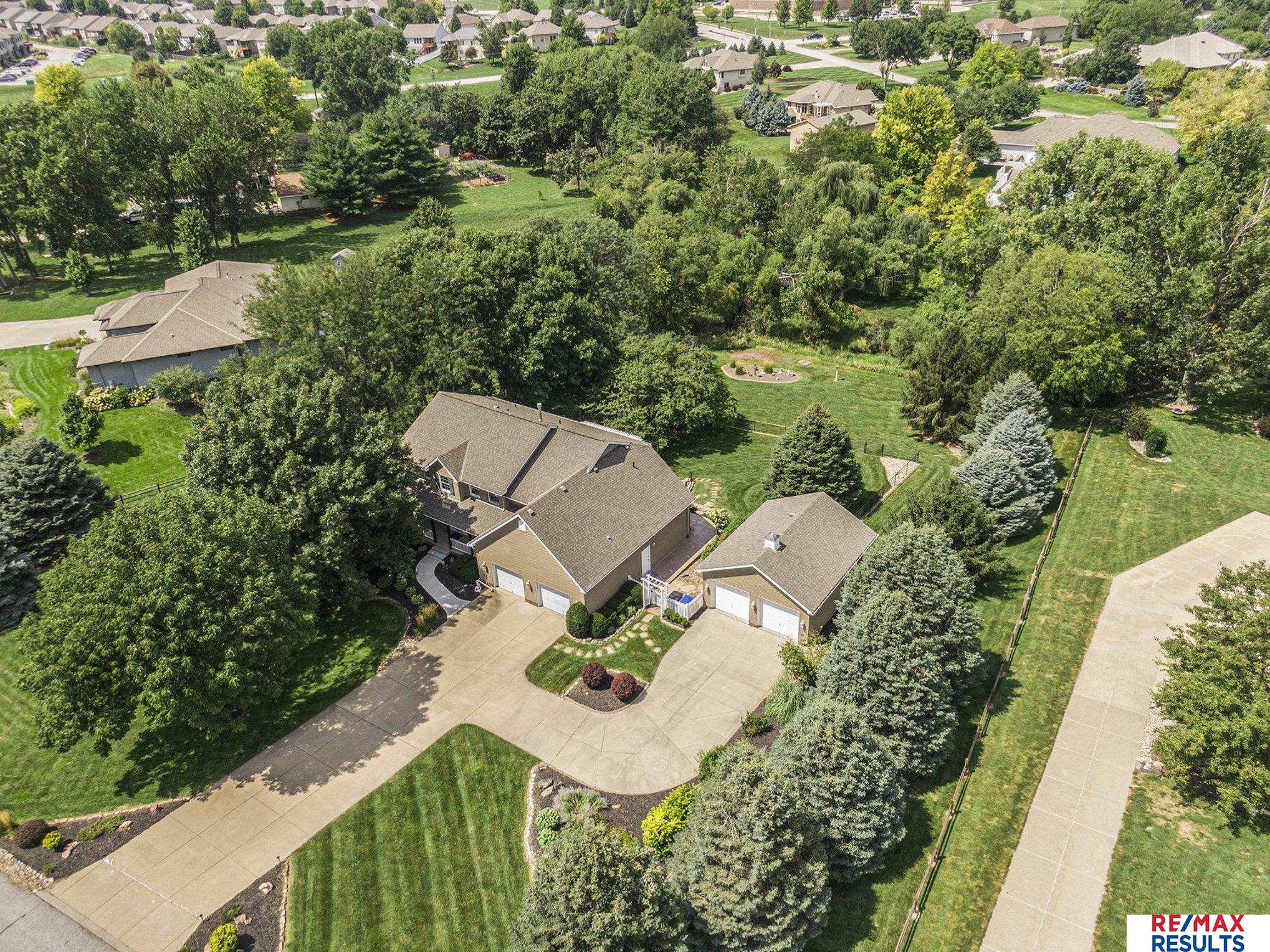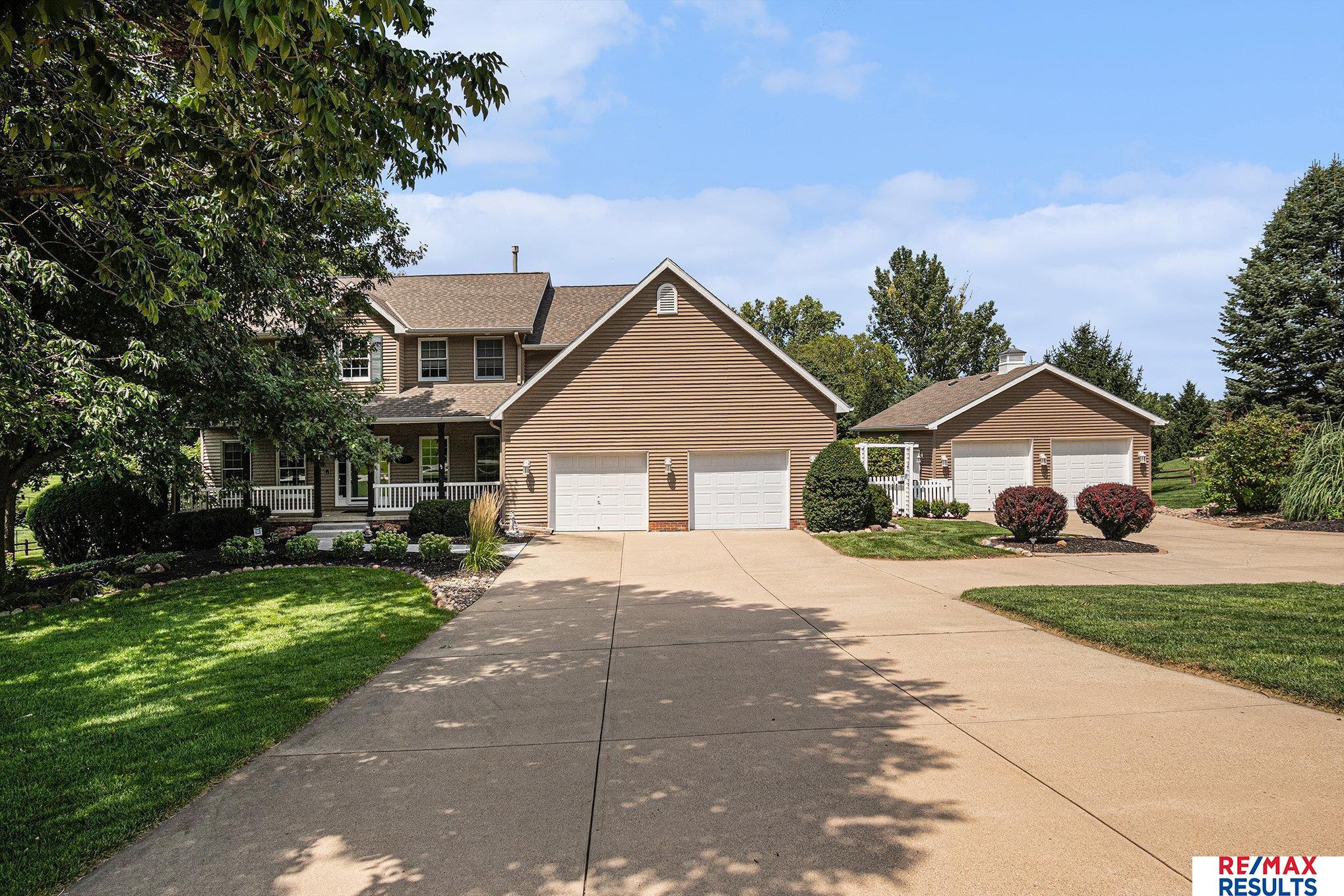 OPEN SAT 10/4 1-3pm! Enjoy the peace & serenity of acreage living in this pre-inspected home nestled on a 1.37 acre lot with all the convenience of the city! The main level features a dedicated office w/ French doors, large kitchen w/ gas range & cozy fireplace, formal dining space & spacious living room complete w/ bright bay windows. Upstairs, the expansive primary suite boasts a sitting area w/ built-ins, tray ceiling, crown molding, & large closet, while the primary bath offers dual sinks, large counter, tile shower, & relaxing corner tub. The walkout basement is an entertainer’s dream w/ family room, media room & wet bar. The built in vacuum & laundry sink make cleaning a breeze. Car enthusiasts & hobbyists who need extra room for toys & tools will appreciate the oversized 2 car garage w/ sink + additional large insulated detached garage. Outside, enjoy the serene creek, composite deck with pergola, brick patio, gas hookup & newer retaining wall.