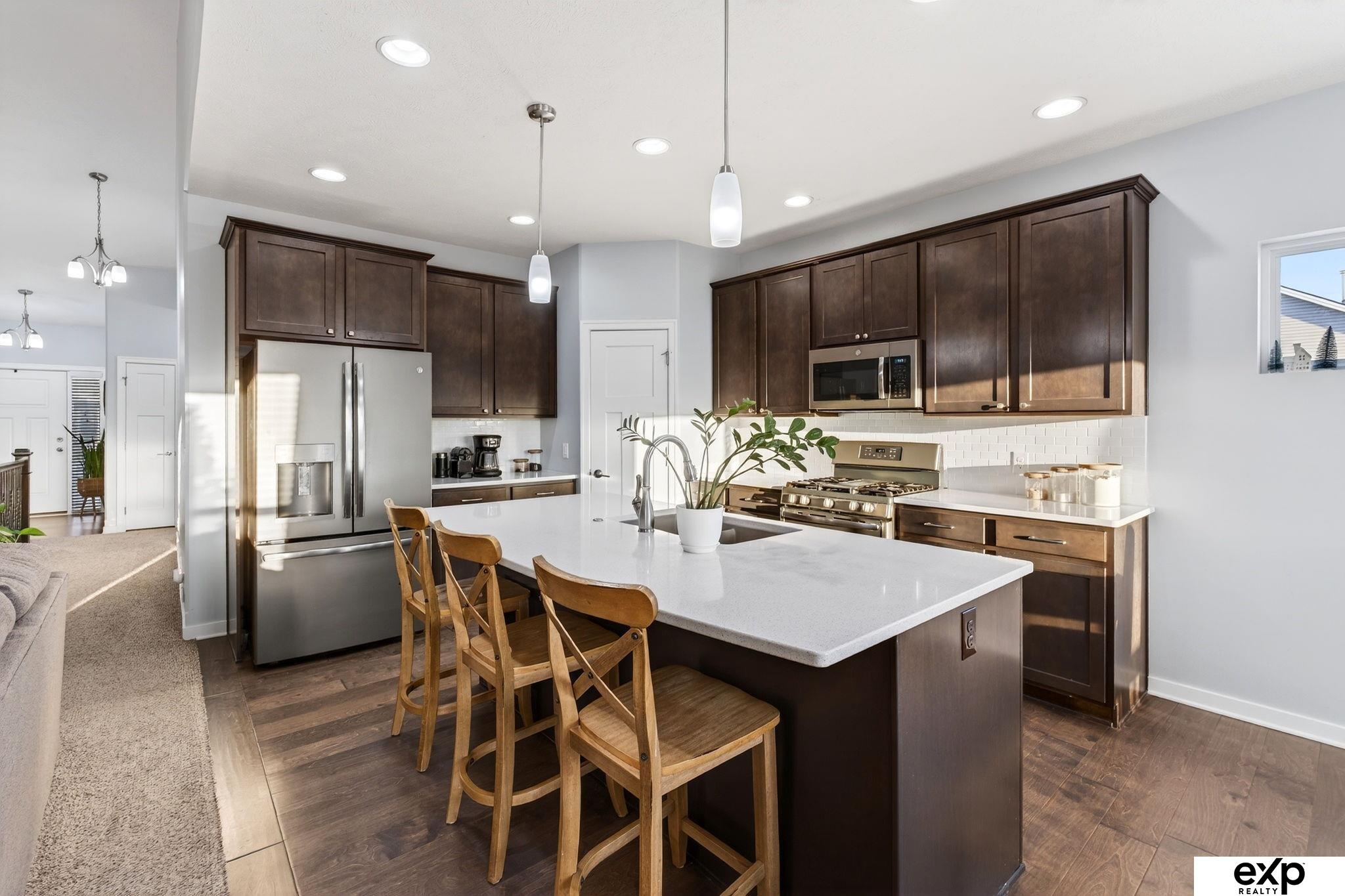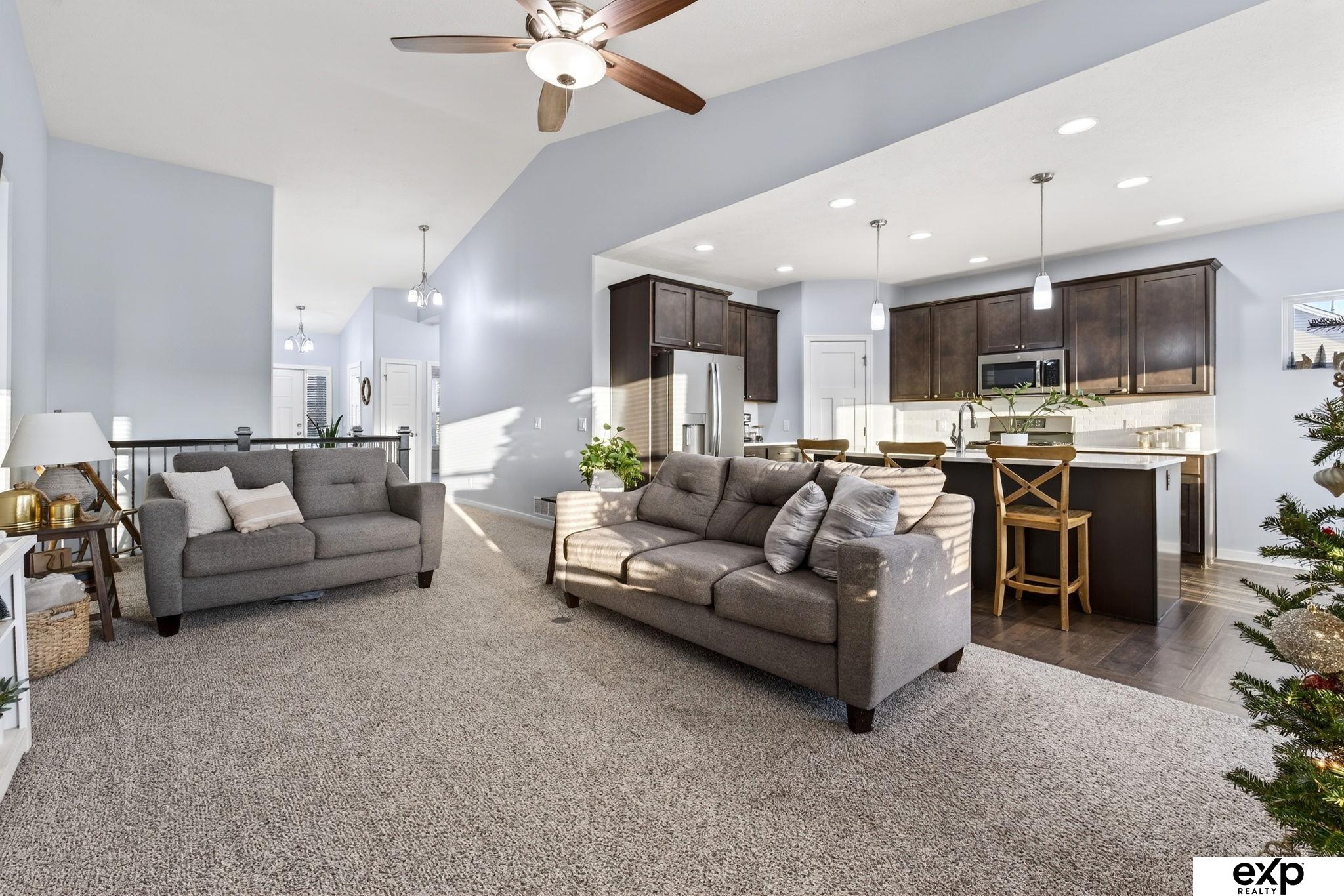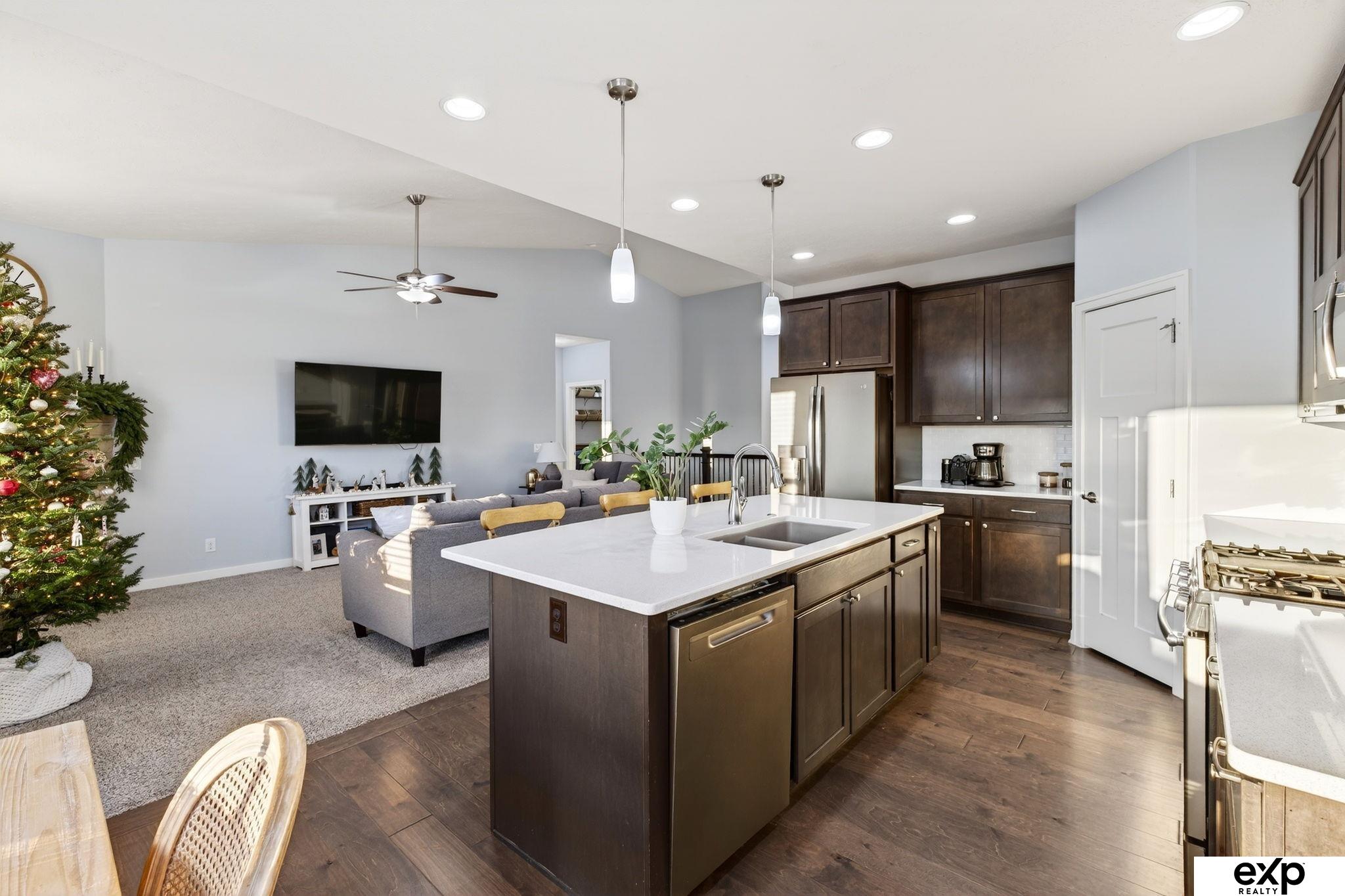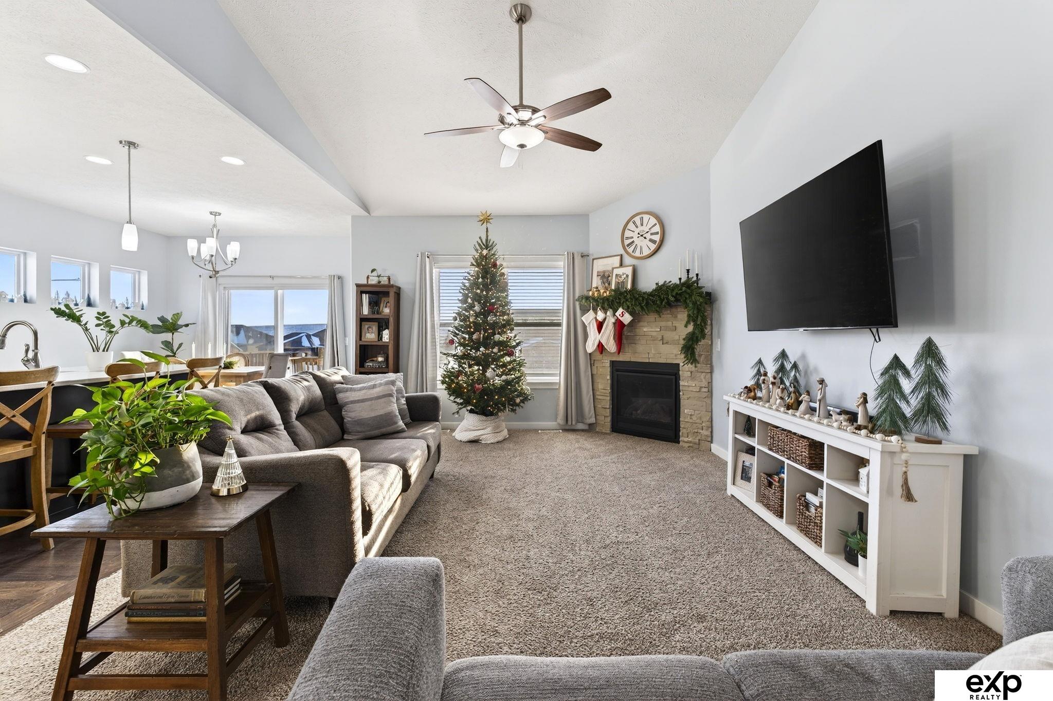 Welcome home to this stunning 3 bed plus a flex room ranch in the popular Pebblebrooke subdivision of Gretna! This home offers the perfect blend of modern style and comfortable living. An open-concept main level featuring a living room with vaulted ceilings, cozy fireplace - plus a kitchen full of extra cabinets, extended island with quartz counters, slate appliances including a gas range. The primary suite features a walk-in closet and double sinks, plus a full bath and two additional bedrooms rounding out main-level. The finished walkout basement is an entertainer’s dream with a wet bar, large rec room, and dedicated home gym space that can easily be converted to a 4th bedroom. Outside you’ll enjoy the spacious backyard with a patio and deck with fantastic views! A 3-car garage offers plenty of room for vehicles and extra storage. This move-in ready home is waiting for you and is already pre-inspected!