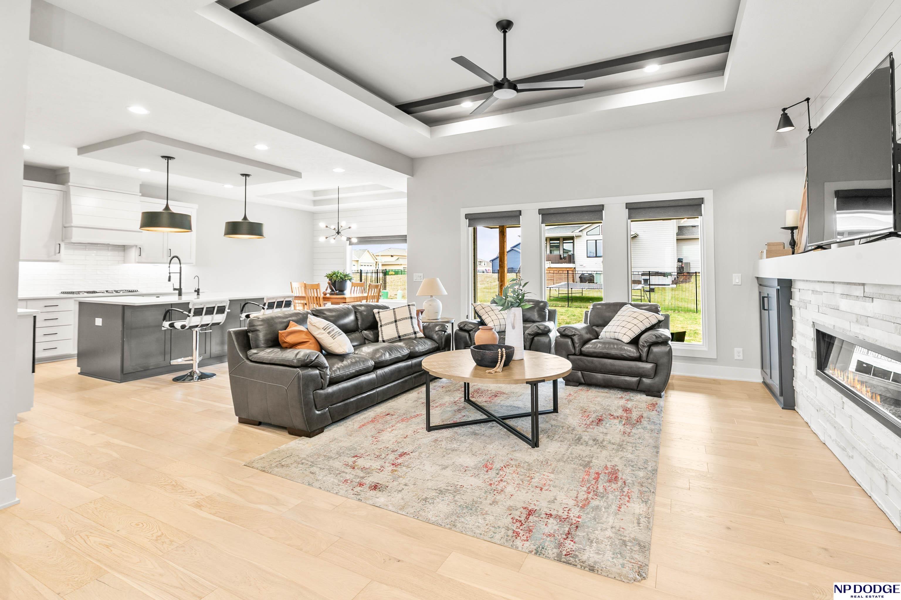 You’ve found your new home! This stunning home built by Showcase Homes has been meticulously maintained and thoughtfully upgraded throughout. The main floor features beautiful LVP flooring that flows seamlessly through the living area and kitchen. Enjoy an abundance of counter space, ample cabinetry, and a spacious pantry—perfect for everyday living and entertaining. The home is filled with natural light and enhanced by stylish, upgraded light fixtures that truly make it shine. The primary suite is a retreat of its own, boasting a luxurious bathroom and a walk-in closet with direct access to the laundry area for added convenience. The finished basement offers even more living space with a cozy fireplace, wet bar, full refrigerator, and two additional bedrooms, including one with direct bathroom access. You’ll also find plenty of storage throughout. Step outside to a large patio overlooking the fenced backyard—ideal for relaxing or hosting guests. This home is truly a showstopper! AMA