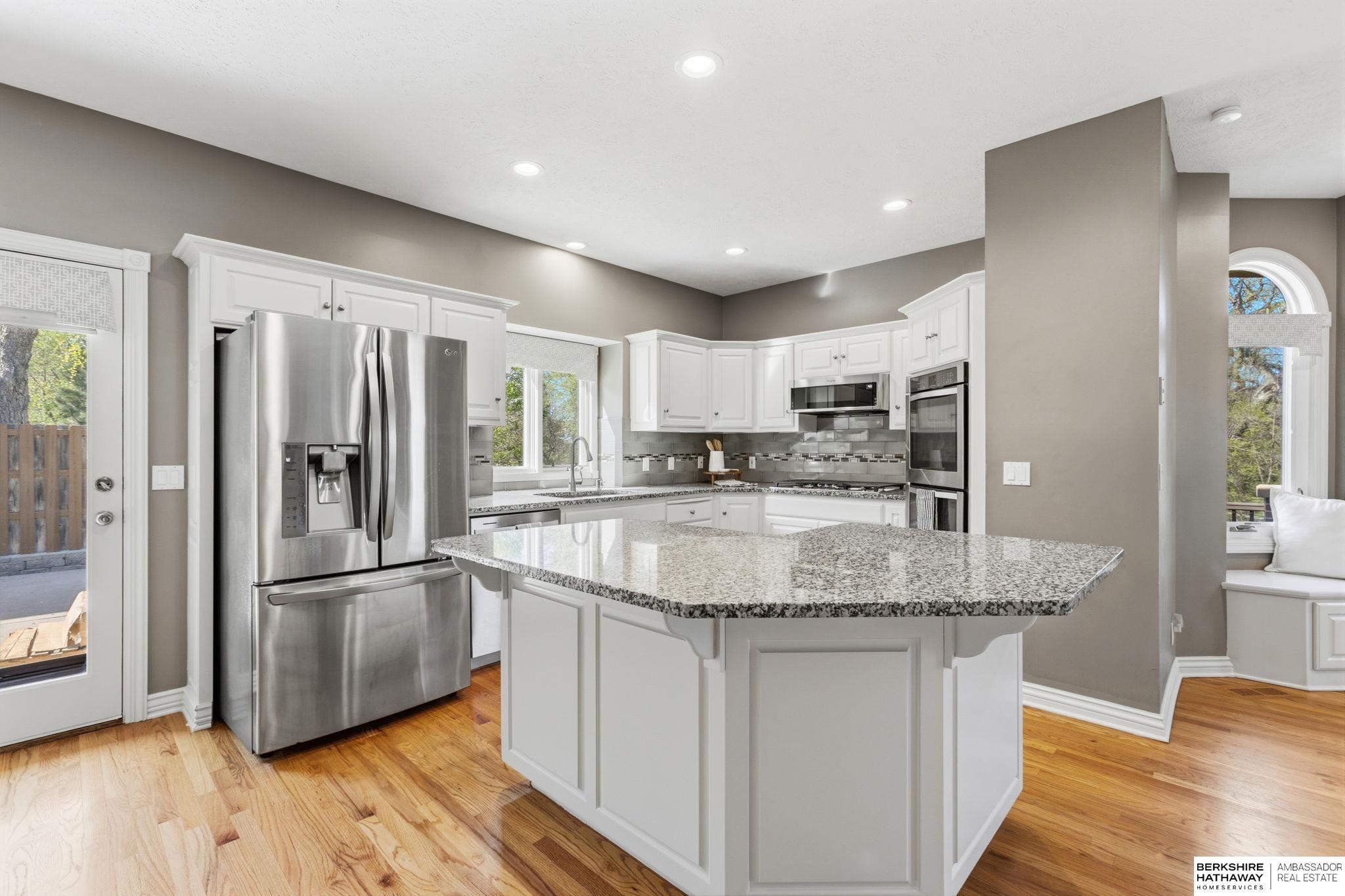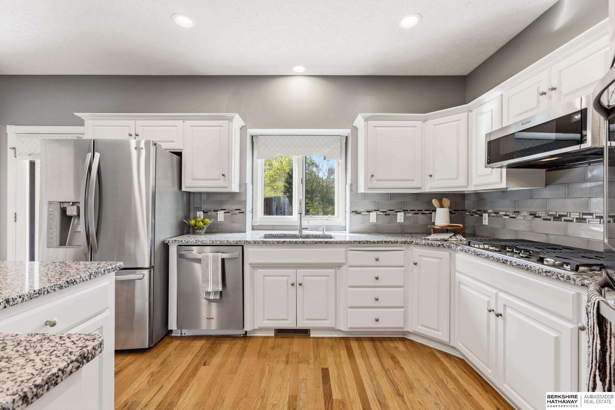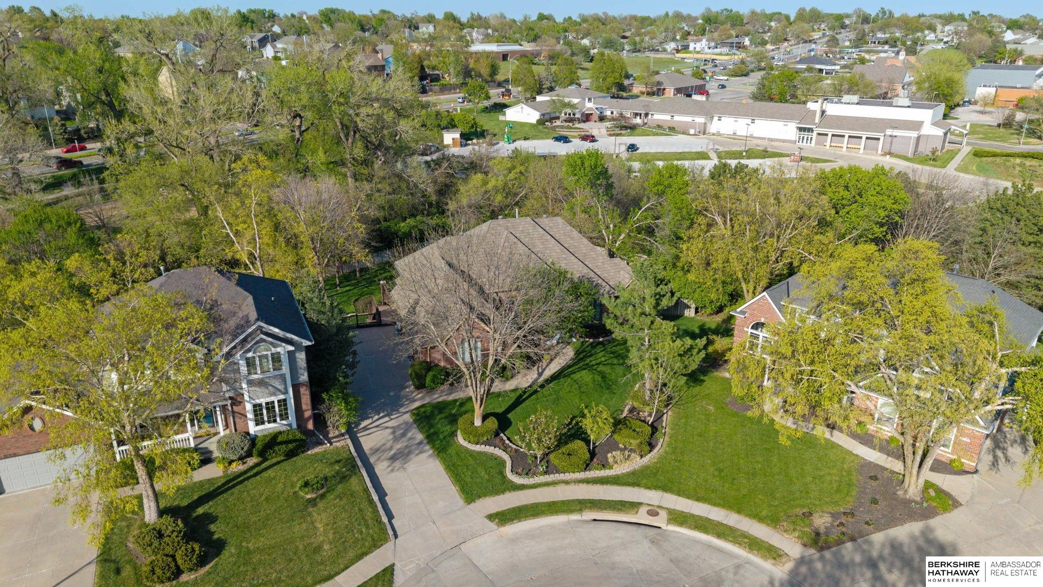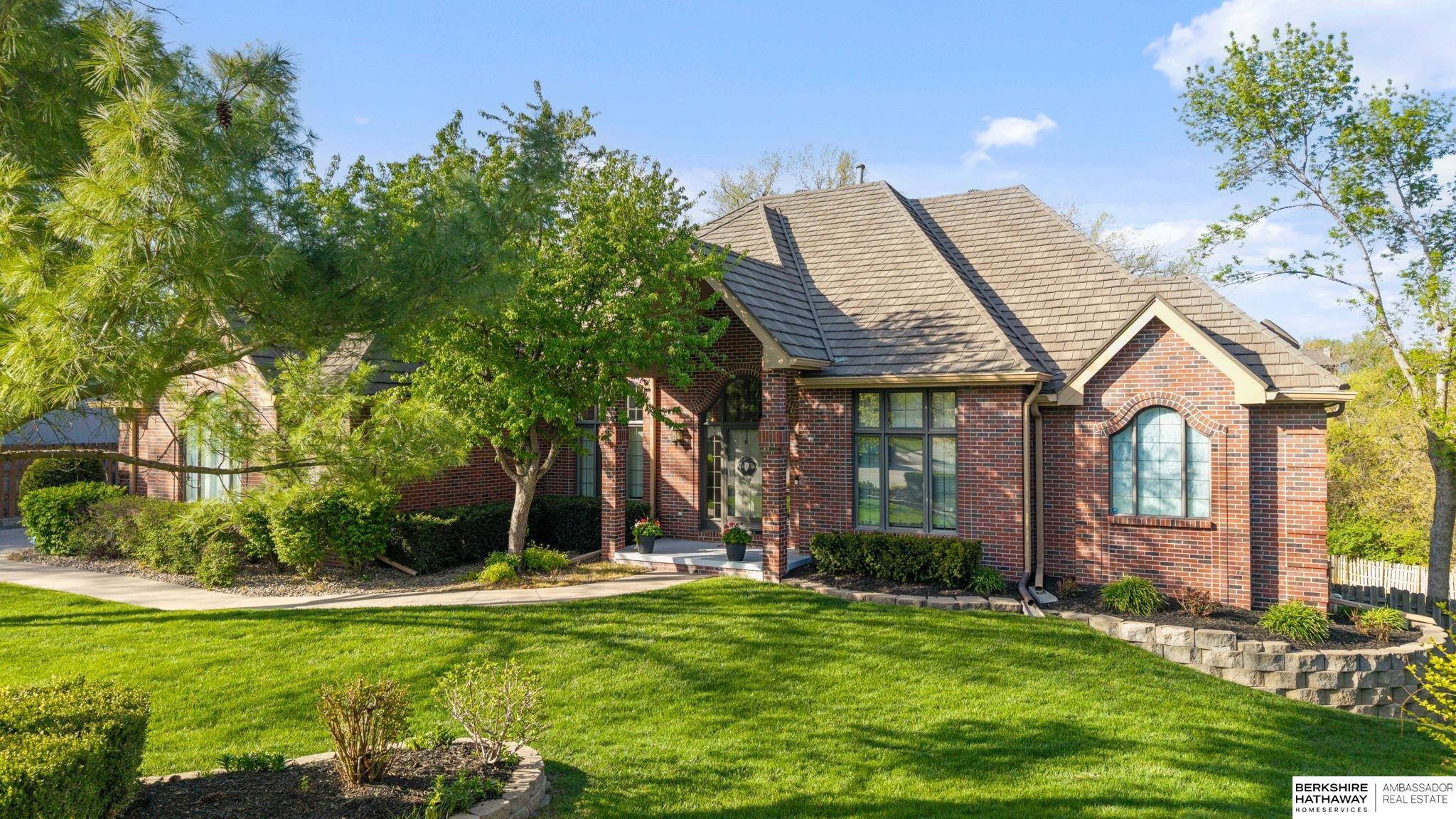PREINSPECTED Rare 1.5-story home on over ½ acre backing to trees for privacy. Located on a large, flat cul-de-sac lot—ideal for a future pool, sport court, or outdoor living. Unique floor plan offers great space for multi-generational living and is ready for your personal updates and vision. All-brick front with spacious layout. Second floor features 2 bedrooms with Jack-and-Jill bath. Finished basement includes additional bedrooms—making this a 5-bedroom home with potential for a non-conforming 6th, flex room, or workshop—plus a large rec room and nearly complete kitchen/wet bar. Improvements include exterior paint, deck, and stone-coated Decra Shake XD roof. Kitchen has granite countertops, backsplash, gas stove, and double ovens. Enjoy a large composite deck overlooking trees. Walking distance to Russell Middle School, YMCA, and Millard West High School. Great opportunity to add sweat equity and make this your dream home in a highly desirable area.