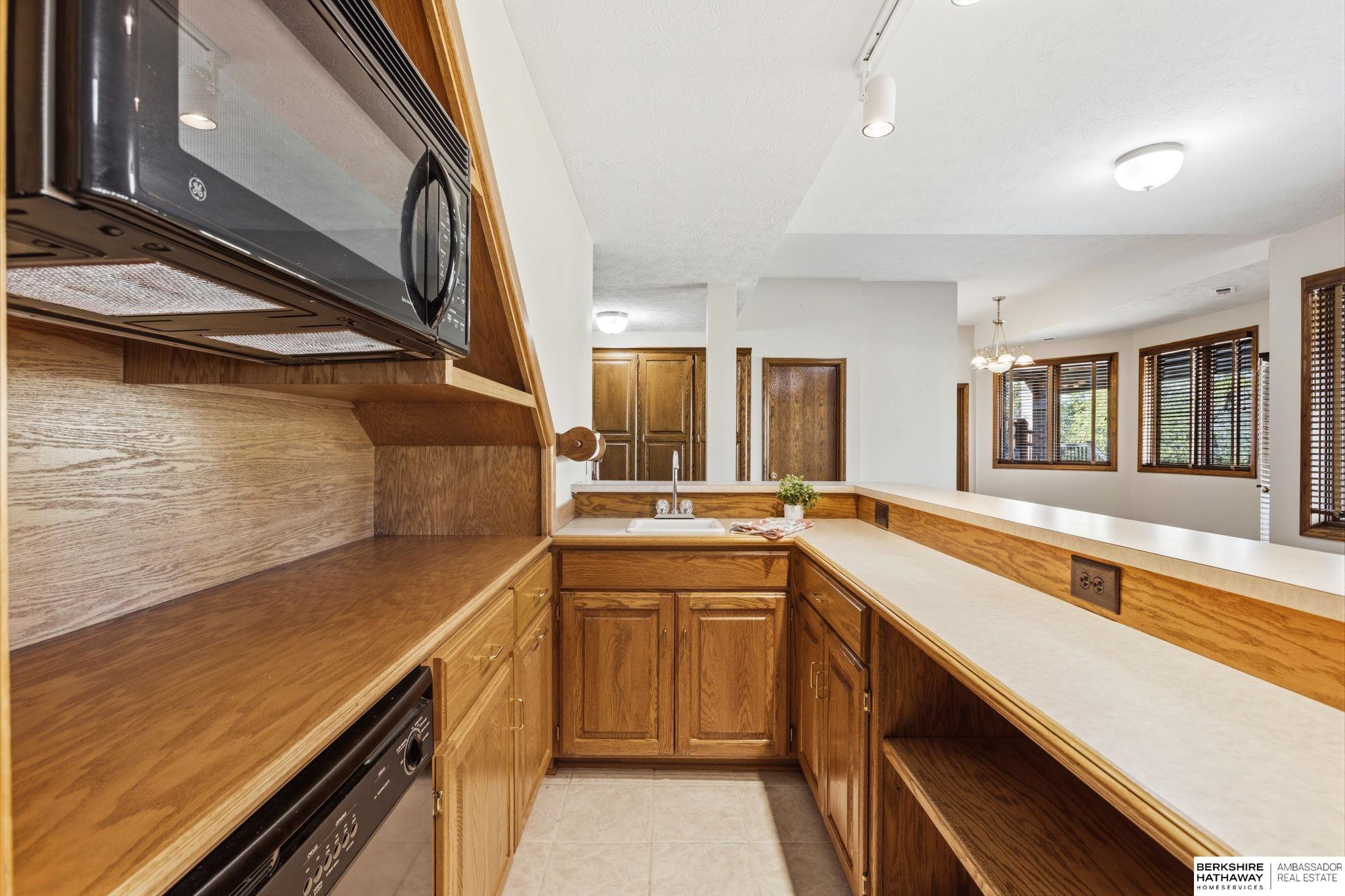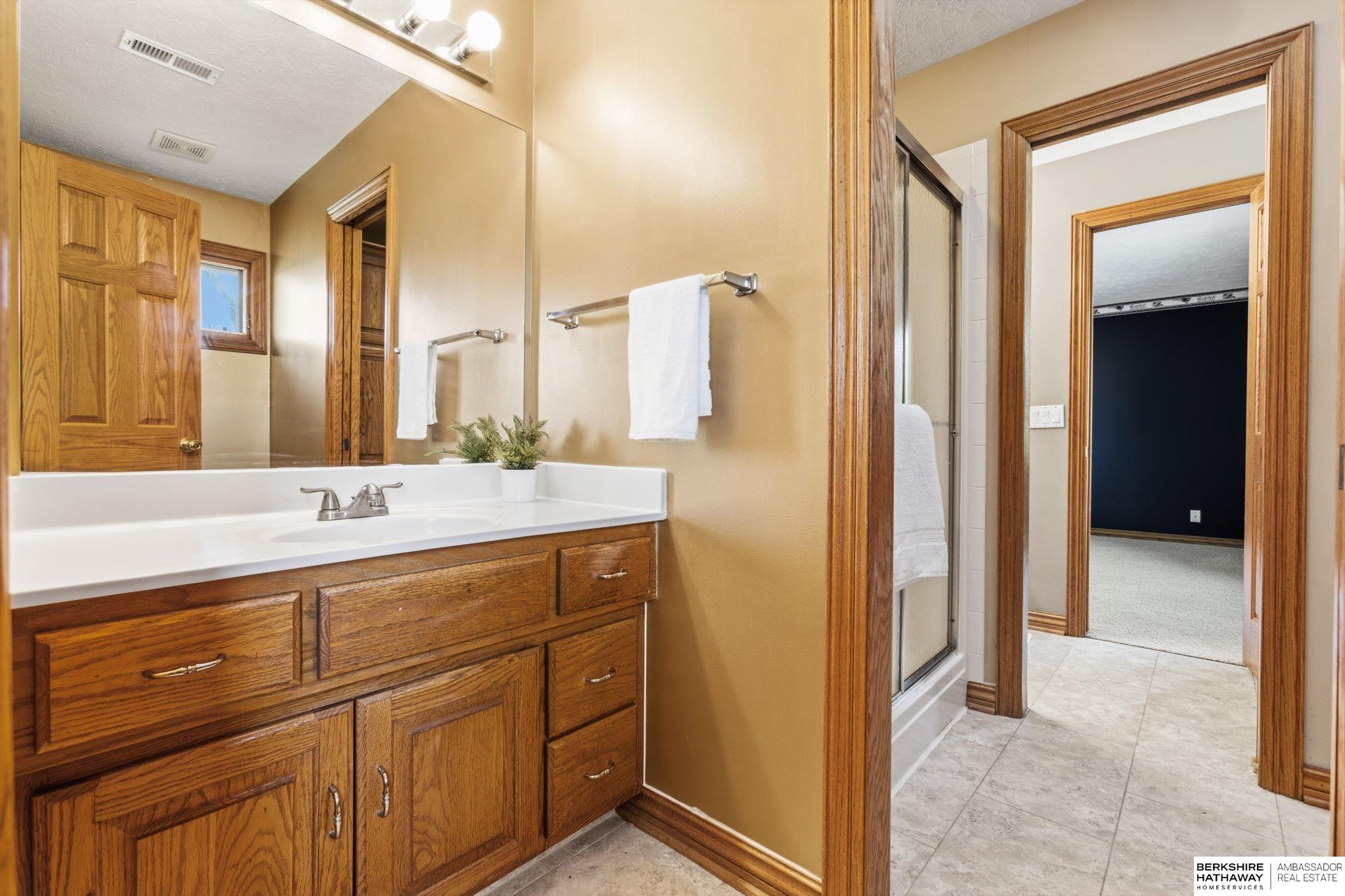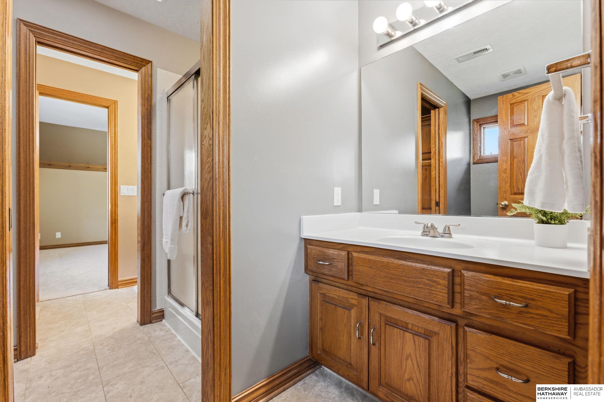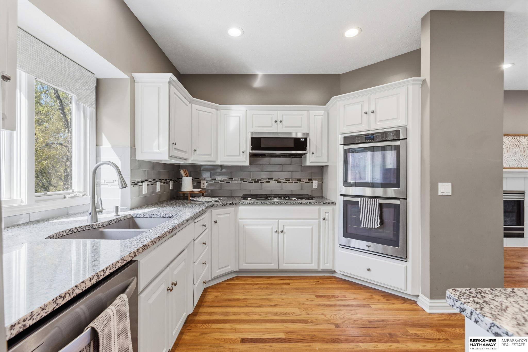PREINSPECTED Rare 1.5-story home on over ½ acre backing to trees for privacy. Located on a large, flat cul-de-sac lot—ideal for a future pool, sport court, or outdoor living. Unique floor plan offers great space for multi-generational living and is ready for your personal updates and vision. All-brick front with spacious layout. Second floor features 2 bedrooms with Jack-and-Jill bath. Finished basement includes additional bedrooms—making this a 5-bedroom home with potential for a non-conforming 6th, flex room, or workshop—plus a large rec room and nearly complete kitchen/wet bar. Improvements include exterior paint, deck, and stone-coated Decra Shake XD roof. Kitchen has granite countertops, backsplash, gas stove, and double ovens. Enjoy a large composite deck overlooking trees. Walking distance to Russell Middle School, YMCA, and Millard West High School. Great opportunity to add sweat equity and make this your dream home in a highly desirable area.
