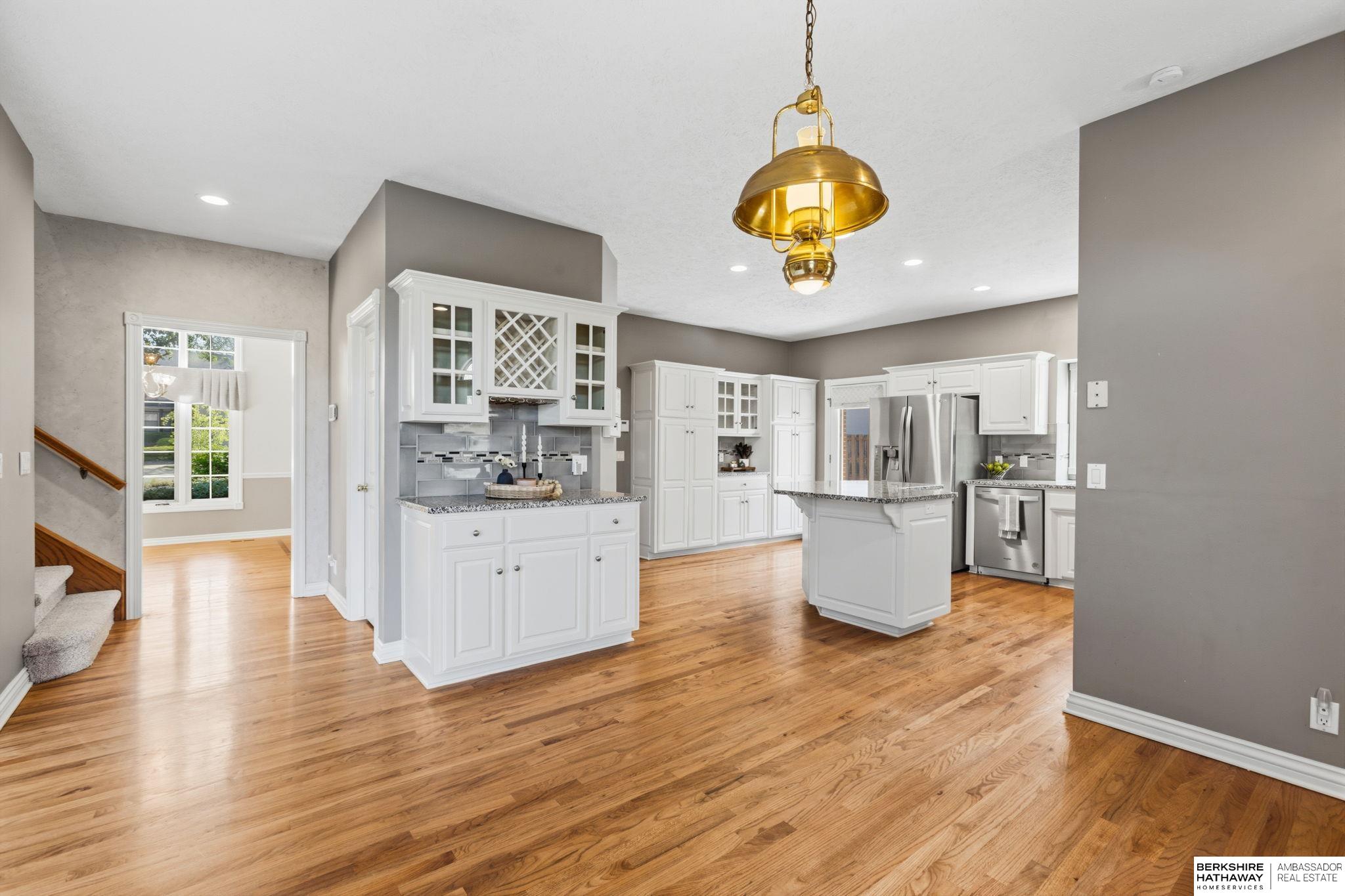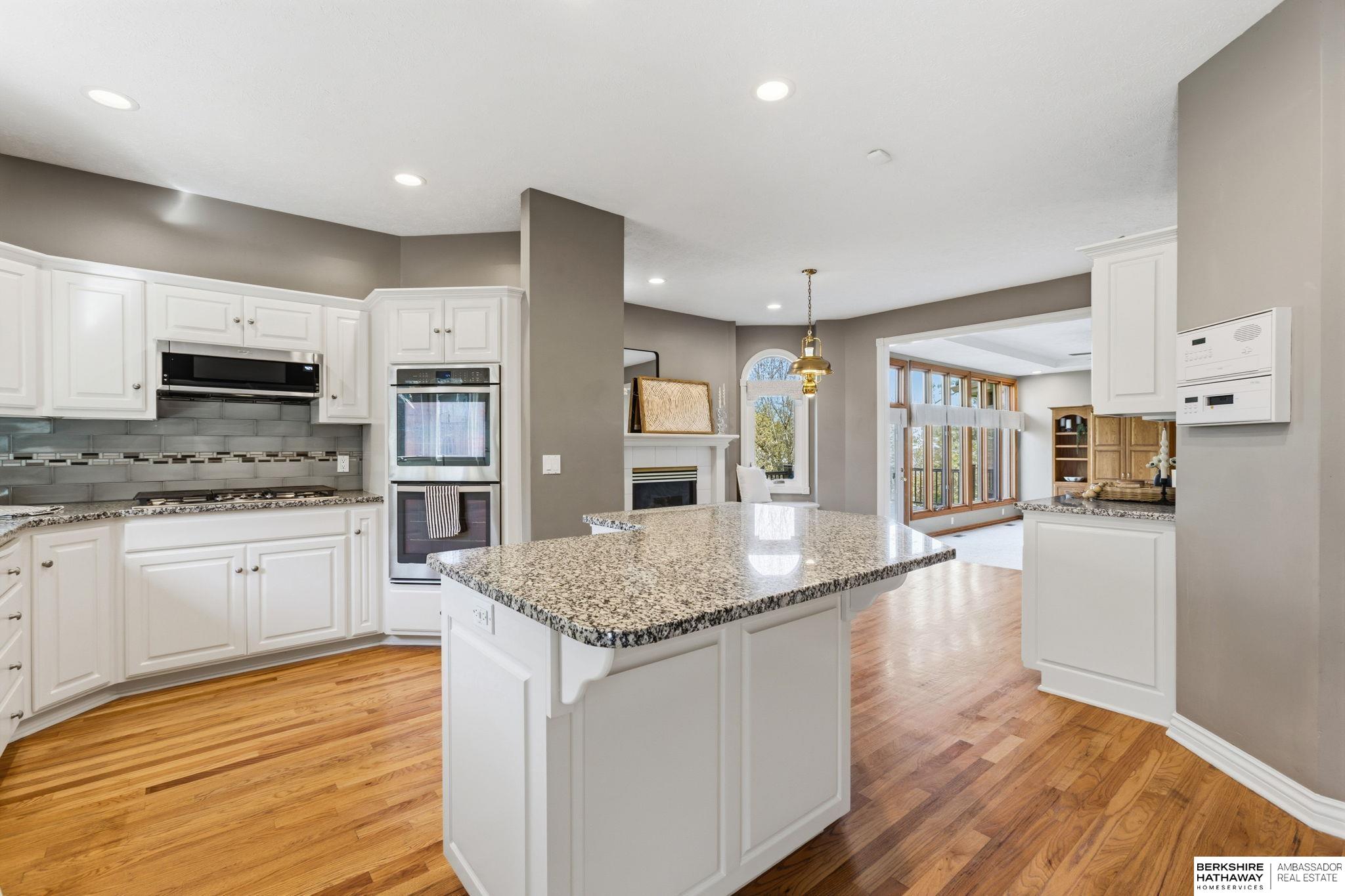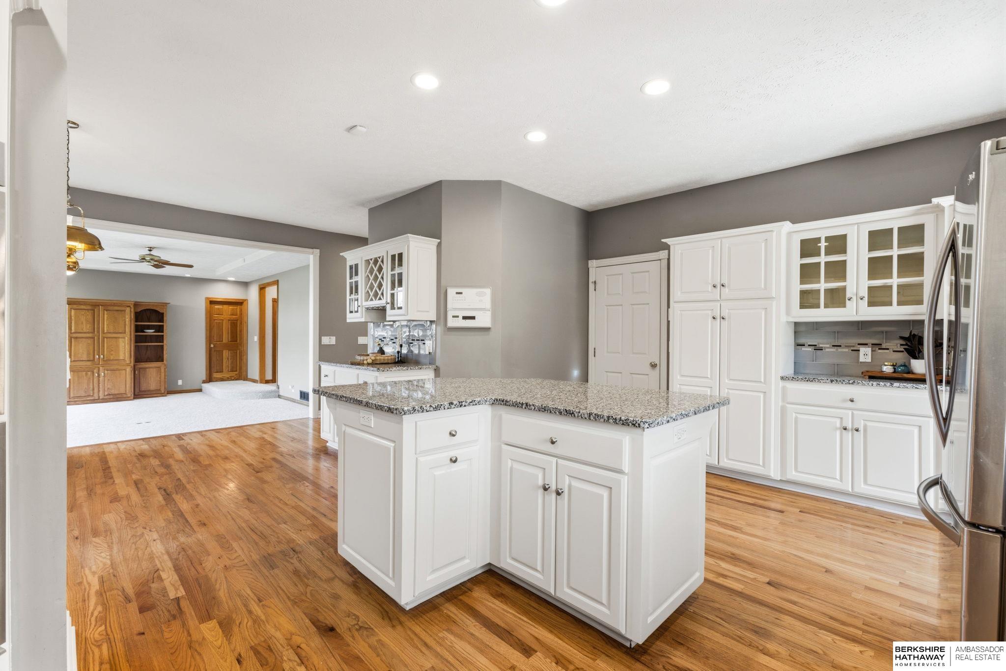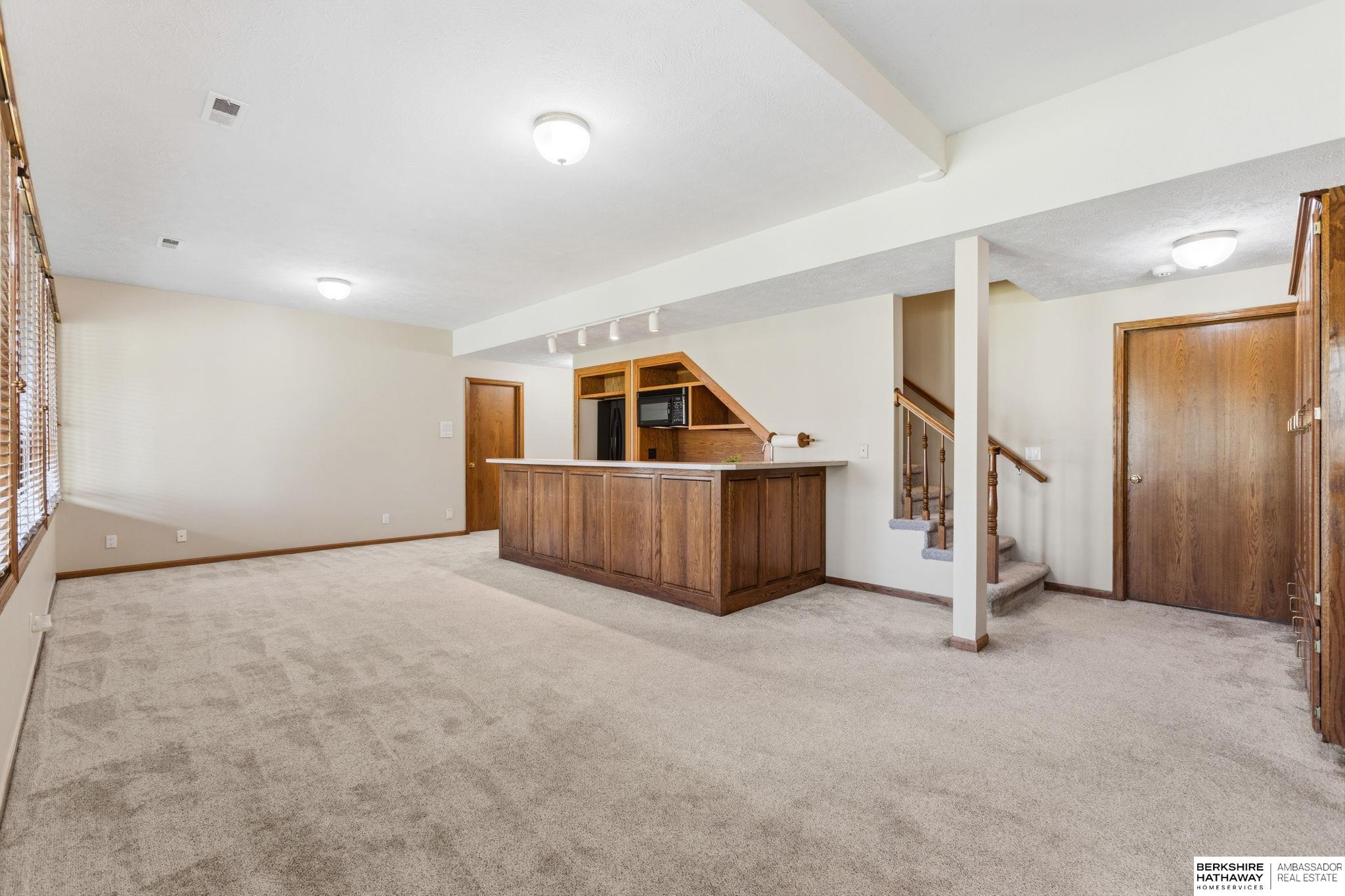 PREINSPECTED Rare 1.5-story home on over ½ acre backing to trees for privacy. Located on a large, flat cul-de-sac lot—ideal for a future pool, sport court, or outdoor living. Unique floor plan offers great space for multi-generational living and is ready for your personal updates and vision. All-brick front with spacious layout. Second floor features 2 bedrooms with Jack-and-Jill bath. Finished basement includes additional bedrooms—making this a 5-bedroom home with potential for a non-conforming 6th, flex room, or workshop—plus a large rec room and nearly complete kitchen/wet bar. Improvements include exterior paint, deck, and stone-coated Decra Shake XD roof. Kitchen has granite countertops, backsplash, gas stove, and double ovens. Enjoy a large composite deck overlooking trees. Walking distance to Russell Middle School, YMCA, and Millard West High School. Great opportunity to add sweat equity and make this your dream home in a highly desirable area.