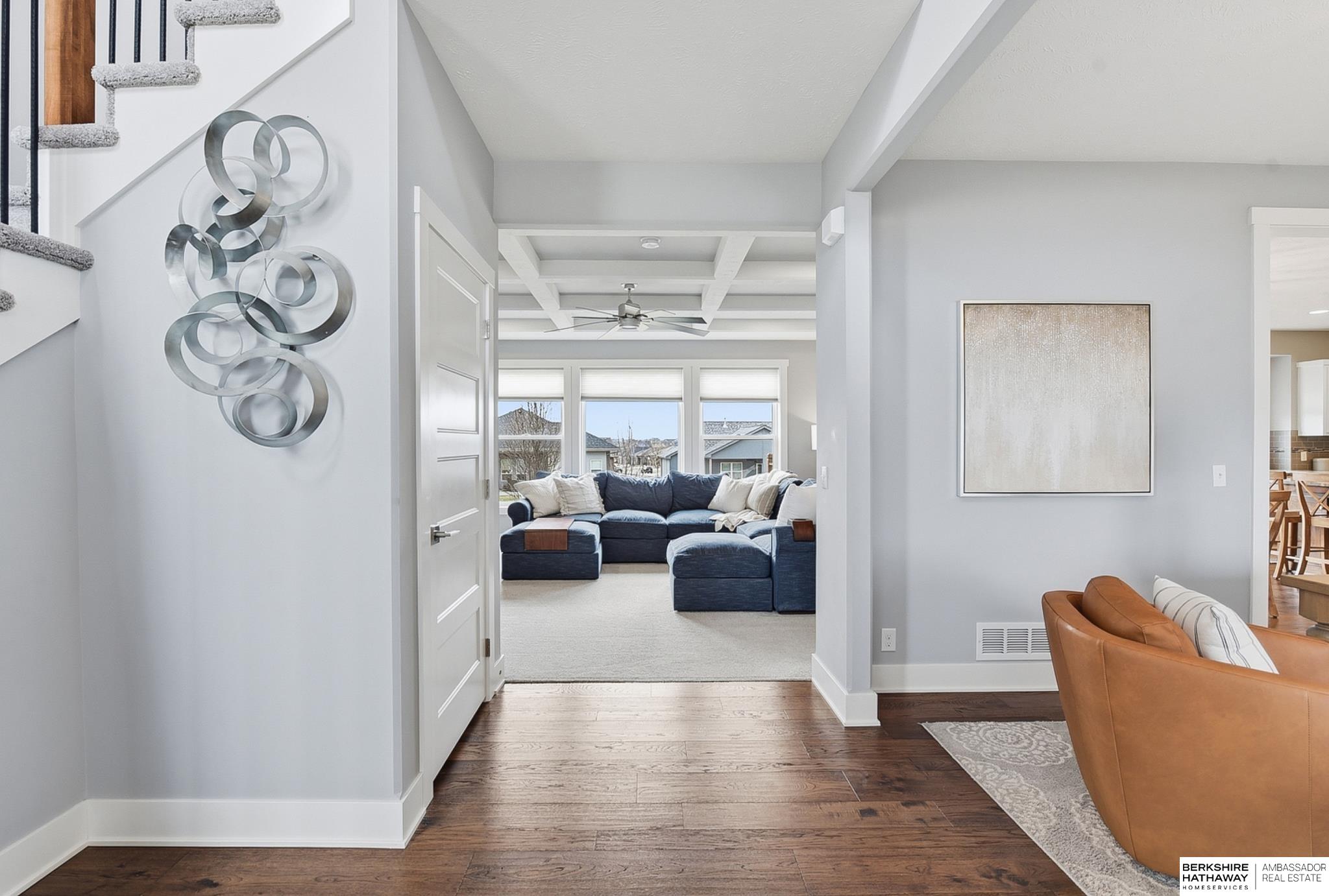 This is the kind of neighborhood kids dream about growing up in, and adults want to make their forever home. This is life in Stratford Park! Custom 2019 built Heavican Homes 2 story with 5 beds/4 baths, spacious 3 car garage. You're greeted on the main floor by a dramatic 2 story entry with beautiful engineered hardwood floors. Kitchen is a cook's dream with huge quartz center island with seating, abundance of custom cabinetry, and walk in pantry. Informal dining space flows to the living room with a real wood burning fireplace and built-ins on the sides. Flexible formal dining room or office, 1/2 bath, and spacious drop zone complete the main floor. Primary suite features a tiled walk in shower, designated makeup station, and large walk in closet. Finished basement with 5th bed, 3/4 bath, rec room, storm shelter, and ample storage. Large flat backyard and flat driveway with basketball hoop. Walking distance to Stratford Elementary, Bennington South Middle, and the neighborhood pool!