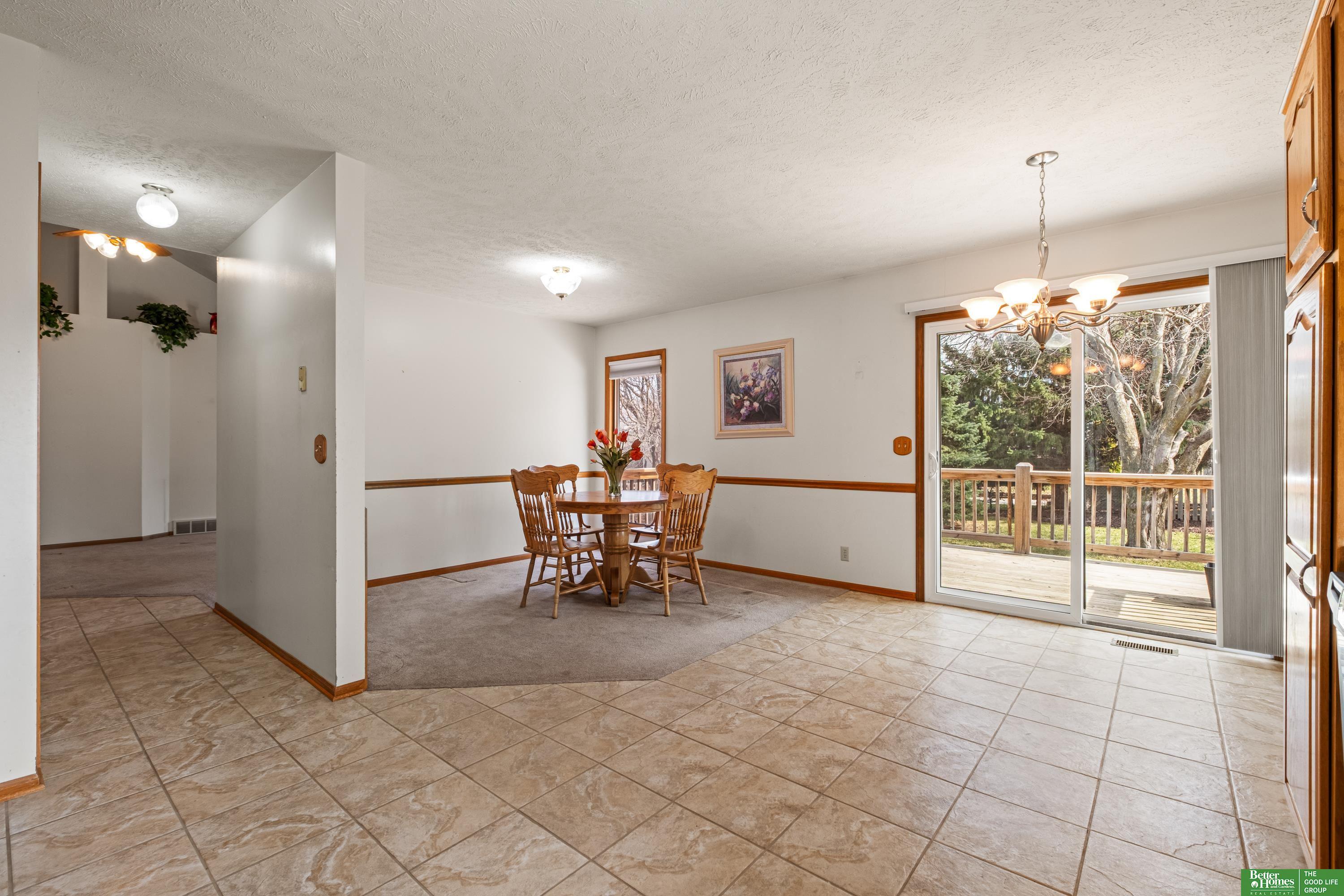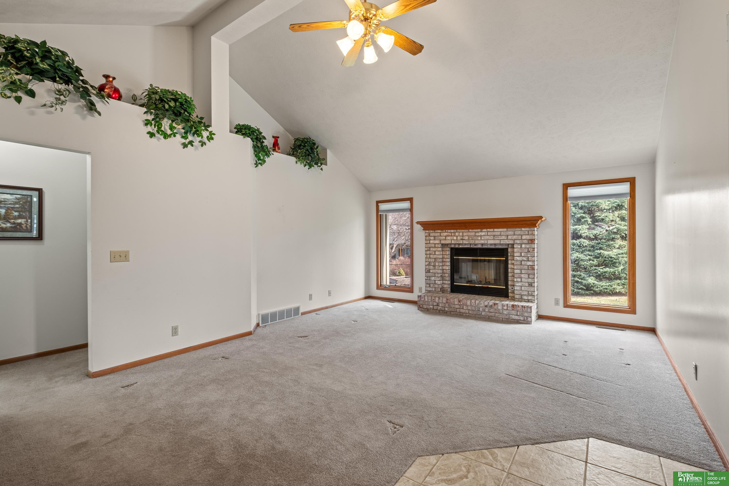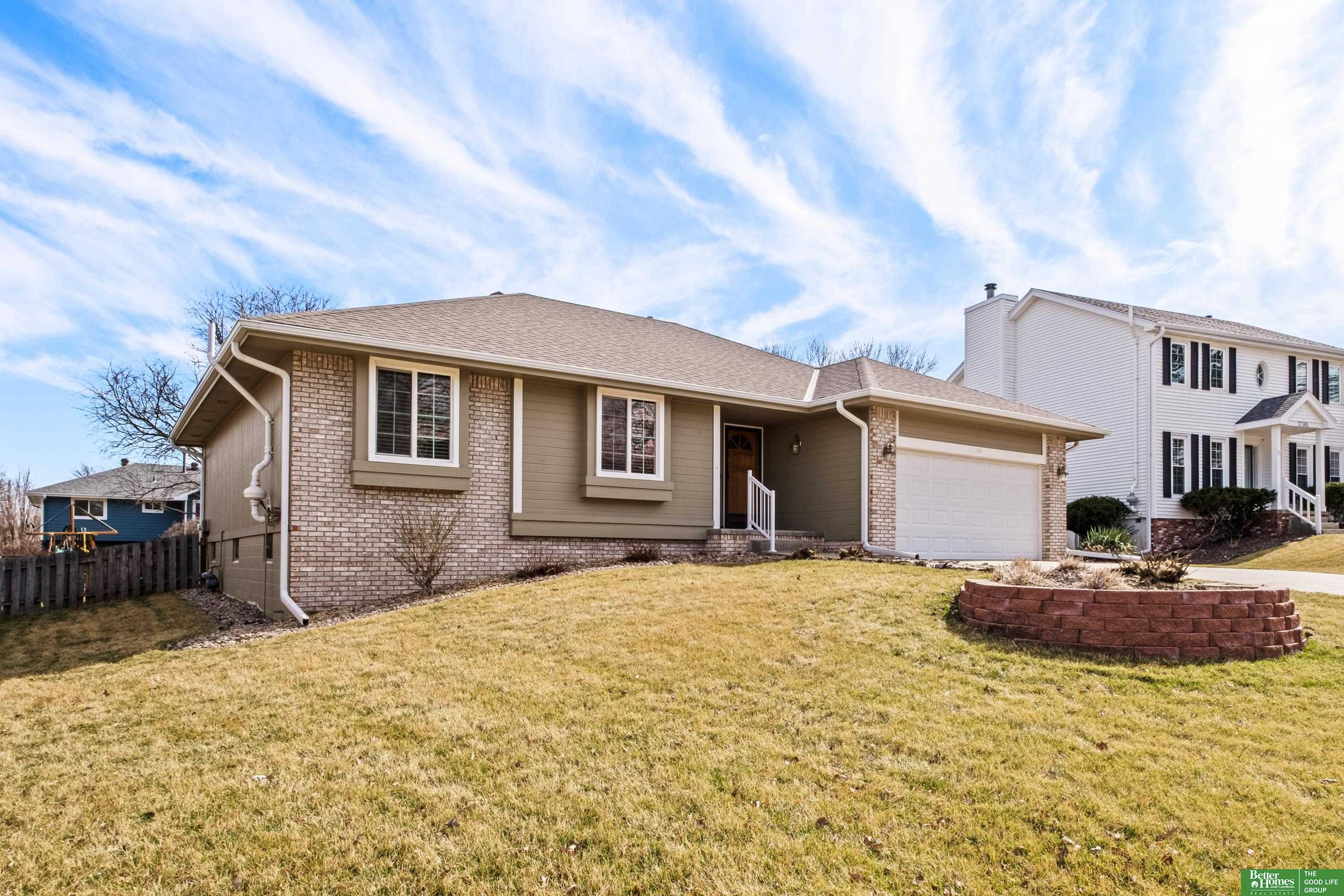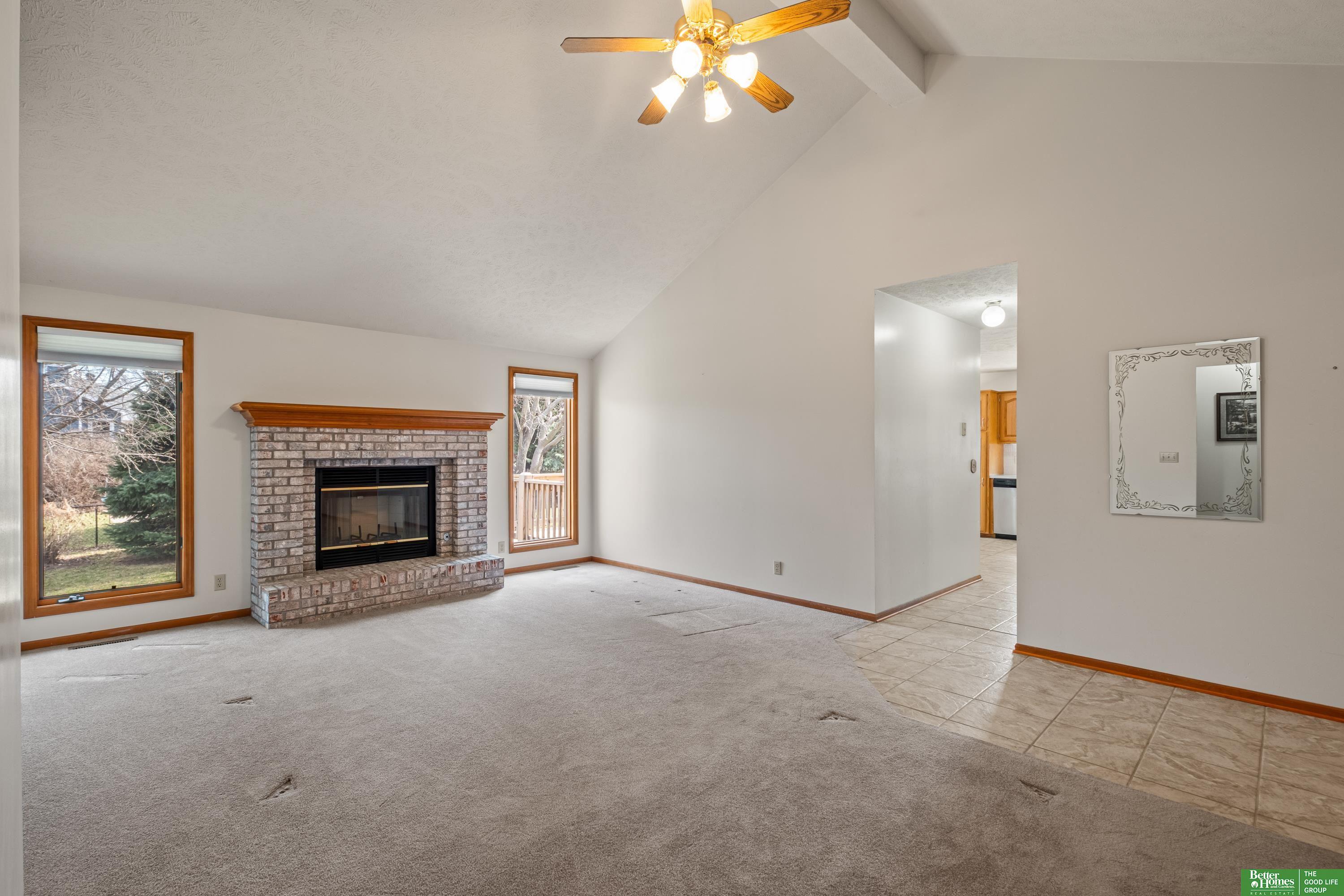 Discover this one-owner, well maintained ranch home in the desirable Lake Shore neighborhood, just a short stroll from scenic Lake Zorinsky Park and located in the sought-after Millard School District. The inviting open floor plan features a spacious living room with vaulted ceilings, a cozy gas fireplace, and large windows providing abundant natural light. The eat-in kitchen is all original, offering great potential for updates and customization. The primary suite includes a walk-in closet and private 3/4 bath, while two additional main-floor bedrooms share a full bath. The unfinished basement is ready to be finished with a bathroom rough-in already in place. Enjoy outdoor living on the oversized deck overlooking the fully fenced backyard. Taxes are currently exempt. AMA.
