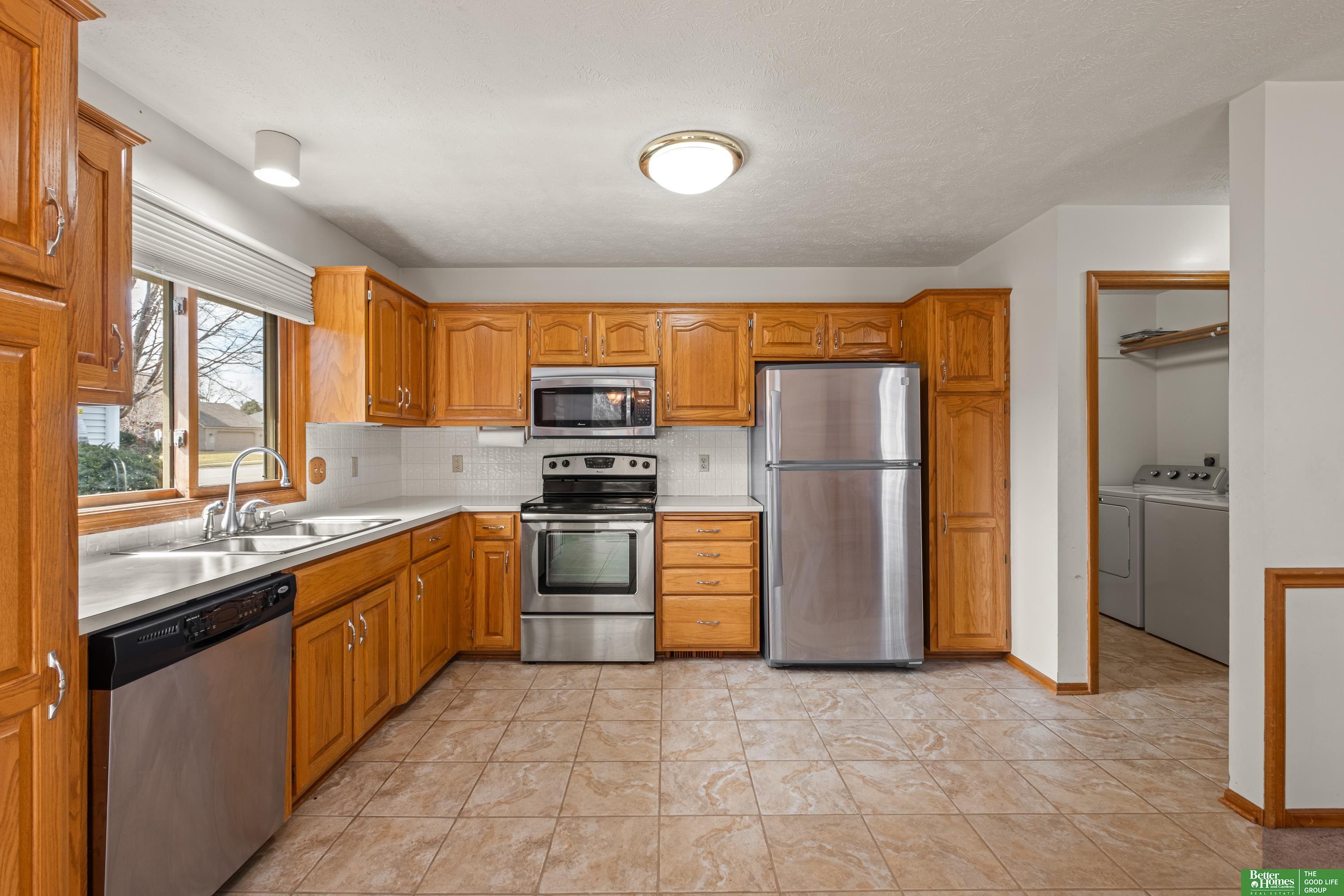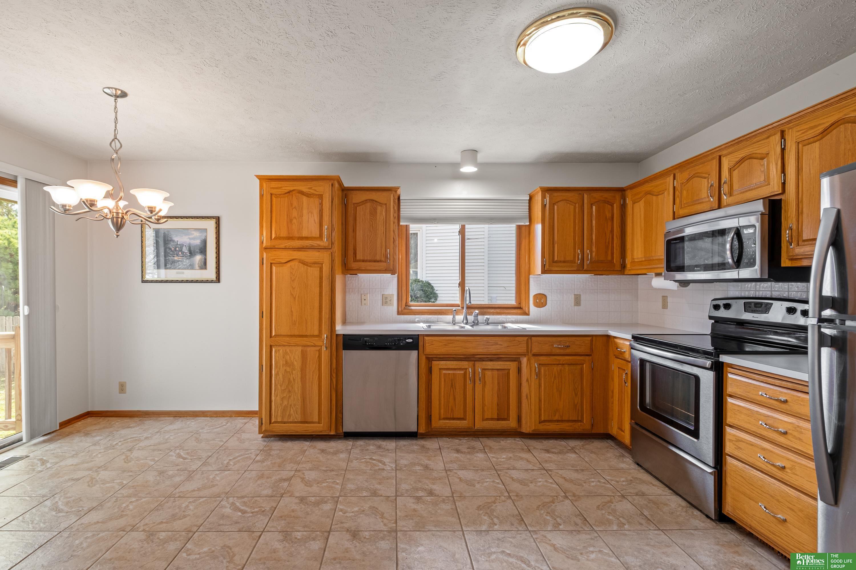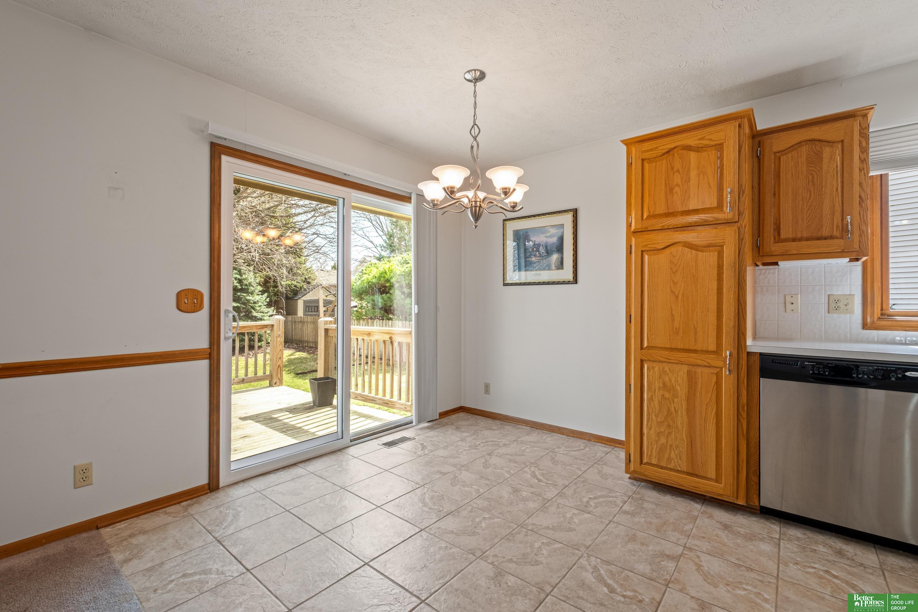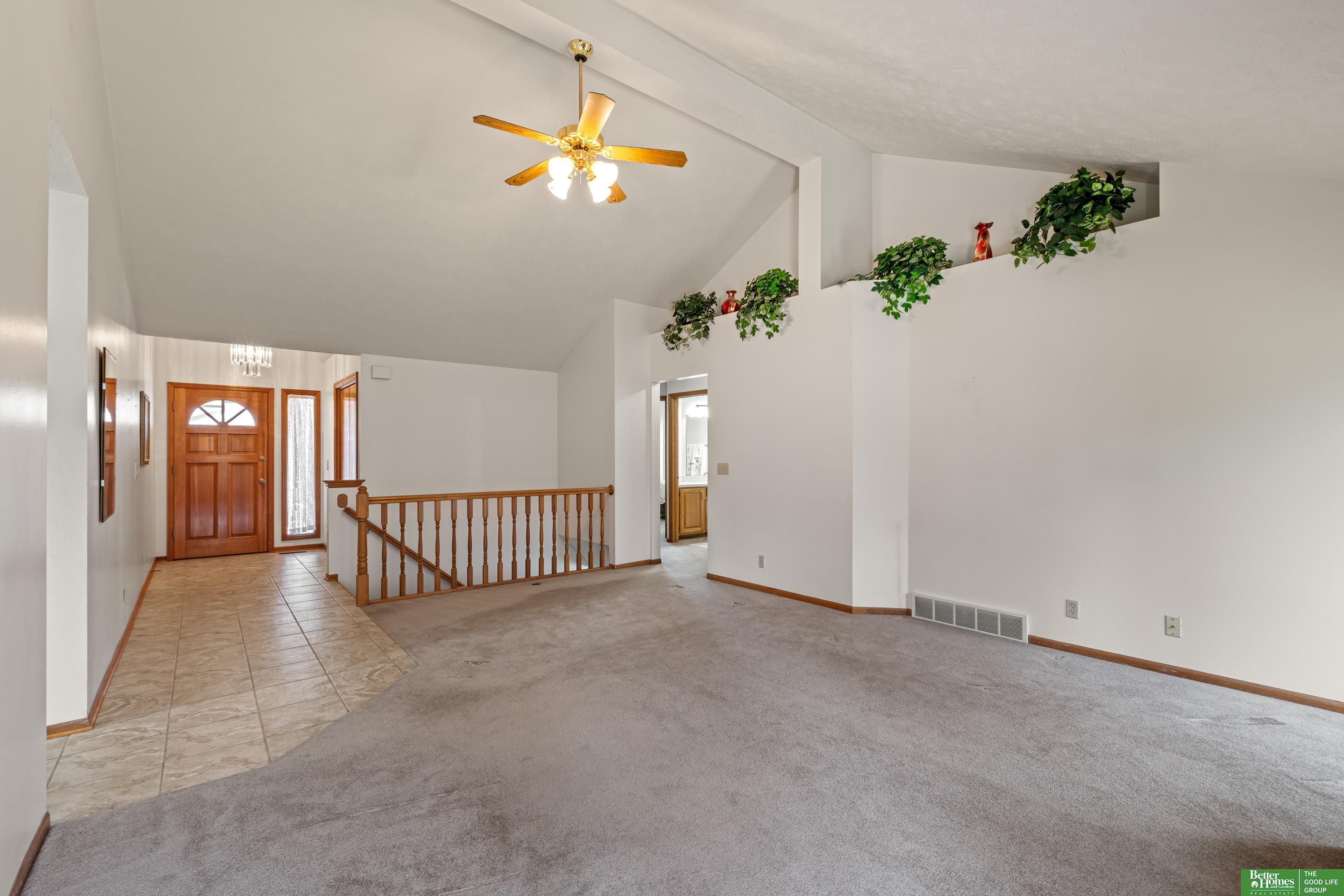 Discover this one-owner, well maintained ranch home in the desirable Lake Shore neighborhood, just a short stroll from scenic Lake Zorinsky Park and located in the sought-after Millard School District. The inviting open floor plan features a spacious living room with vaulted ceilings, a cozy gas fireplace, and large windows providing abundant natural light. The eat-in kitchen is all original, offering great potential for updates and customization. The primary suite includes a walk-in closet and private 3/4 bath, while two additional main-floor bedrooms share a full bath. The unfinished basement is ready to be finished with a bathroom rough-in already in place. Enjoy outdoor living on the oversized deck overlooking the fully fenced backyard. Taxes are currently exempt. AMA.