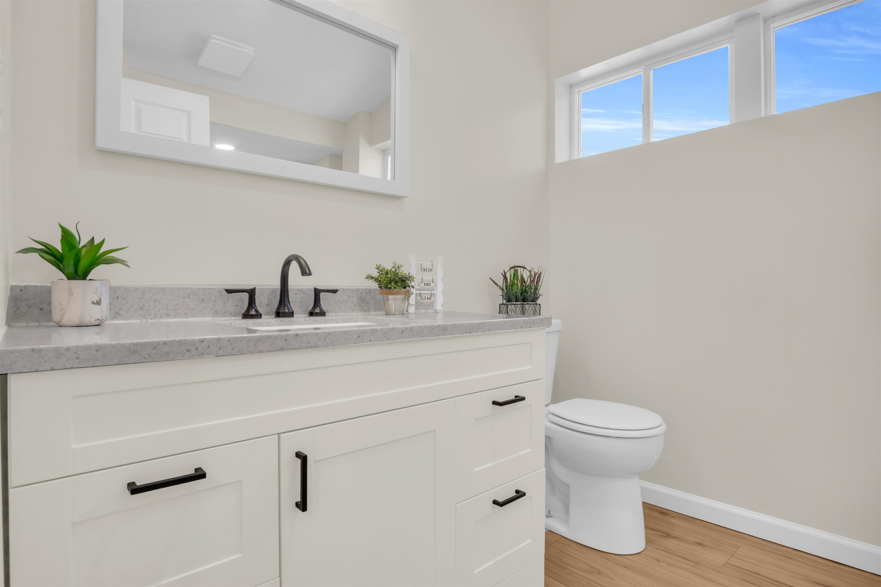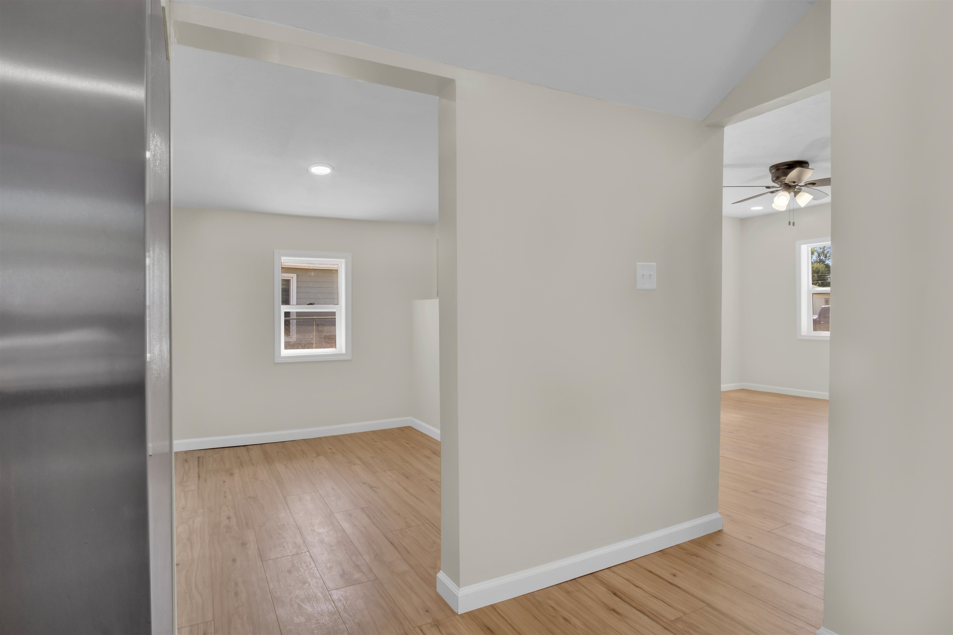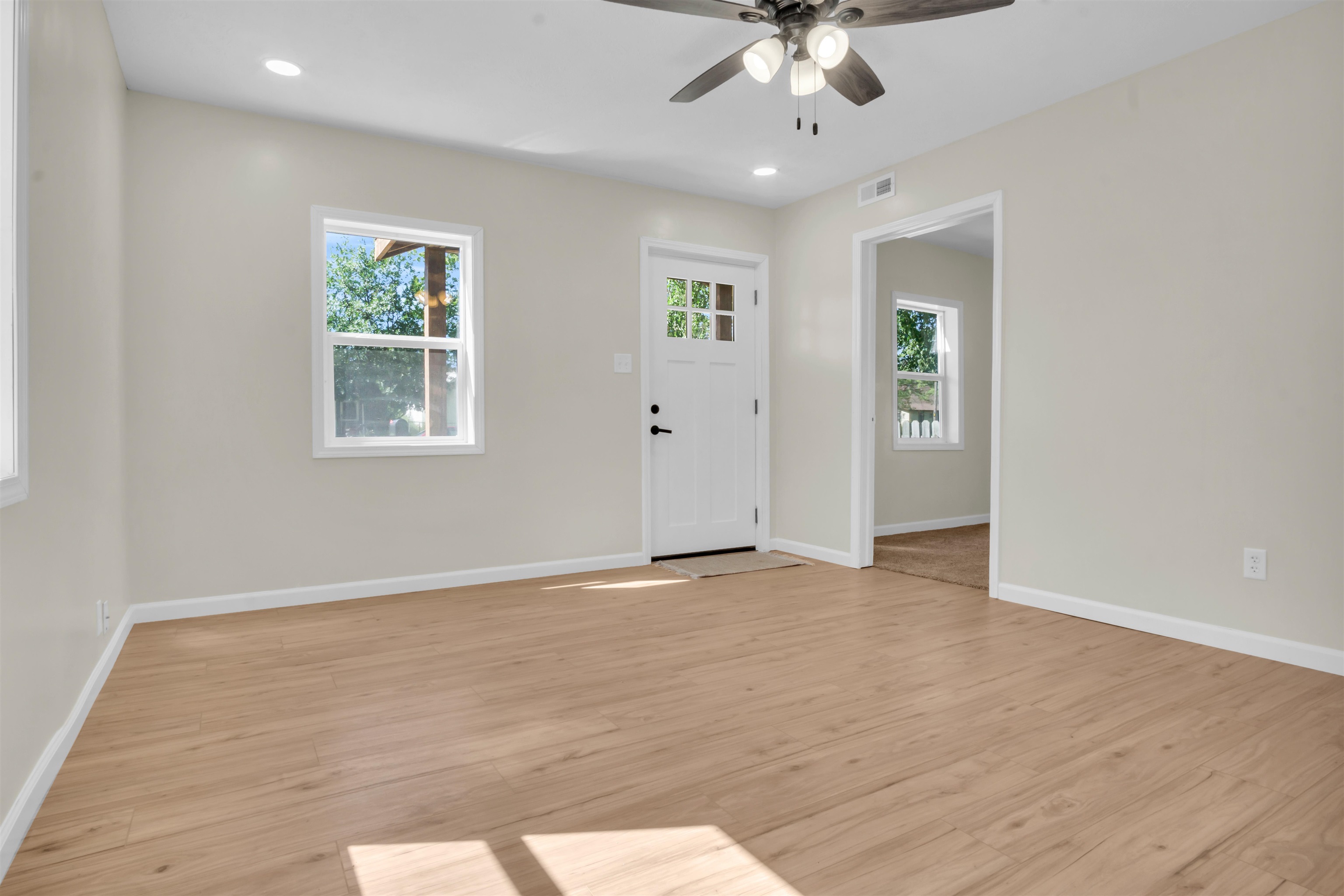 You will be captivated by the front porch and door color of this beautifully renovated home, which has been meticulously updated to ensure it is move-in ready for prospective buyers. This home boasts two bedrooms and two bathrooms, along with a brand new detached two-car garage. A spacious laundry and pantry room complements a stunning kitchen featuring ample counter space. The interior is adorned with all-new luxury vinyl plank (LVP) flooring, modern light fixtures, and updated plumbing. The exterior has also undergone significant enhancements, including new siding, gutters, downspouts, select windows, and a newly paved sidewalk, among other improvements. Schedule a tour of this exquisite property..