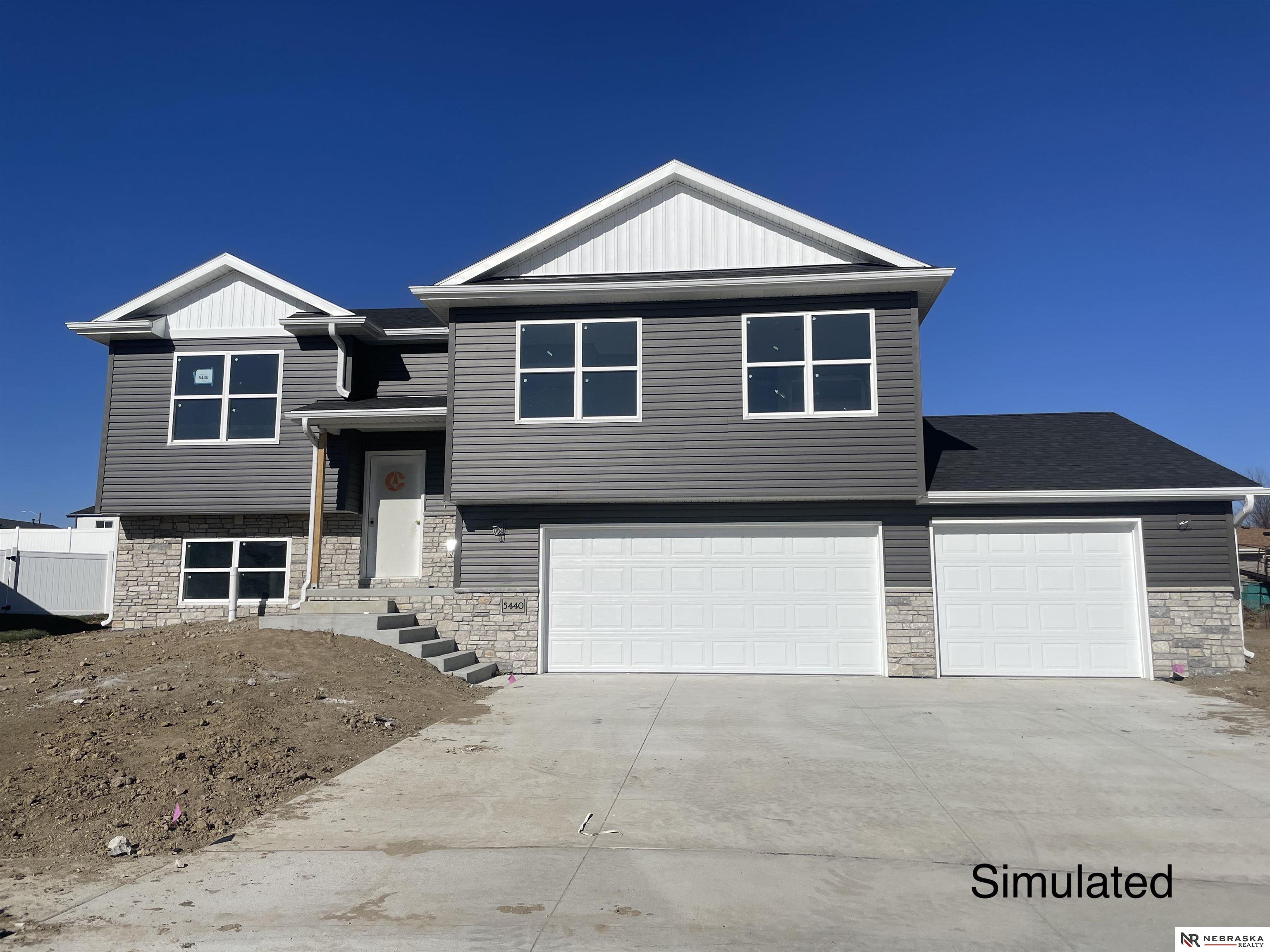 Discover this beautiful 4-bedroom, 3-bath split/foyer home offering just over 2000 sq ft of stylish living space. The open-concept main level features main floor laundry, vaulted ceilings, creating a spacious and inviting atmosphere. The modern kitchen boasts vinyl plank floors, quartz countertops, a breakfast bar, pantry, and stainless steel appliances perfect for entertaining. The primary suite includes a walk-in closet and a luxurious bath with a tub/shower and double vanity. The finished basement offers a 4th bedroom, recreation room and additional bathroom. Outdoor living is enhanced with a spacious deck, stone & vinyl exterior, underground sprinklers, and sod. Plus, a versatile 3-stall garage! Conveniently located near the new high school and shopping areas. Property completion expected by 12/31/25.