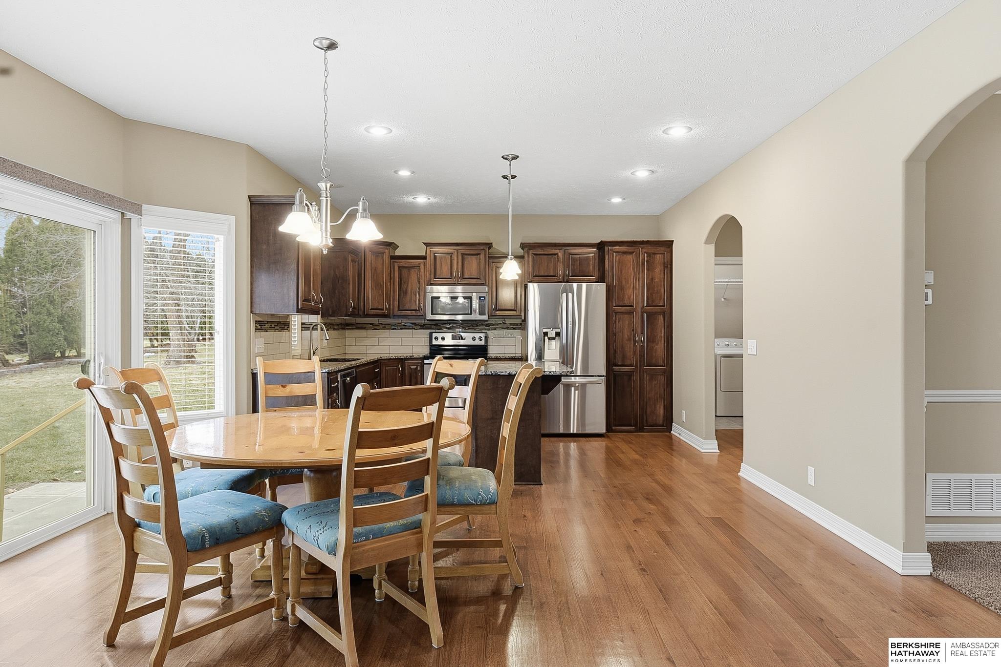 Welcome to this beautifully maintained two-story home in the highly sought-after Mission Park neighborhood! Built in 2015, this spacious 5-bed, 4-bath, 3-car home blends modern comfort with thoughtful design. The kitchen features ample cabinetry, center island, and huge walk-in pantry, plus all appliances, including the washer & dryer, stay with the home. The adjoining living and dining areas create a seamless flow. After walking up the curved staircase, you'll find the primary suite, 3 secondary bedrooms, and a large bathroom w/ double sinks. The primary suite is a true retreat, complete with a generous walk-in closet, jetted tub, walk-in shower, double sinks, and private water closet. The finished basement expands your living options with a large rec room, 5th bedroom, & 3/4 bathroom. Located near parks, trails, shopping, and top-rated Millard schools, this home delivers the perfect balance of comfort, style, & location. Don't miss your chance to make this Mission Park gem your own!