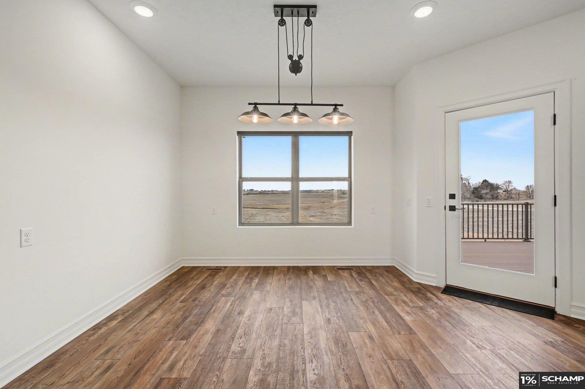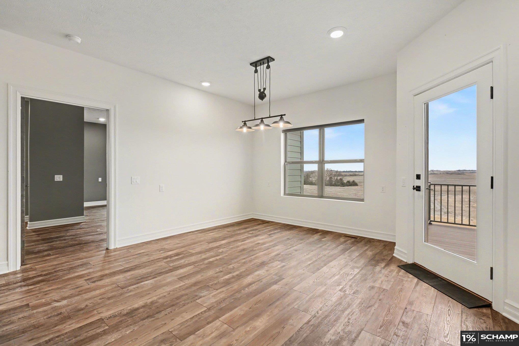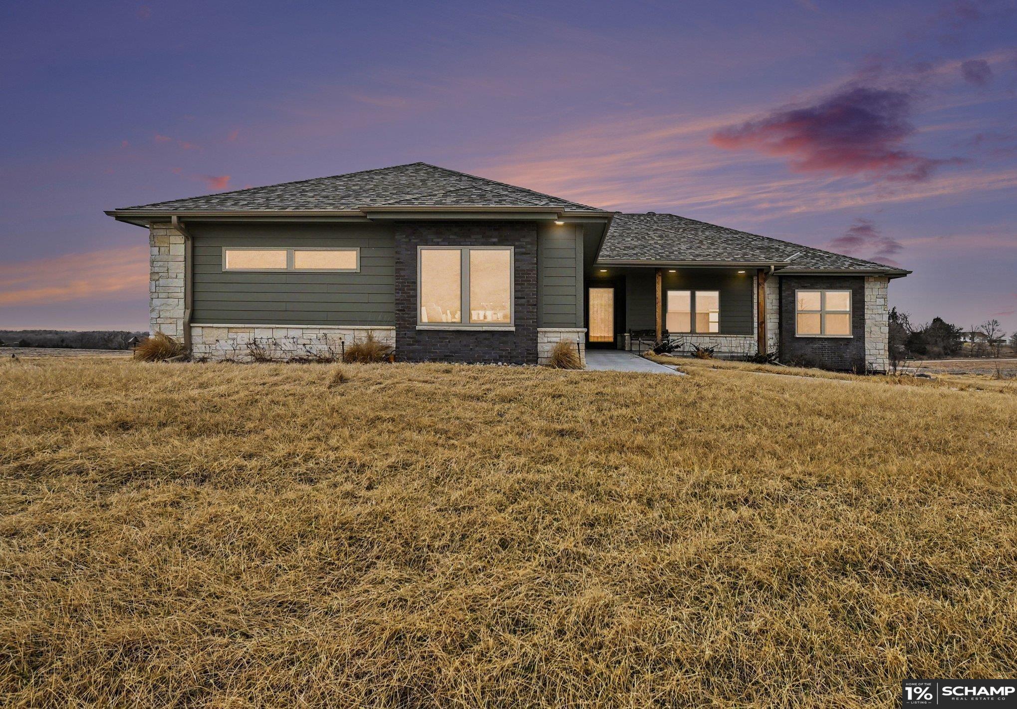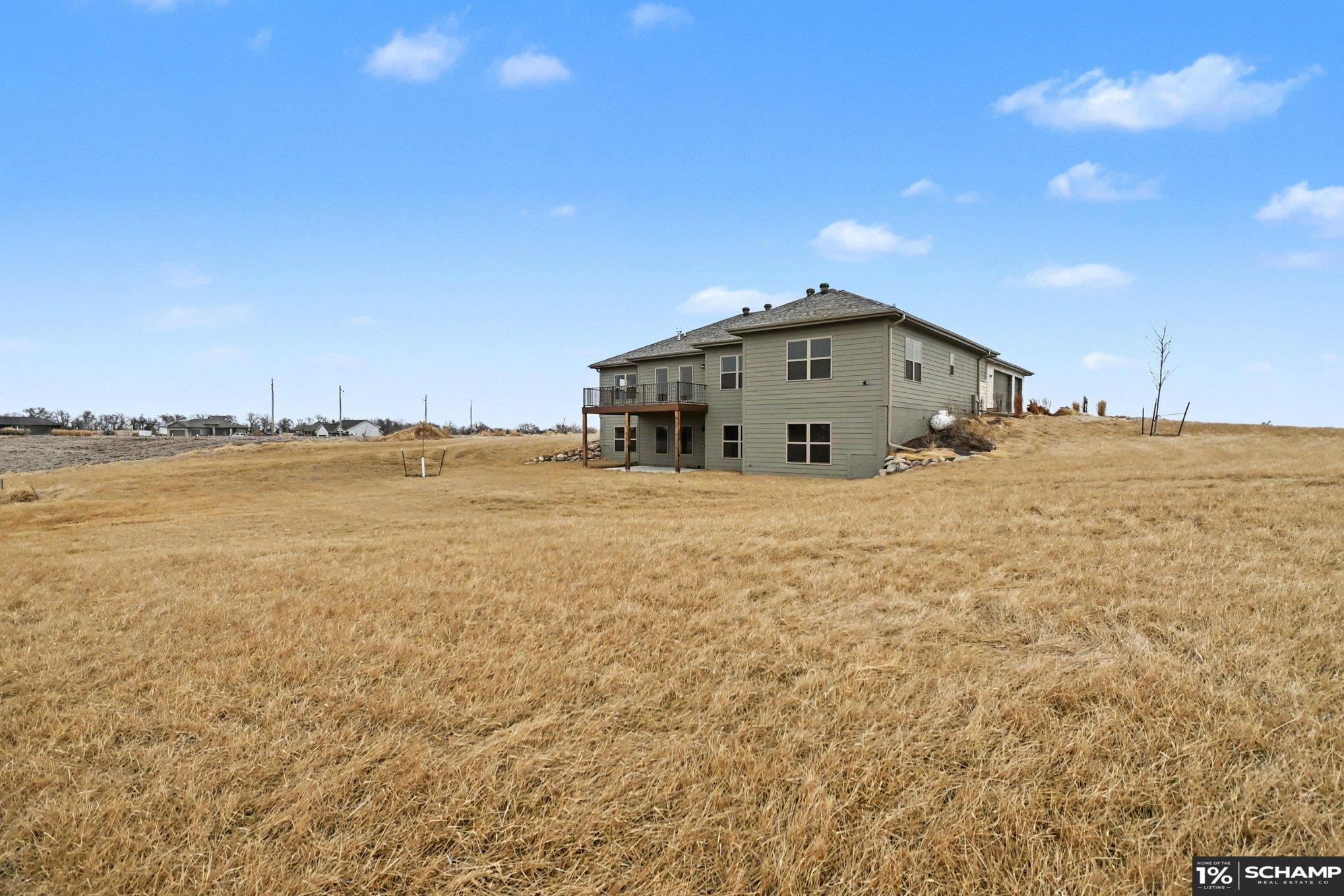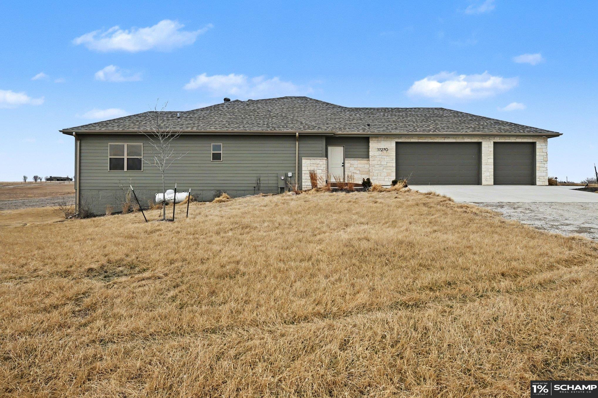 Space Without Compromise! A Custom-Built Zero Entry Ranch in Lynn Estates. Built in 2024, this home sits on a 4.33-acre corner lot just outside the hustle and bustle. Inside, you'll be greeted by over 2800 sqft of eye-pleasing finishes on the main lvl w/wide open layout, clean sight lines & oversized windows pulling in rural views. Kitchen anchors the home w/massive sit up island, gas cooktop, stainless appliances, designer tile backsplash & walk-in pantry. Private primary suite featuring fully tiled walk-in shower, soaker tub, dual vanities & sizable closet. Partially finished W/O basement w/4th BR+4th bath, daylight windows, spacious rec area ready for your vision & extra utility room. Oversized attached garage& covered front entry & composite deck overlooking wide-open rural views. If you’ve been waiting for newer construction without the wait, this is it! Outbuildings permitted. Acreage like this does not come along often. Springfield schools. Quick access to Hwy 50 & Omaha.