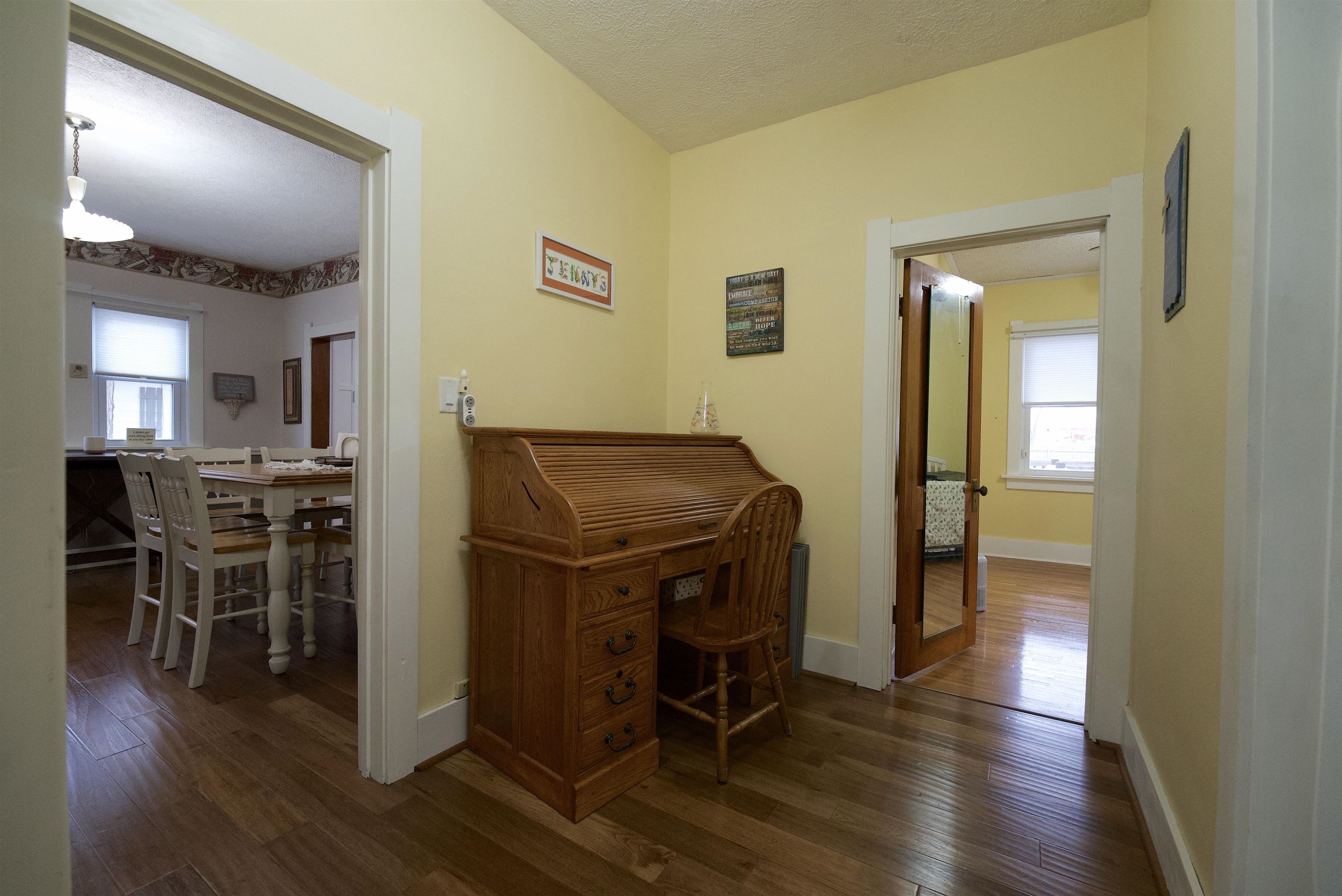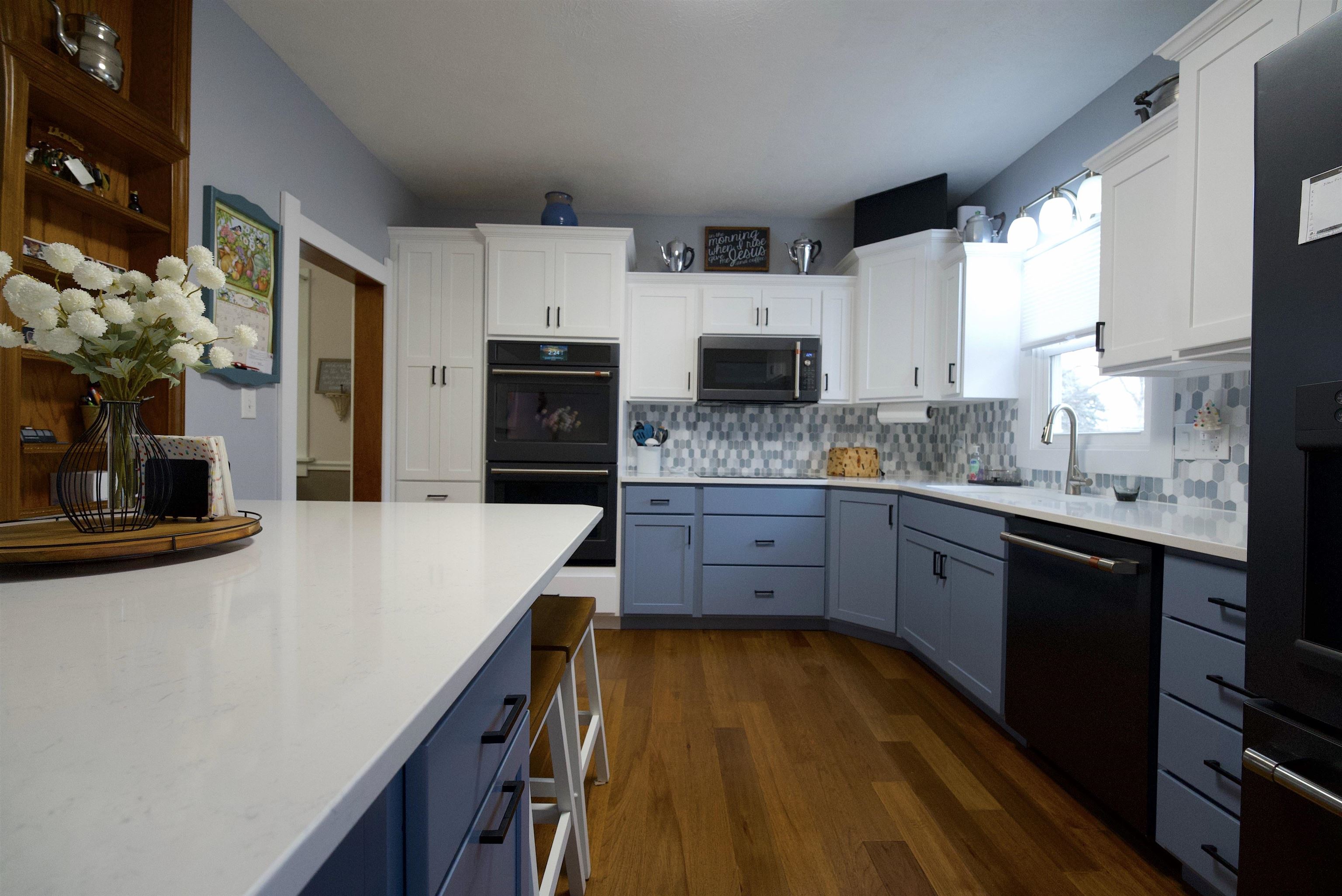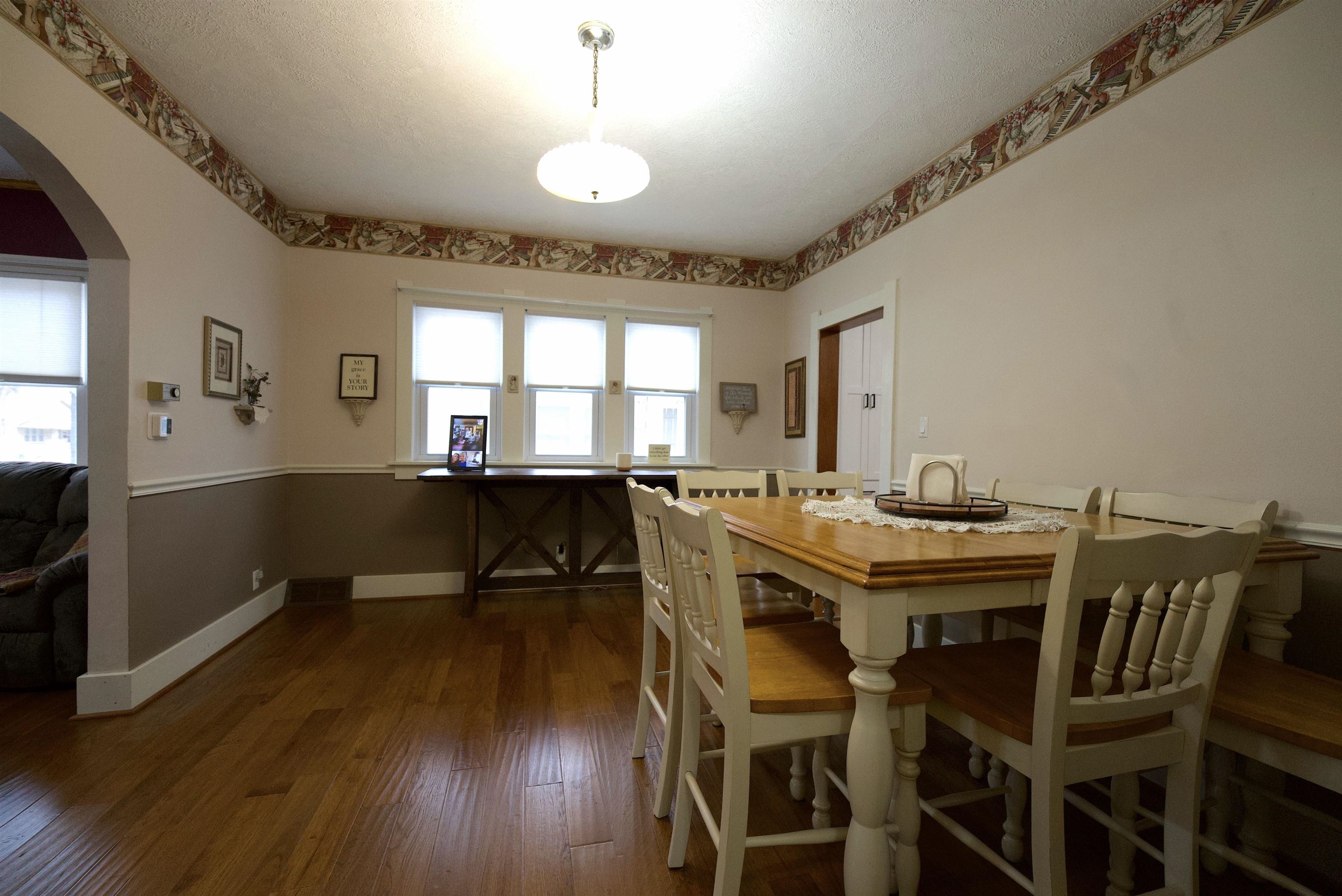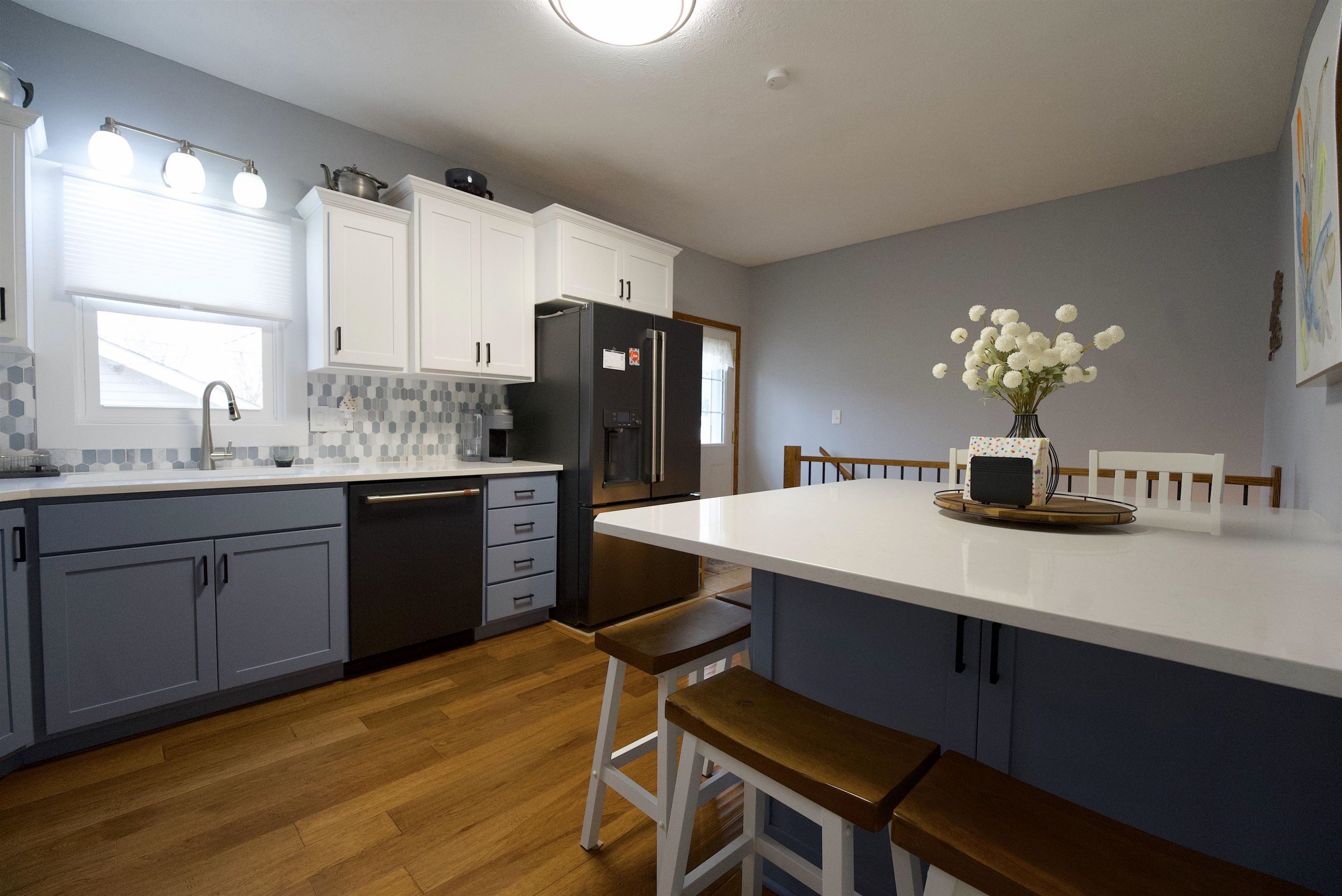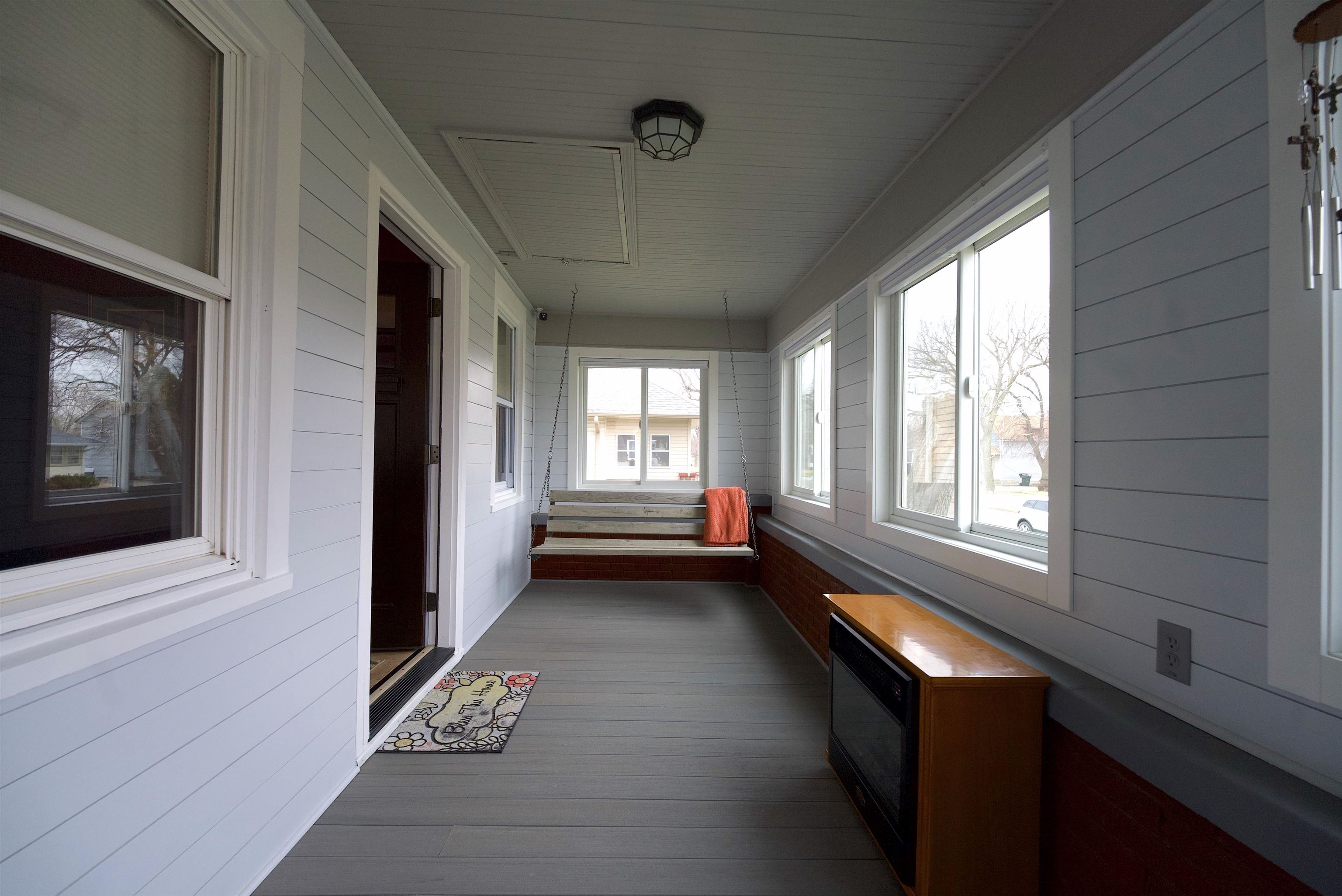 Exceptional Renovated Bungalow for Turnkey Buyer! This beautifully updated bungalow is perfect for buyers seeking a move-in ready home. The kitchen boasts brand new cabinets, luxurious quartz and granite countertops, and newer appliances. The spacious eat-in area provides ample room for dining and includes convenient storage below. The porch has been enclosed, adding extra living space, and a new attic access has been installed for ease of use. Modern comfort is assured with a HVAC system installed in 2024 and a tankless water heater. All windows on the main level have been replaced for improved efficiency, and an egress window has been added in the basement, making a conforming room possible. For those needing extra space, the expansive 23x40 garage comfortably accommodates three cars and includes a workshop area. An additional 11x13 shed offers even more storage options. The large backyard features a zipline, providing a fun and unique outdoor amenity. Gutter guards were installed for added protection from leaves.