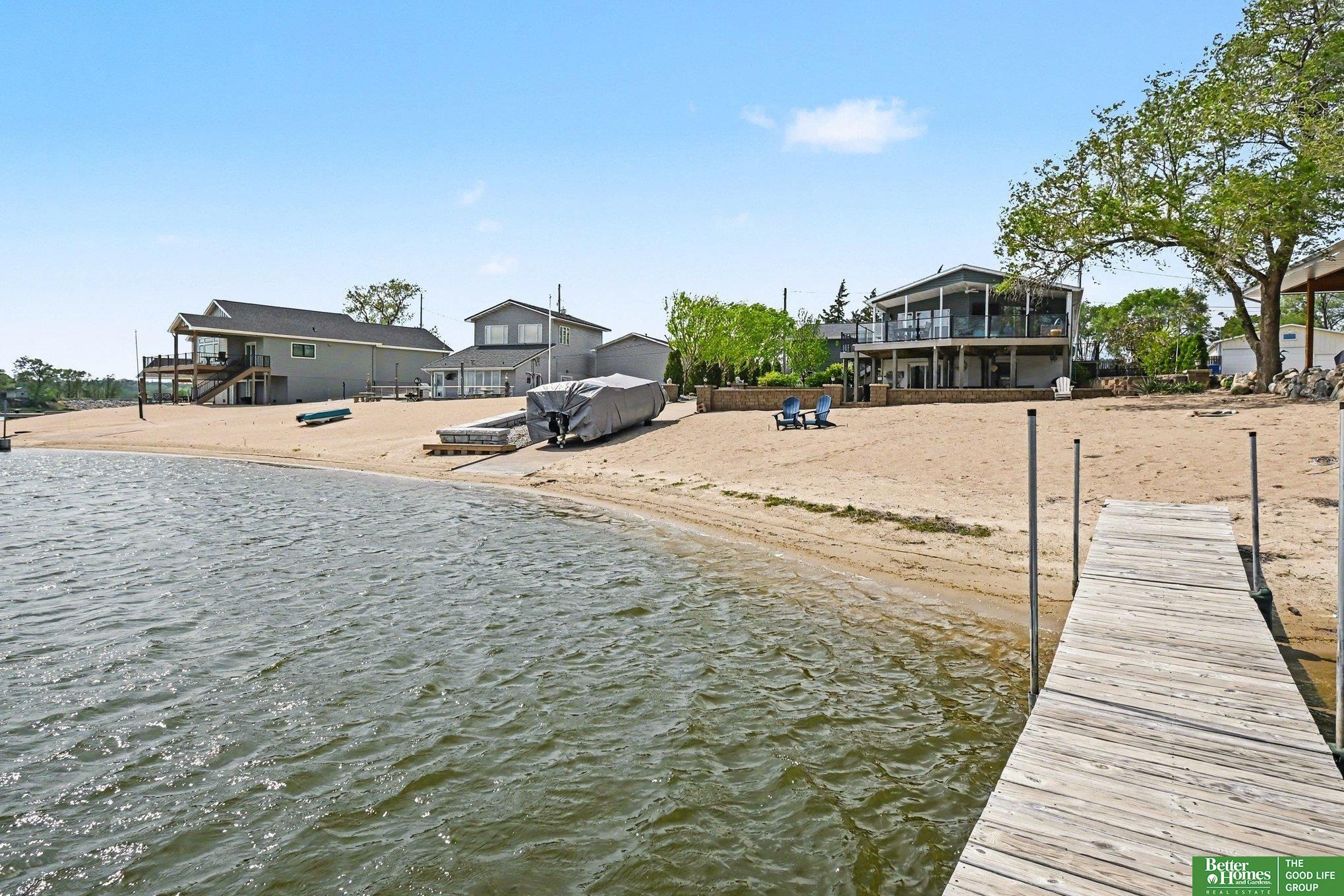 Welcome to your private beachfront escape, perfectly set on a rare 0.34-acre lot where every day feels like a getaway. Bright, open living spaces are filled with natural light and designed to capture incredible water views from nearly every angle. The open-concept layout features expansive windows framing the shoreline, seamlessly connecting the kitchen, dining, and living areas for effortless relaxation and entertaining. Step outside to a stunning glass-railed deck and soak in unobstructed, east-facing sunrises over the water. The lower level offers ultimate flexibility, featuring a media or recreational room, an additional bedroom and bath, and a flex space for guests or extra storage. Outdoors, your personal oasis awaits—complete with a beachside patio, cozy fire pit, fenced yard, and direct access to your private boat ramp. This is waterfront living at its finest.