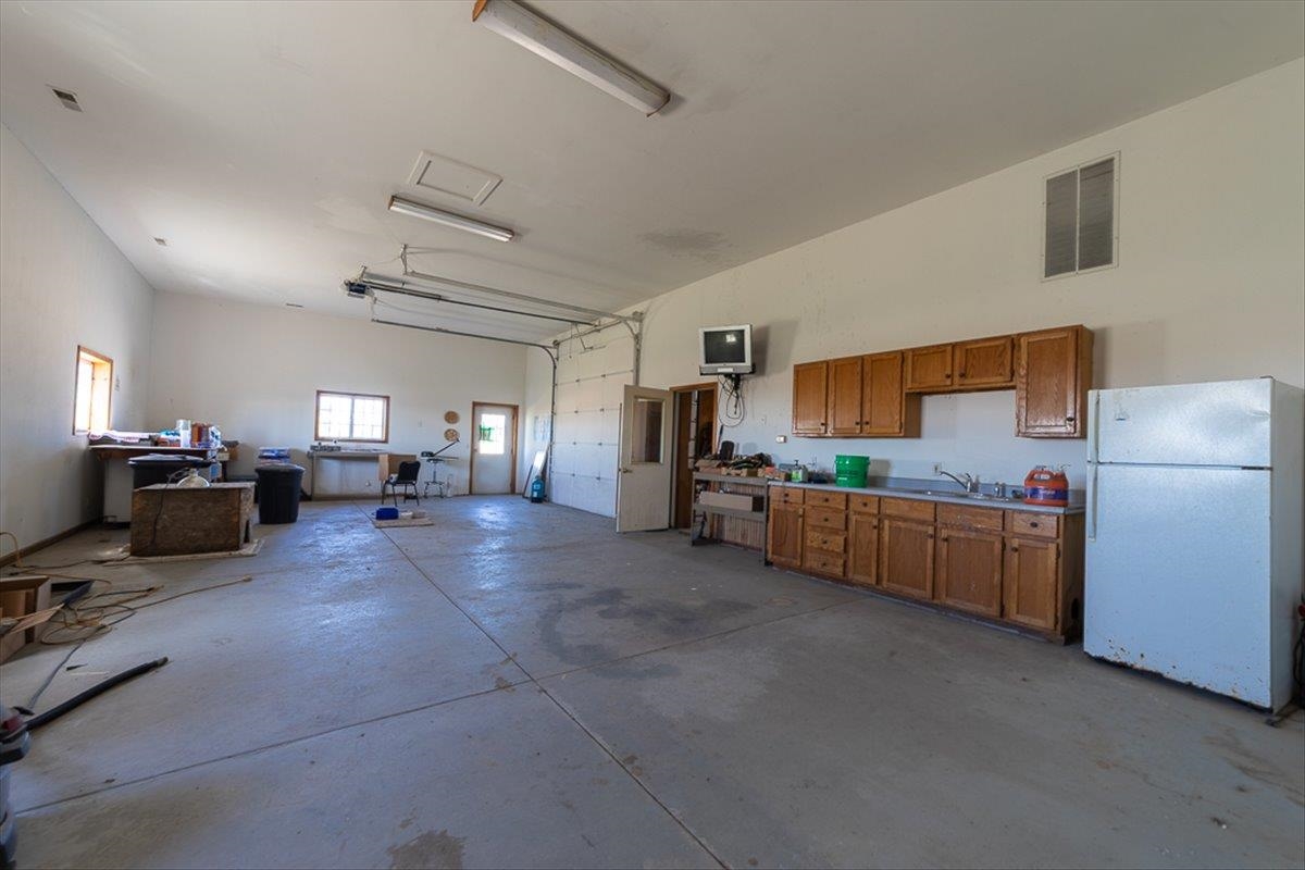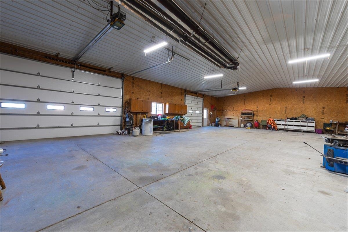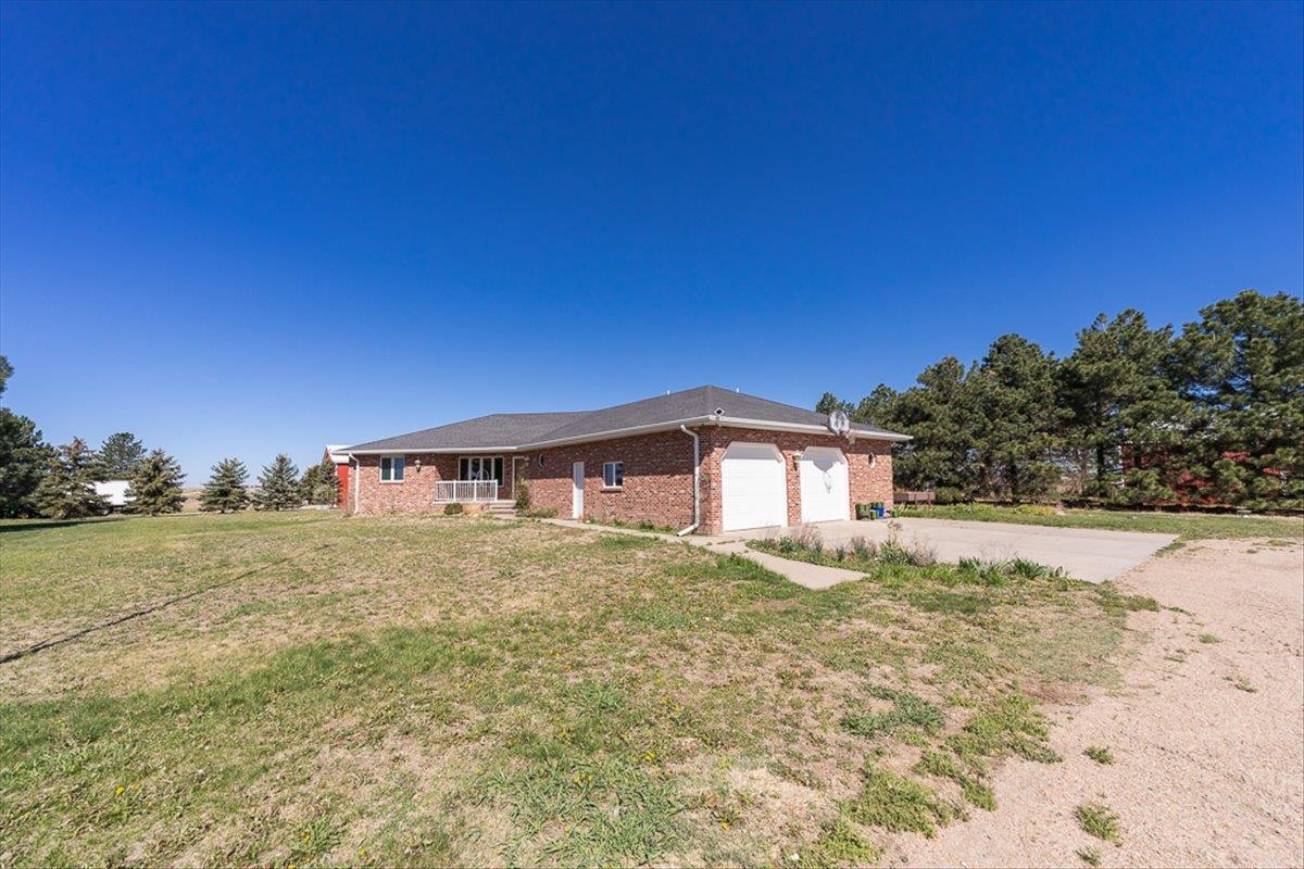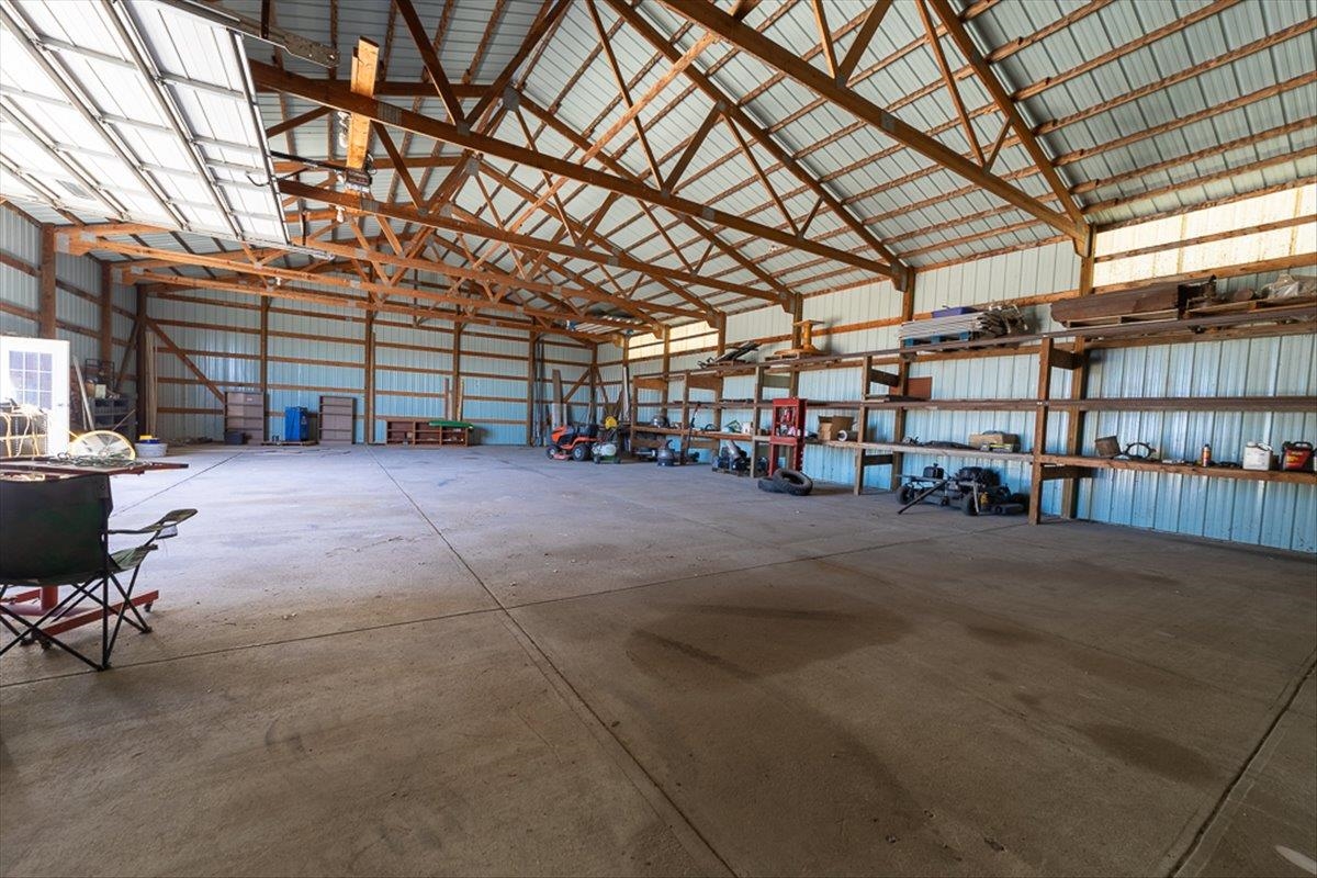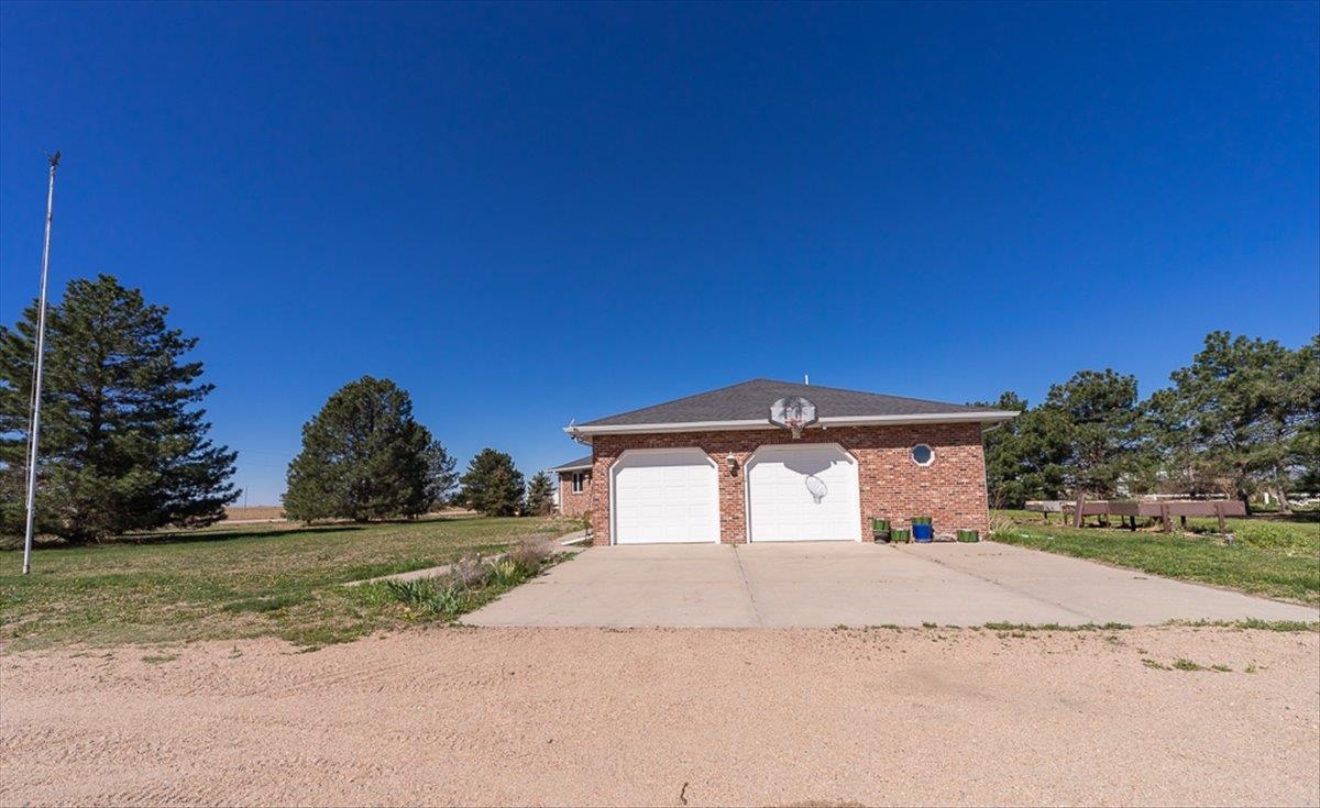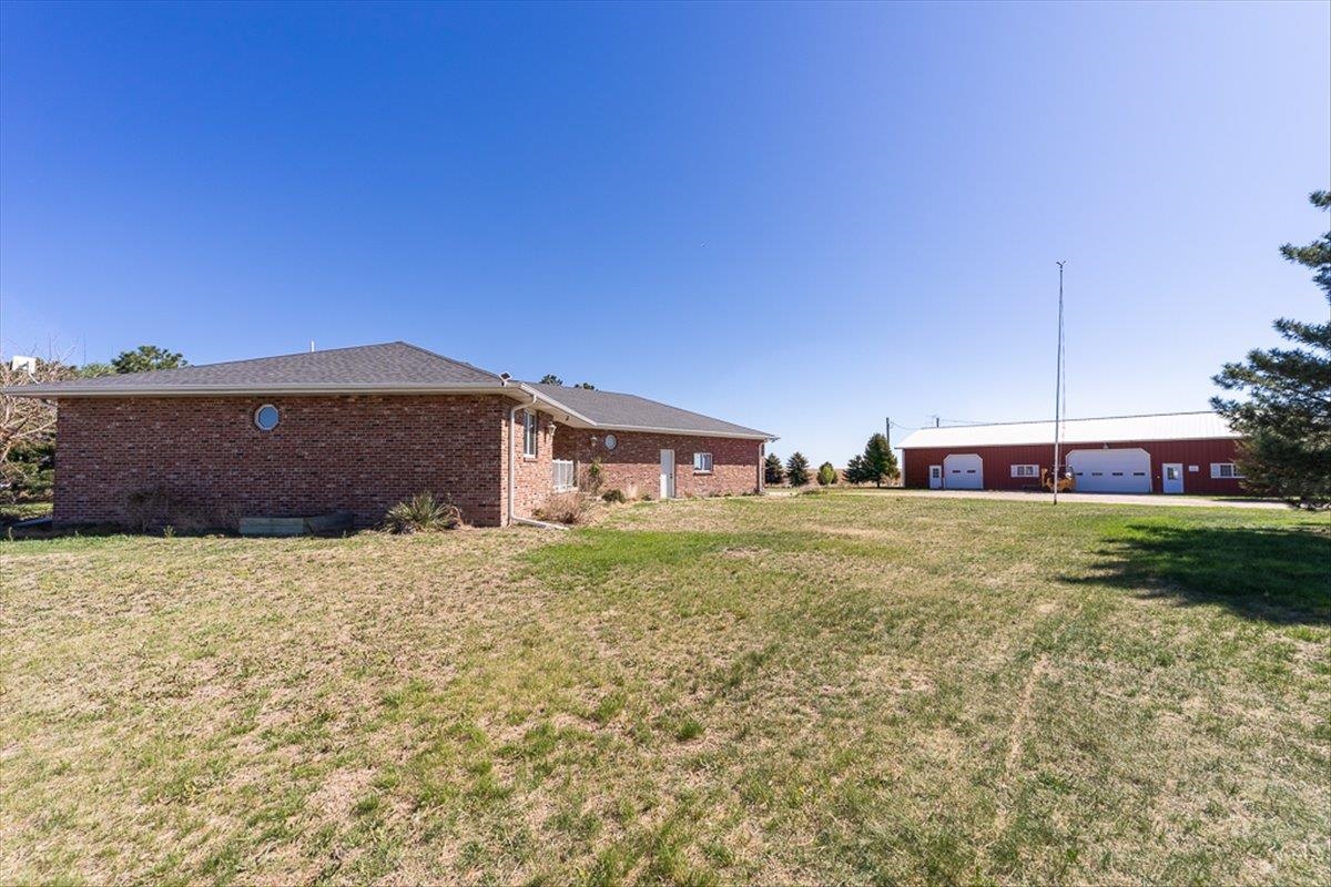 Rare Kenesaw acreage with expansive shop space across three buildings! This brick ranch home built in 2001 sits on 7.67 acres. Just under 4000 total square feet, the home has been thoughtfully designed with three bedrooms and three bathrooms on the main level. It has a great walk-in primary closet! There are laundry hookups on both the main and basement level. The main level is spacious with a walk out patio. Downstairs has been completely remodeled. You will find a second kitchen, a large living area, a gas fireplace, one bedroom with egress, and a non-conforming bedroom. Multiple buildings ensure plenty of room for tractors, classic cars, equipment, you name it. Building 1 is a 40x60 Cleary with a vehicle lift and concrete slope for exterior drainage (14' ceiling). Building 2 is a 45x81 Cleary with pallet storage (12' ceiling). Building 3 is an insulated 42x83 Morton with an office, half-bath, and a workshop area with a kitchenette (12' ceiling). All kitchen appliances, washer and dryer are included. A fenced garden area, pear and apple trees on the property are just the cherry on top!