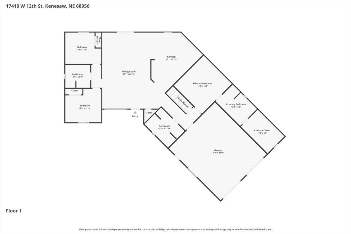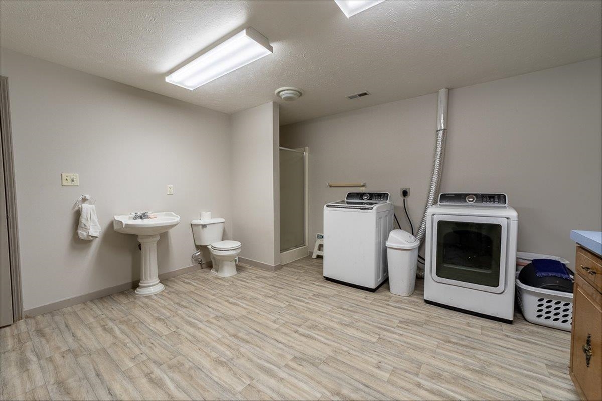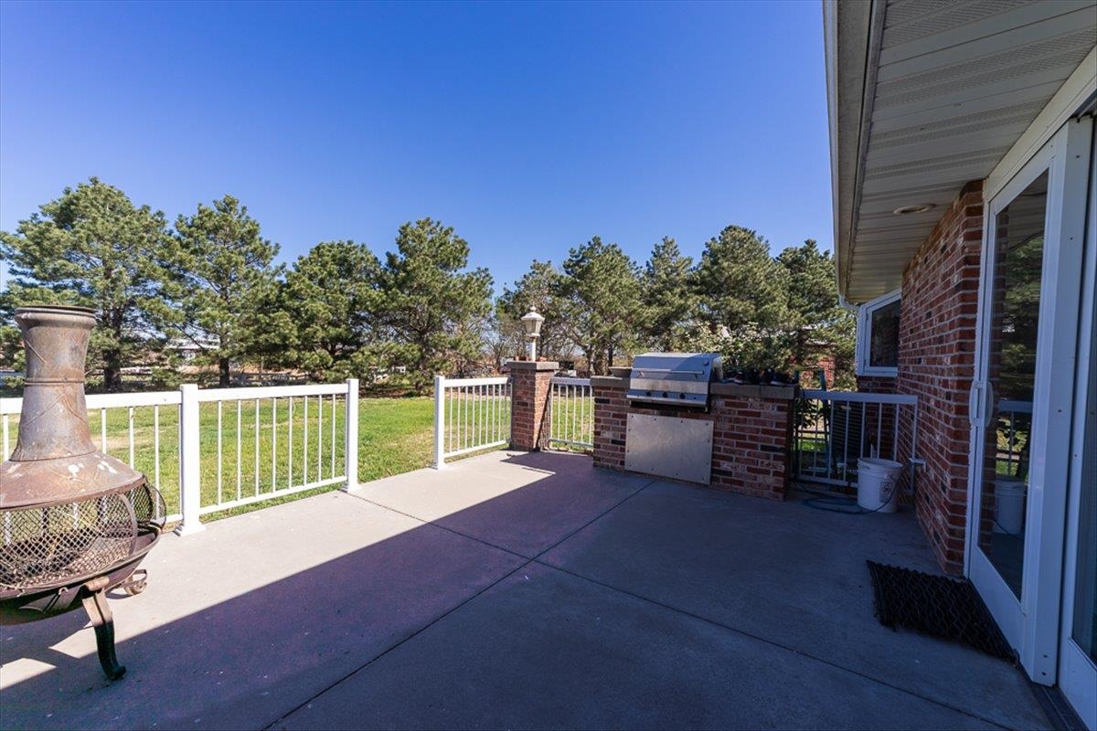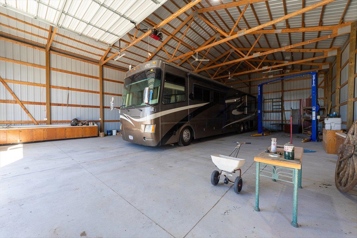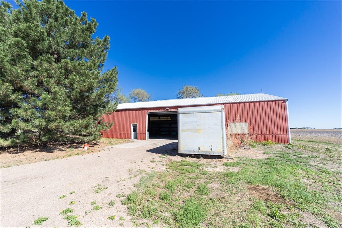 Rare Kenesaw acreage with expansive shop space across three buildings! This brick ranch home built in 2001 sits on 7.67 acres. Just under 4000 total square feet, the home has been thoughtfully designed with three bedrooms and three bathrooms on the main level. It has a great walk-in primary closet! There are laundry hookups on both the main and basement level. The main level is spacious with a walk out patio. Downstairs has been completely remodeled. You will find a second kitchen, a large living area, a gas fireplace, one bedroom with egress, and a non-conforming bedroom. Multiple buildings ensure plenty of room for tractors, classic cars, equipment, you name it. Building 1 is a 40x60 Cleary with a vehicle lift and concrete slope for exterior drainage (14' ceiling). Building 2 is a 45x81 Cleary with pallet storage (12' ceiling). Building 3 is an insulated 42x83 Morton with an office, half-bath, and a workshop area with a kitchenette (12' ceiling). All kitchen appliances, washer and dryer are included. A fenced garden area, pear and apple trees on the property are just the cherry on top!