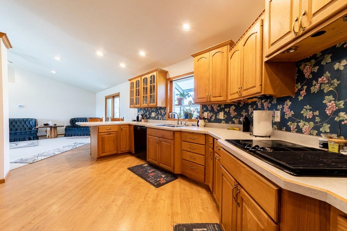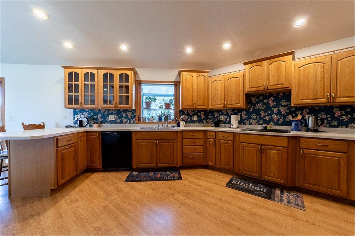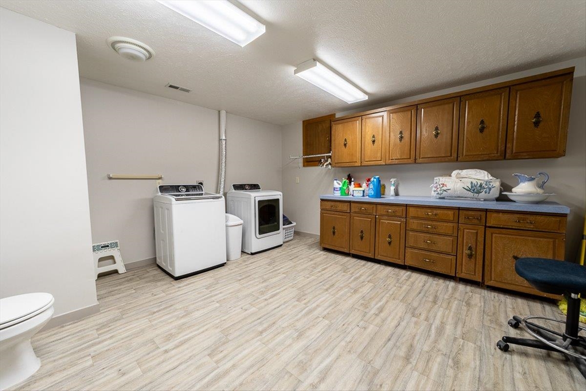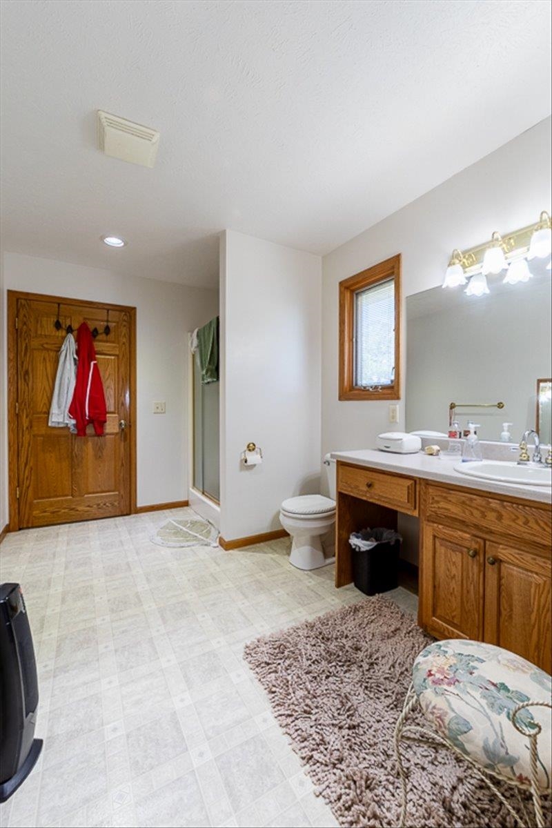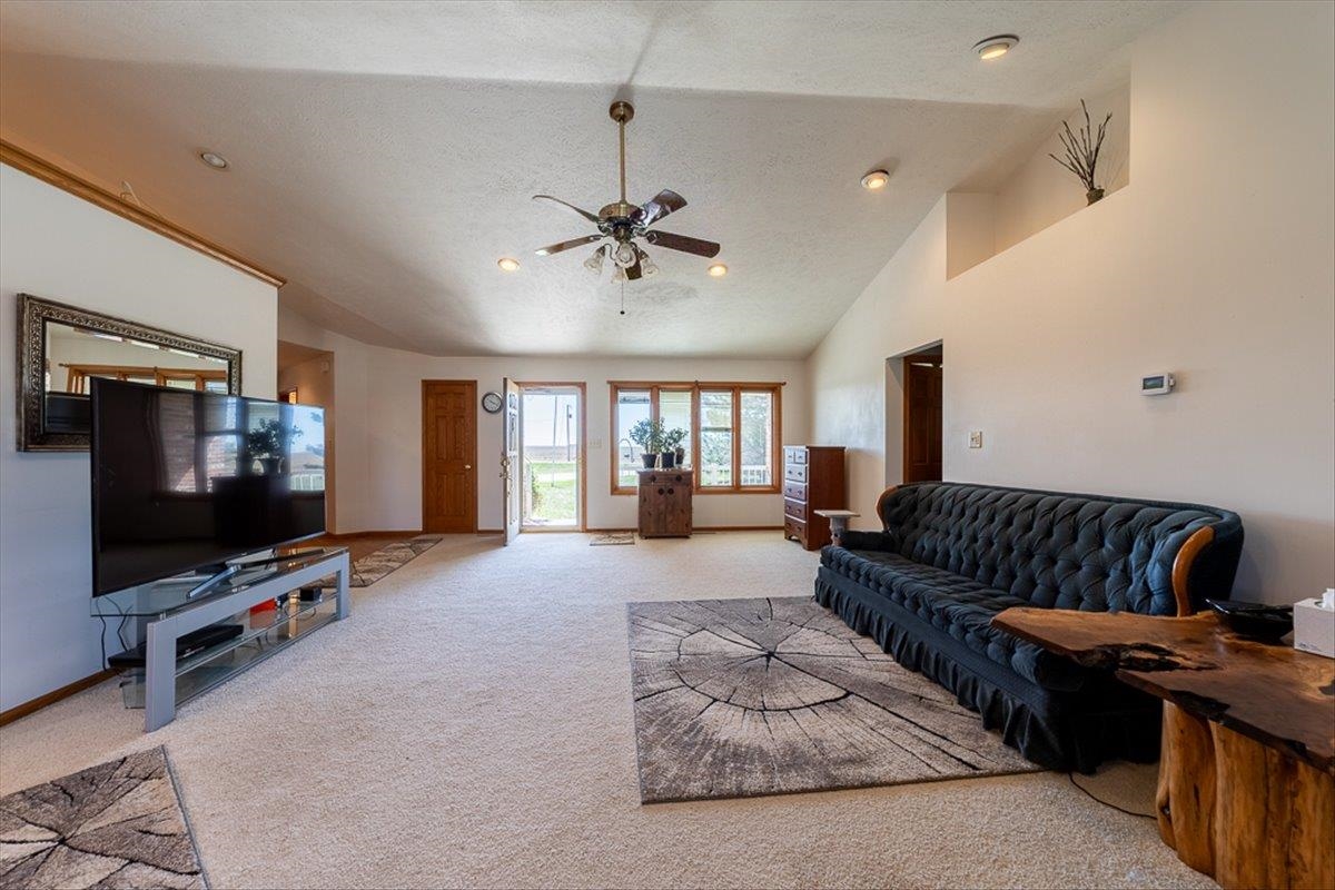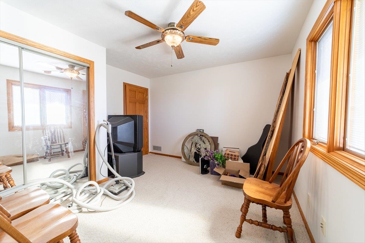 Rare Kenesaw acreage with expansive shop space across three buildings! This brick ranch home built in 2001 sits on 7.67 acres. Just under 4000 total square feet, the home has been thoughtfully designed with three bedrooms and three bathrooms on the main level. It has a great walk-in primary closet! There are laundry hookups on both the main and basement level. The main level is spacious with a walk out patio. Downstairs has been completely remodeled. You will find a second kitchen, a large living area, a gas fireplace, one bedroom with egress, and a non-conforming bedroom. Multiple buildings ensure plenty of room for tractors, classic cars, equipment, you name it. Building 1 is a 40x60 Cleary with a vehicle lift and concrete slope for exterior drainage (14' ceiling). Building 2 is a 45x81 Cleary with pallet storage (12' ceiling). Building 3 is an insulated 42x83 Morton with an office, half-bath, and a workshop area with a kitchenette (12' ceiling). All kitchen appliances, washer and dryer are included. A fenced garden area, pear and apple trees on the property are just the cherry on top!