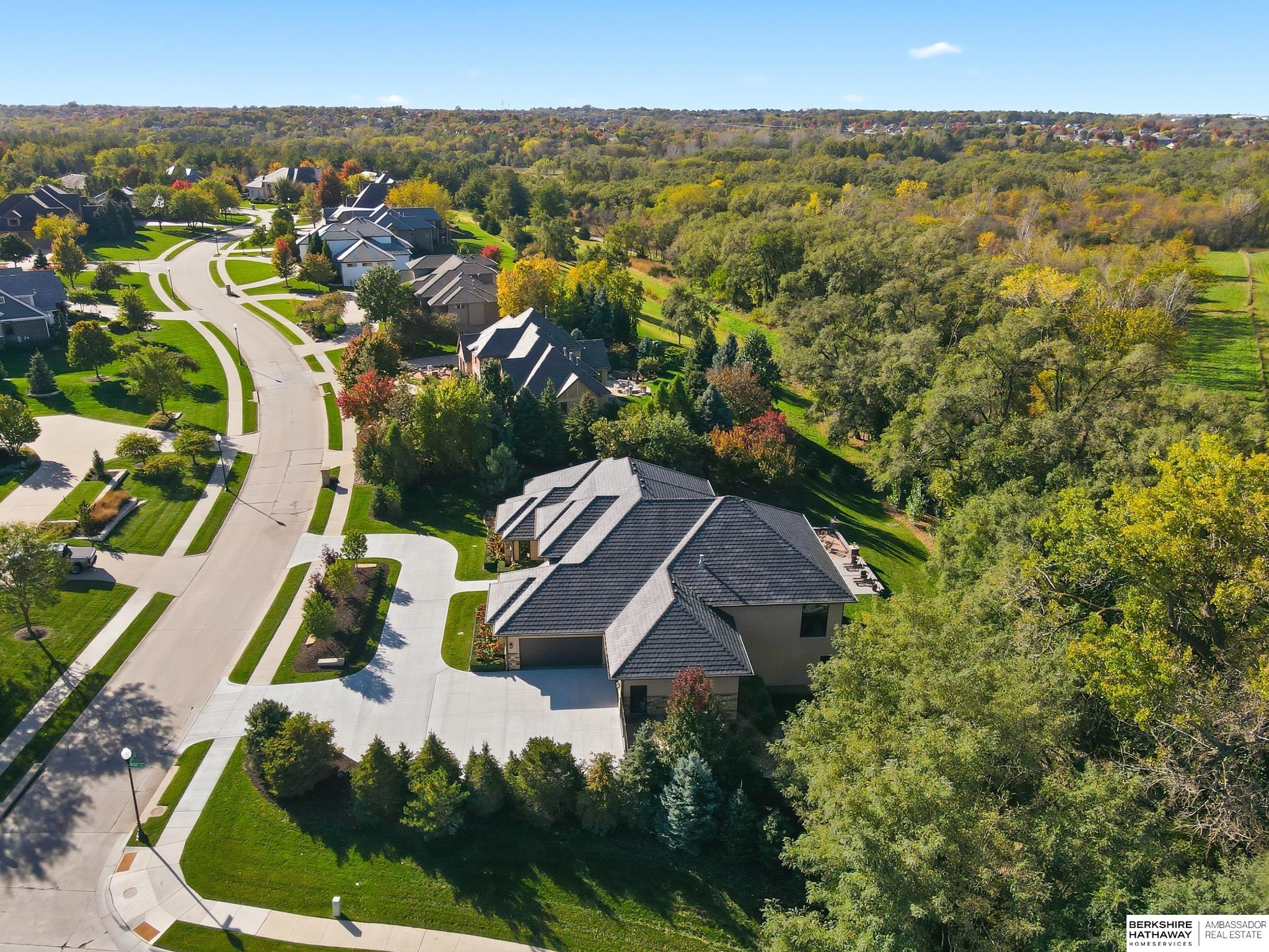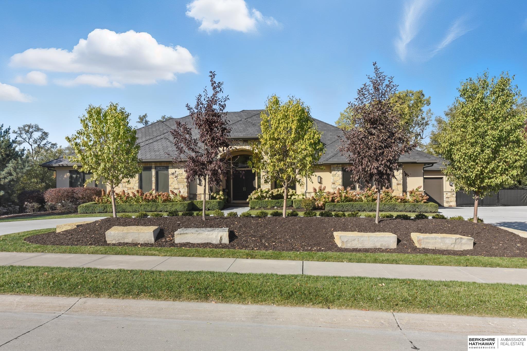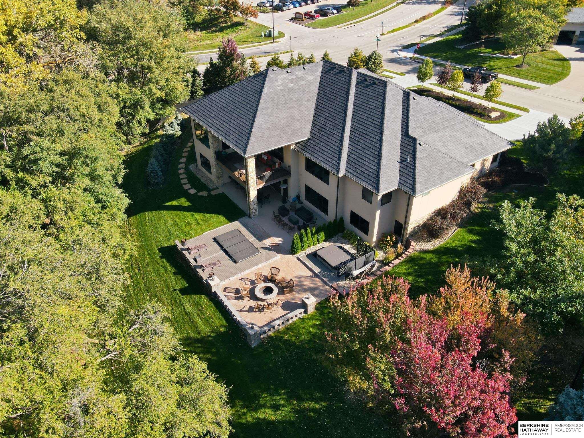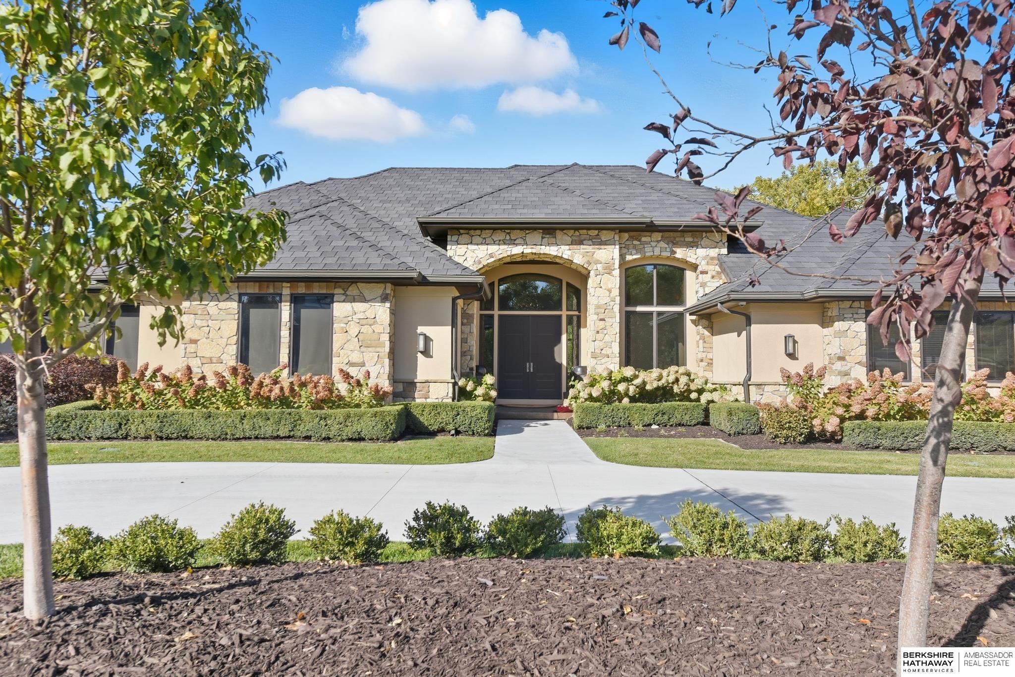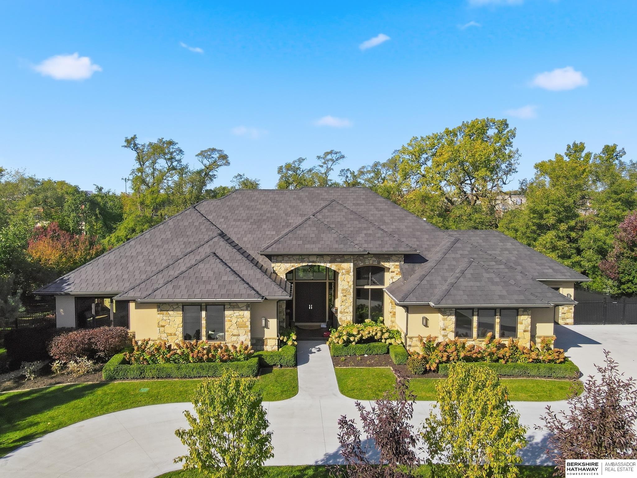 Tucked away in Omaha's prestigious Legacy neighborhood, 17445 Valley Drive epitomizes upscale suburban elegance on a sprawling 1-acre lot enveloped by mature trees, offering unparalleled privacy and tranquility. This architectural gem provides seamless access to top-rated Elkhorn South Schools, the vibrant Legacy shopping district, and the recreational haven of Lake Zorinsky, all within walking distance. This 5-bedroom, 7-bathroom haven is designed for effortless entertaining and multi-generational living, featuring a main-level primary suite with spa-like en-suite, a dedicated home office, a media room, and gym. The gourmet kitchen dazzles with Eurowood cabinetry, high-end appliances, including double ovens and a wine refrigerator, a walk-in pantry, and an oversized island, perfect for casual gatherings. Adjoining formal dining and great rooms flow outdoors to a maintenance-free covered deck, framing views of the lush backyard complete with firepit and lap pool. Must-see!