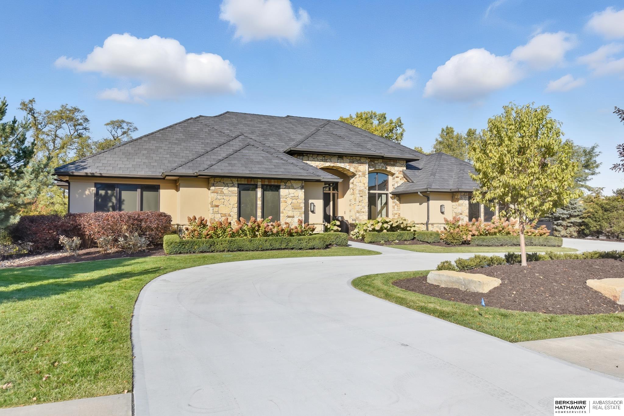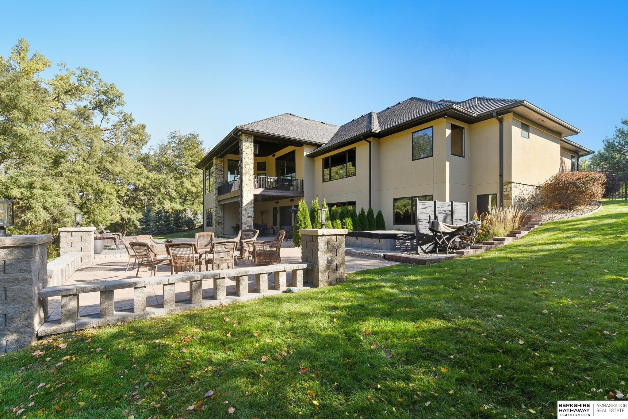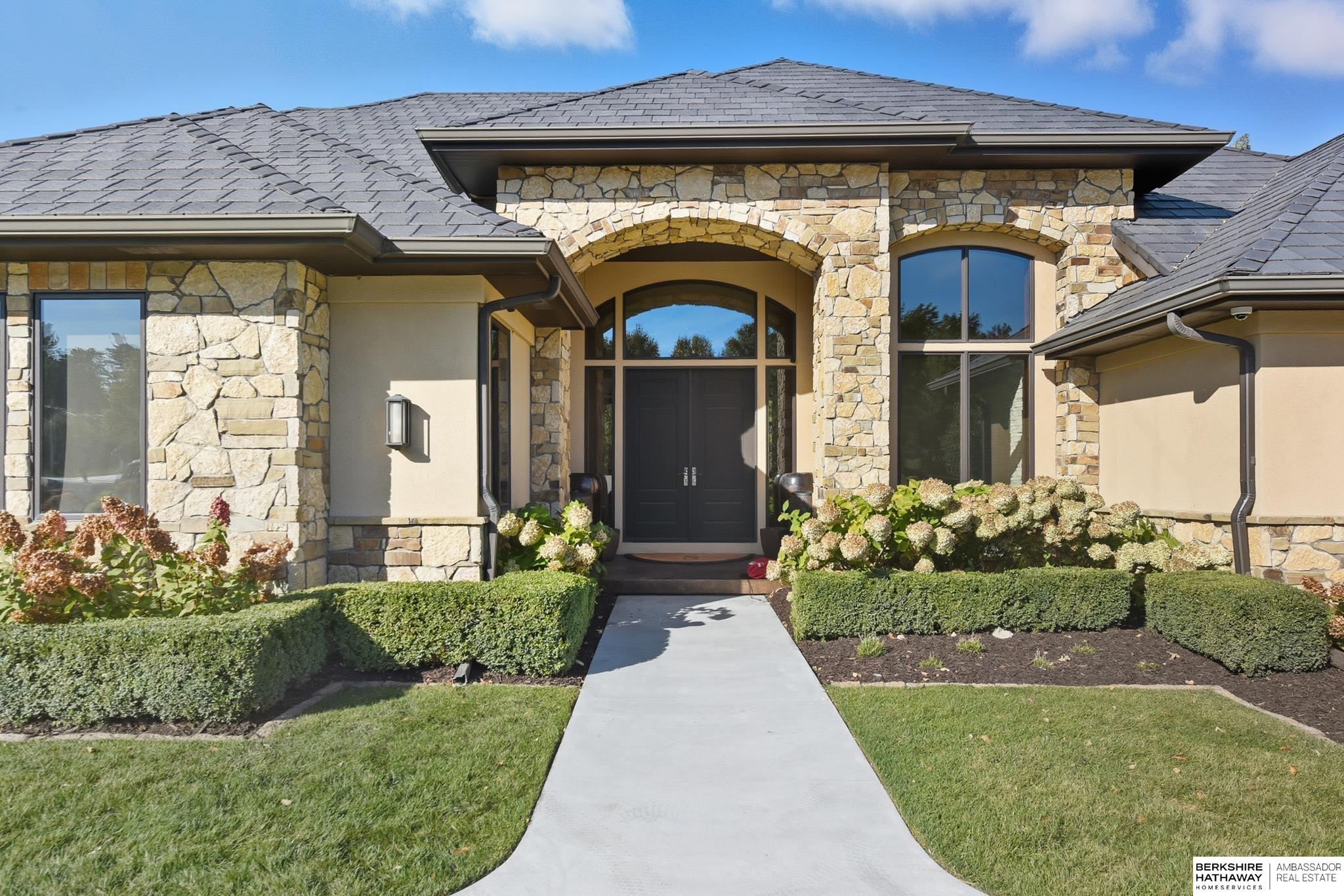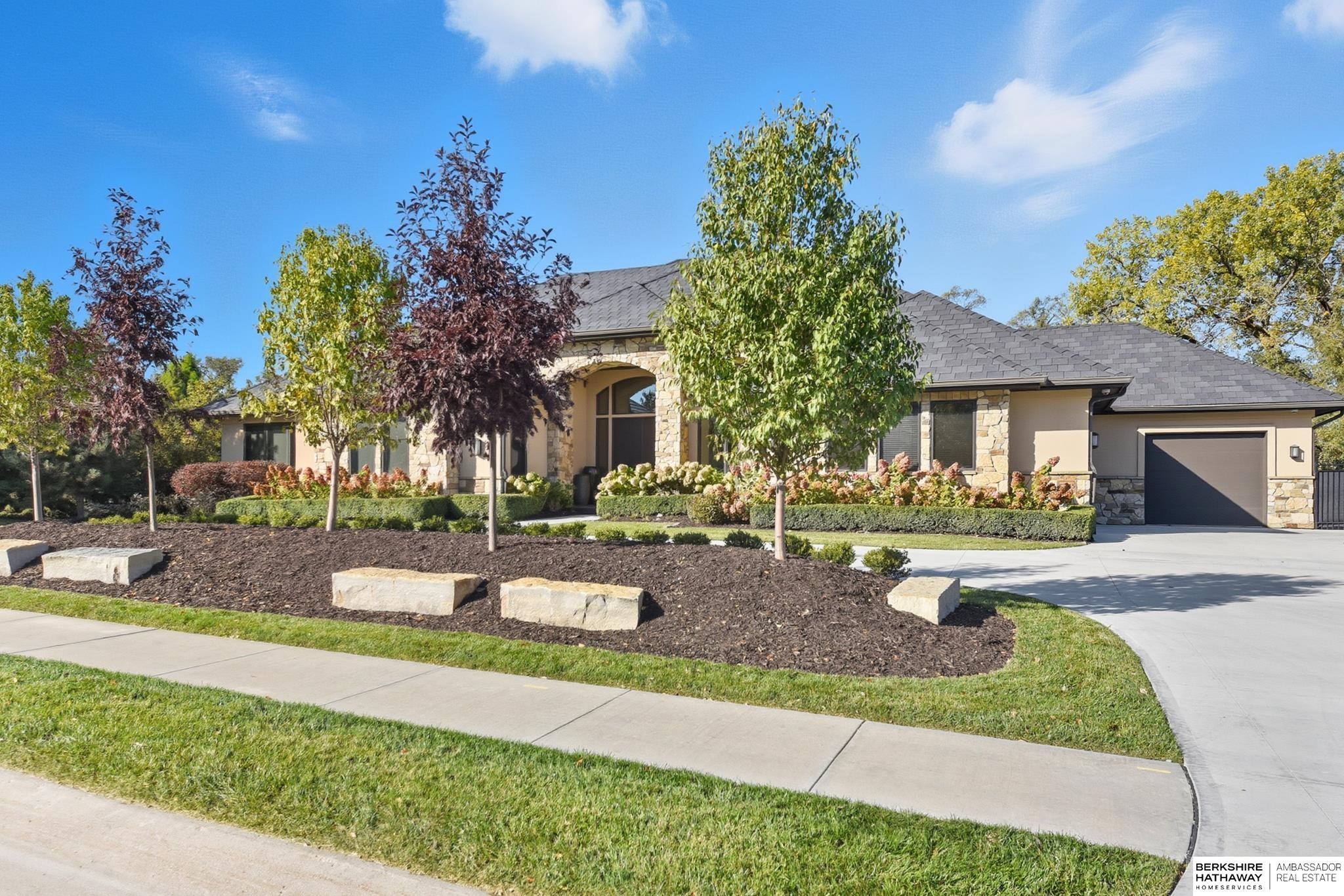 Tucked away in Omaha's prestigious Legacy neighborhood, 17445 Valley Drive epitomizes upscale suburban elegance on a sprawling 1-acre lot enveloped by mature trees, offering unparalleled privacy and tranquility. This architectural gem provides seamless access to top-rated Elkhorn South Schools, the vibrant Legacy shopping district, and the recreational haven of Lake Zorinsky, all within walking distance. This 5-bedroom, 7-bathroom haven is designed for effortless entertaining and multi-generational living, featuring a main-level primary suite with spa-like en-suite, a dedicated home office, a media room, and gym. The gourmet kitchen dazzles with Eurowood cabinetry, high-end appliances, including double ovens and a wine refrigerator, a walk-in pantry, and an oversized island, perfect for casual gatherings. Adjoining formal dining and great rooms flow outdoors to a maintenance-free covered deck, framing views of the lush backyard complete with firepit and lap pool. Must-see!