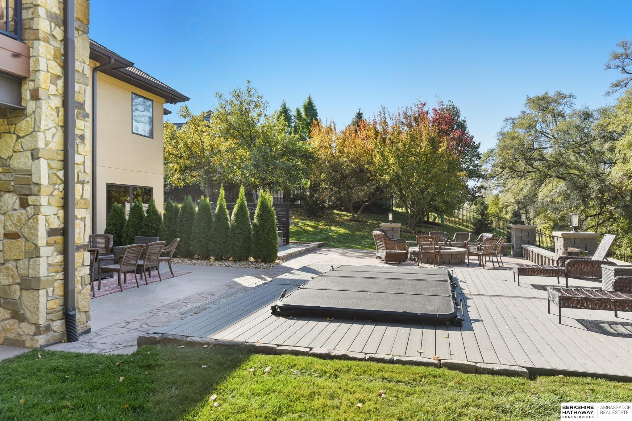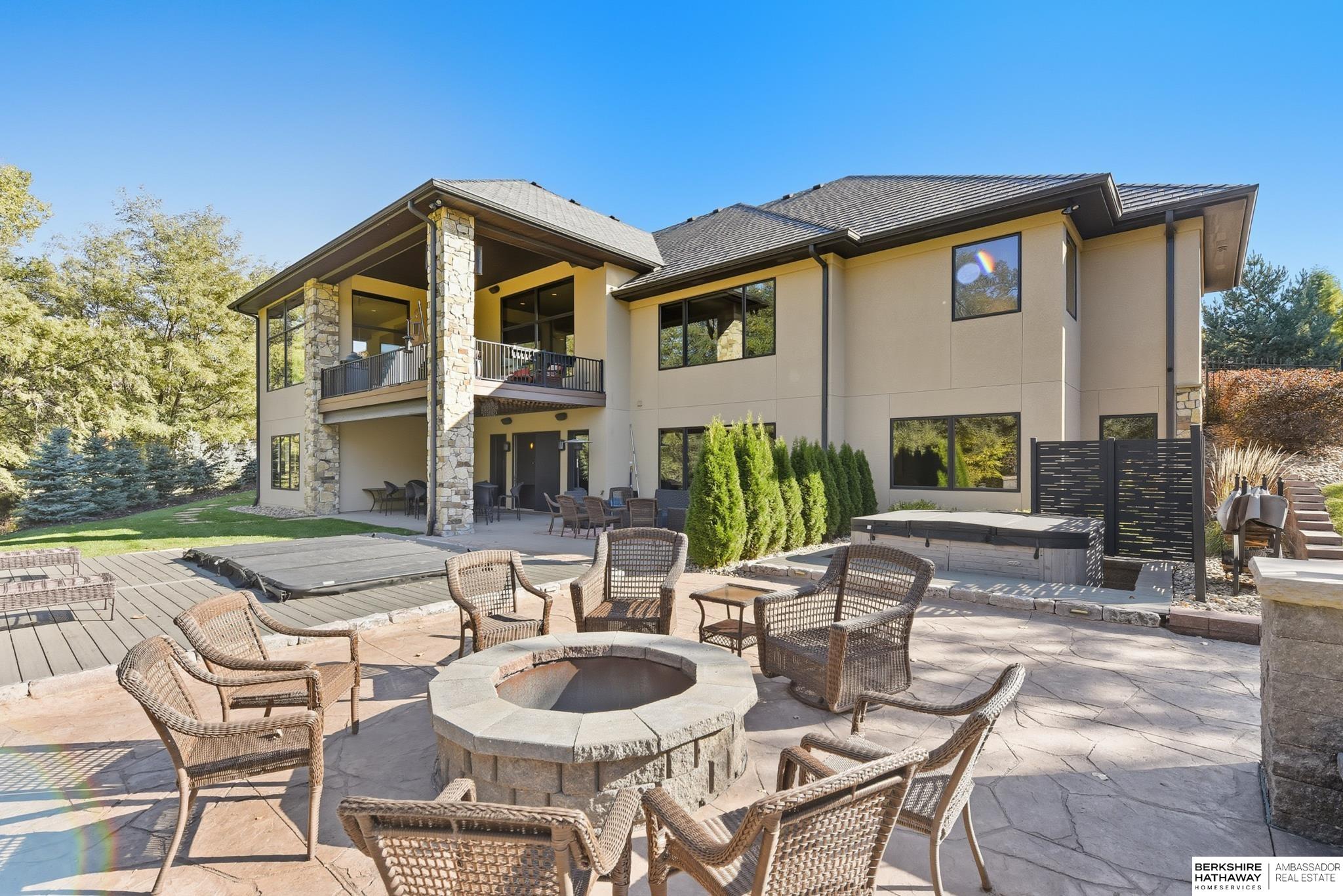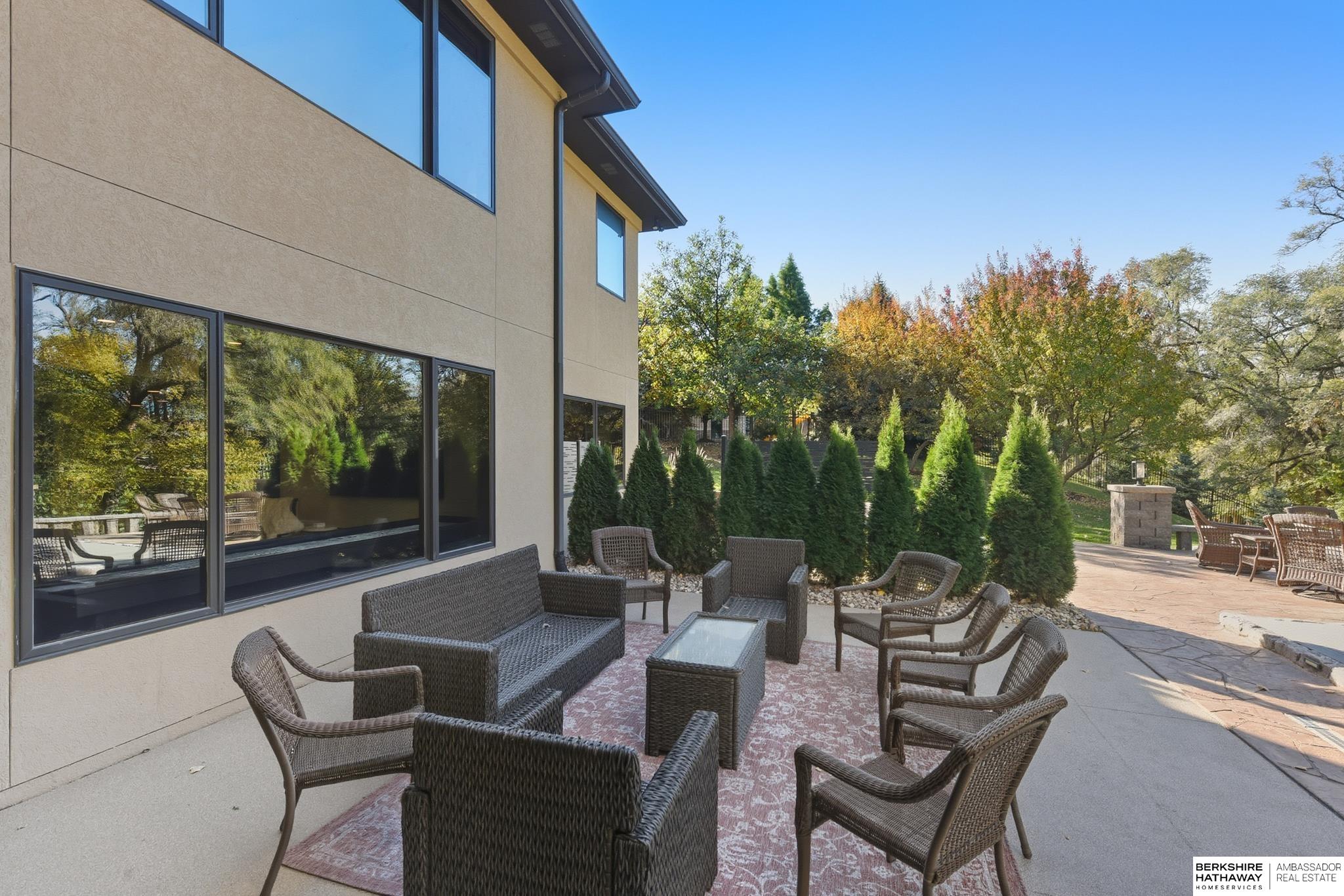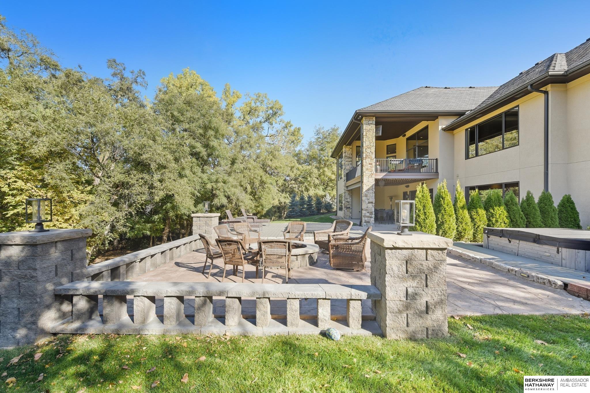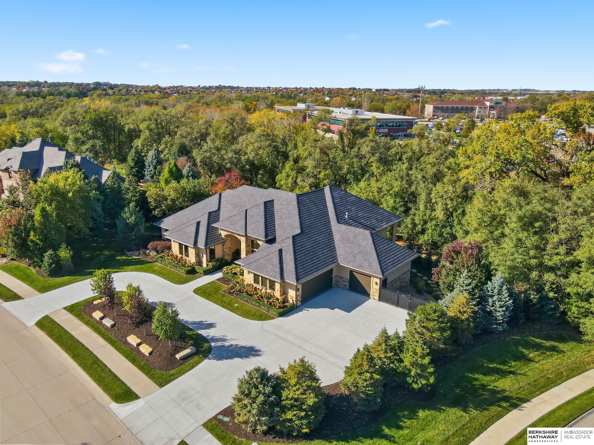 Tucked away in Omaha's prestigious Legacy neighborhood, 17445 Valley Drive epitomizes upscale suburban elegance on a sprawling 1-acre lot enveloped by mature trees, offering unparalleled privacy and tranquility. This architectural gem provides seamless access to top-rated Elkhorn South Schools, the vibrant Legacy shopping district, and the recreational haven of Lake Zorinsky, all within walking distance. This 5-bedroom, 7-bathroom haven is designed for effortless entertaining and multi-generational living, featuring a main-level primary suite with spa-like en-suite, a dedicated home office, a media room, and gym. The gourmet kitchen dazzles with Eurowood cabinetry, high-end appliances, including double ovens and a wine refrigerator, a walk-in pantry, and an oversized island, perfect for casual gatherings. Adjoining formal dining and great rooms flow outdoors to a maintenance-free covered deck, framing views of the lush backyard complete with firepit and lap pool. Must-see!