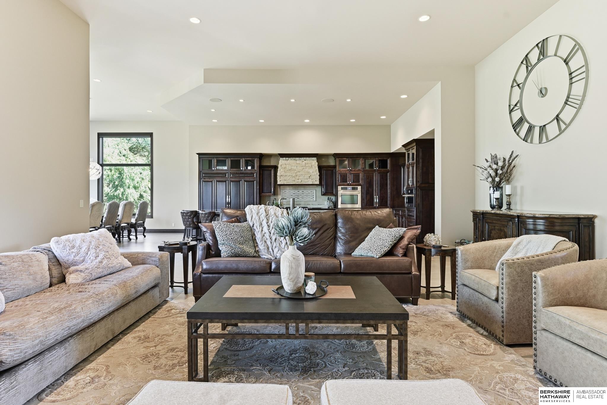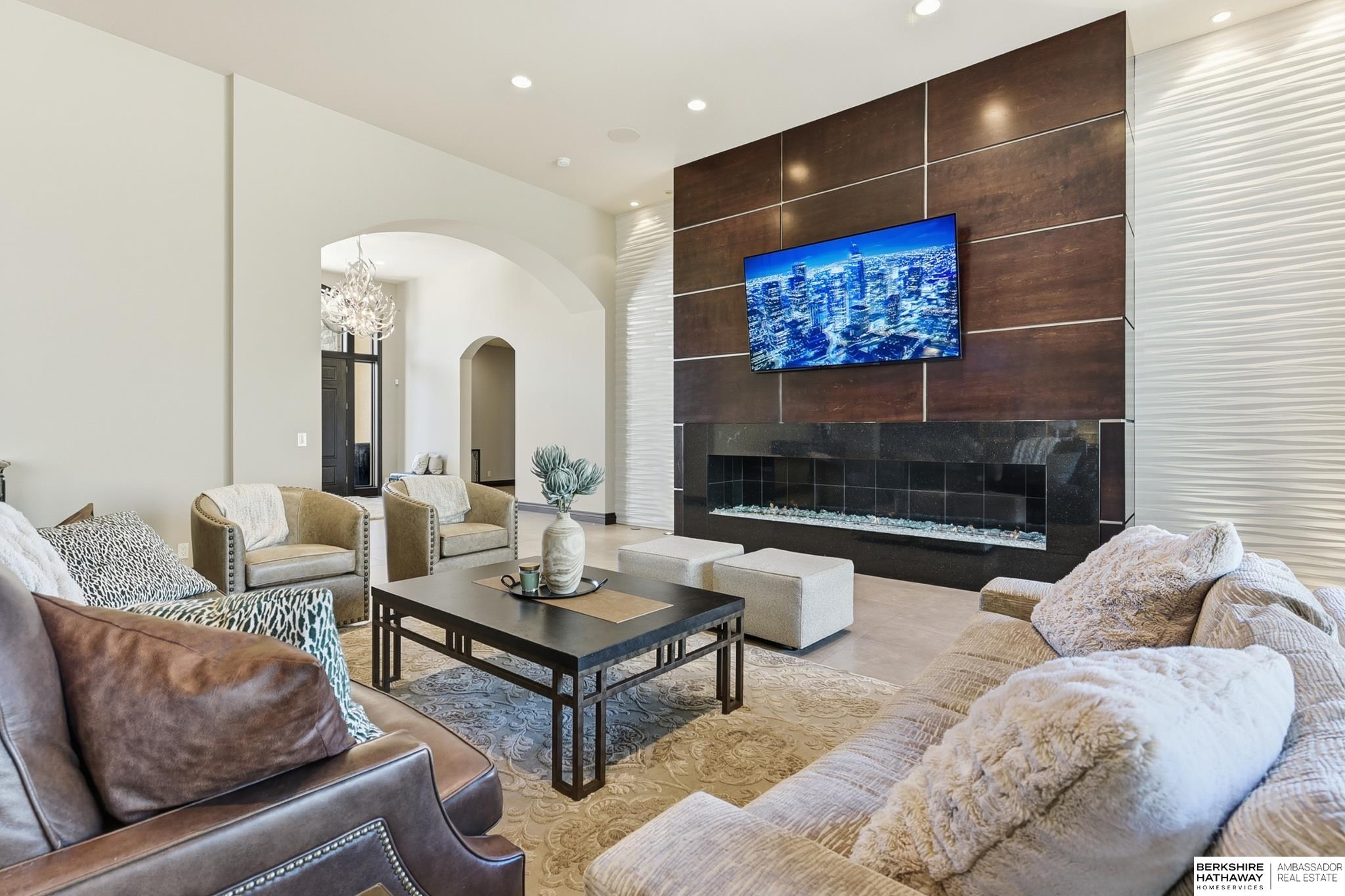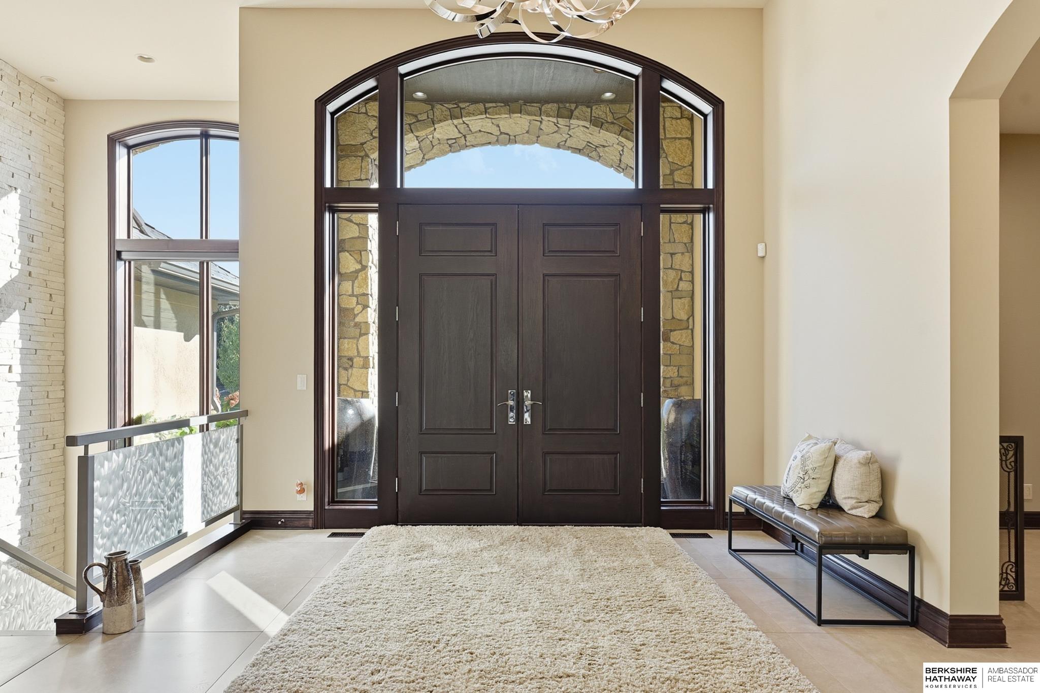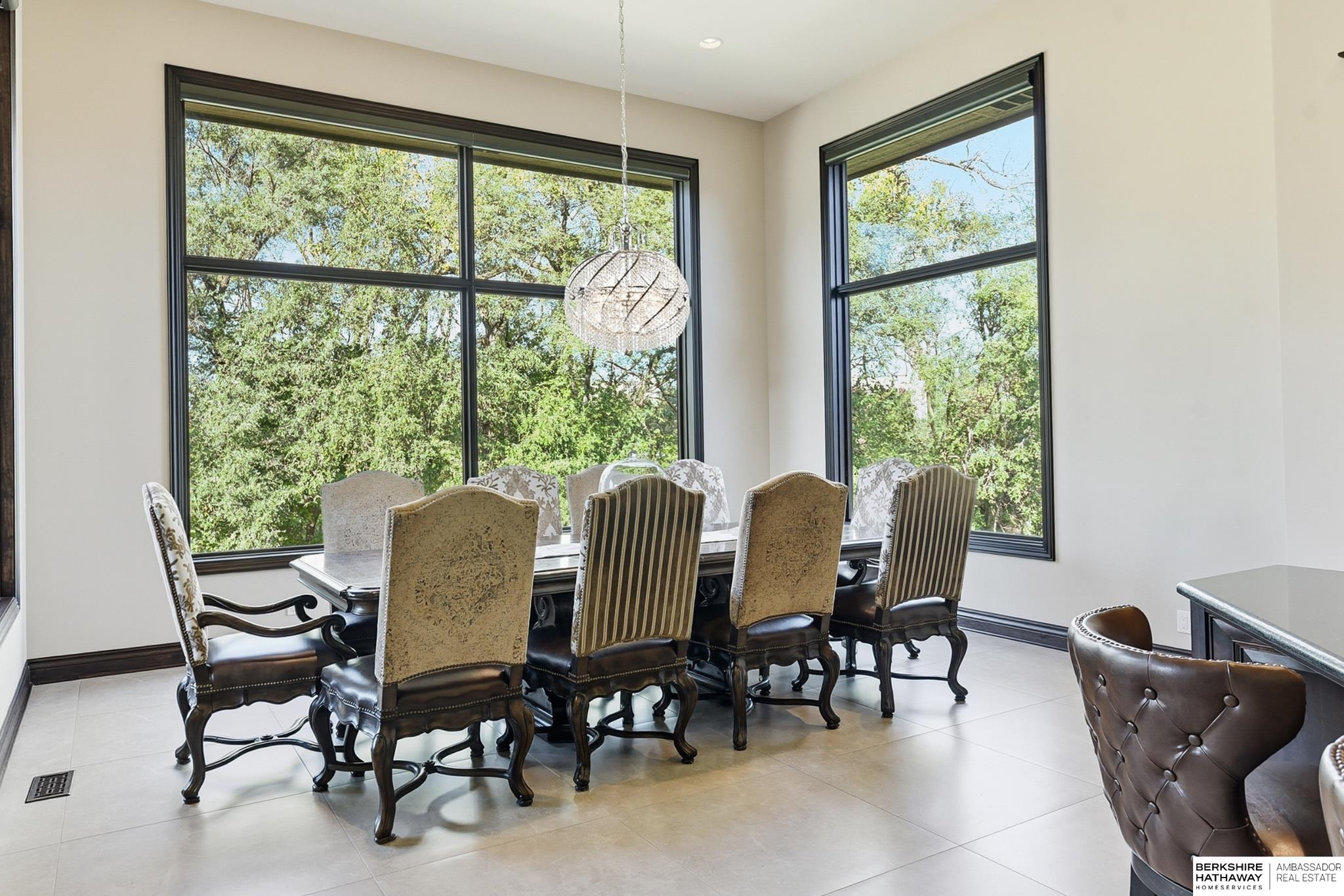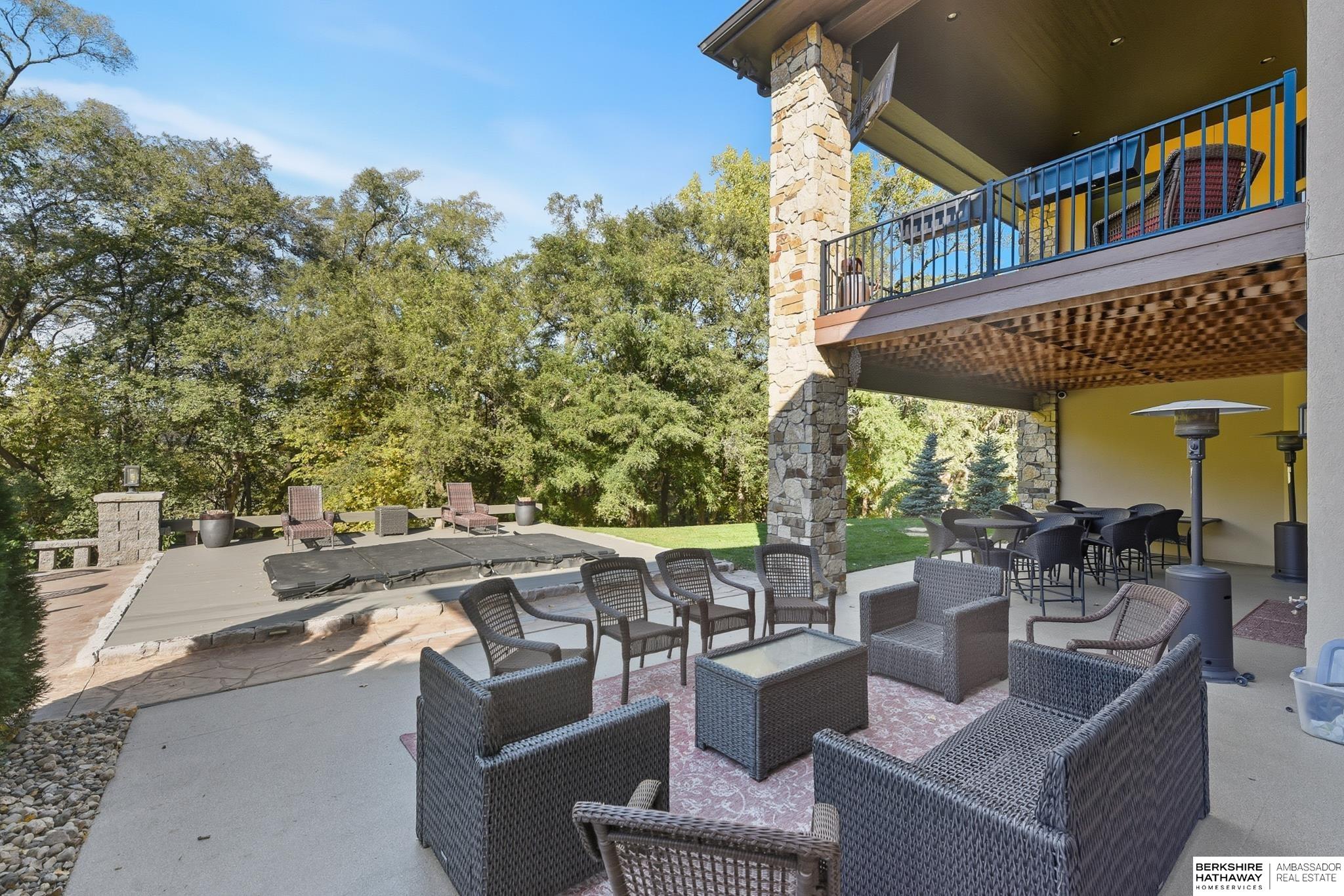 Tucked away in Omaha's prestigious Legacy neighborhood, 17445 Valley Drive epitomizes upscale suburban elegance on a sprawling 1-acre lot enveloped by mature trees, offering unparalleled privacy and tranquility. This architectural gem provides seamless access to top-rated Elkhorn South Schools, the vibrant Legacy shopping district, and the recreational haven of Lake Zorinsky, all within walking distance. This 5-bedroom, 7-bathroom haven is designed for effortless entertaining and multi-generational living, featuring a main-level primary suite with spa-like en-suite, a dedicated home office, a media room, and gym. The gourmet kitchen dazzles with Eurowood cabinetry, high-end appliances, including double ovens and a wine refrigerator, a walk-in pantry, and an oversized island, perfect for casual gatherings. Adjoining formal dining and great rooms flow outdoors to a maintenance-free covered deck, framing views of the lush backyard complete with firepit and lap pool. Must-see!