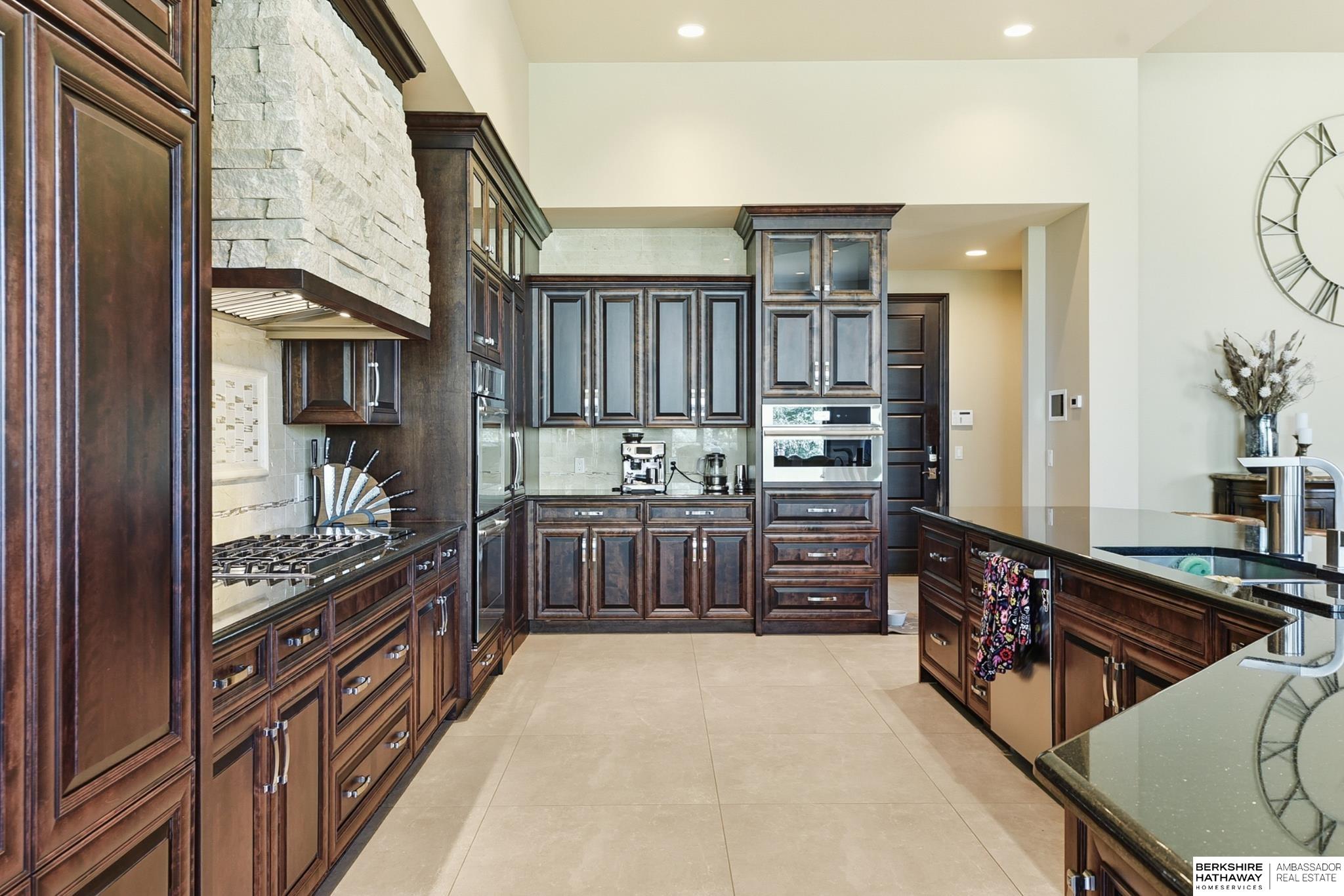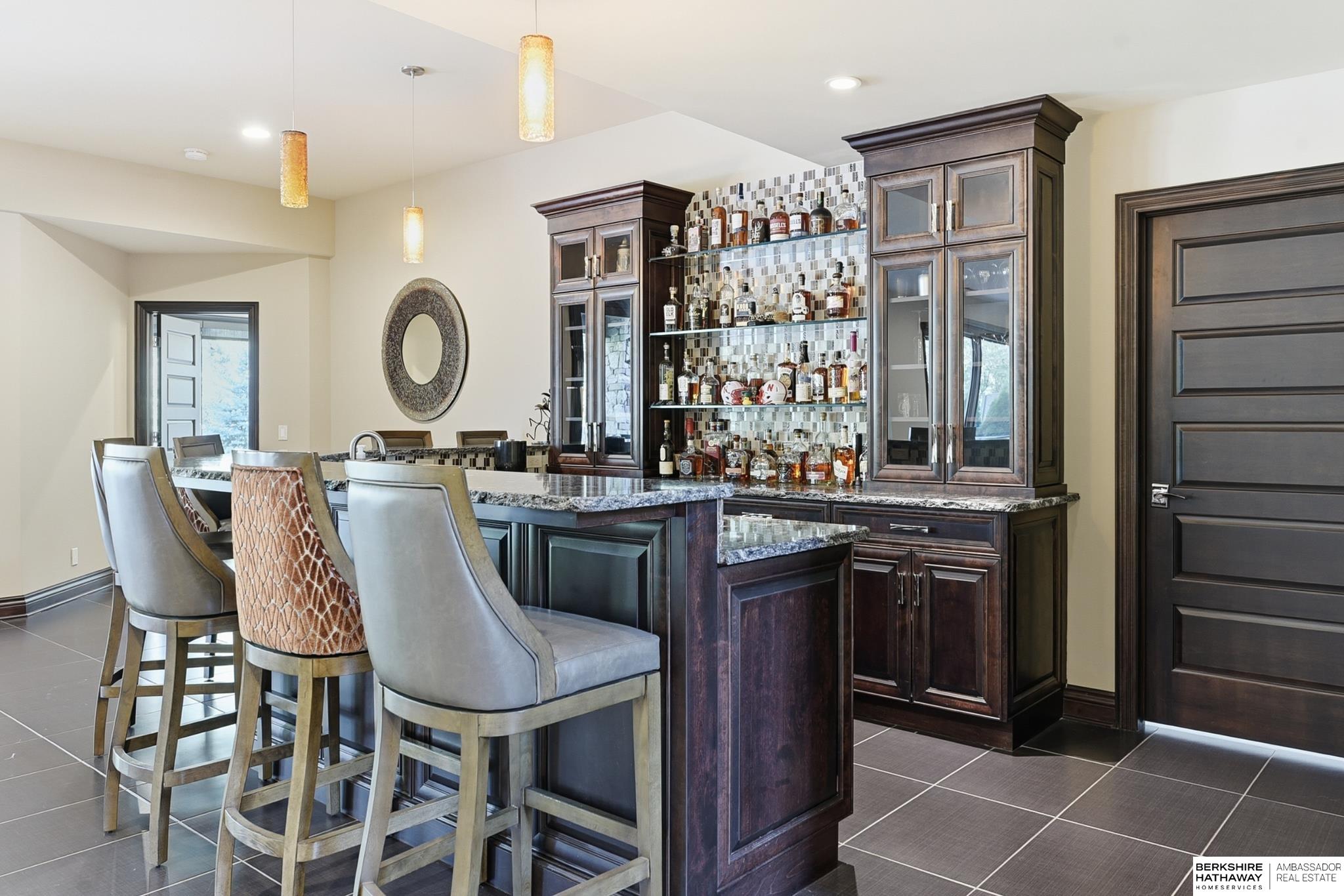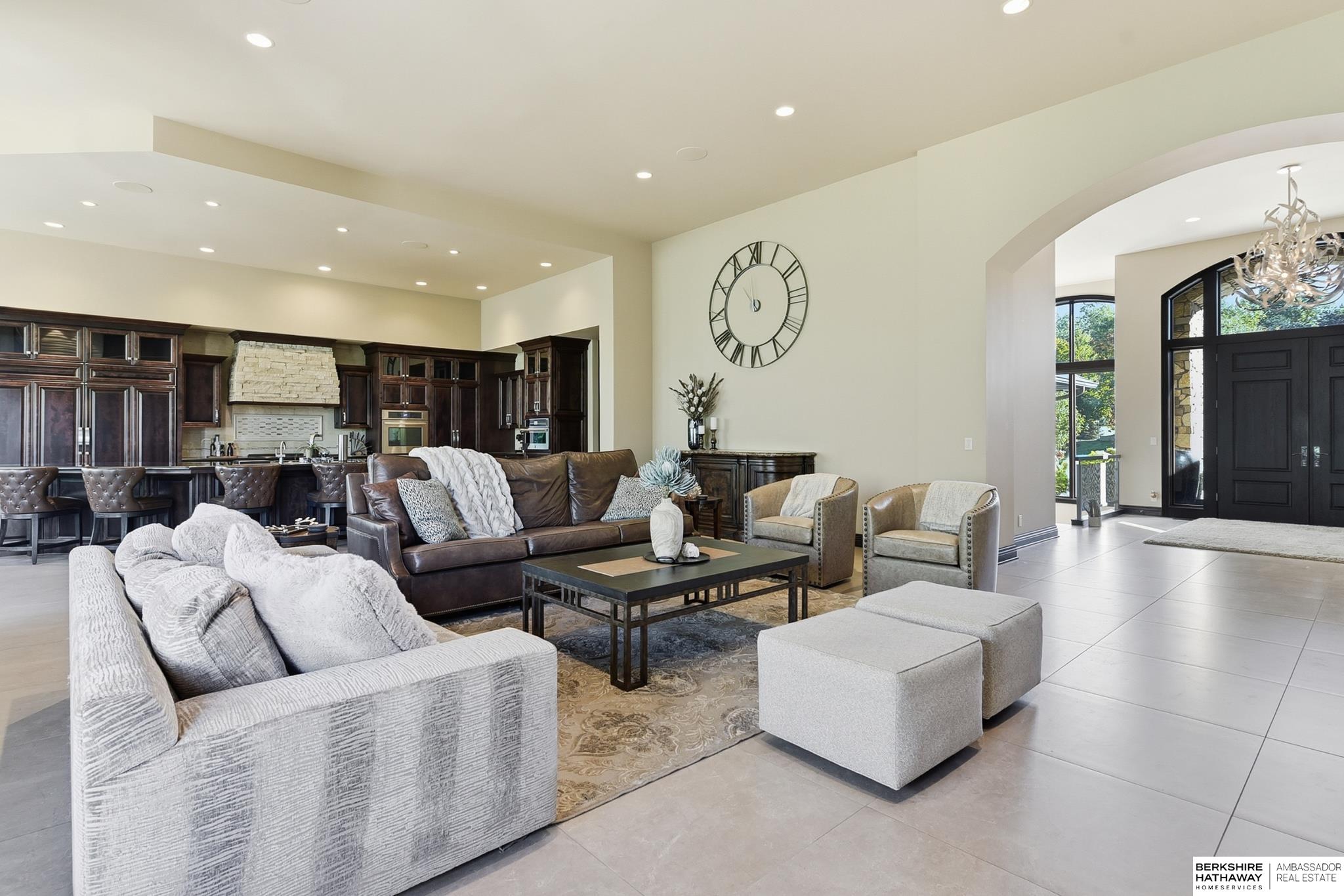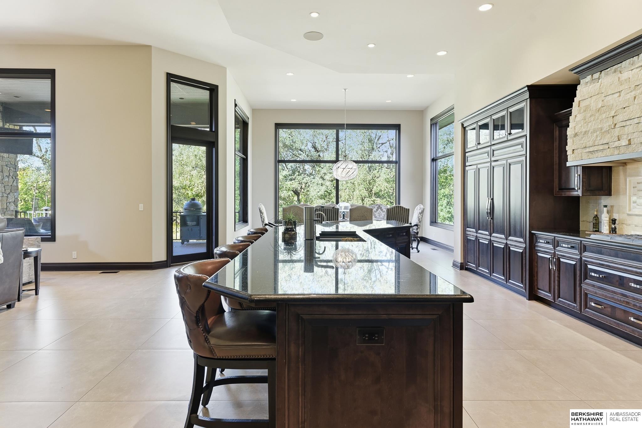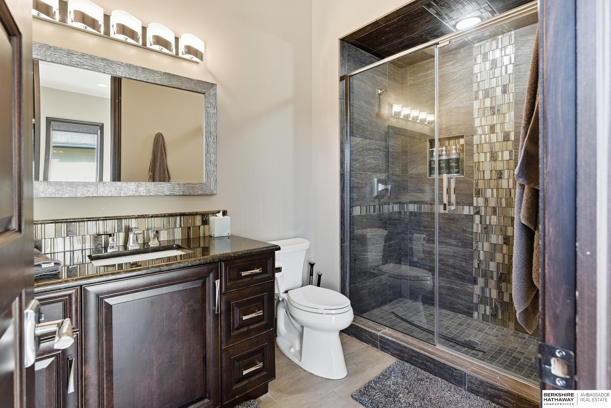 Tucked away in Omaha's prestigious Legacy neighborhood, 17445 Valley Drive epitomizes upscale suburban elegance on a sprawling 1-acre lot enveloped by mature trees, offering unparalleled privacy and tranquility. This architectural gem provides seamless access to top-rated Elkhorn South Schools, the vibrant Legacy shopping district, and the recreational haven of Lake Zorinsky, all within walking distance. This 5-bedroom, 7-bathroom haven is designed for effortless entertaining and multi-generational living, featuring a main-level primary suite with spa-like en-suite, a dedicated home office, a media room, and gym. The gourmet kitchen dazzles with Eurowood cabinetry, high-end appliances, including double ovens and a wine refrigerator, a walk-in pantry, and an oversized island, perfect for casual gatherings. Adjoining formal dining and great rooms flow outdoors to a maintenance-free covered deck, framing views of the lush backyard complete with firepit and lap pool. Must-see!