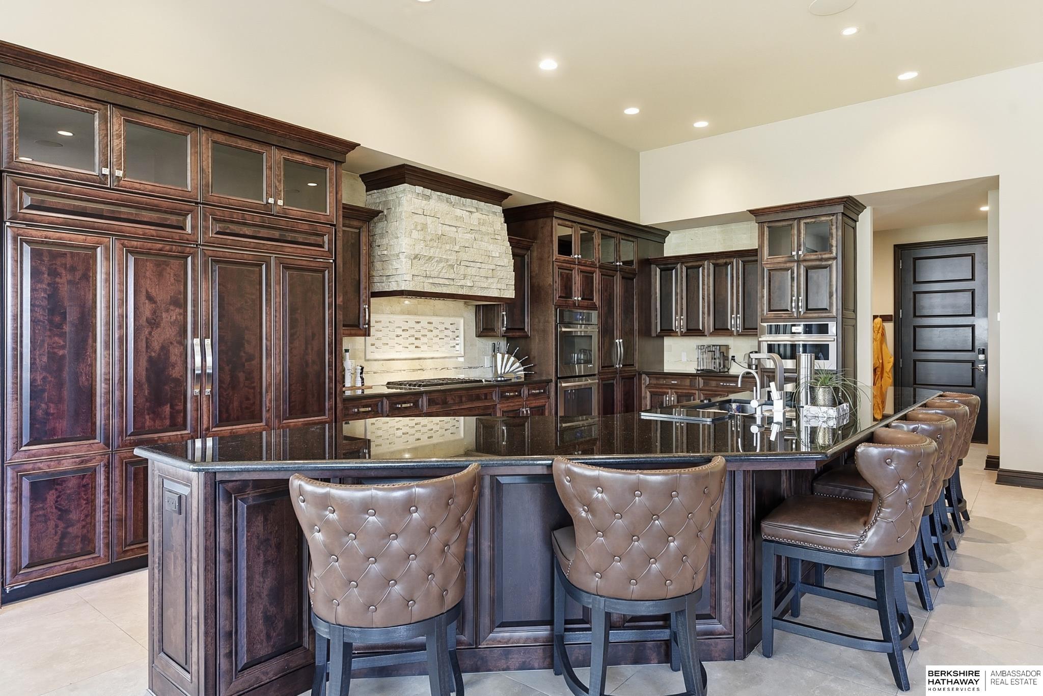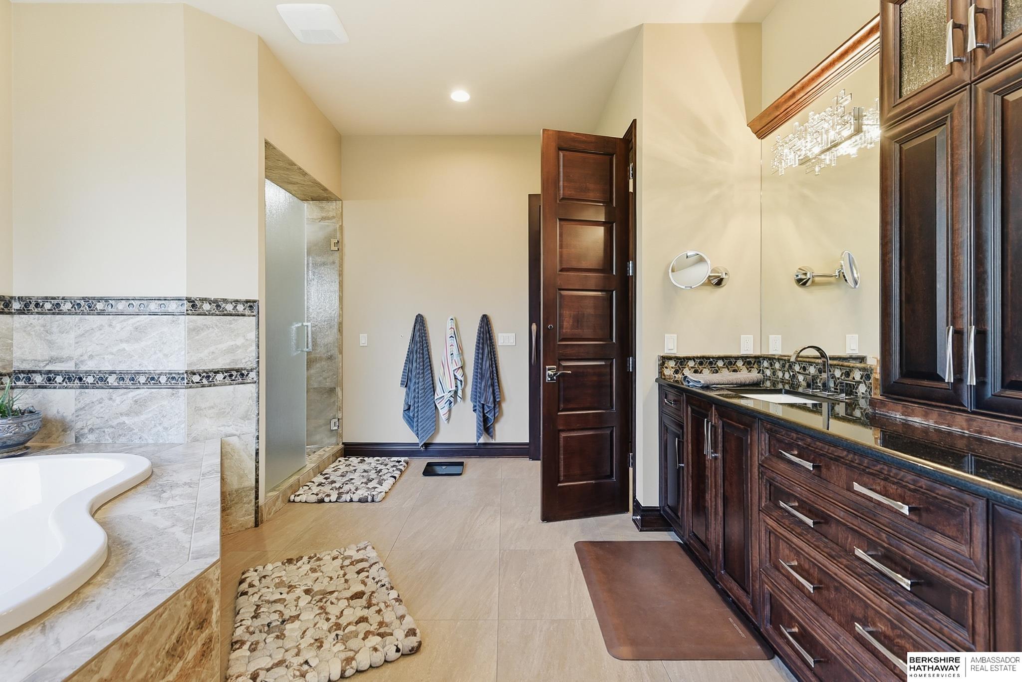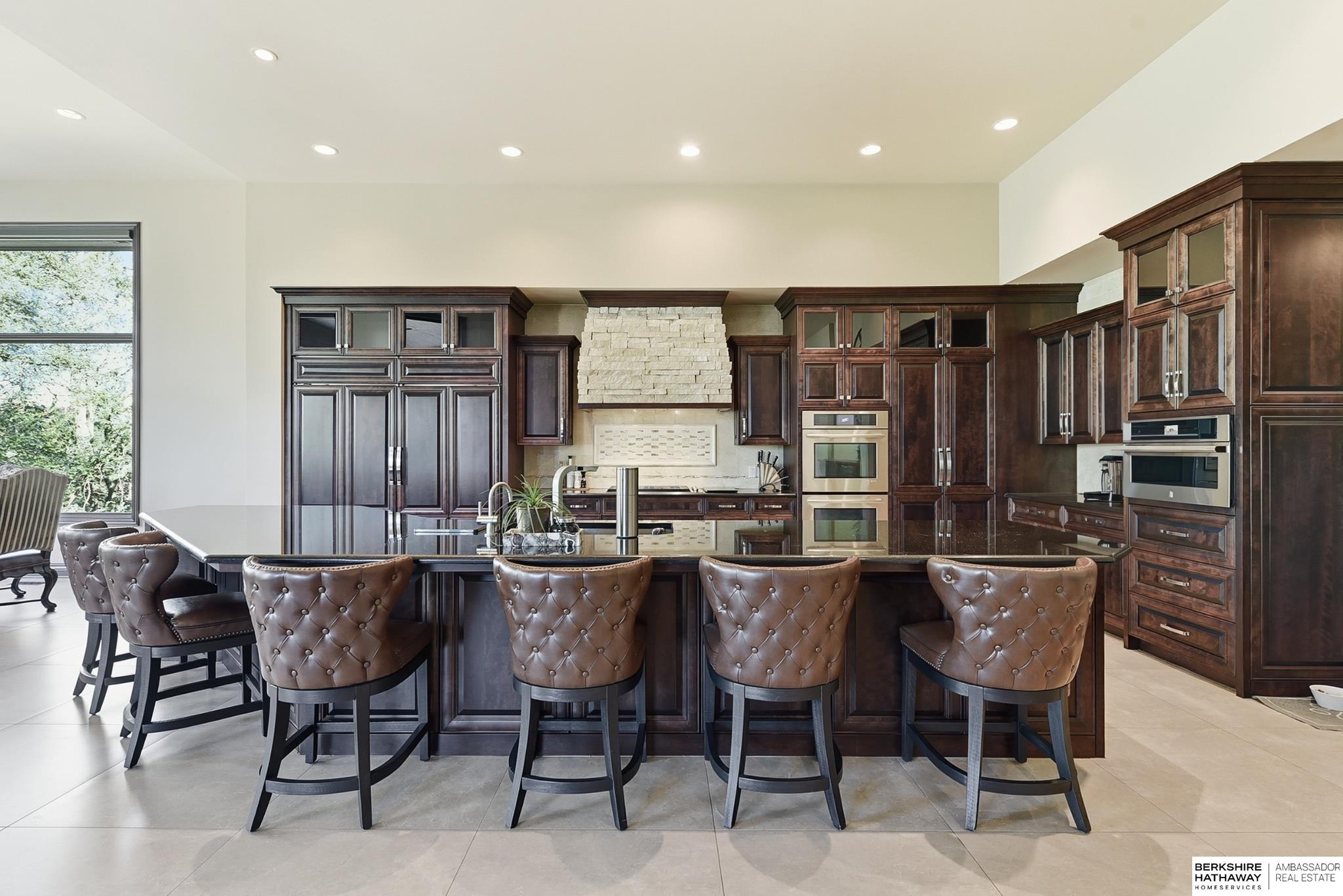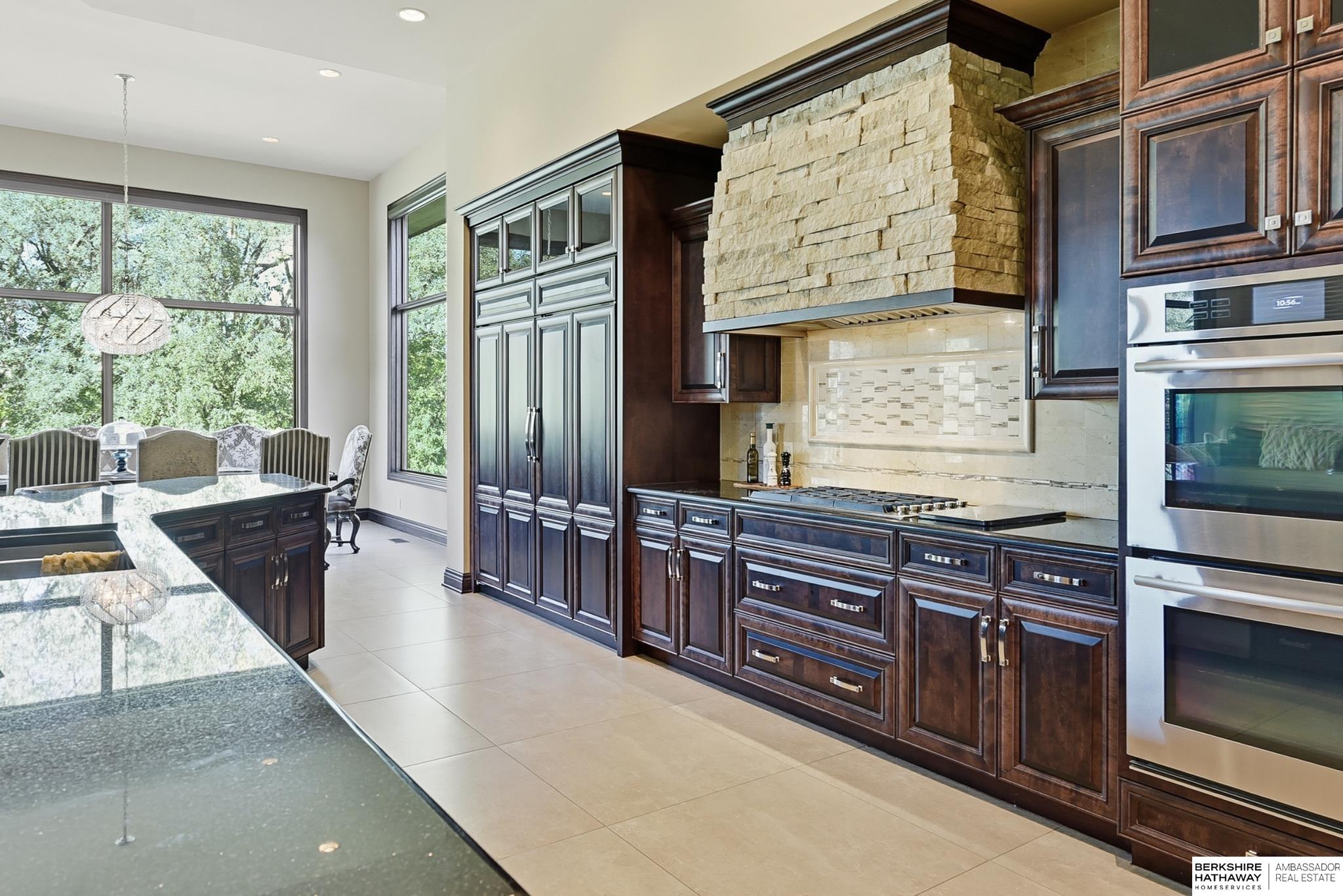 Tucked away in Omaha's prestigious Legacy neighborhood, 17445 Valley Drive epitomizes upscale suburban elegance on a sprawling 1-acre lot enveloped by mature trees, offering unparalleled privacy and tranquility. This architectural gem provides seamless access to top-rated Elkhorn South Schools, the vibrant Legacy shopping district, and the recreational haven of Lake Zorinsky, all within walking distance. This 5-bedroom, 7-bathroom haven is designed for effortless entertaining and multi-generational living, featuring a main-level primary suite with spa-like en-suite, a dedicated home office, a media room, and gym. The gourmet kitchen dazzles with Eurowood cabinetry, high-end appliances, including double ovens and a wine refrigerator, a walk-in pantry, and an oversized island, perfect for casual gatherings. Adjoining formal dining and great rooms flow outdoors to a maintenance-free covered deck, framing views of the lush backyard complete with firepit and lap pool. Must-see!