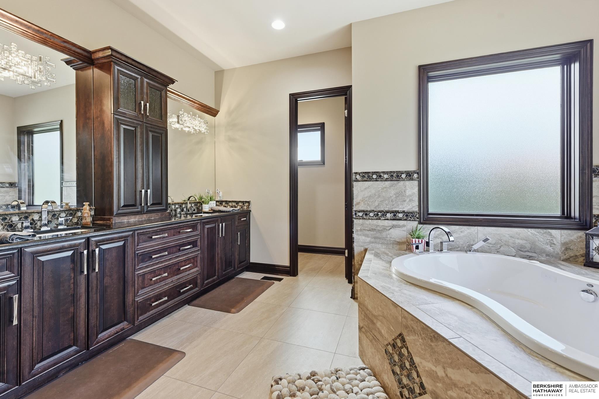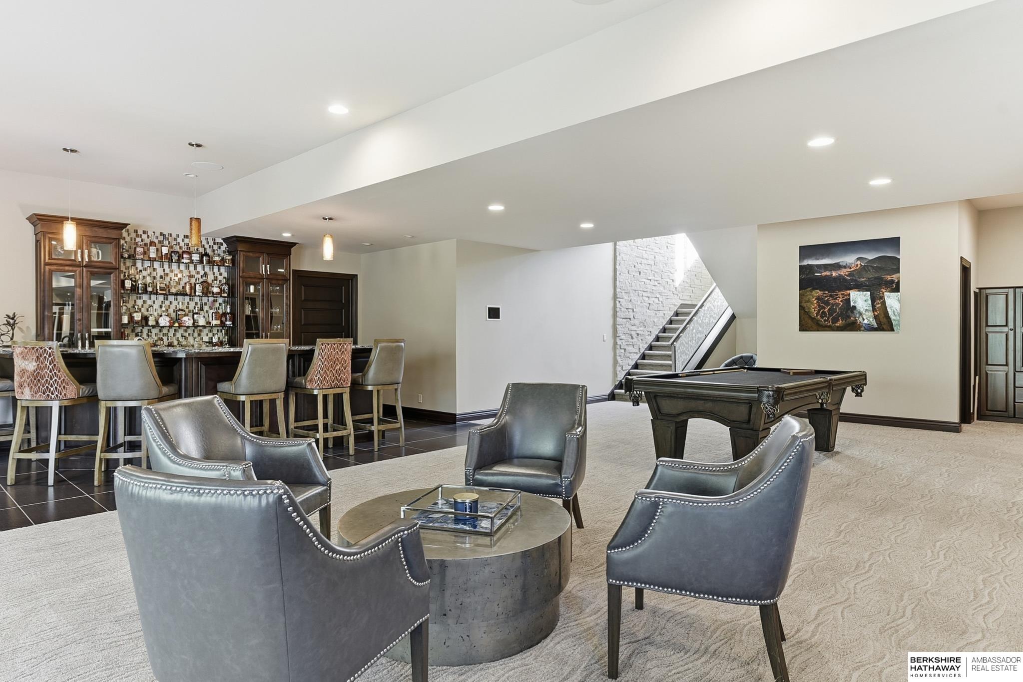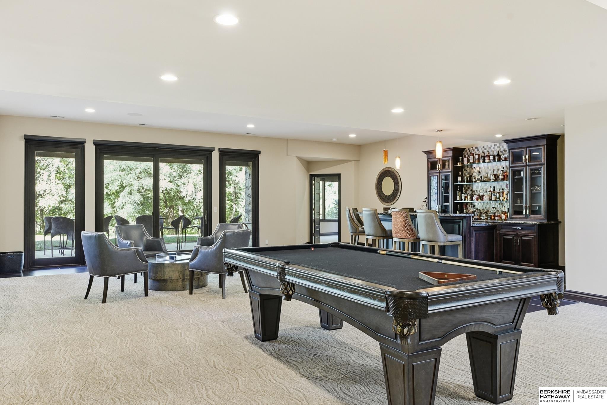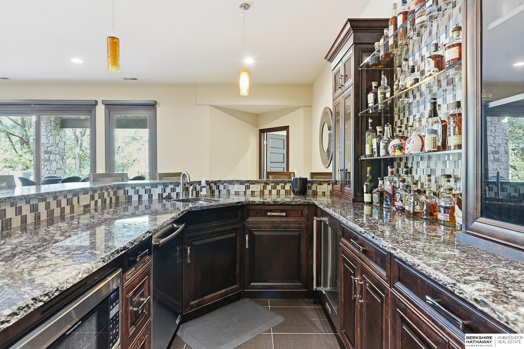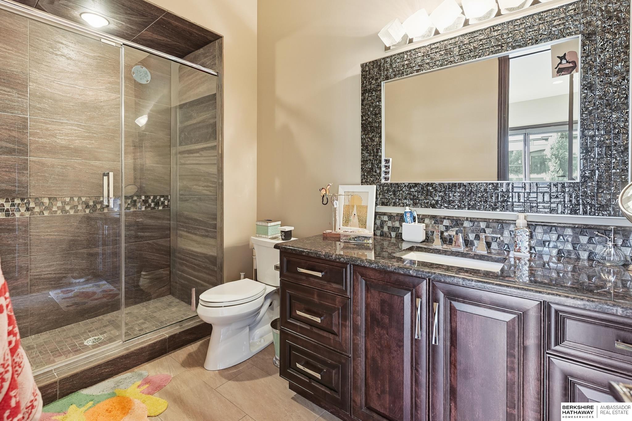 Tucked away in Omaha's prestigious Legacy neighborhood, 17445 Valley Drive epitomizes upscale suburban elegance on a sprawling 1-acre lot enveloped by mature trees, offering unparalleled privacy and tranquility. This architectural gem provides seamless access to top-rated Elkhorn South Schools, the vibrant Legacy shopping district, and the recreational haven of Lake Zorinsky, all within walking distance. This 5-bedroom, 7-bathroom haven is designed for effortless entertaining and multi-generational living, featuring a main-level primary suite with spa-like en-suite, a dedicated home office, a media room, and gym. The gourmet kitchen dazzles with Eurowood cabinetry, high-end appliances, including double ovens and a wine refrigerator, a walk-in pantry, and an oversized island, perfect for casual gatherings. Adjoining formal dining and great rooms flow outdoors to a maintenance-free covered deck, framing views of the lush backyard complete with firepit and lap pool. Must-see!