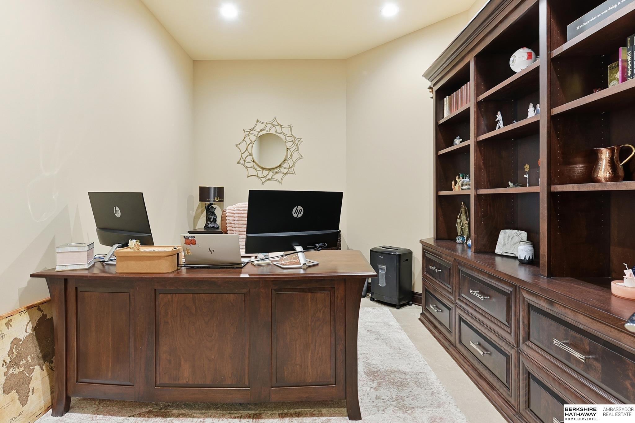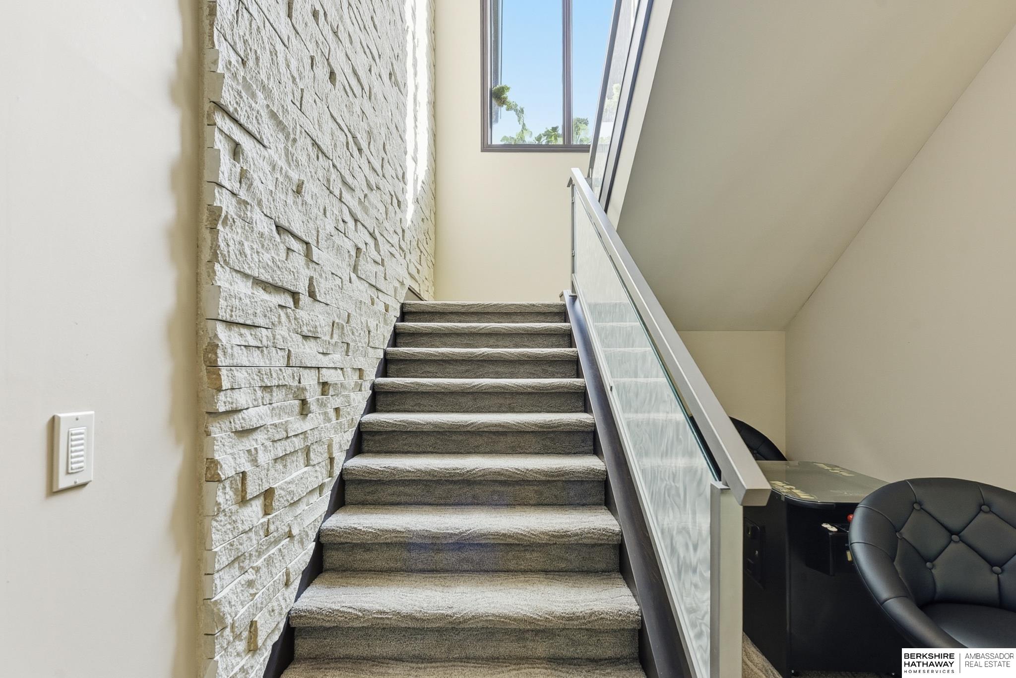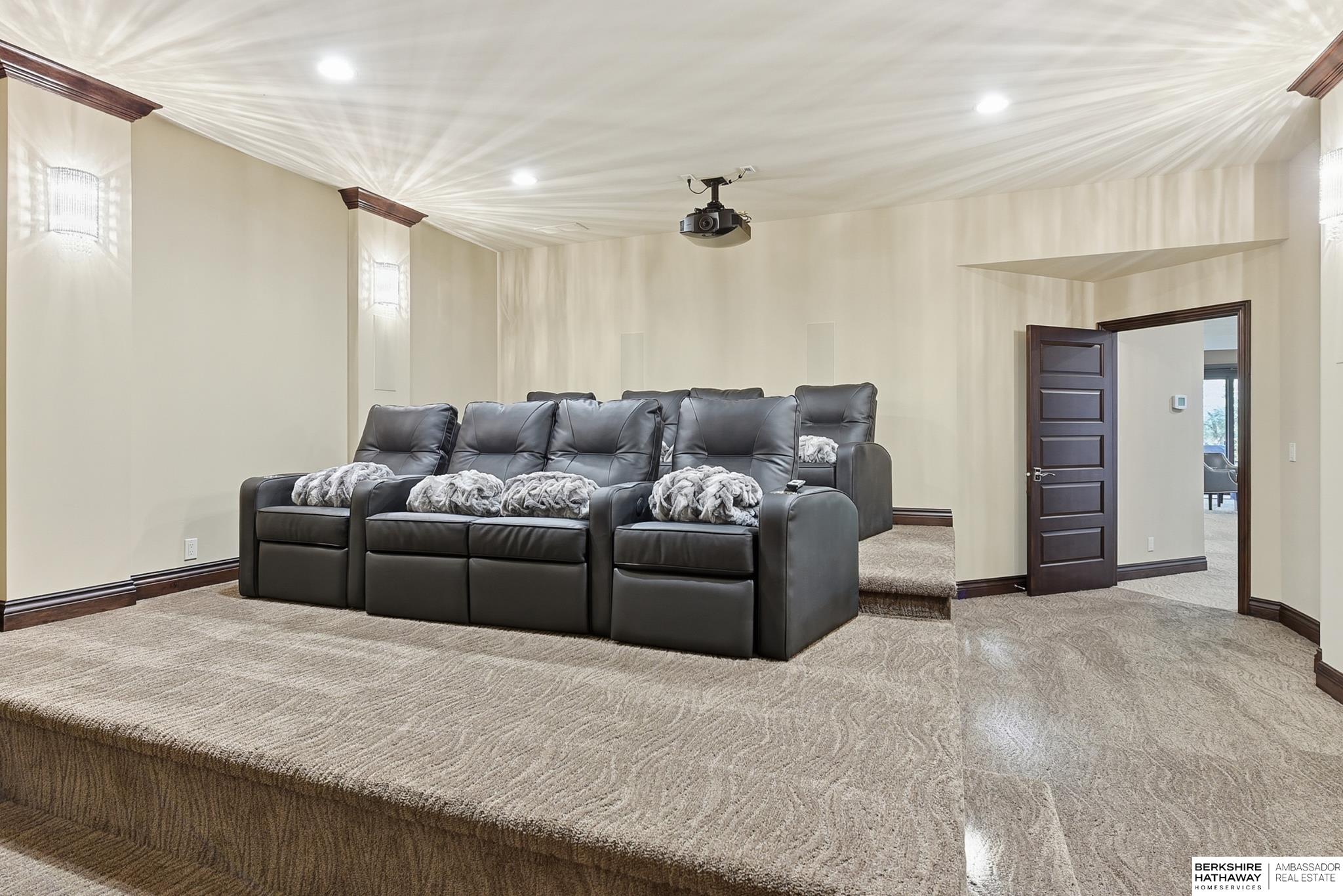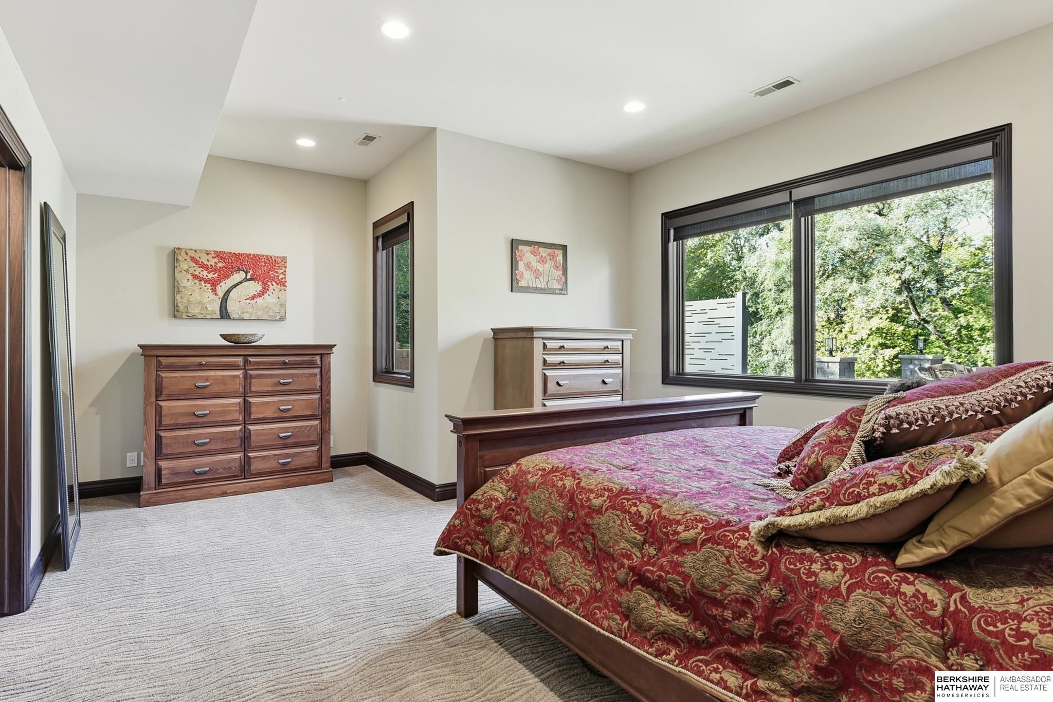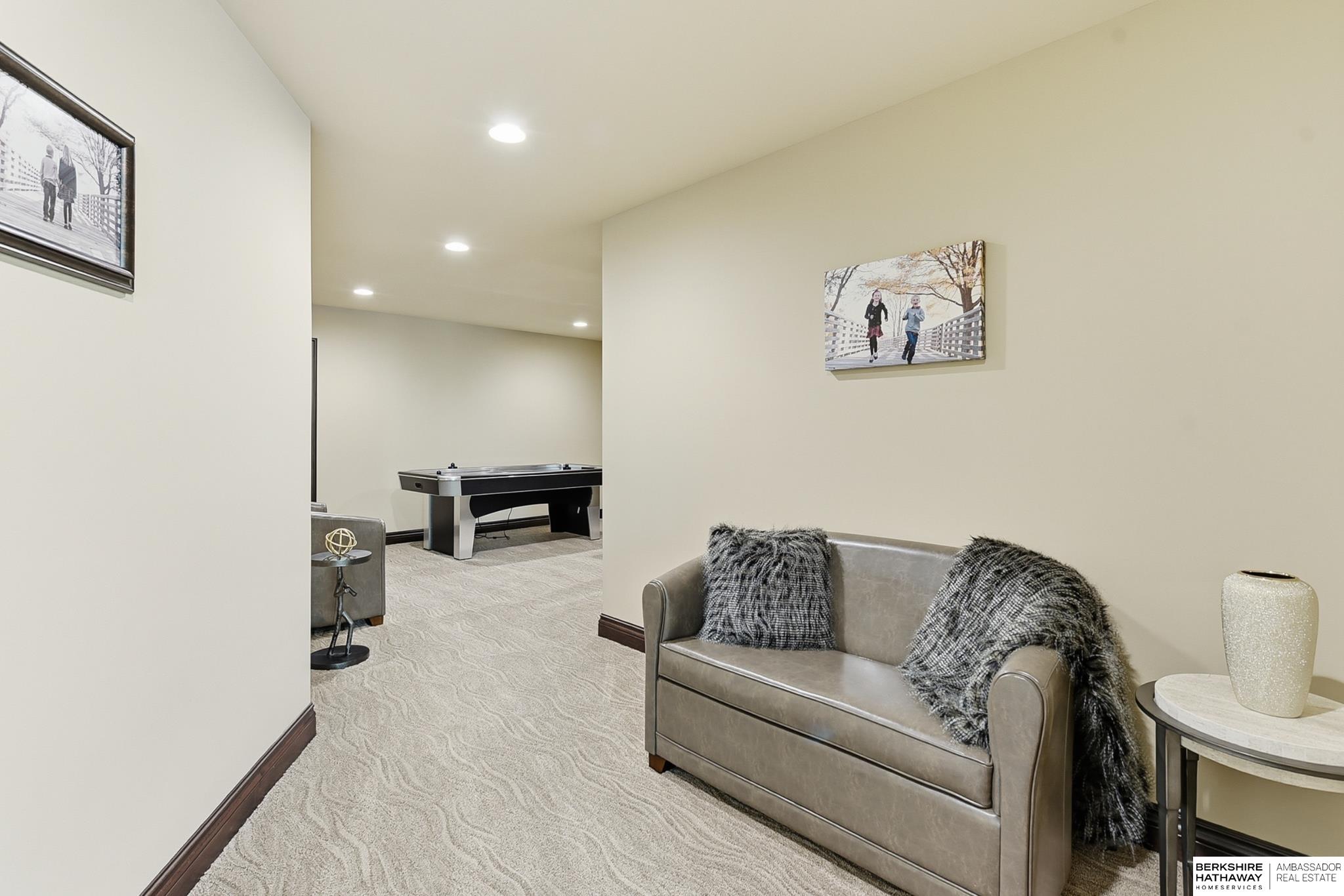 Tucked away in Omaha's prestigious Legacy neighborhood, 17445 Valley Drive epitomizes upscale suburban elegance on a sprawling 1-acre lot enveloped by mature trees, offering unparalleled privacy and tranquility. This architectural gem provides seamless access to top-rated Elkhorn South Schools, the vibrant Legacy shopping district, and the recreational haven of Lake Zorinsky, all within walking distance. This 5-bedroom, 7-bathroom haven is designed for effortless entertaining and multi-generational living, featuring a main-level primary suite with spa-like en-suite, a dedicated home office, a media room, and gym. The gourmet kitchen dazzles with Eurowood cabinetry, high-end appliances, including double ovens and a wine refrigerator, a walk-in pantry, and an oversized island, perfect for casual gatherings. Adjoining formal dining and great rooms flow outdoors to a maintenance-free covered deck, framing views of the lush backyard complete with firepit and lap pool. Must-see!