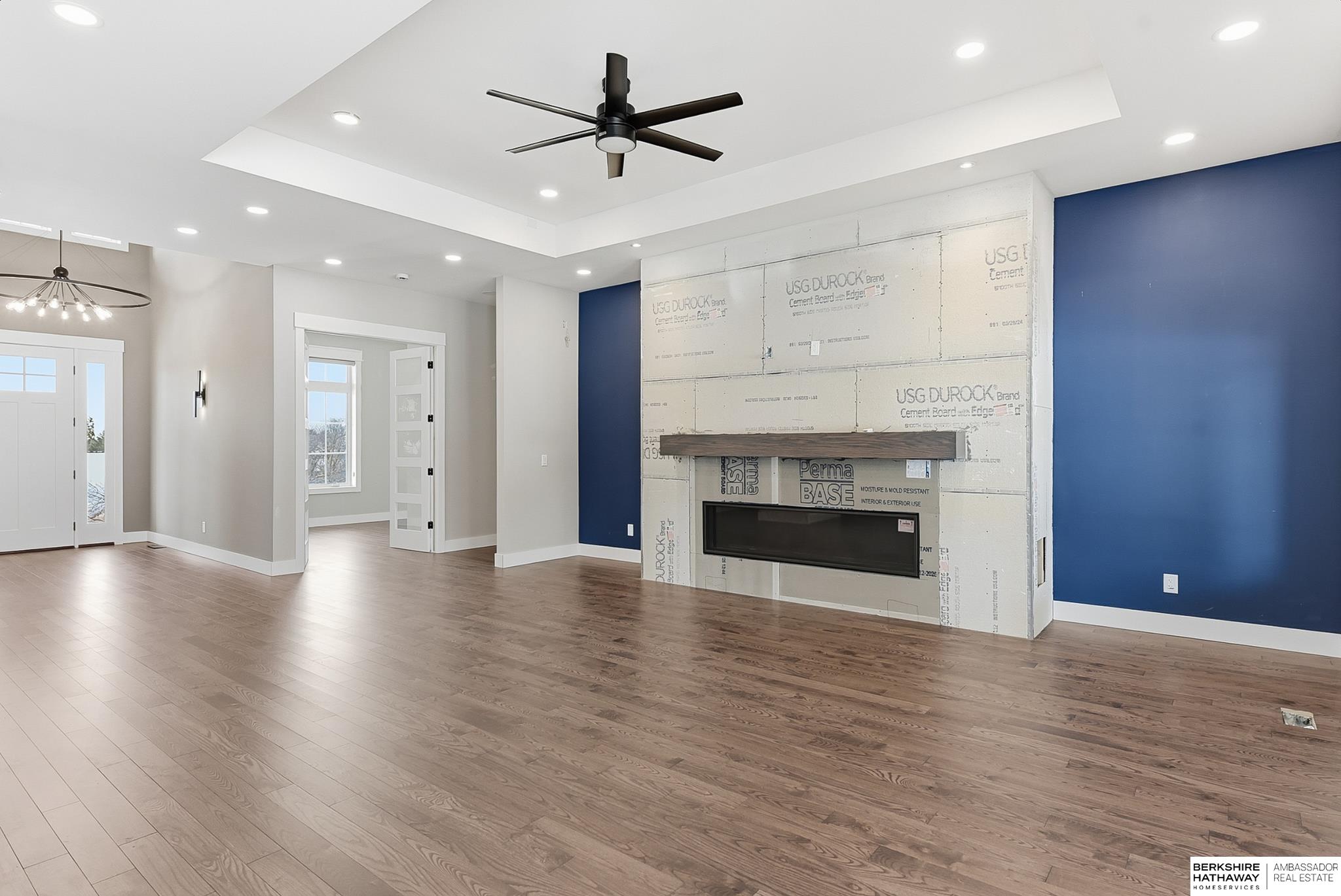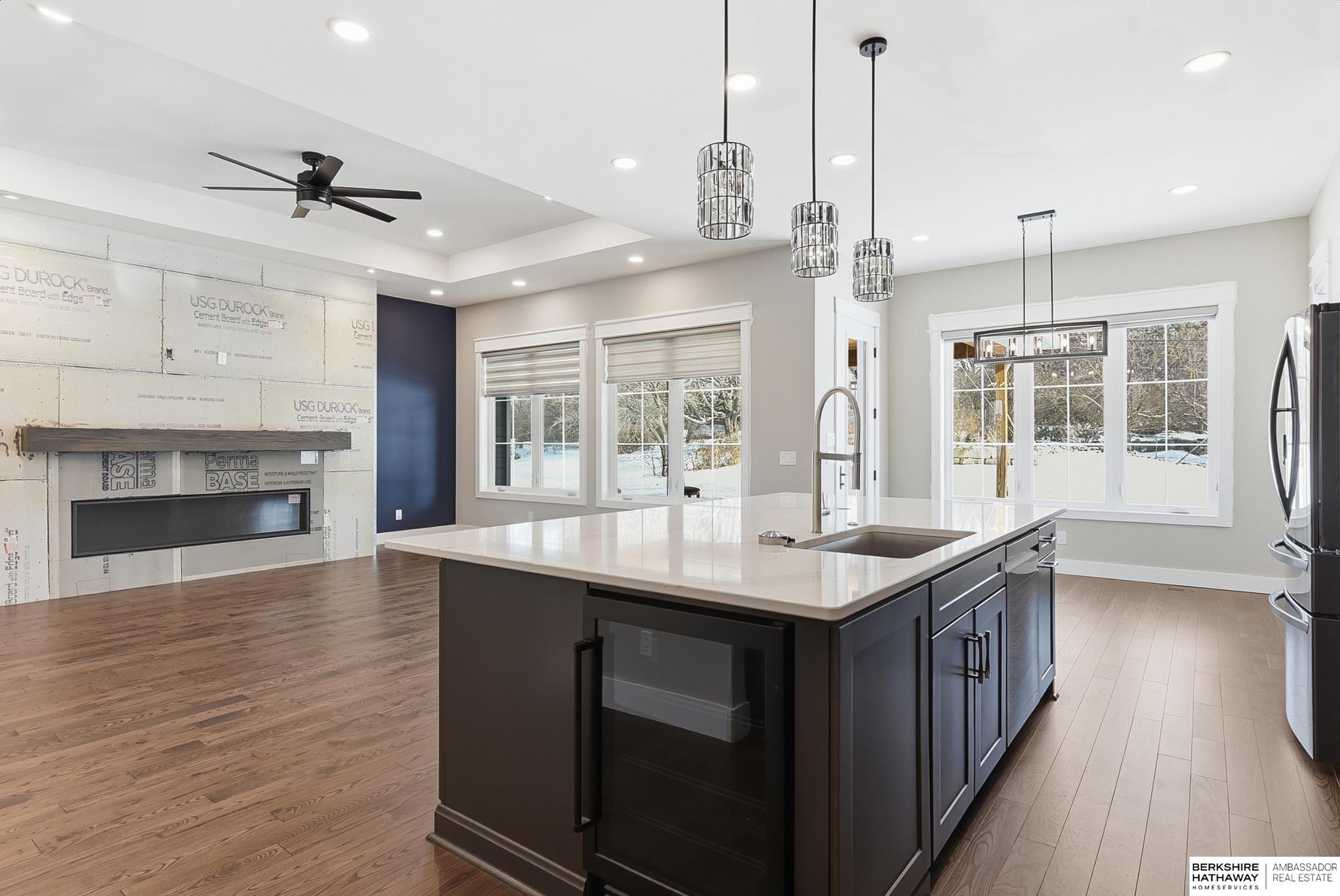 Rare opportunity to own a unique new construction ranch on a prime ¾ acre lot in highly sought-after District 66 and make the final touches on your own. Open, modern floor plan with 4 bedrooms on the Main and 2 fireplaces. An oversized upper and lower garage provides an exceptional EIGHT-CAR capacity - ideal for car enthusiasts, hobbyists, or extra storage. The expansive unfinished basement boasts an oversized garage footprint and 20-FT ceilings, offering endless possibilities for recreation space, golf simulator, RV parking, workshop, additional car storage, and more. Walk to schools and Countryside Village dining, shopping, and events. Note: fireplace surround and one bedroom & bathroom and misc details were left unfinished. This is an opportunity to make your own finishing touches on a new construction home in a premier location. Property is being sold AS-IS.