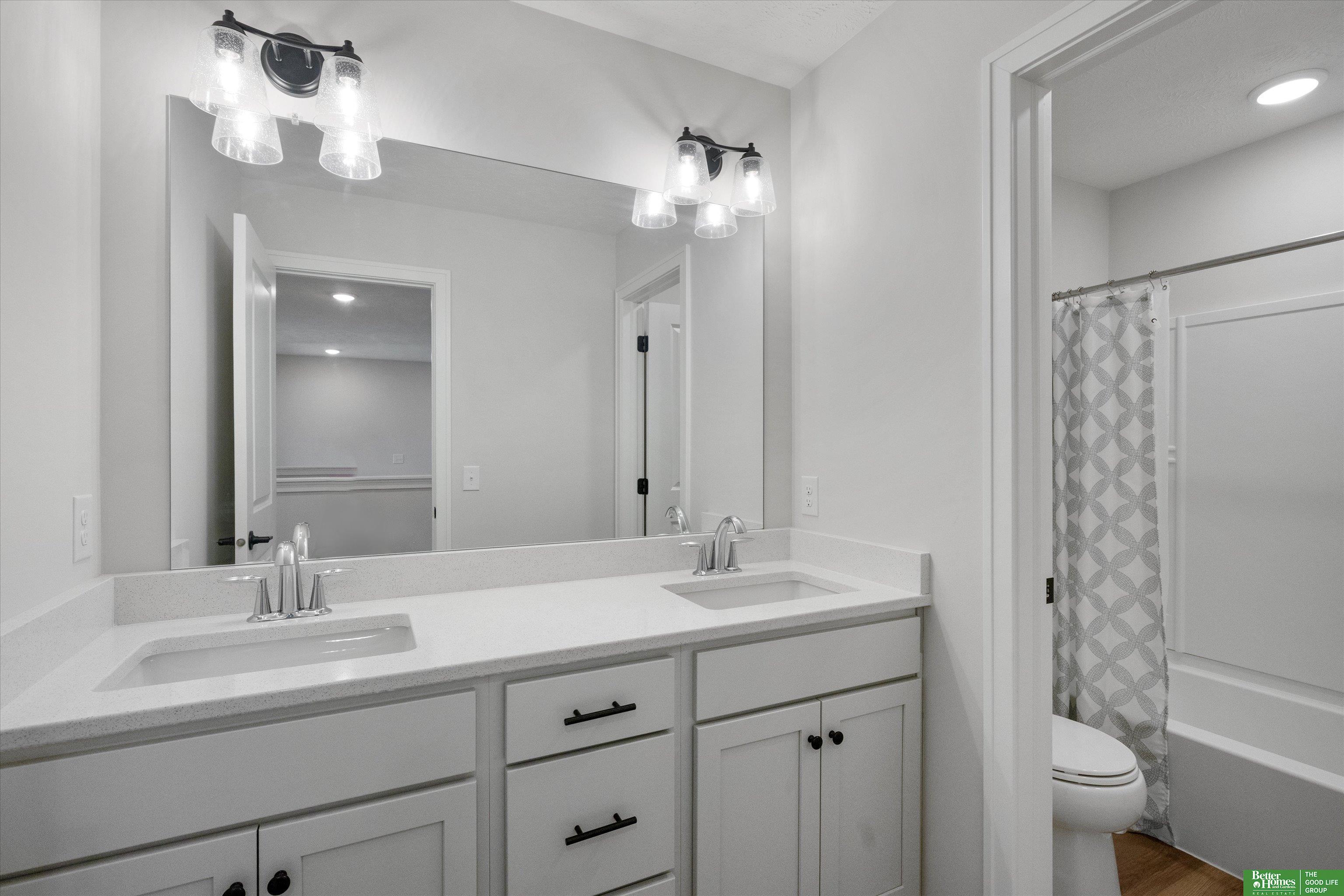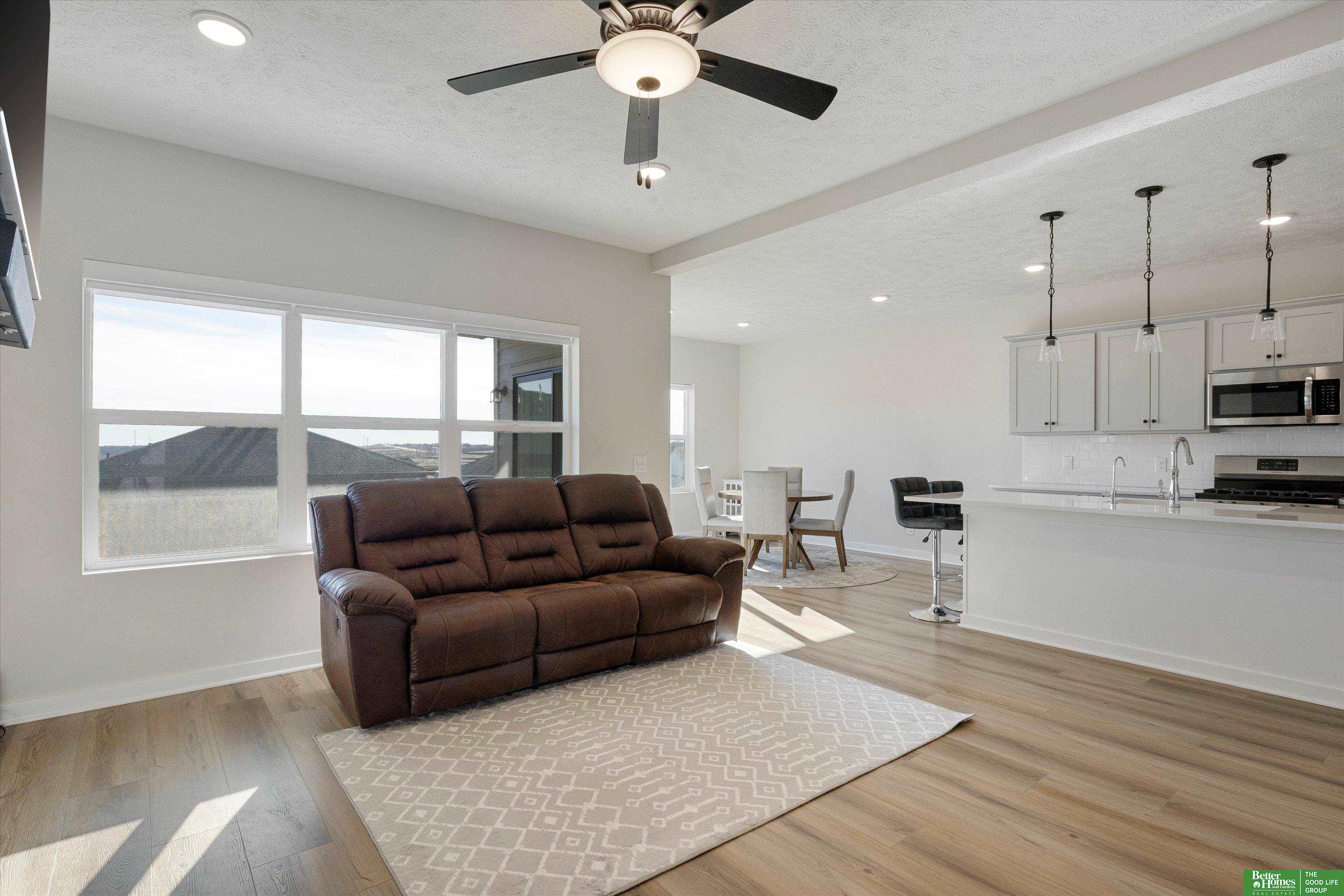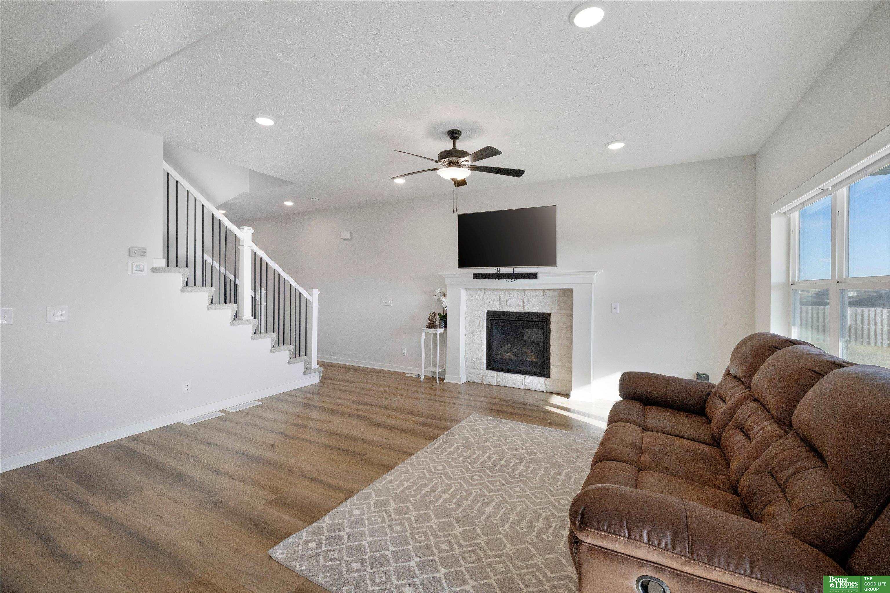 Why wait to build and pay new construction prices when you can have this beautiful home in LIKE NEW condition without the new construction price tag! PLUS, all appliances are included and window coverings on the main and 2nd floor saving you thousands of dollars! Built in 2023 by reputable and quality builder, The Home Company. Open main floor concept is great for entertaining and everyday living. Spacious kitchen w/ ample cabinet space, large center island, quartz counters and gas cooking overlooks family room w/ fireplace. Dining area walks out to covered patio and large corner lot w/ sprinkler system. Large drop zone and great pantry space. Convenient 2nd floor laundry room. Primary bedroom has vaulted ceiling, 3/4 bathroom w/ double vanity and great walk-in closet plus views of Flanagan Lake! Unfinished basement is a blank canvas waiting for your ideas and touches. There are multiple access points throughout the neighborhood to the walking trails that take you around the Lake.