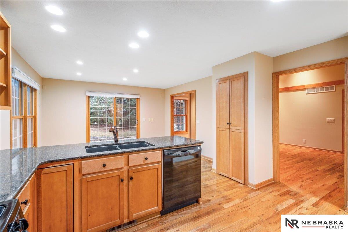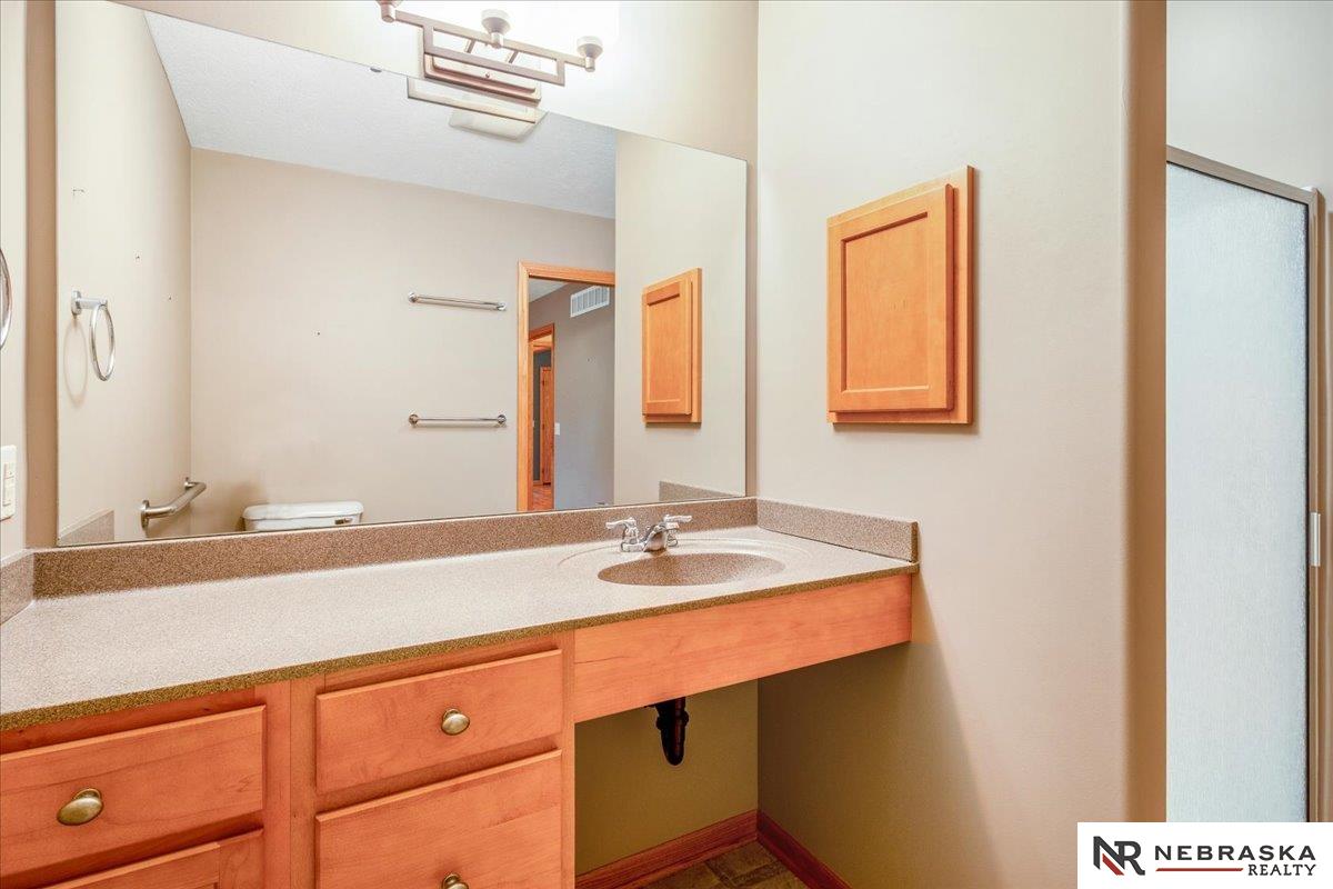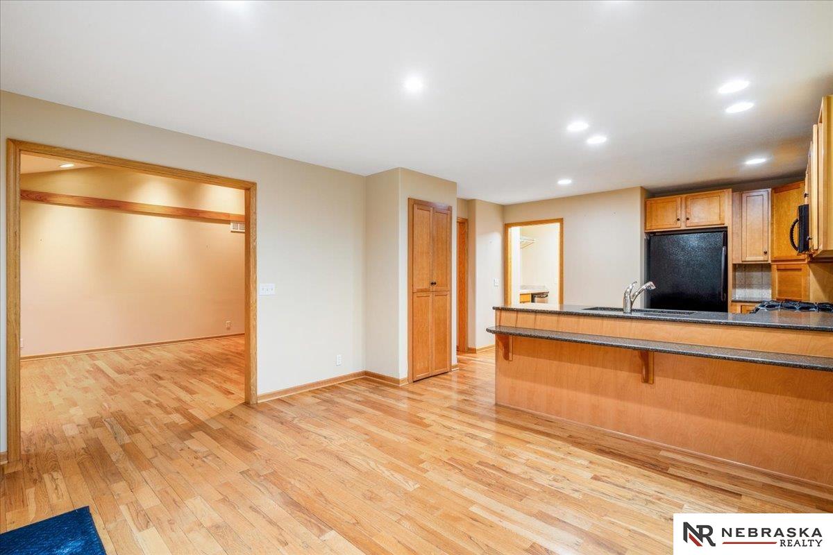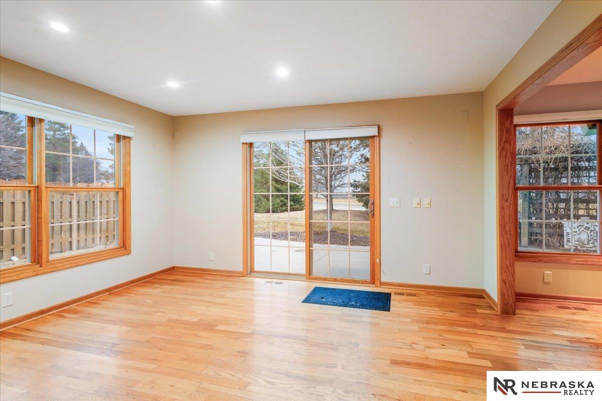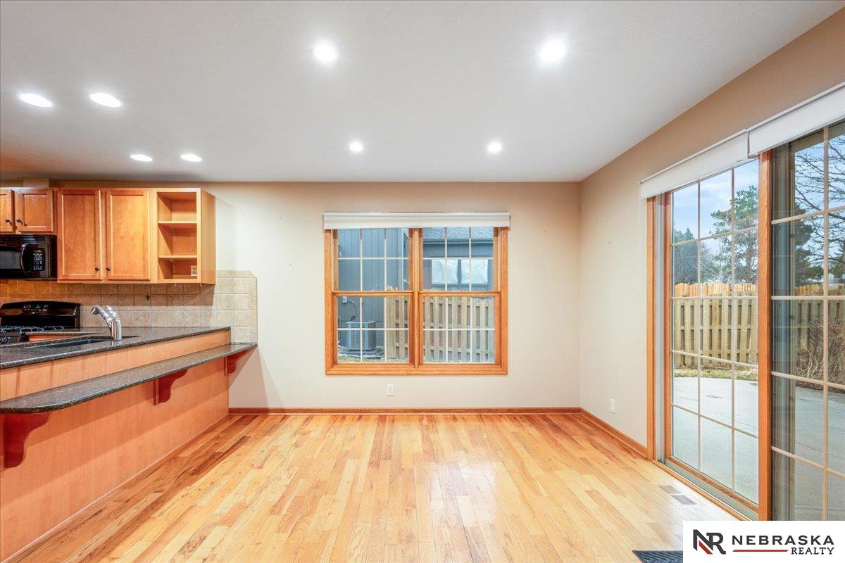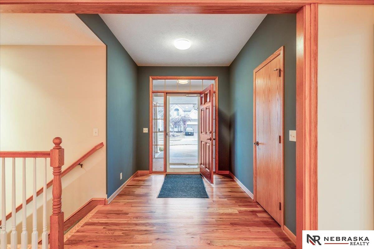 Showings Start Friday 3/6! Location truly doesn’t get better than this! Nestled in a fantastic Elkhorn neighborhood, this zero-entry ranch home is just steps away from shopping, dining, and entertainment — convenience at your doorstep. Step inside to abundant natural light and beautiful wood floors flowing throughout the main level. The thoughtfully designed primary suite includes a handicapped-accessible bath for comfort and ease. An extra-large second bedroom offers incredible flexibility and could easily be divided to create an additional bedroom or office space. The spacious finished basement opens the door to endless possibilities — media room, workout space, guest retreat — complete with a ¾ bath and generous storage. Outside, mature landscaping creates a peaceful setting, while the sprinkler system and patio perfectly finish out this beautiful home. Comfort, convenience, and opportunity all in one — don’t miss it!