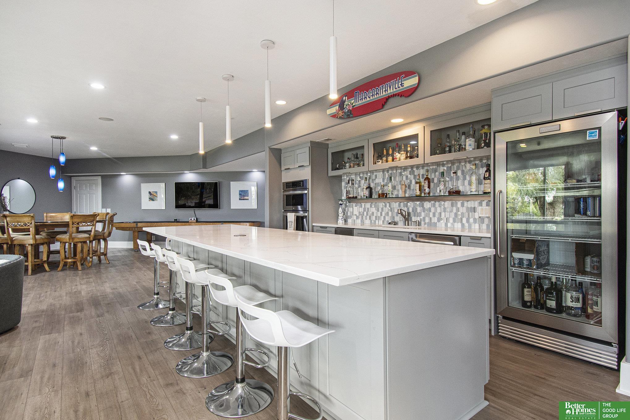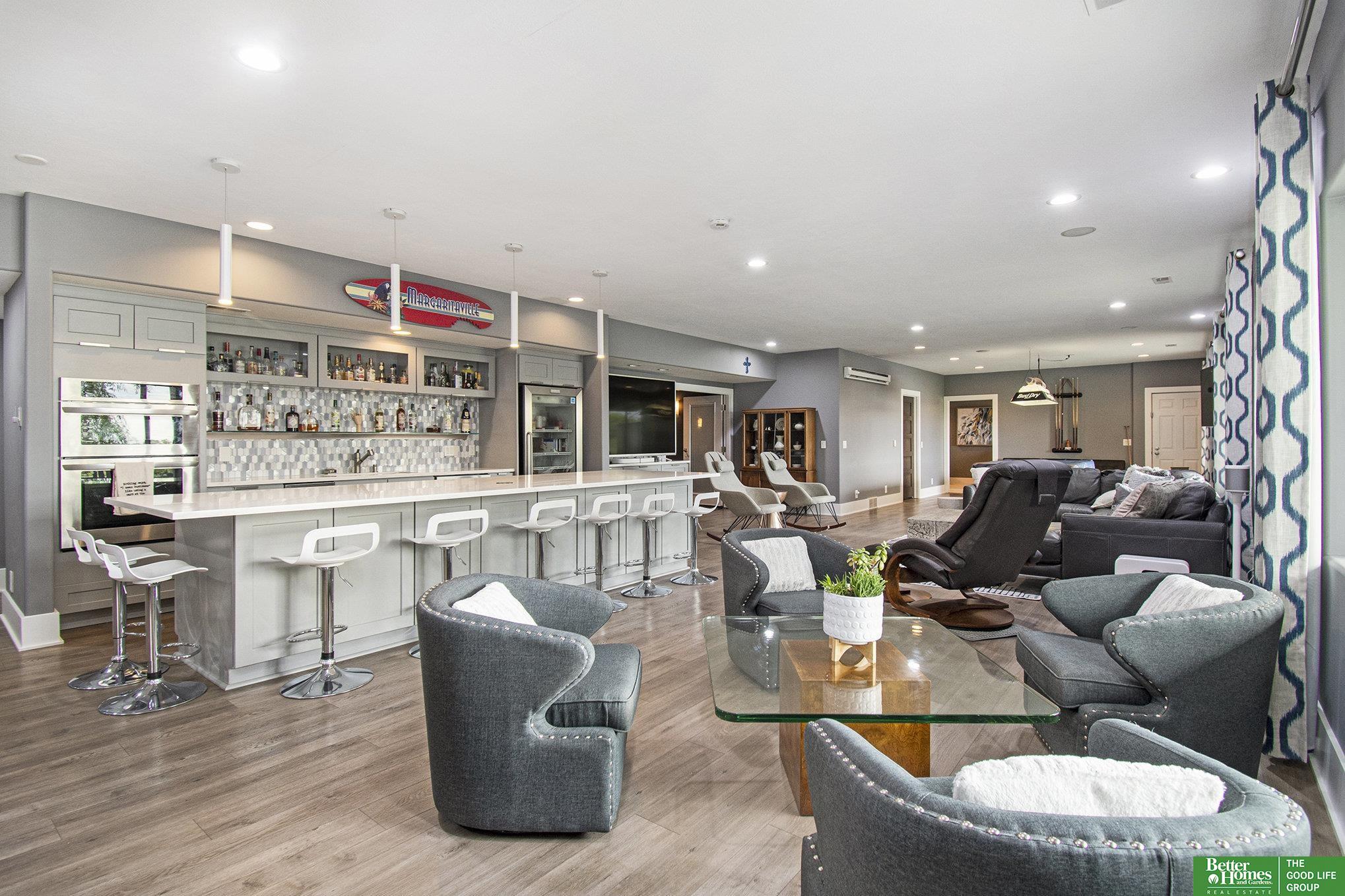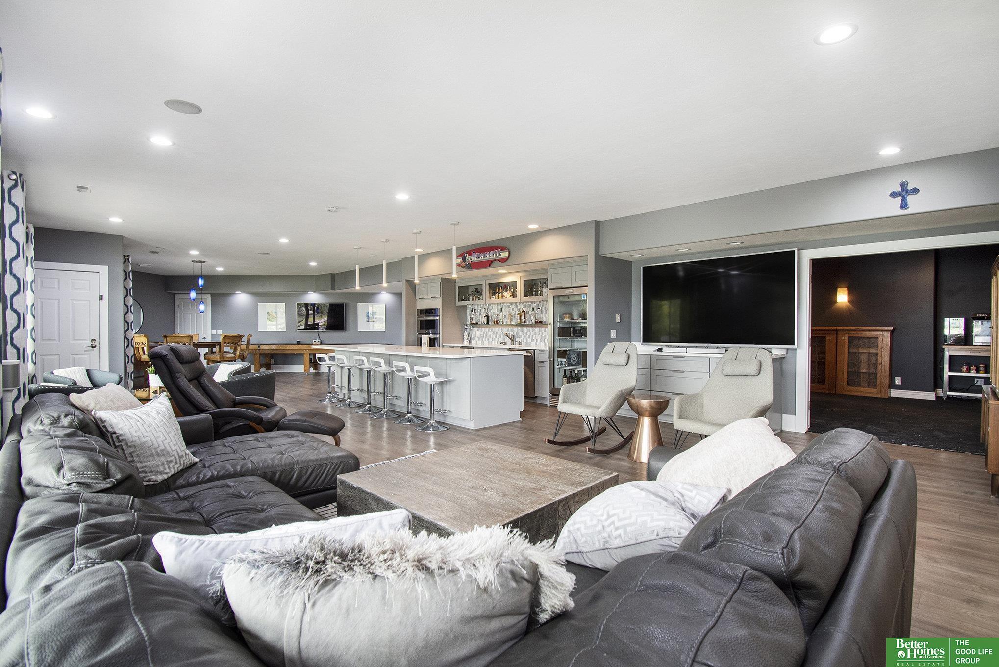 Welcome to your private retreat in the coveted Newport Landing lake community on Bennington Lake. This beautifully updated ranch sits on a rare 0.87-acre corner lot, offering exceptional privacy, you won't see a neighbor's front door. Designed for entertaining, it features a spacious walk-out basement rarely found in newer homes. The extra-large kitchen boasts an island that seats 8 and a generous walk-in pantry. Enjoy lake living with boating, jet skiing, wakeboarding, and a scenic 3.6-mile trail. Inside, the reimagined layout includes a large primary suite with expanded closet and connected laundry. The basement serves as an ideal in-law suite with its own living space, laundry, and whirlpool tub. Entertain in the oversized rec room with a full second kitchen/bar or relax in the theater room. Four garage spaces and extensive updates, including roof, driveway, windows, and interior complete the home.