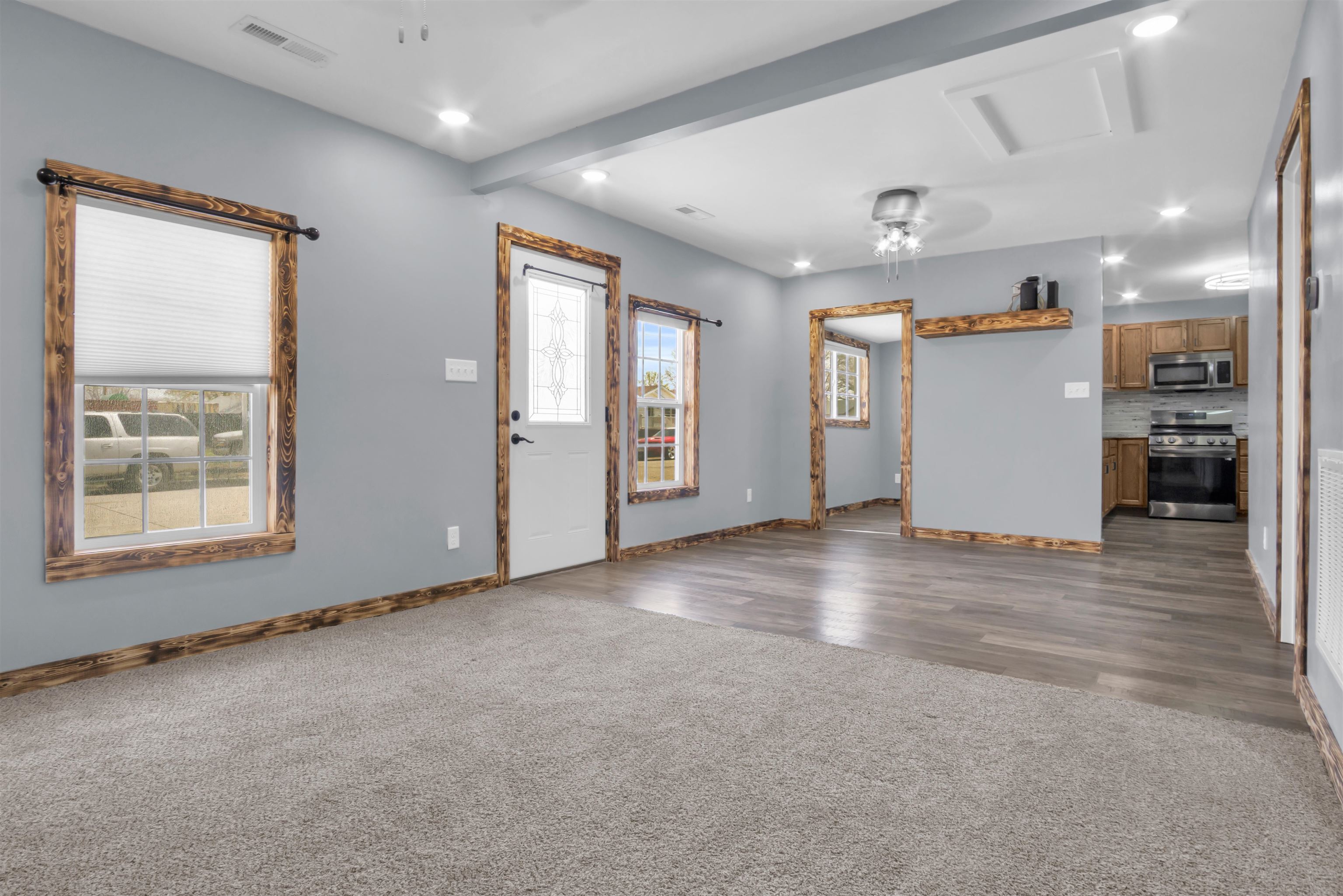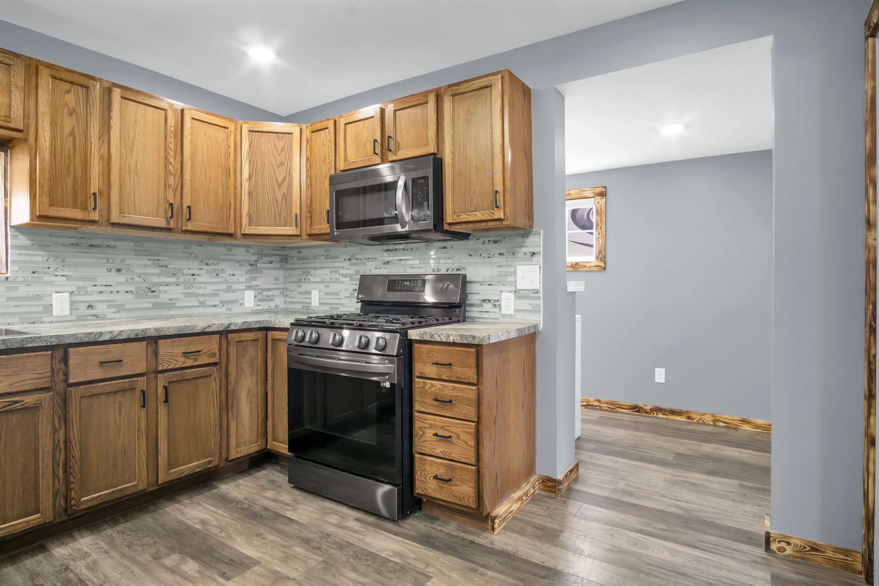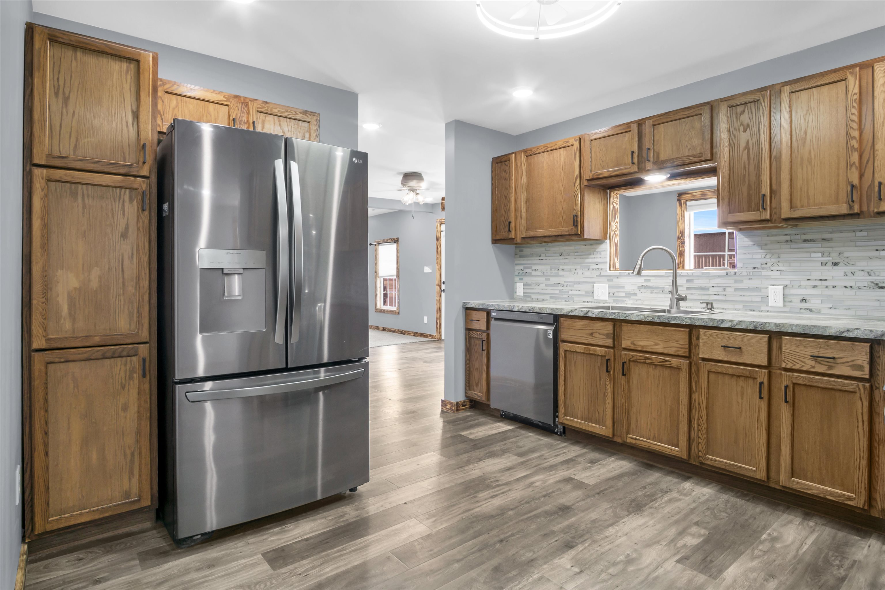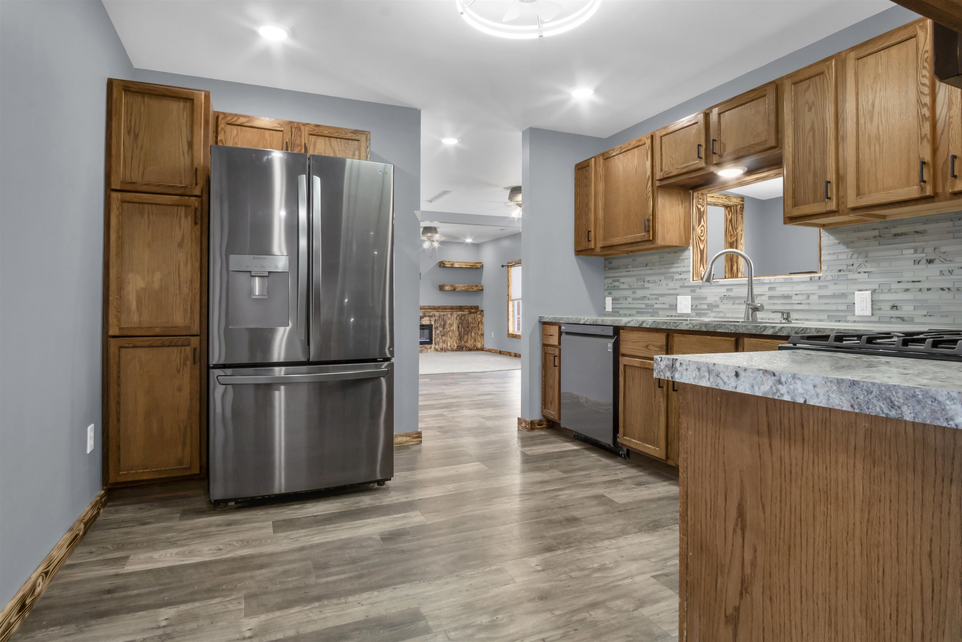 Exciting New Listing with Extensive Updates! This beautifully renovated ranch-style home is now ready for its new owner to enjoy. Starting with the exterior, the property boasts all-new siding, Class 3 impact-resistant shingles, brand-new windows, a new front door, a fresh patio, and a newly constructed sidewalk. Upon entering, you will be greeted by a multitude of interior updates, including new flooring, modern light fixtures, an upgraded electrical panel, new plumbing, and much more. This home features three bedrooms and one bathroom, along with a spacious living room that includes a custom-built entertainment center. Additional highlights include a bonus room suitable for a toy area or office, a brand-new kitchen with ample storage cabinetry, stainless steel appliances, and a stylish backsplash. The primary bedroom is generously sized, features a walk-in closet, and can accommodate a king-size bed. Additional features include a six-foot privacy vinyl fence, a detached one-car garage, a large backyard, and front and back recessed outdoor lighting that enhances the home's curb appeal. Currently, a tenant resides in the camper and is planning to vacate by the end of May. Call today to schedule your private tour of this remarkable property!