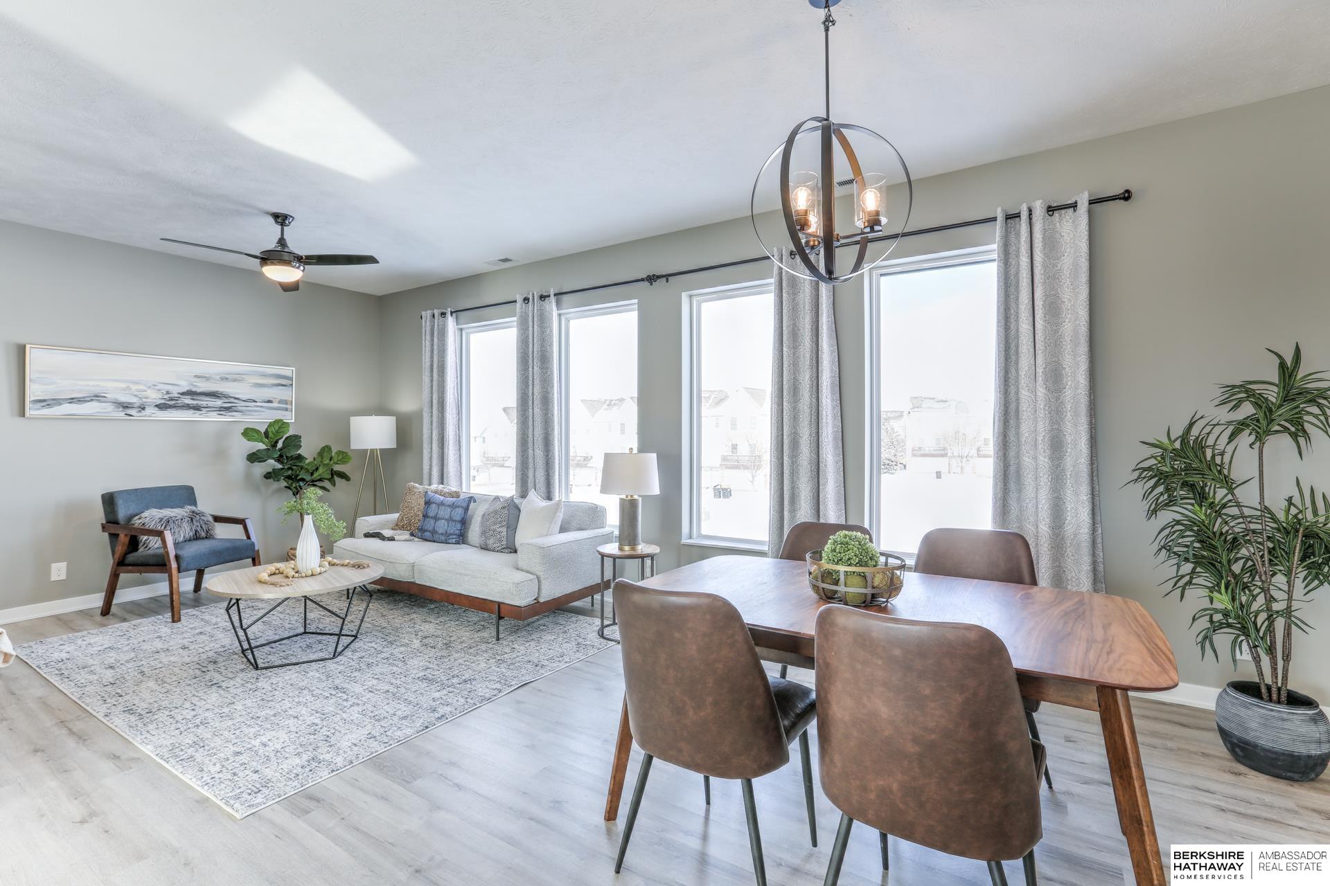 Low-maintenance living meets modern comfort in this well-cared-for condo designed for today’s lifestyle. The spacious main floor offers an open, airy layout highlighted by durable LVP floors, abundant natural light, a stylish eat-in kitchen with granite counters, ample cabinets for everyday living & entertaining plus a 1/2 bath. The upstairs offers a generously sized primary suite with a walk-in closet & full bath, 2 additional beds, 2nd full bath & laundry area for added convenience too. Step outside to the large deck & take in the open views with no rear neighbors, creating a peaceful retreat & sunset views. The oversized 2 car garage provides excellent storage & parking. Situated in the Millard School District & close to shopping, dining & local coffee spots, this home offers both inviting space & convenience. The HOA takes care of exterior maintenance, lawn care, snow removal, exterior insurance, water & trash, allowing you to enjoy a truly carefree way of living.