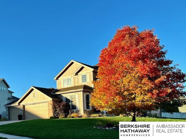 One of the largest corner lots in The Grove, features a private pickleball/basketball court, a freshly built deck, and an invisible fence. Step into a welcoming two-story entryway flooded with natural light. The layout includes 4 bedrooms, a dedicated office and an additional office alcove! Perfect for remote work and/or study. The unfinished basement comes with wet bar and bathroom rough-ins. The home network is second to none: smart-wired with over 48 Cat6 cables and a 6-zone whole-house audio system covering the living room, family room, kitchen, primary suite and bath, and den. Walk-in pantry and an extra-deep 4-car garage. Quick access to Dodge Street, shopping, restaurants, and grocery. Highly sought-after Elkhorn school district! Short walk to The Grove Park which includes walking trail, softball field, playground, basketball/pickleball/tennis court and a SPLASH PAD like in some water parks.
