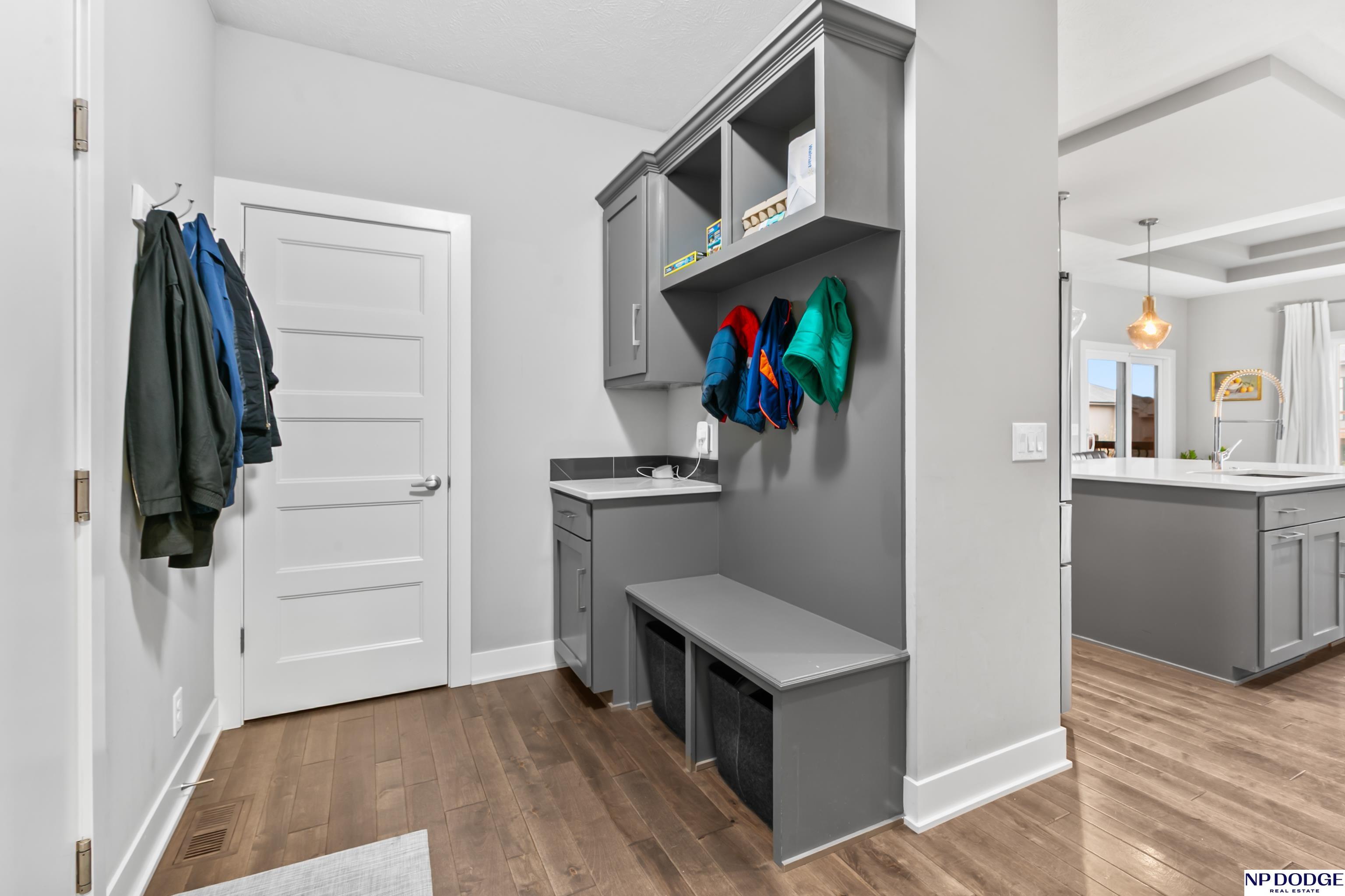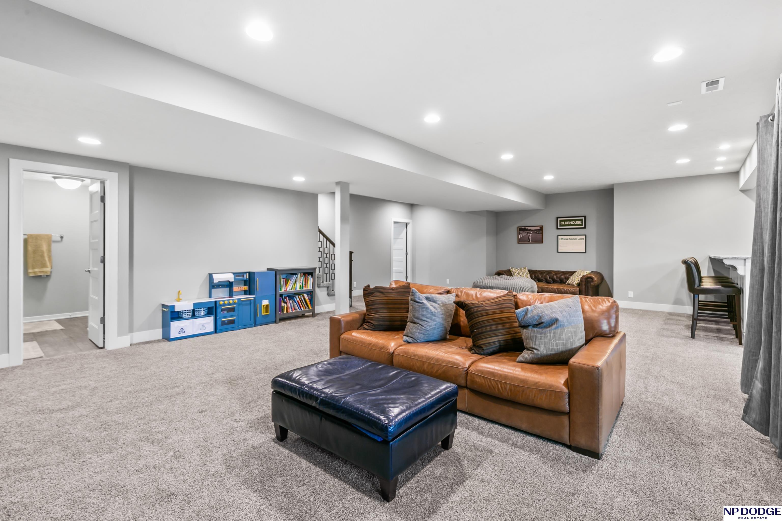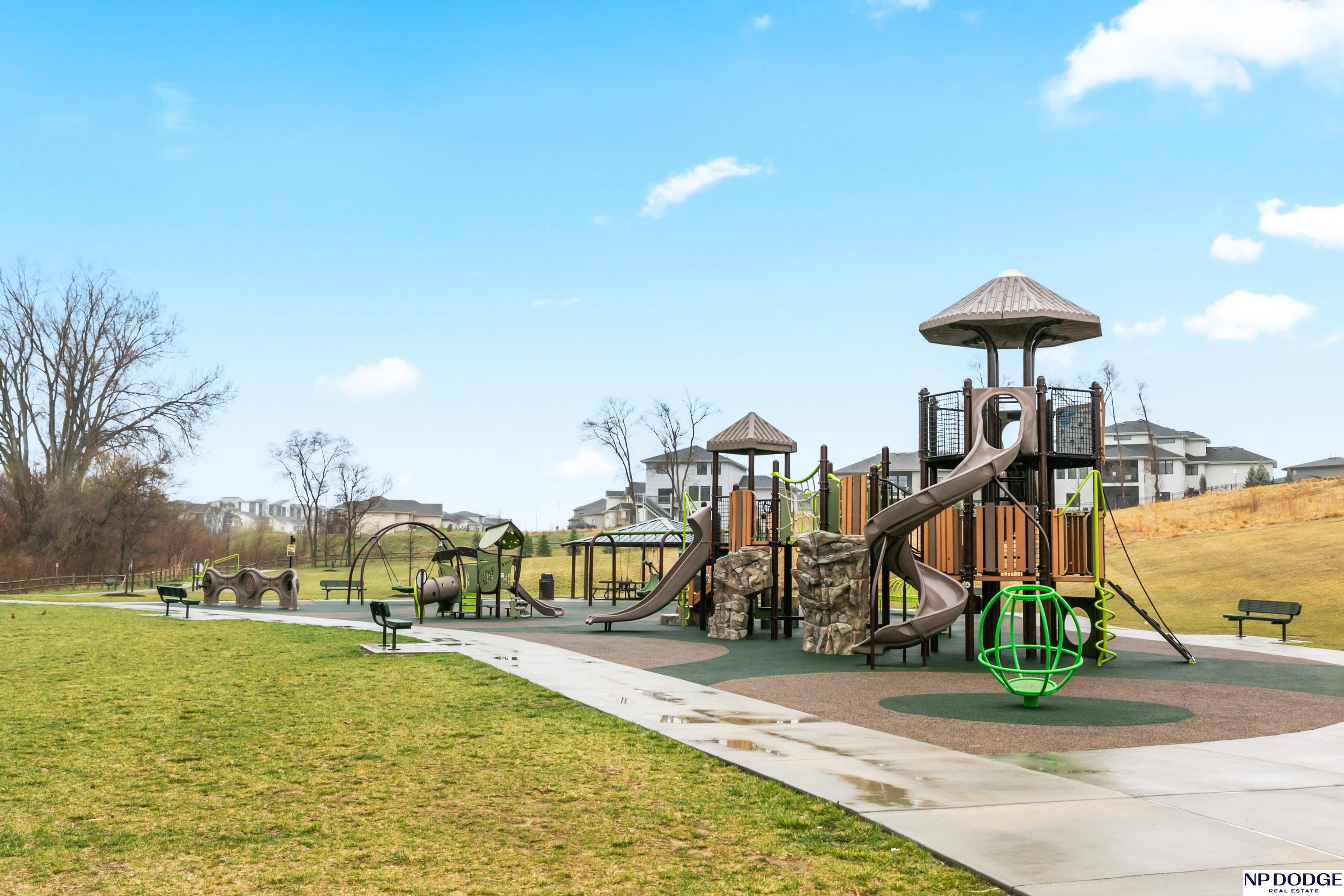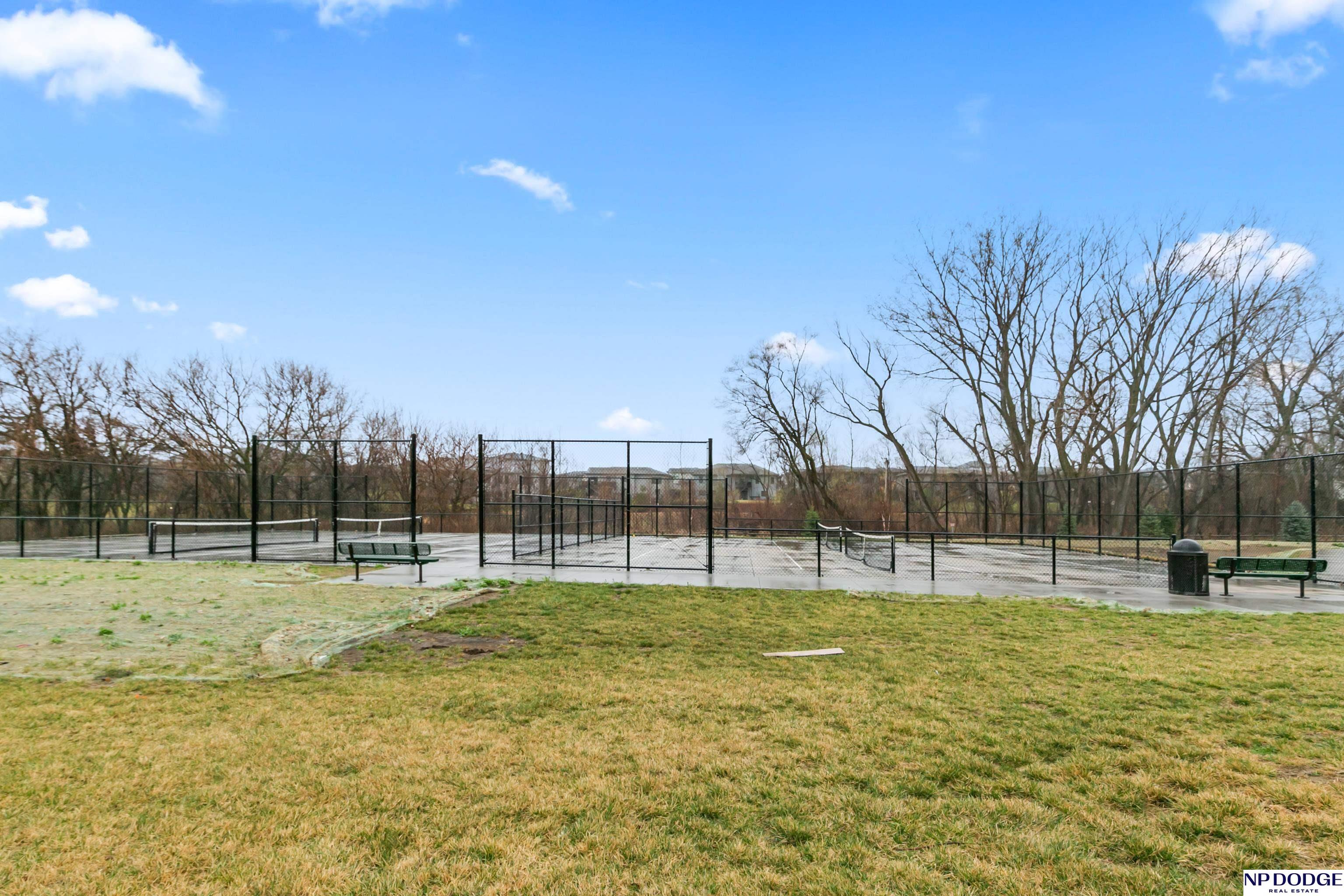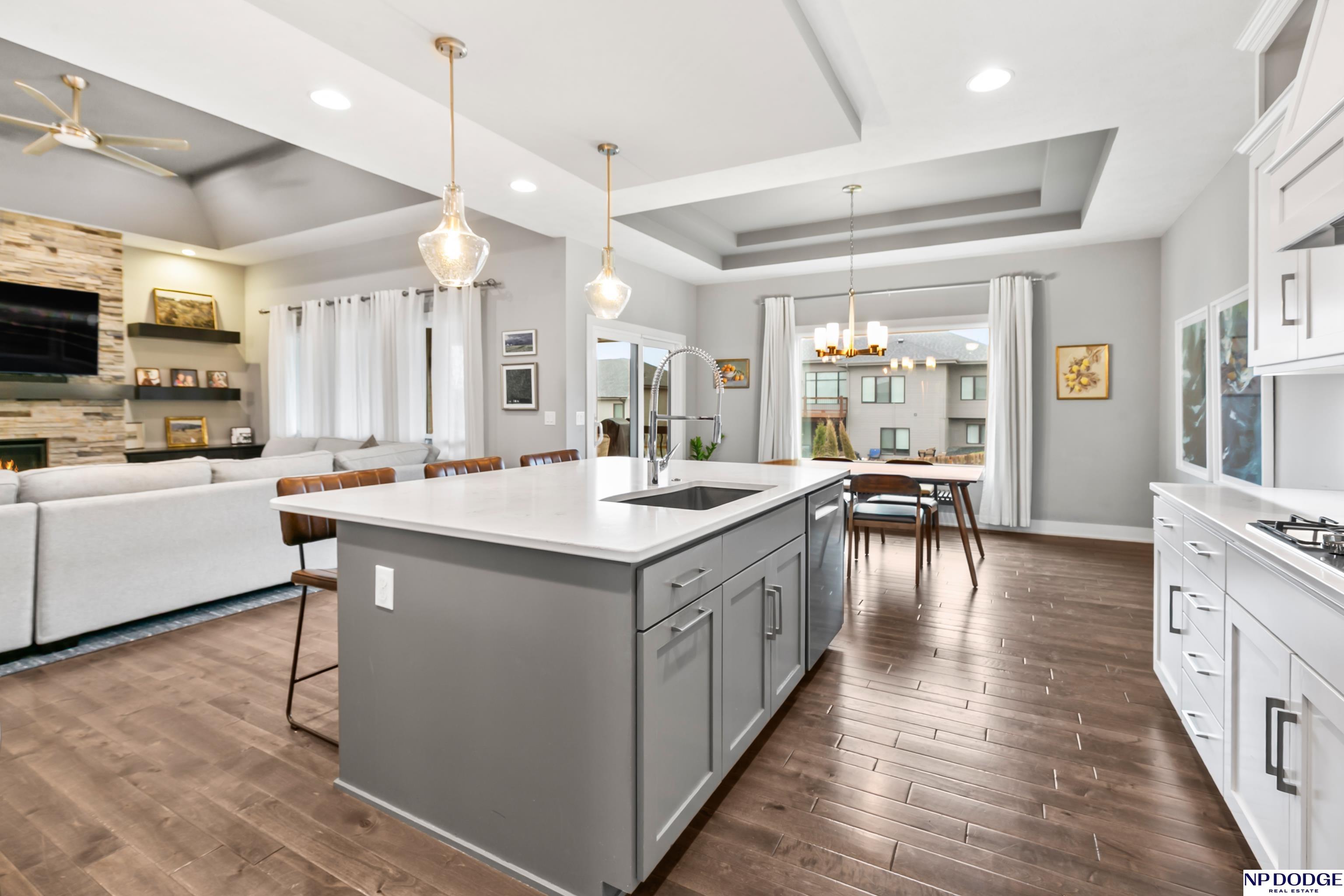 Open house on Sunday 4/19 from 12-2 P.M. Stunning custom ranch, perfectly nestled on a private cul-de-sac. Featuring five bedrooms, three baths, and an impressive four car tandem garage. The garage is almost 1,200 feet of space with high ceilings and extra storage. Beautiful maple wood floors and soaring 12-foot ceilings create an open airy feel throughout the kitchen and family room-perfect for everyday living & entertaining. Kitchen with quartz countertops large island, gas cooktop SS appliances, & hidden walk in pantry. Living room with gas fireplace and custom built in book shelves. Walk-out basement with large wet bar expands your living space, leading to a covered patio below a covered deck above ideal for relaxing or hosting gatherings. The fully fenced backyard provides privacy and room to play. Located close to Blondo Ridge Park, with playground and four pickle ball courts. Move in ready. Elkhorn Schools, and storage galore.