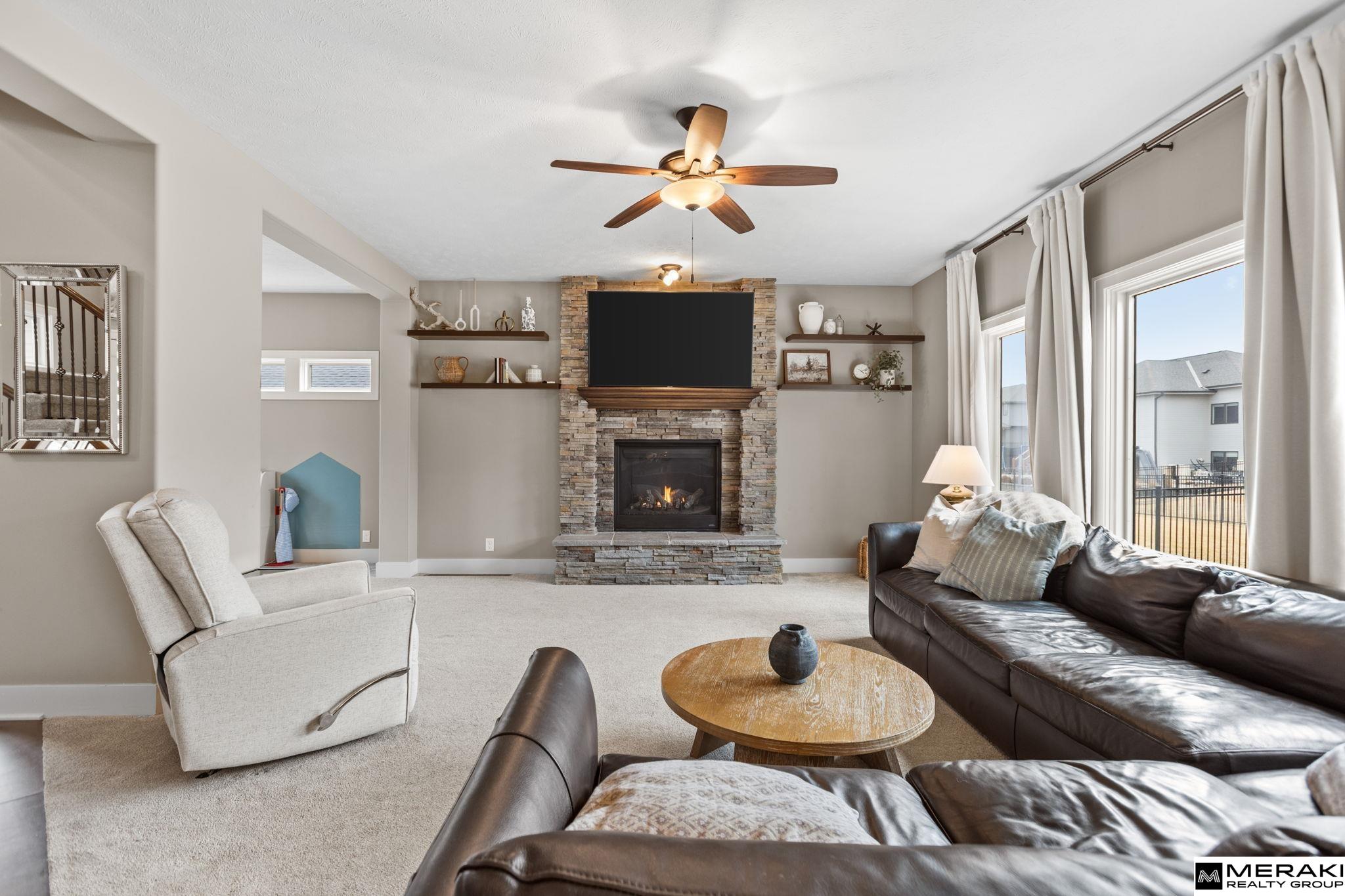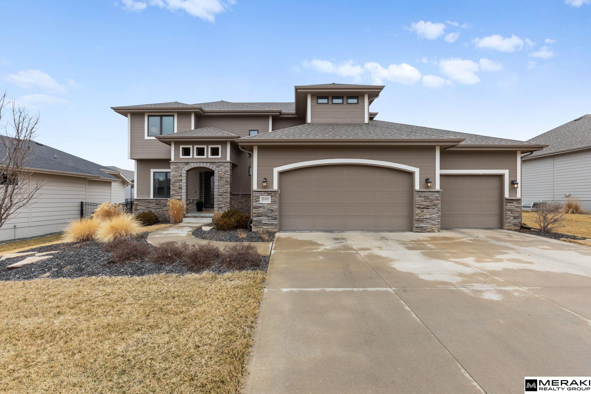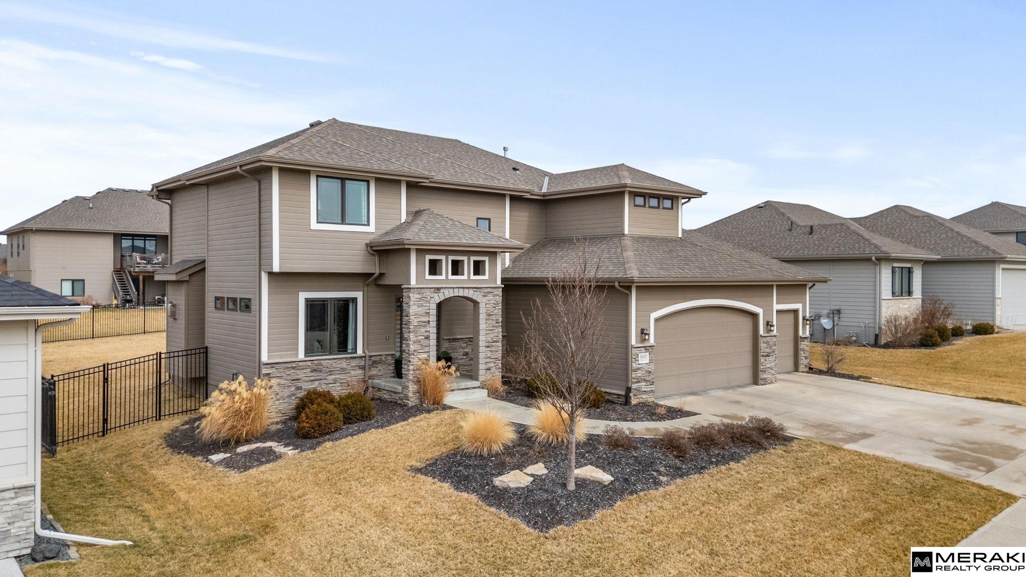 **OPEN HOUSE SUN 3/8 1-3pm!!** WOW! You'll love this open concept 2 story, 4 bed, 3 bath, 3 car with over 2,300 sq ft of updated finishes, modern style and expert design in sought after Blondo Ridges. Enter the 2 story vaulted foyer where you will be greeted by wide open living space and an abundance of natural light shining through the large windows. Make you way to the living area with cozy stone fireplace and into the spacious kitchen with SS appliances, Birch cabinets, Granite counters, pantry, island and dining area. With 4 bedrooms and laundry on the upper level, you'll find size and comfort the whole family can enjoy. The primary suite offers tray ceiling, oversized walk-in closet, double vanities and lare walk-in shower. Spend time in your large, fully fenced backyard with covered patio and sprinkler system - great space for entertaining. Within walking distance to Blondo Ridges Park and in Elkhorn School District. This West Omaha gem has everything you've been waiting for!