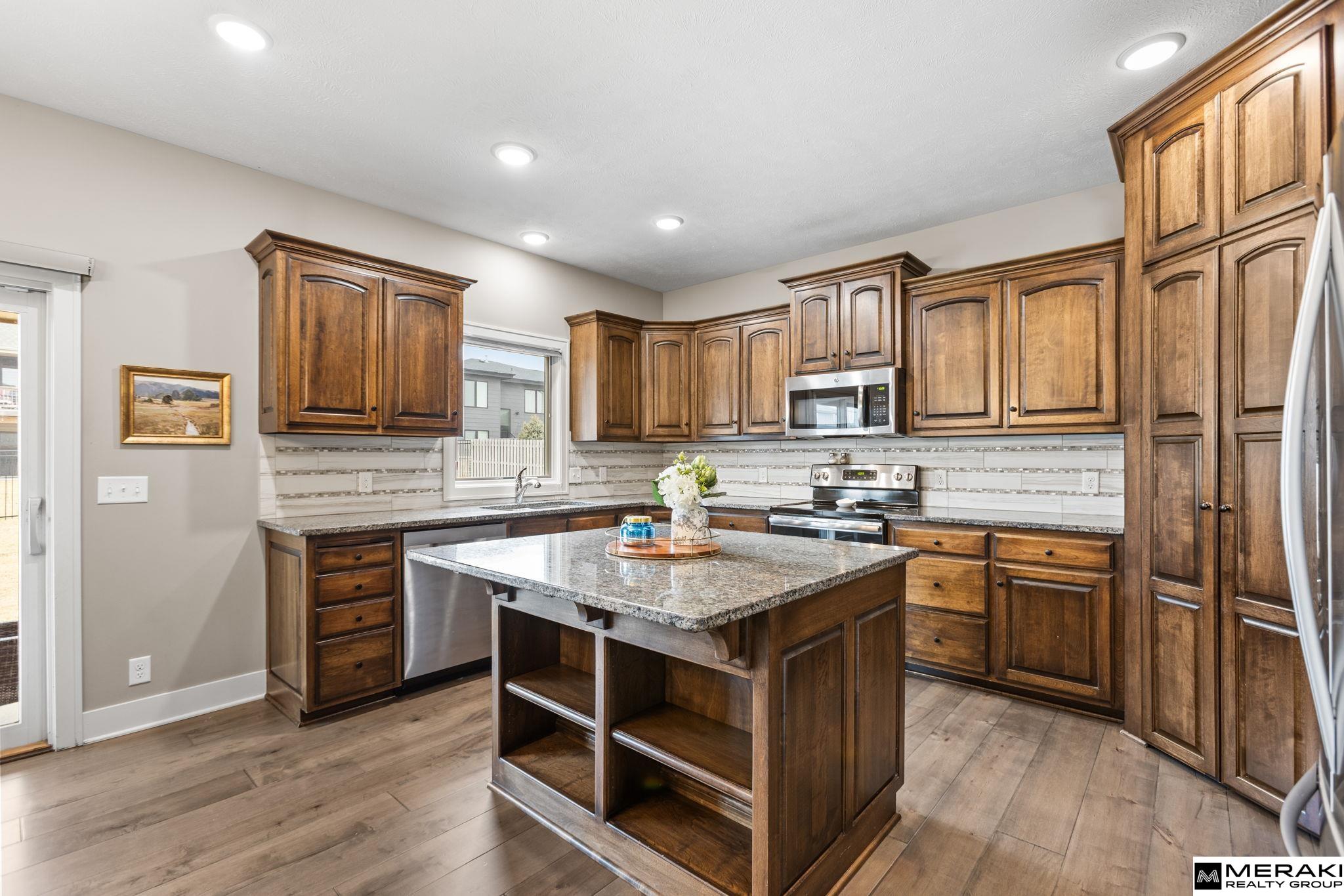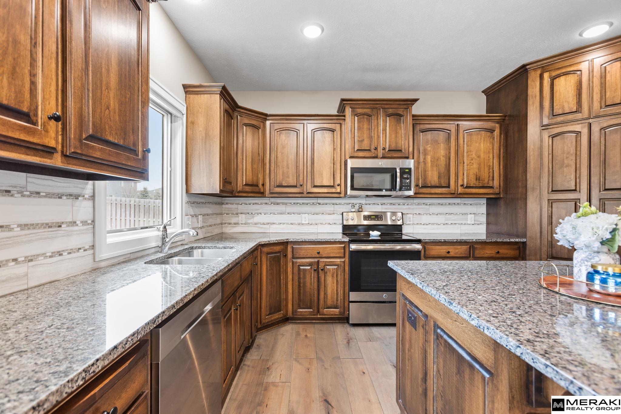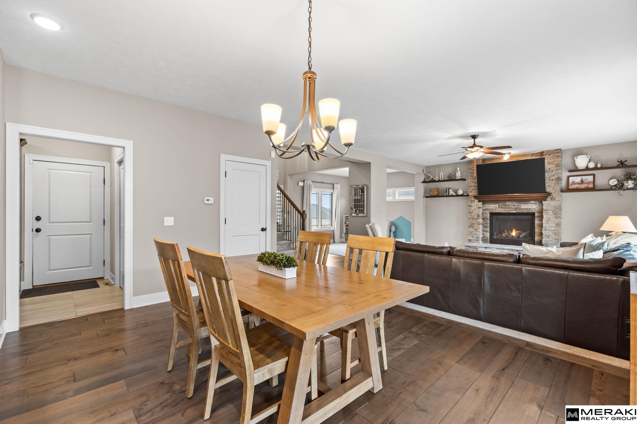 **OPEN HOUSE SUN 3/8 1-3pm!!** WOW! You'll love this open concept 2 story, 4 bed, 3 bath, 3 car with over 2,300 sq ft of updated finishes, modern style and expert design in sought after Blondo Ridges. Enter the 2 story vaulted foyer where you will be greeted by wide open living space and an abundance of natural light shining through the large windows. Make you way to the living area with cozy stone fireplace and into the spacious kitchen with SS appliances, Birch cabinets, Granite counters, pantry, island and dining area. With 4 bedrooms and laundry on the upper level, you'll find size and comfort the whole family can enjoy. The primary suite offers tray ceiling, oversized walk-in closet, double vanities and lare walk-in shower. Spend time in your large, fully fenced backyard with covered patio and sprinkler system - great space for entertaining. Within walking distance to Blondo Ridges Park and in Elkhorn School District. This West Omaha gem has everything you've been waiting for!