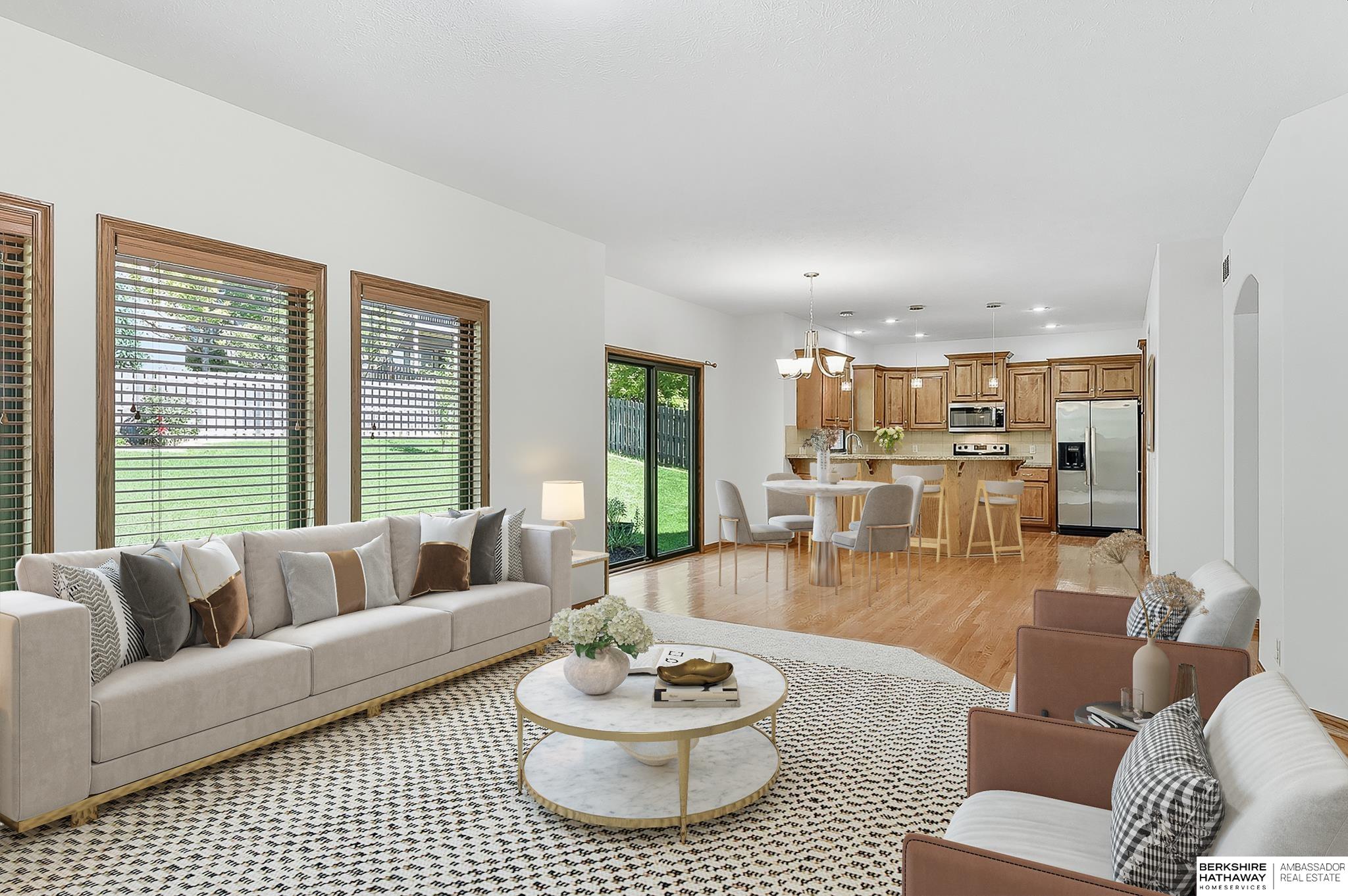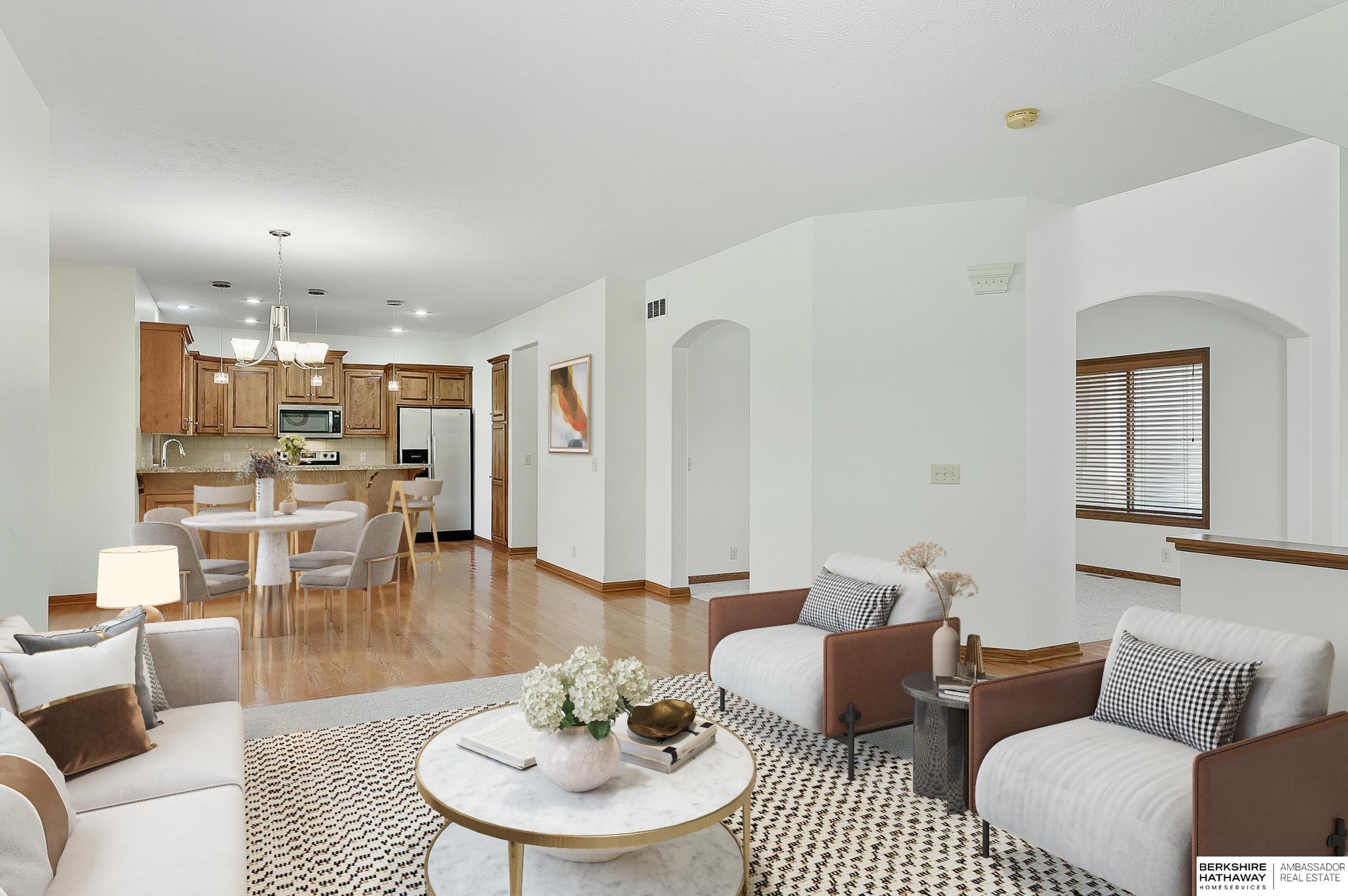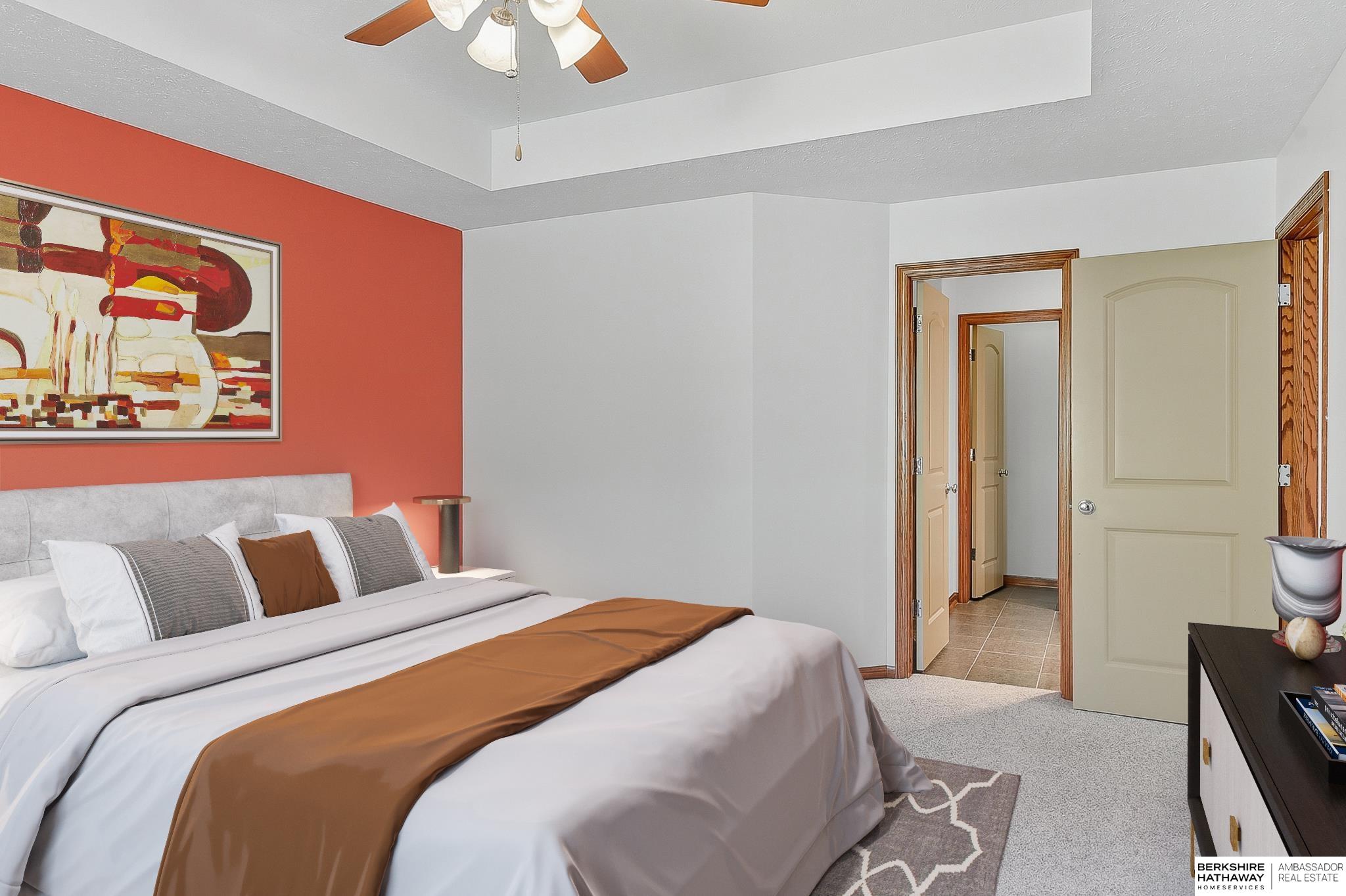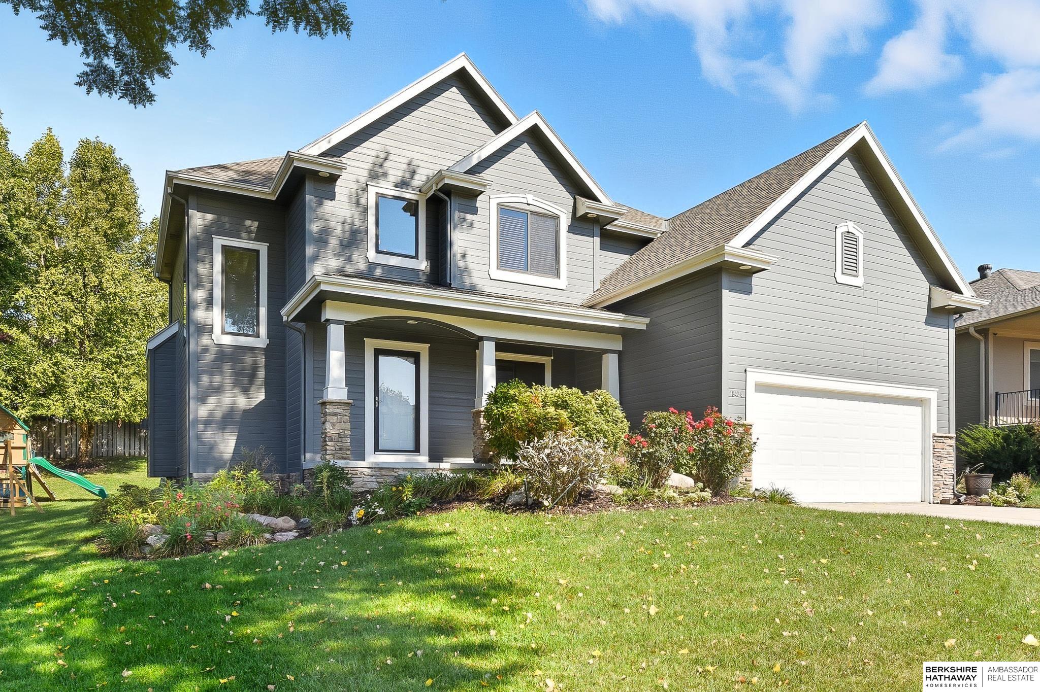 Welcome to this beautiful 2-story Elkhorn home in The Grove, featuring 4 bedrooms, 3 bathrooms, and a spacious open floor plan ideal for everyday living. A grand 2-story entryway, large windows, and hardwood floors create a bright, inviting main level perfect for family nights or entertaining. Upstairs, all bedrooms are generously sized with ample closets, including a primary suite with tray accent ceiling, ensuite bathroom, and oversized walk-in closet. The finished lower level offers new carpet, a large rec room, and rough-in for a 4th bath. Enjoy a freshly painted exterior (2023), plus an entertainer’s patio, fire pit, and landscaped yard. Conveniently close to shopping, restaurants, and Village Pointe. This home is a short 4-minute walk to the beautiful and popular Grove Park, offering playgrounds, splash pad, pickleball, courts, trails, ball fields, and HOA events year-round. Discover what makes this such a truly “neighborly neighborhood”!