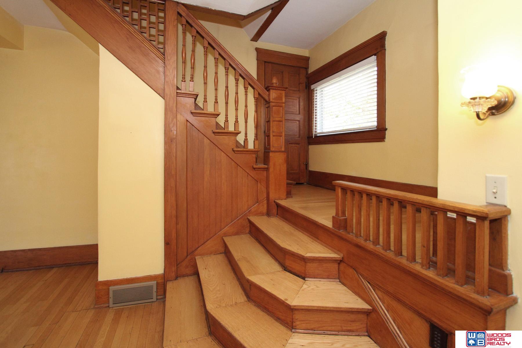 Timeless Charm Awaits you in this historic home, with over 1,700 sq ft, in the Near South neighborhood. It perfectly blends preserved original character with modern convenience. Enjoy the outdoors on a maintenance-free decking wrap-around porch. Inside you'll find a large living room with 9 ft. ceilings and a fireplace, hardwood floors, and original woodwork throughout. The kitchen has been updated with newer appliances. The spacious dining room accesses the porch. Main floor also includes and office and mudroom area. Upstairs offers 3 spacious bedroom and updated bath. A walk-up 3rd floor provides generous storage. Added value comes from new windows on both first and second floors. Basement includes the laundry area and a walk-up exit. The exterior is a solid mix of stone, brick & vinyl. The property is ideally located next to a neighborhood park and features recent landscaping. Call for your tour today!
