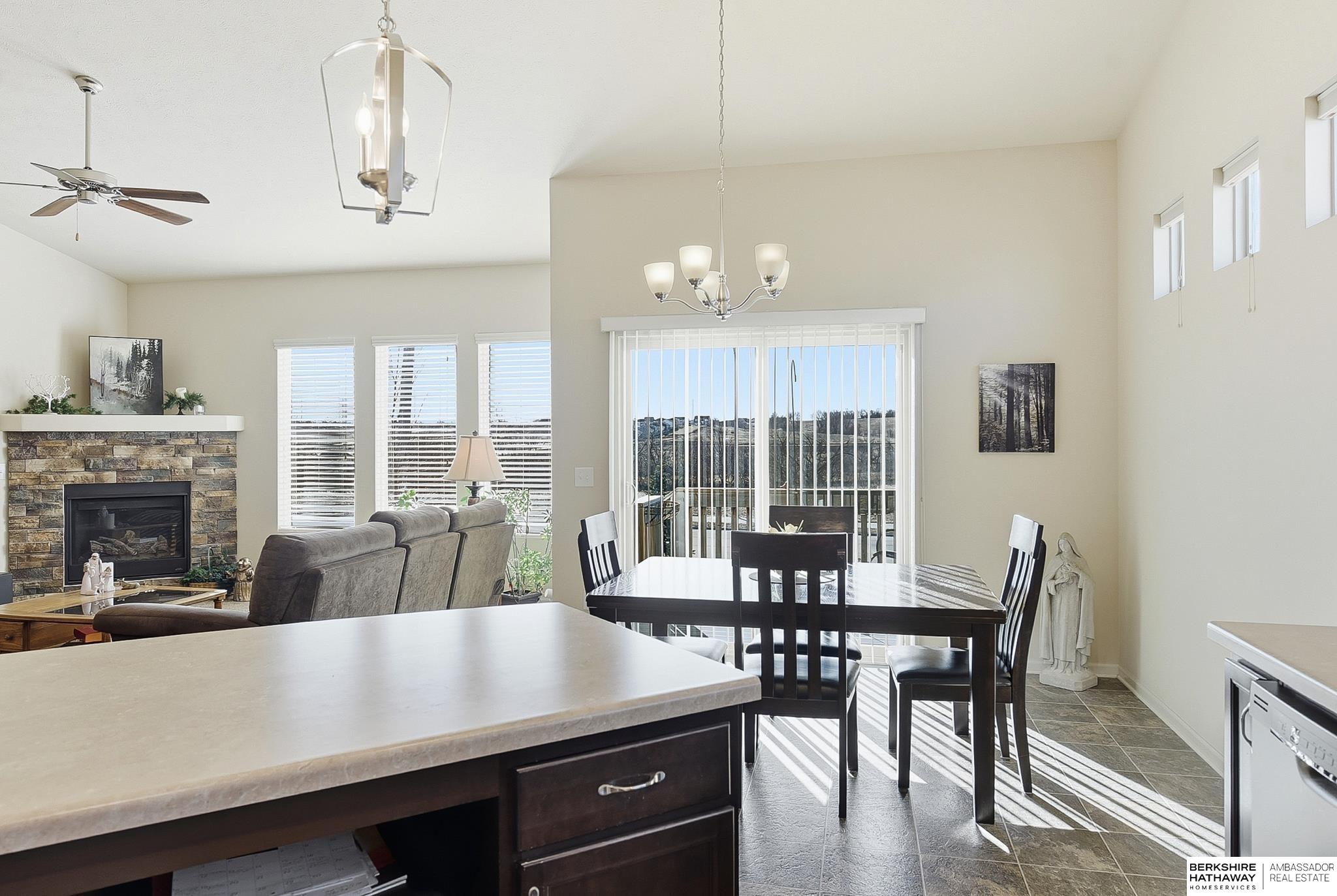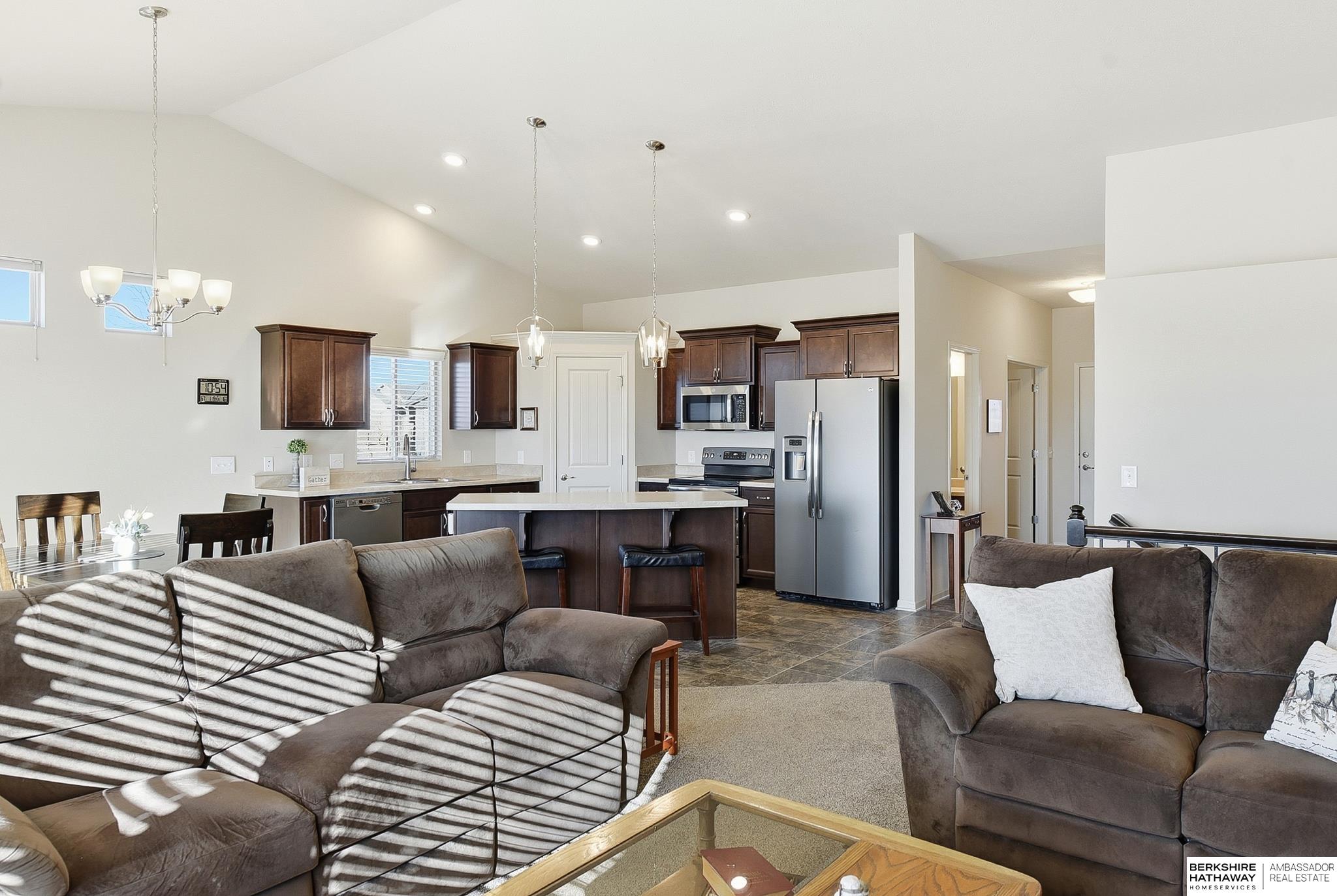Enjoy easy, low-maintenance living in this bright, open villa in the Gretna School District. Built in 2018, this very well-maintained and clean home offers 2,409 finished sq ft with vaulted ceilings, a cozy fireplace, and neutral finishes throughout. The spacious kitchen features stainless steel appliances, a center island, and walk-in pantry, flowing into the main living areas—perfect for everyday living or entertaining. The primary suite includes double sinks and a unique walk-through closet with direct access to the laundry room. The finished walk-out basement adds a large family room, additional bedroom, bathroom, and generous storage or workshop space. Relax on the covered porch with no neighbors behind for added privacy. Low $100/month HOA covers lawn care and snow removal. Conveniently located near Chalco, Tiburon, I-80, Gretna Crossing, Hy-Vee, shopping, churches, and schools. AMA.