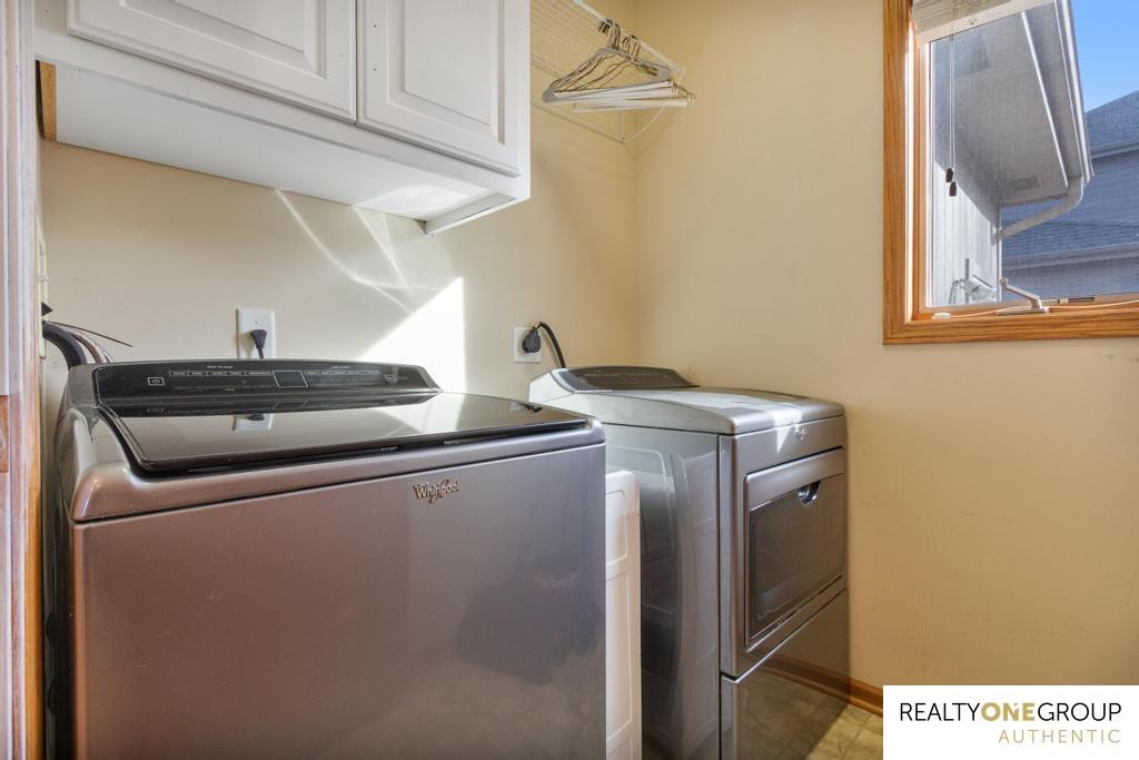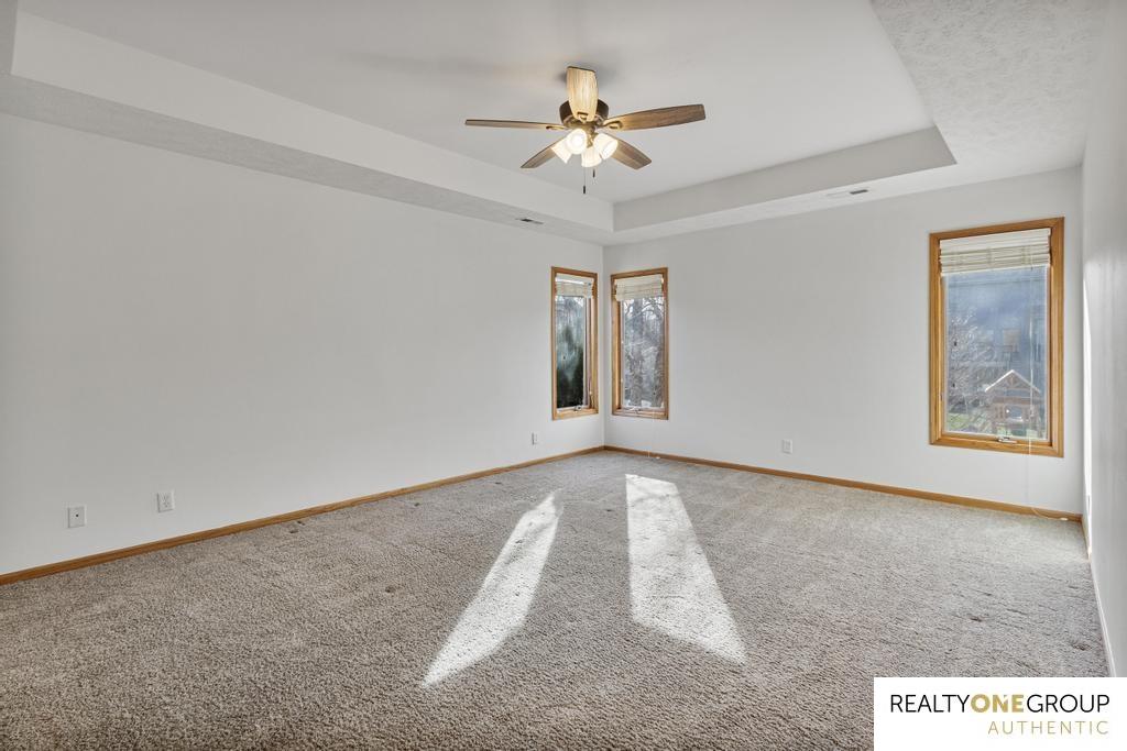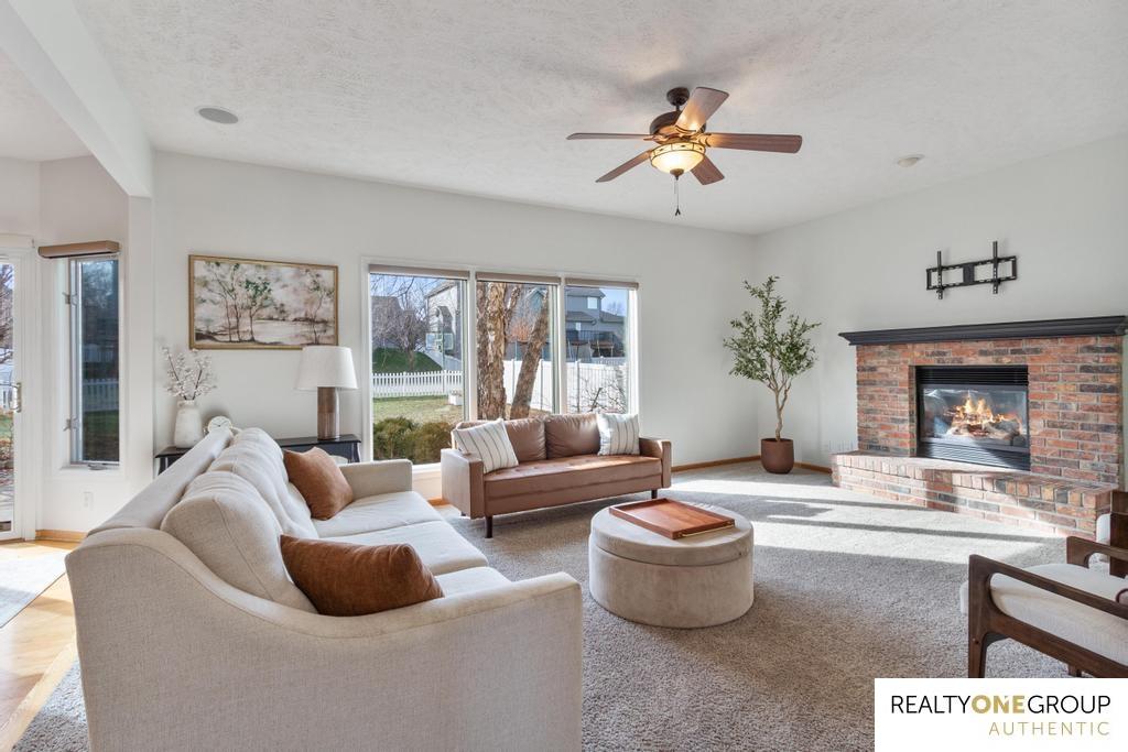 Welcome to this incredible 4-bedroom, 4-bathroom residence in the highly sought-after Sugar Creek community of Omaha. The soaring two-story entry and open staircase create a grand first impression. The main floor features a spacious kitchen that flows into an open eating area and a large living room, complete with a cozy gas fireplace. An additional flex room on the main level can serve as a formal dining space, a sitting room, or a dedicated home office. Upstairs are four generously sized bedrooms and two additional bathrooms with double vanities. The luxurious primary suite is a true retreat, featuring a full private bathroom and an expansive walk-in closet. The lower level is the perfect entertaining or family zone, boasting high ceilings, finished rec room, a full bath, and tons of storage. Outside, enjoy the large, private back patio perfect for gatherings, complete with gorgeous landscaping and a gas fire pit. Offering a premium home warranty for peace of mind. Agent is owner.