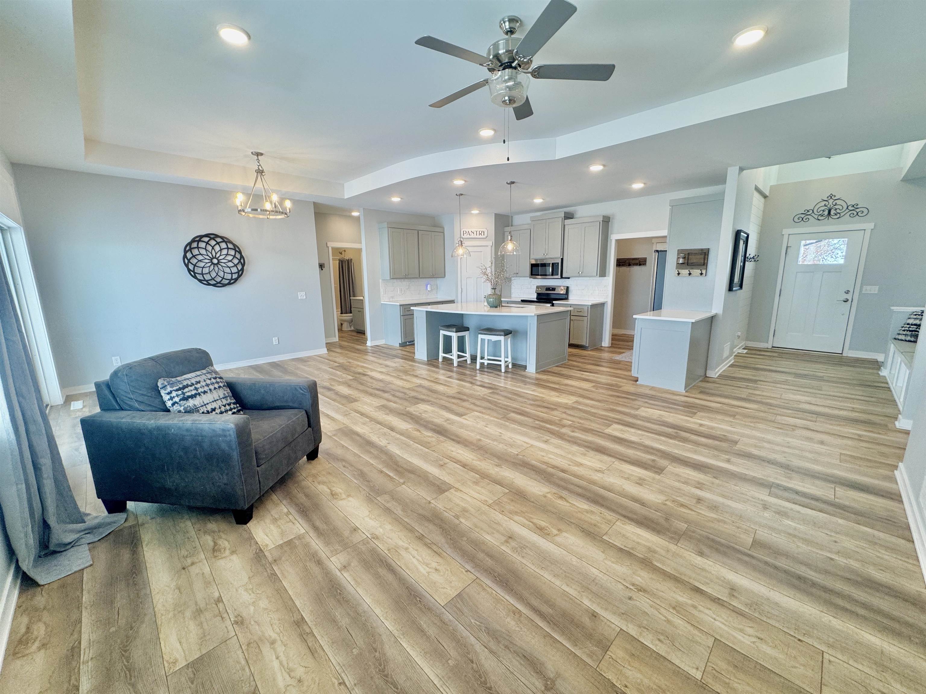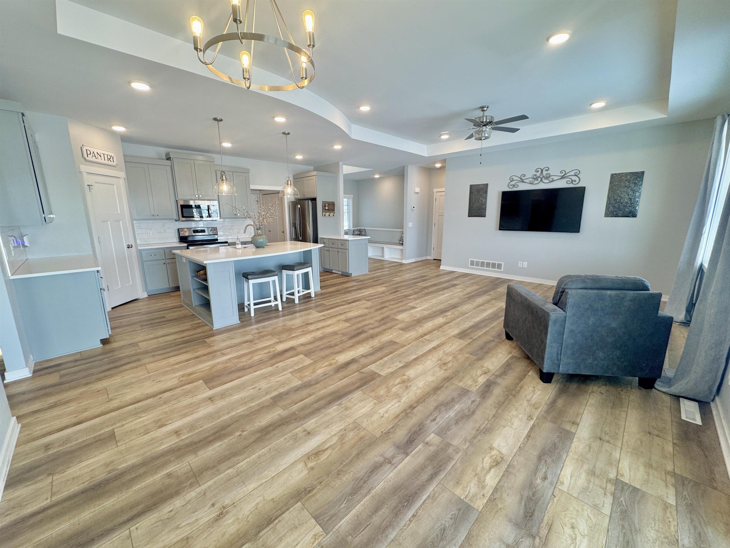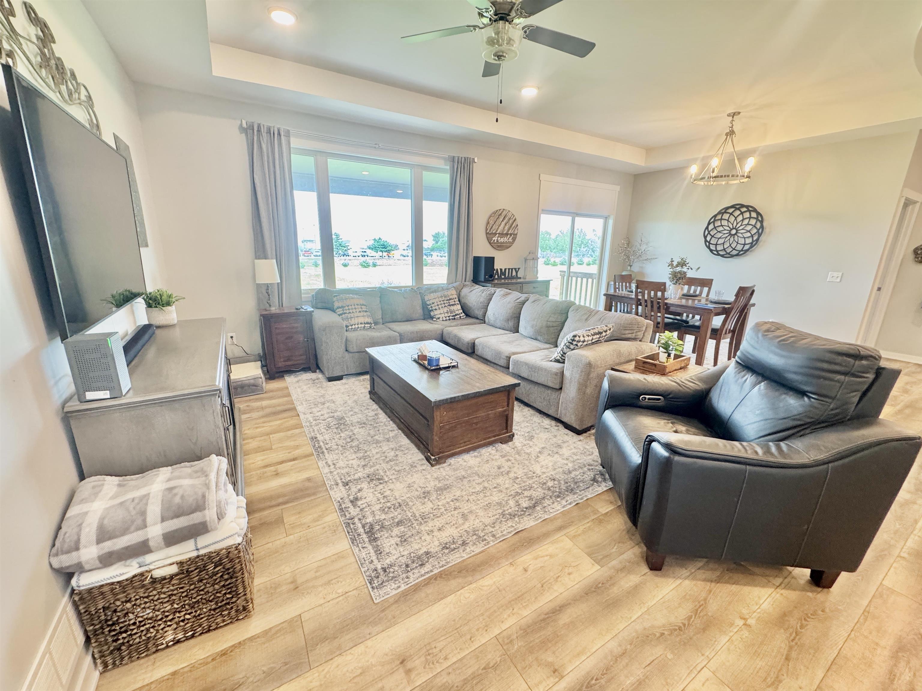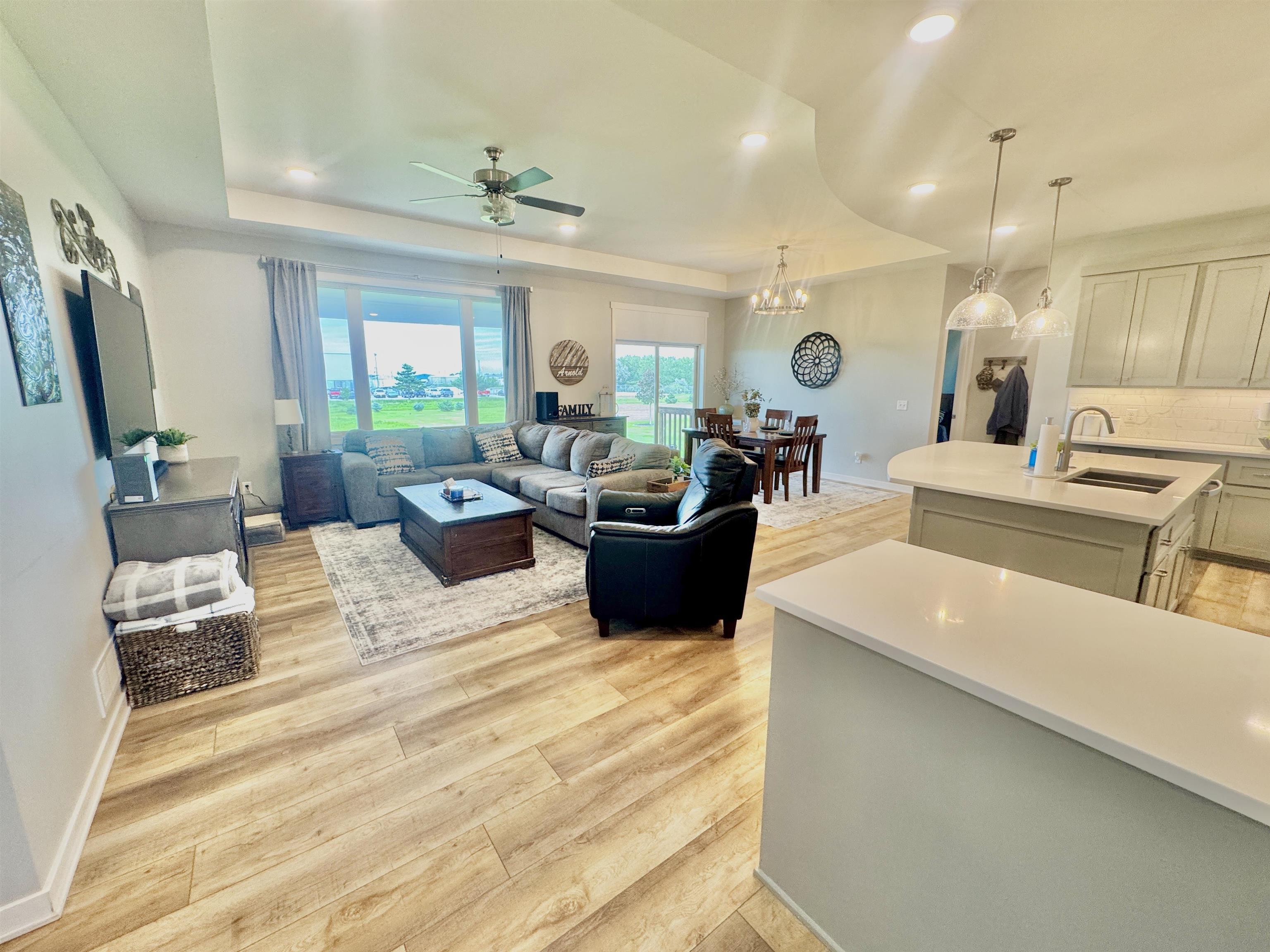 Buyers will receive a one-year home warranty at closing! This beautiful ranch-style home was built in 2020 and has everything you need and then some! With 5 bedrooms, 3 bathrooms, and a fully finished basement, there’s plenty of space whether you're hosting the holidays or just enjoying a quiet night in. The main level is bright and open, with 3 bedrooms, 2 full bathrooms, and a layout that flows so nicely from the living room to the kitchen and dining space. Downstairs, the finished basement adds tons of bonus space with 2 more bedrooms, another full bath, and room for a game area, movie setup, or just hanging out. (There's even extra storage always a win.) You'll love the large lot, there's plenty of room to stretch out, garden, or enjoy a backyard BBQ. The 3-car garage is great for vehicles, toys, tools, or whatever hobbies you’ve got going on. And yes, there's a sprinkler system, storm shelter, and water softener too thoughtful touches that make daily life easier. This home is tucked into Christopher’s Cove, a quiet and welcoming neighborhood that’s perfect for evening walks or watching the sunset from your front porch. You're close to everything but still get that peaceful, tucked-away feeling. If you're looking for a home that feels fresh, open, and move-in ready, this is it. Come take a look you might just fall in love.